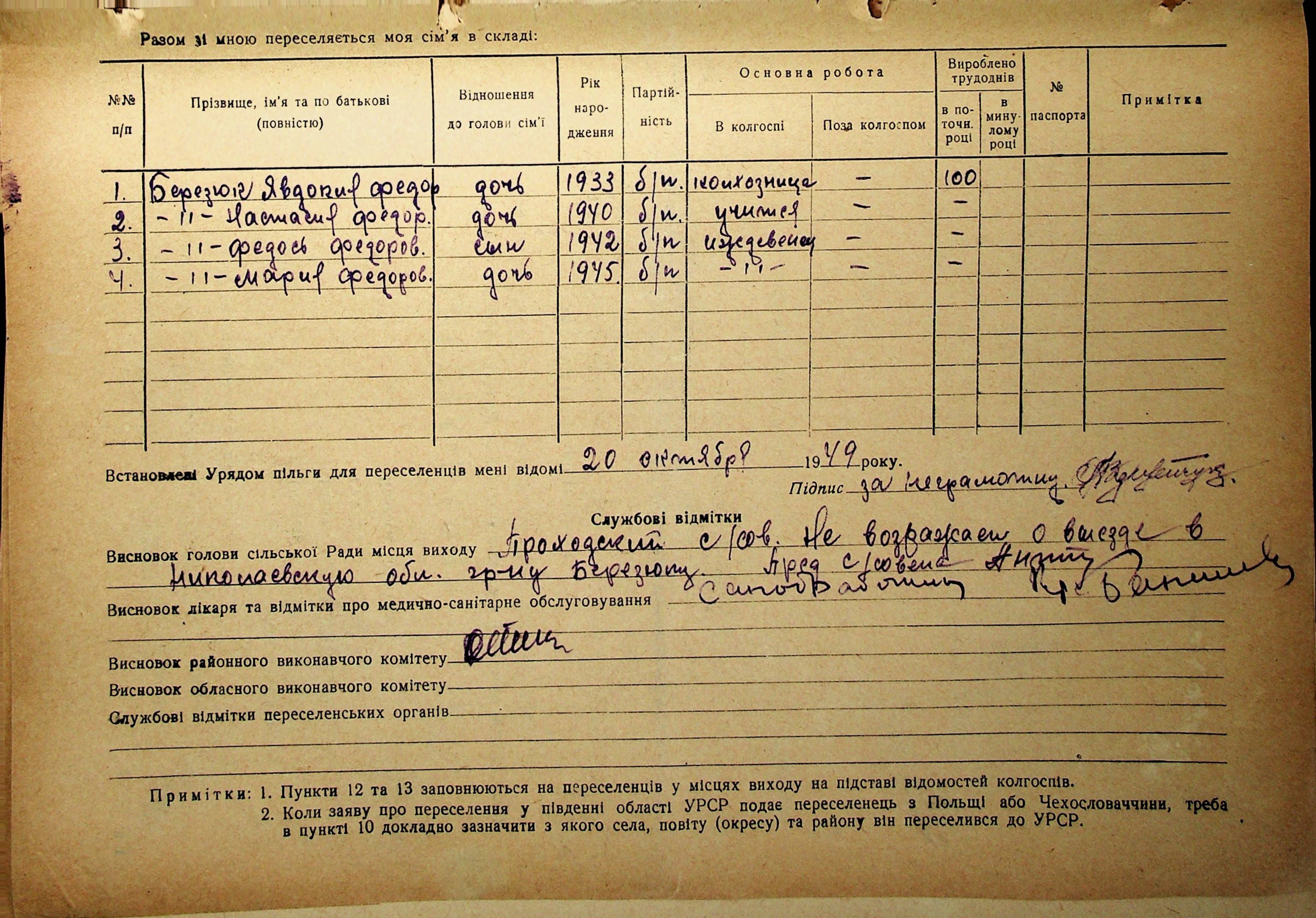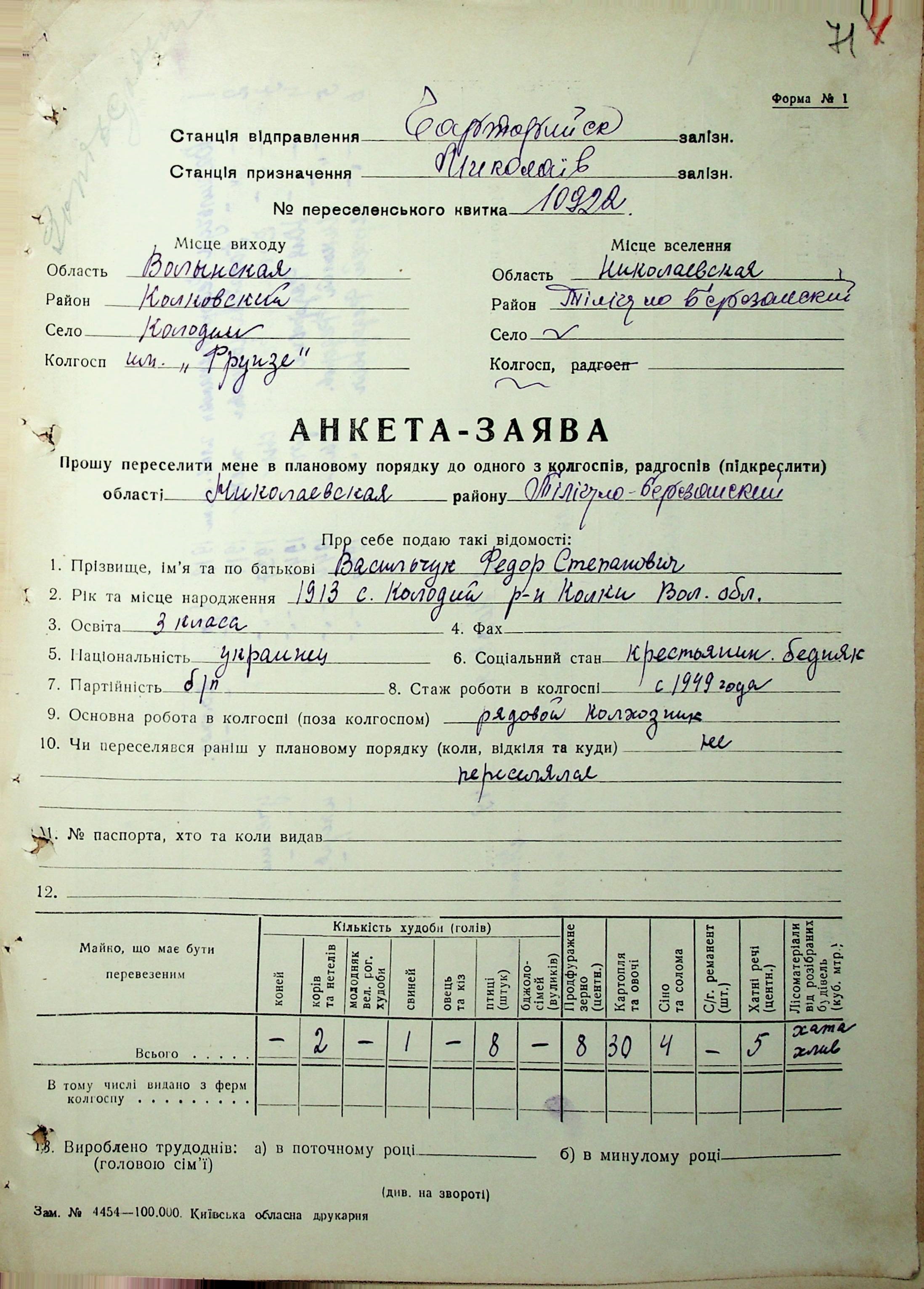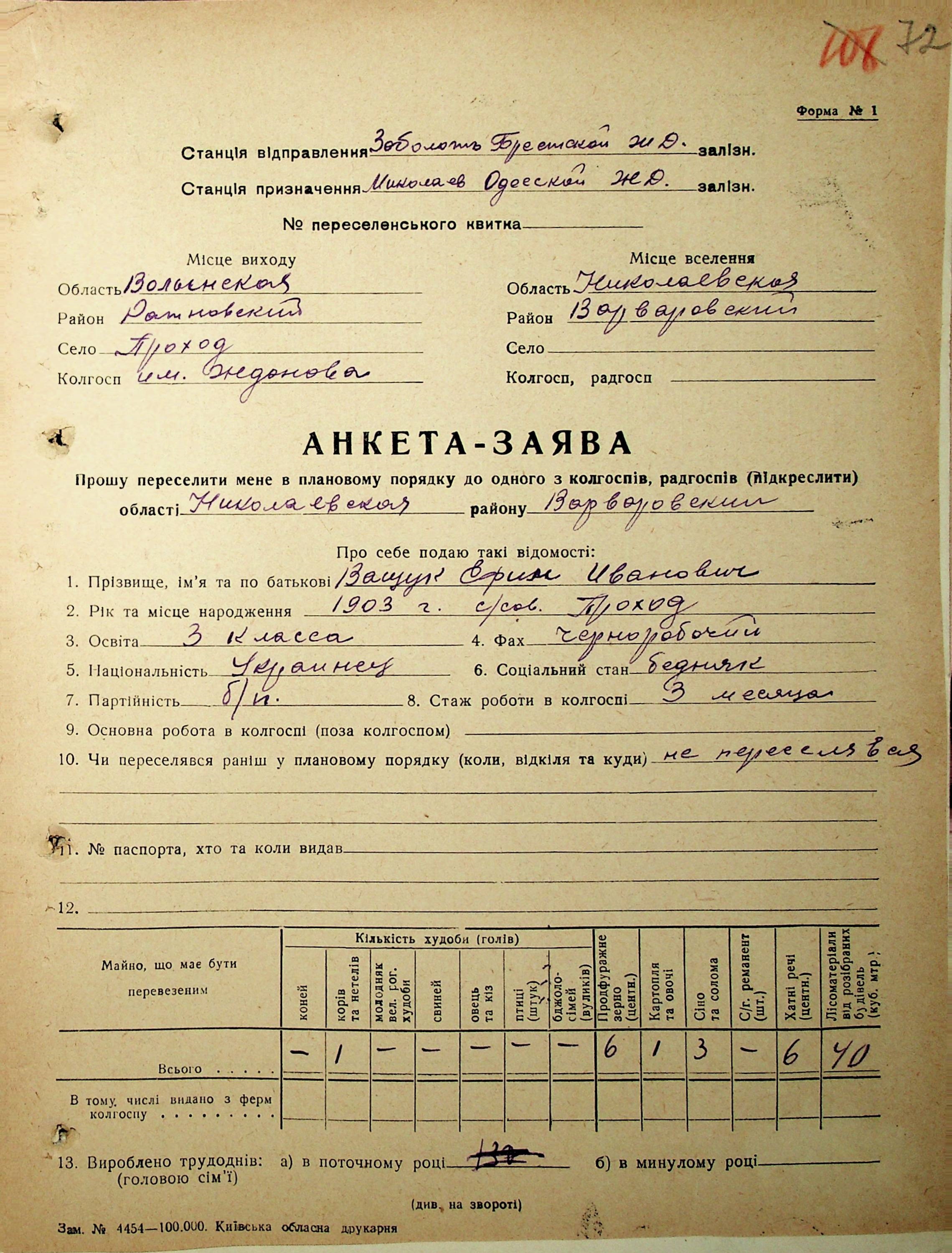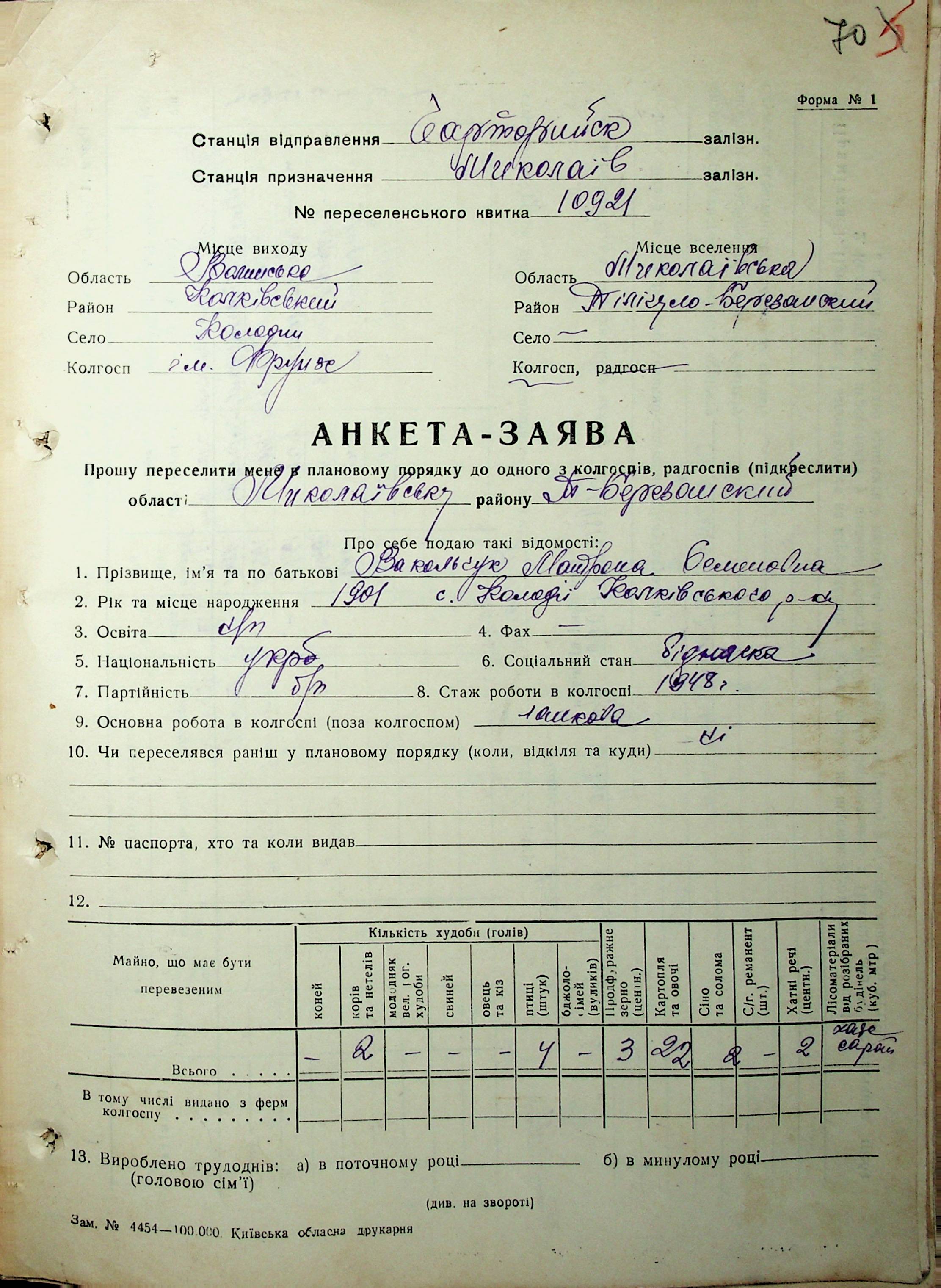 • • • • Справа № 35 “Анкети-заяви про планове переселення сімей із Вінницької та Волинської областей до Миколаївської області”