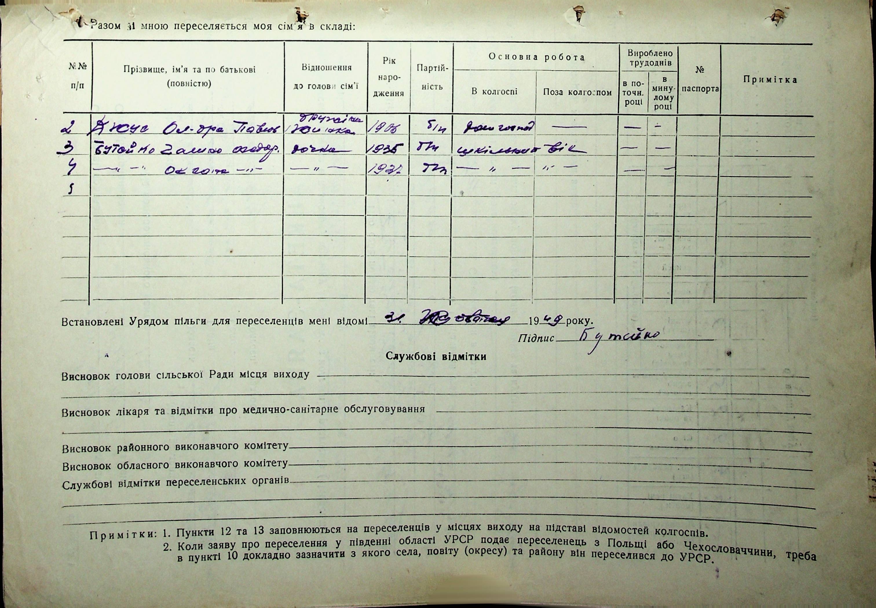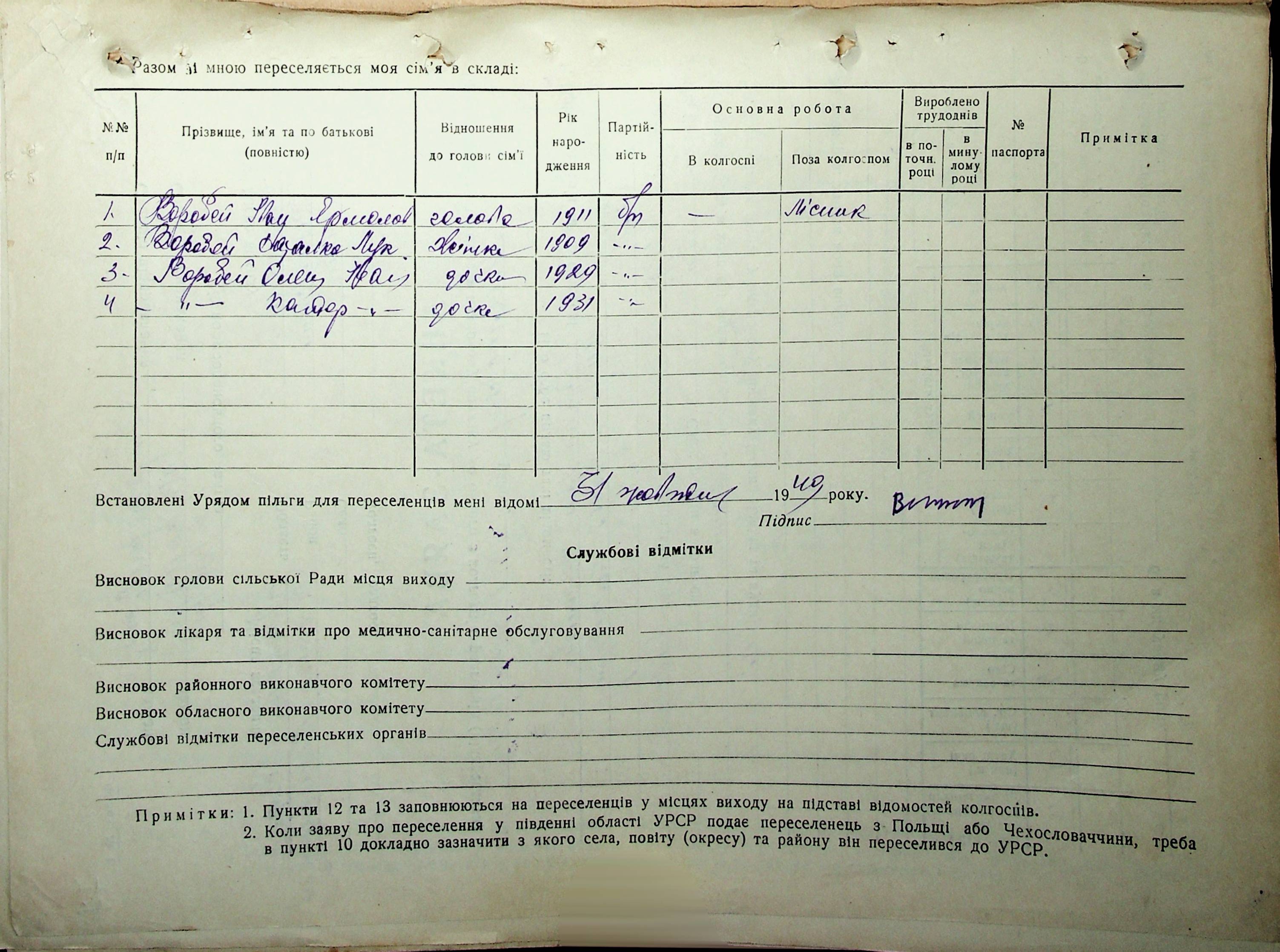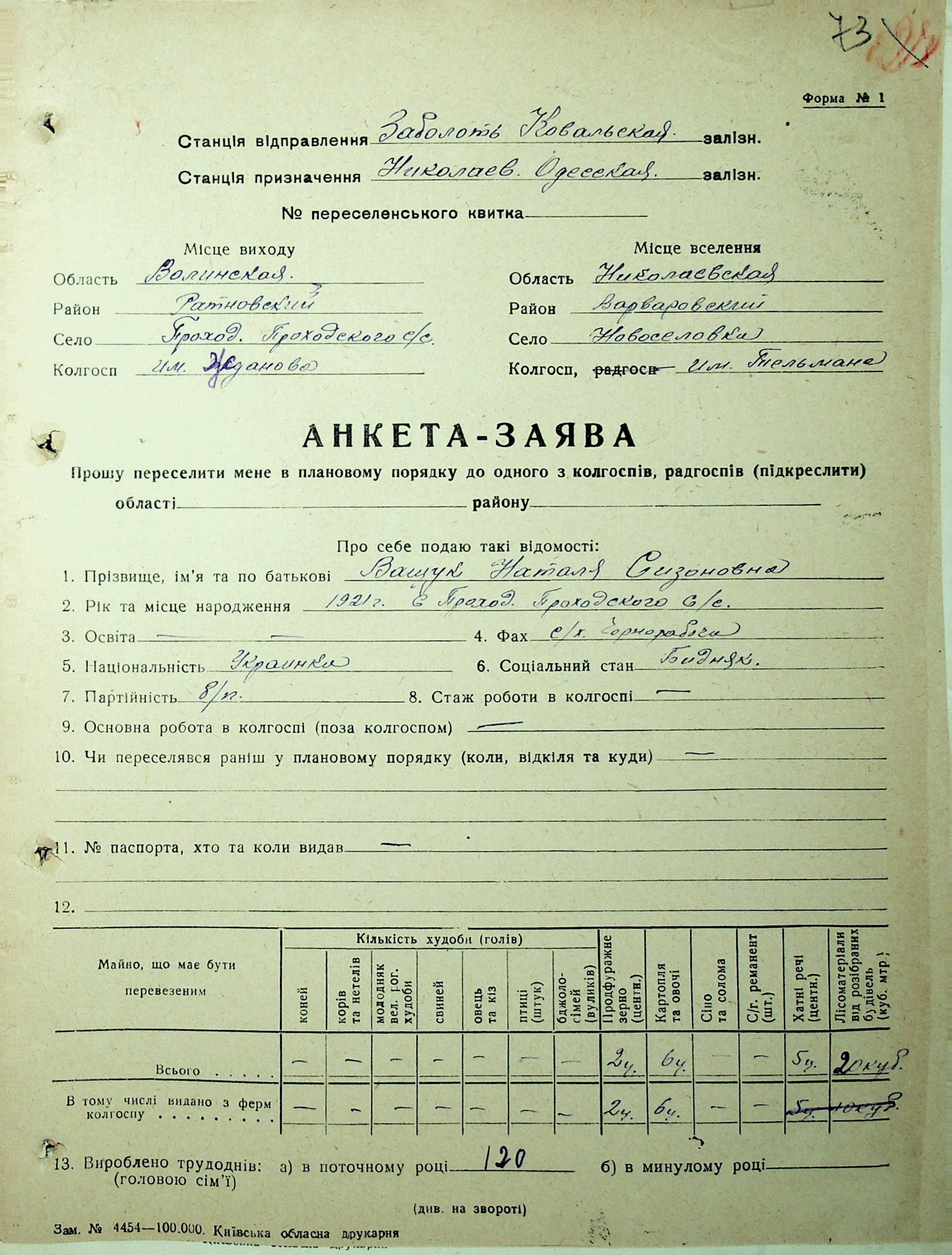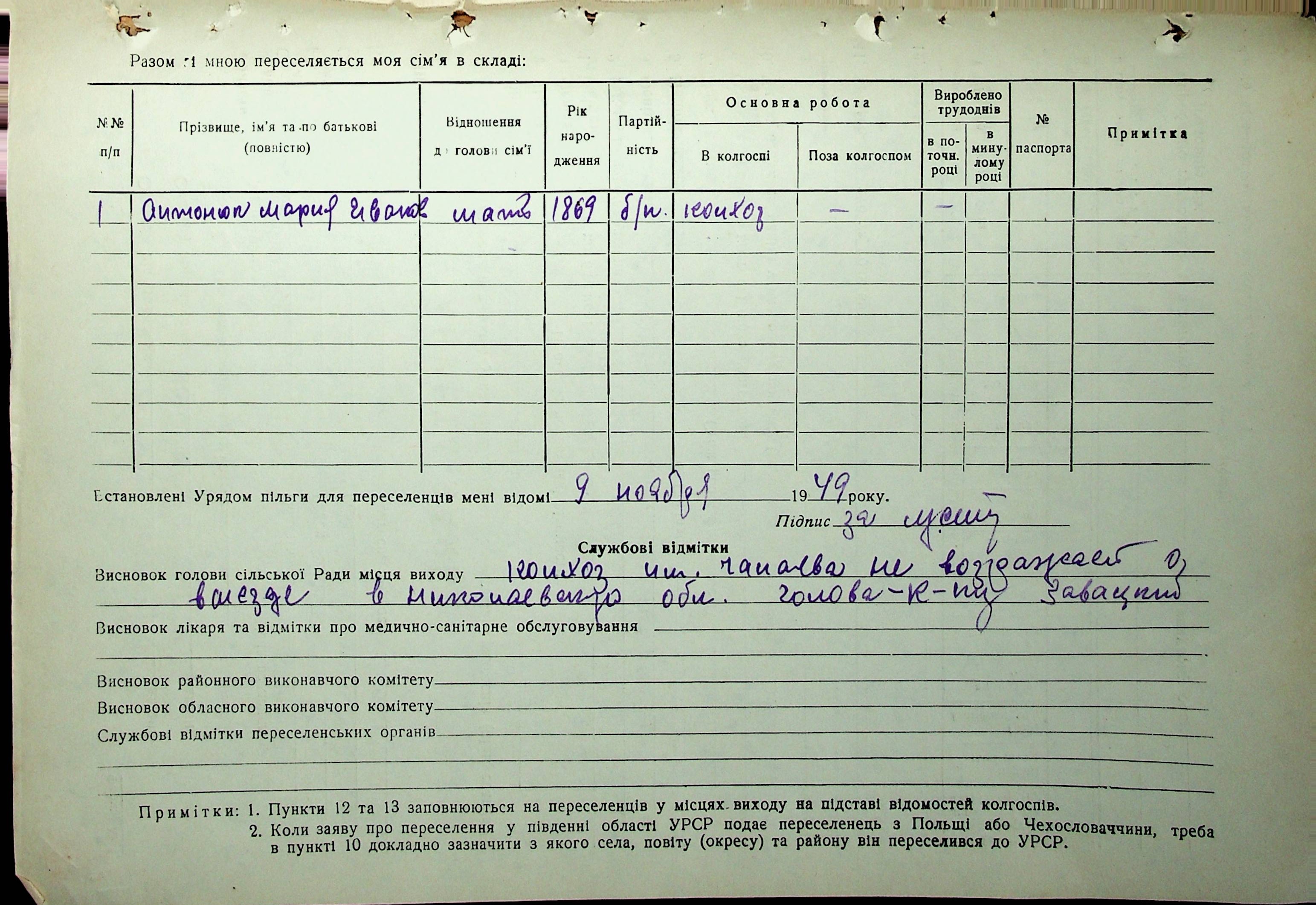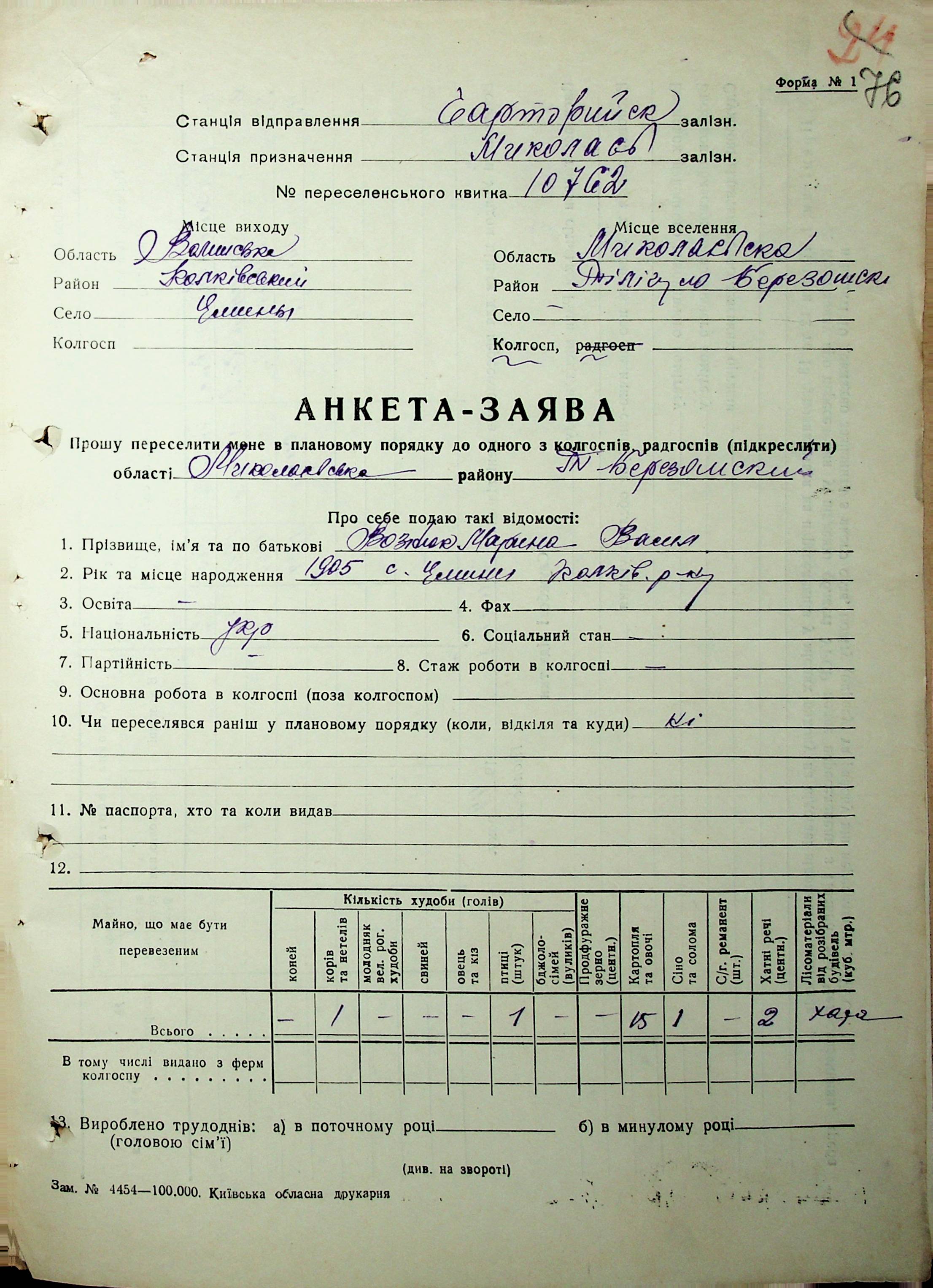 • • • • Справа № 35 “Анкети-заяви про планове переселення сімей із Вінницької та Волинської областей до Миколаївської області”