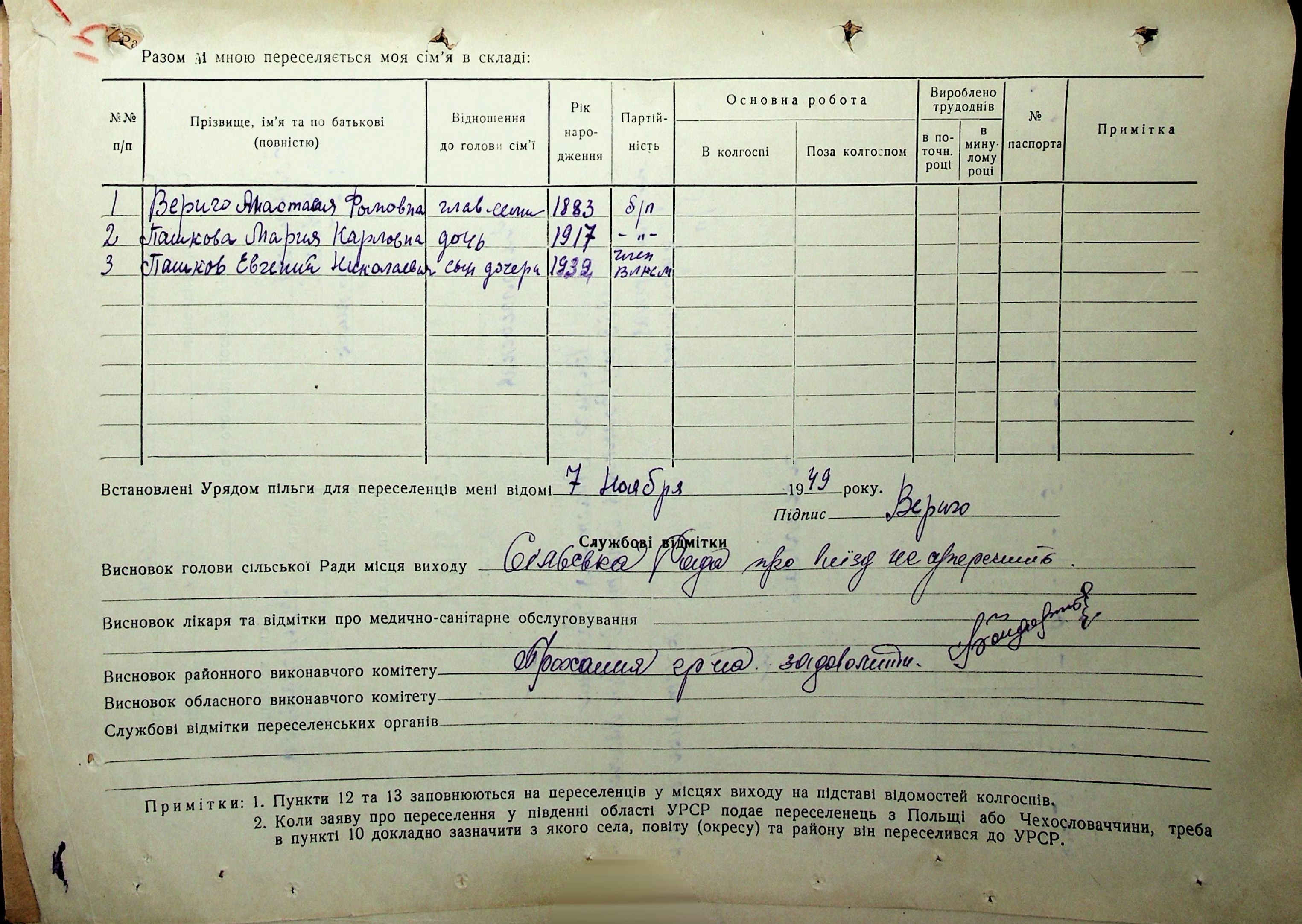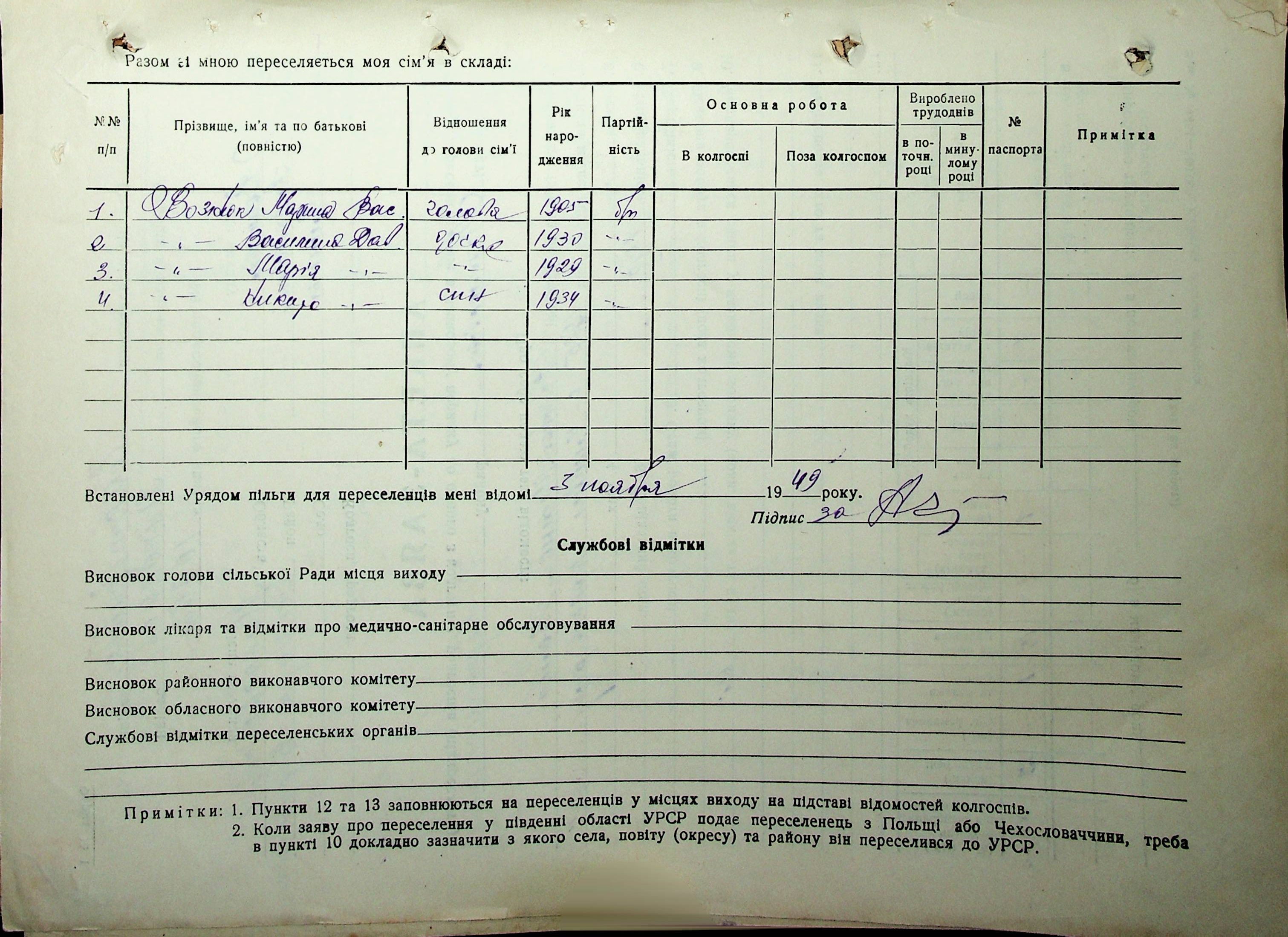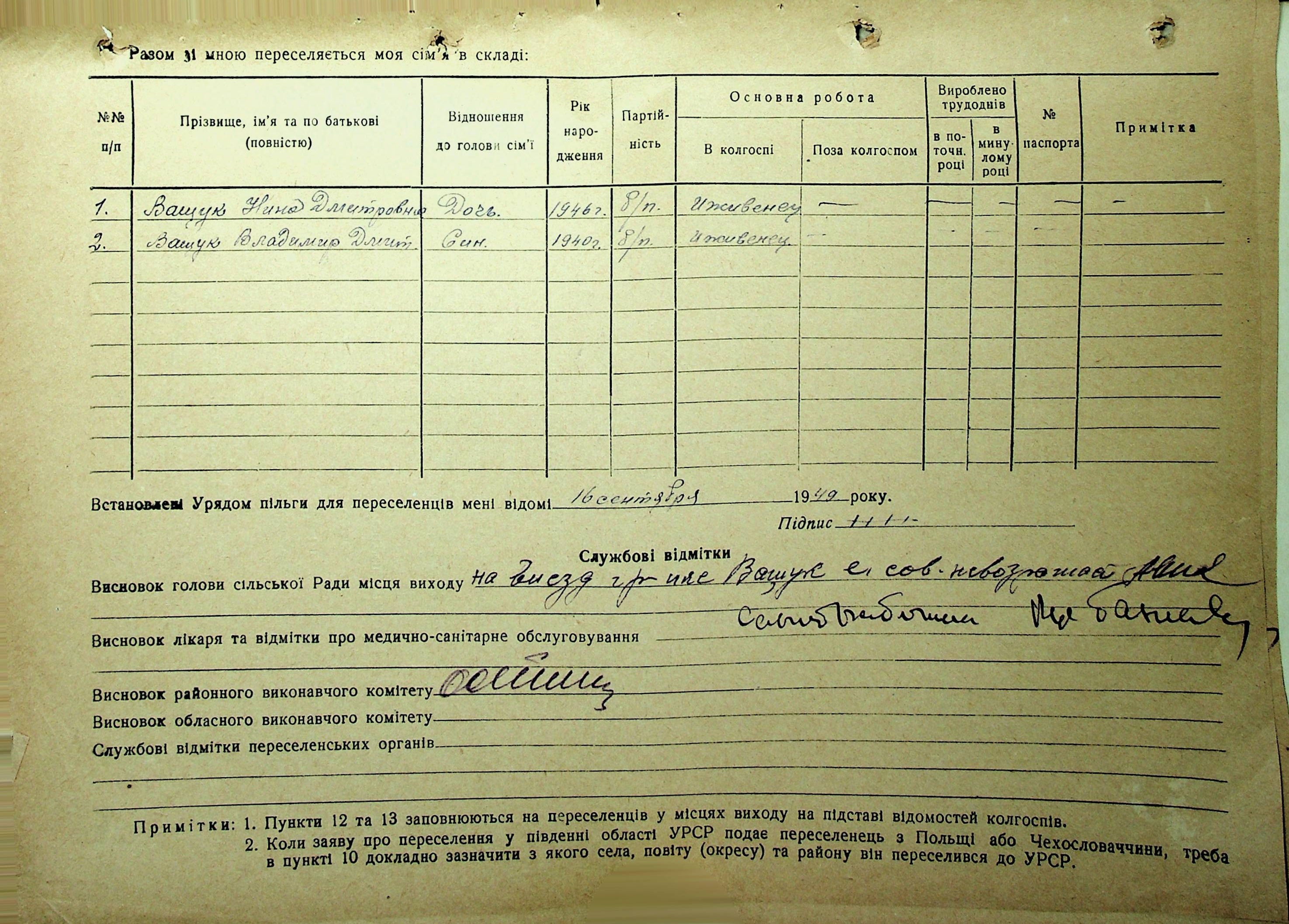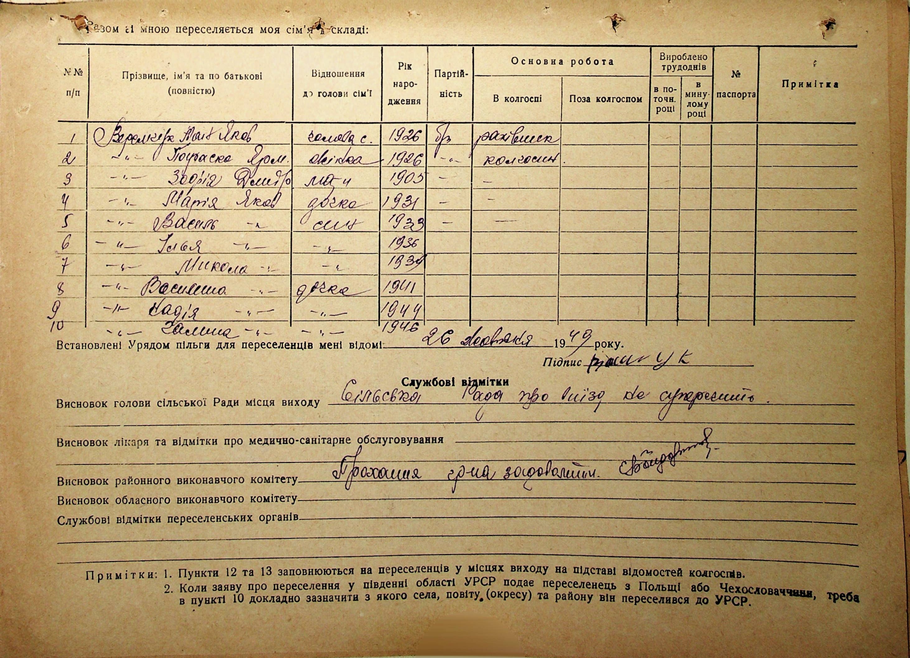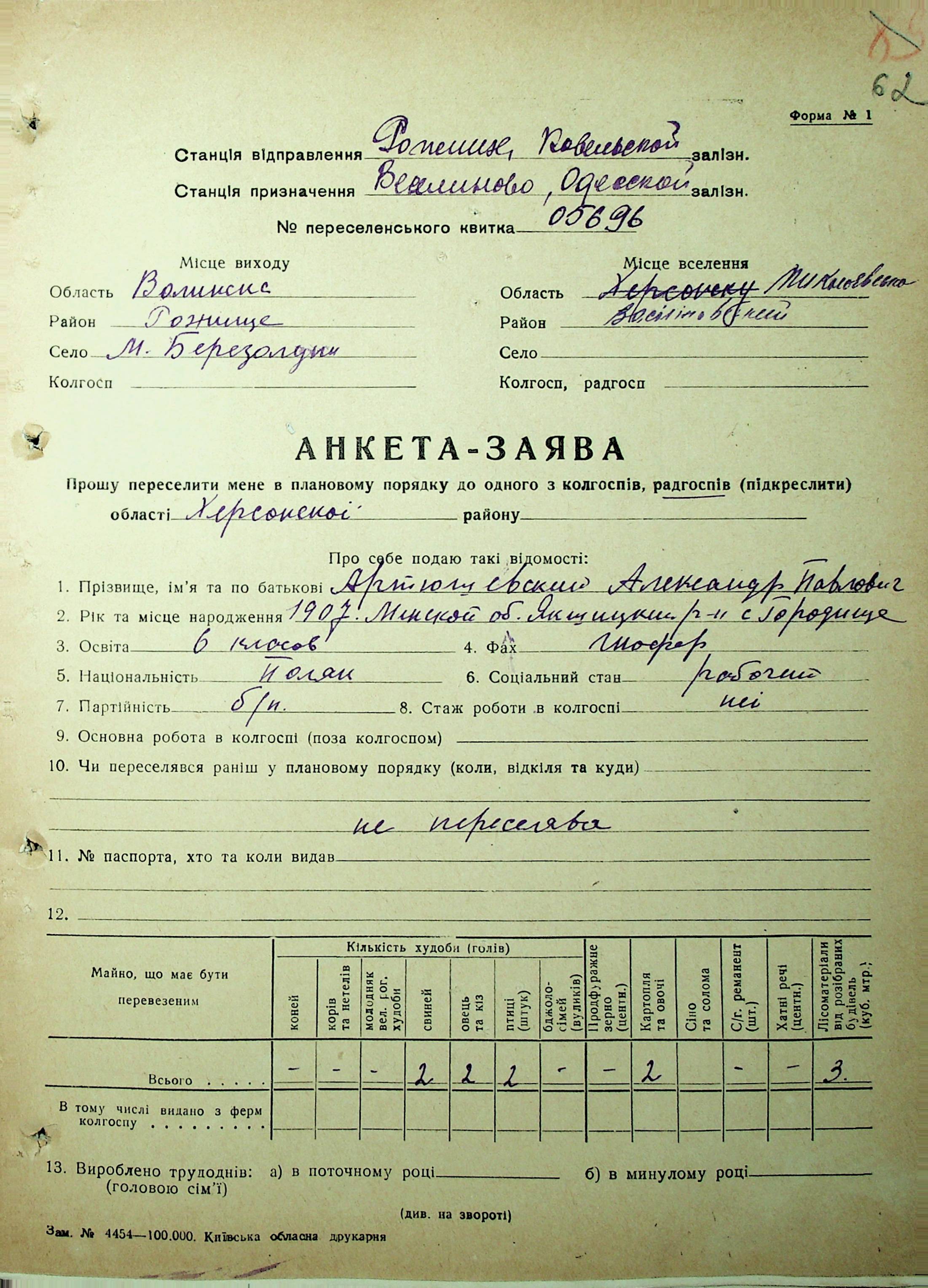 • • • • Справа № 35 “Анкети-заяви про планове переселення сімей із Вінницької та Волинської областей до Миколаївської області”