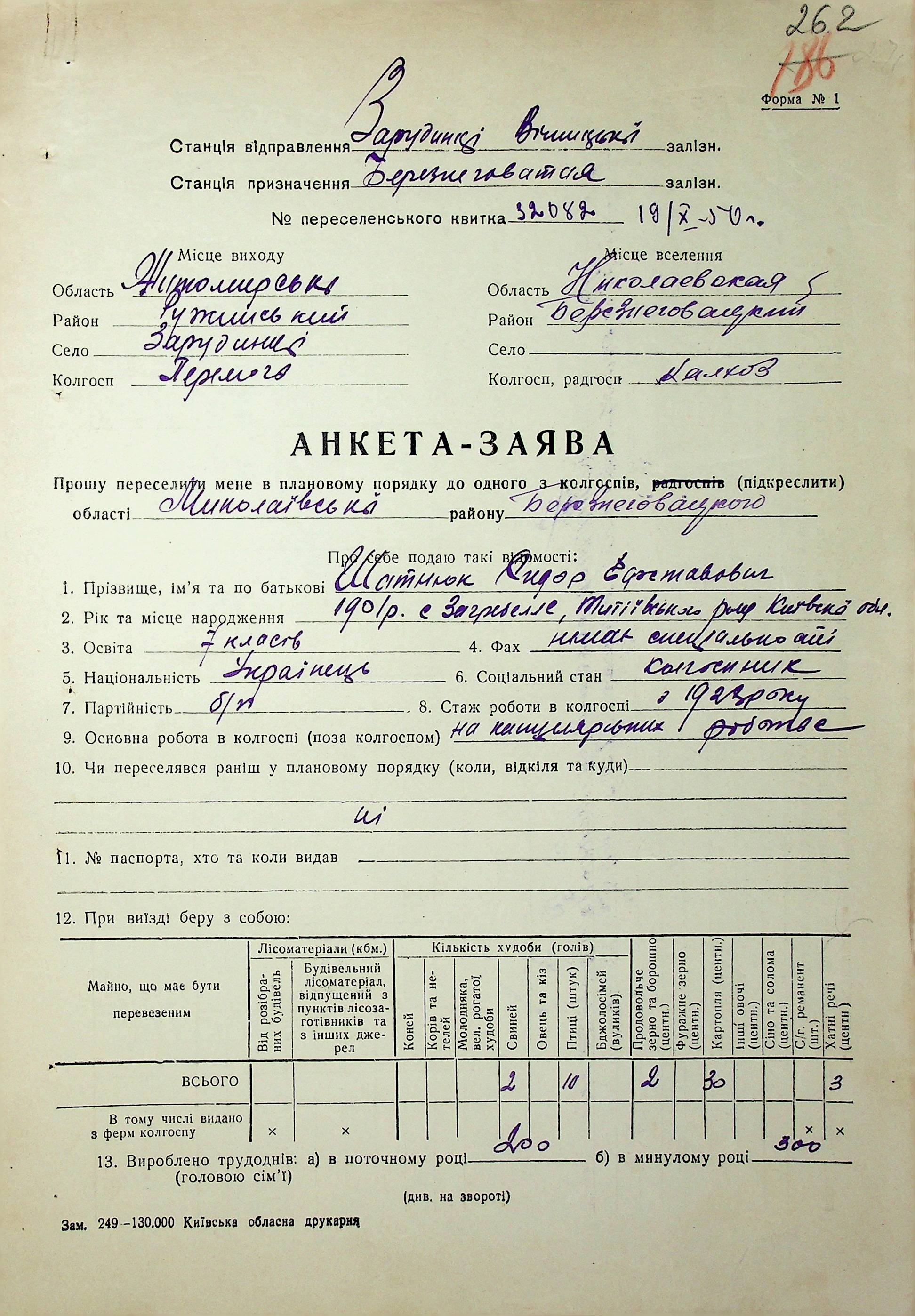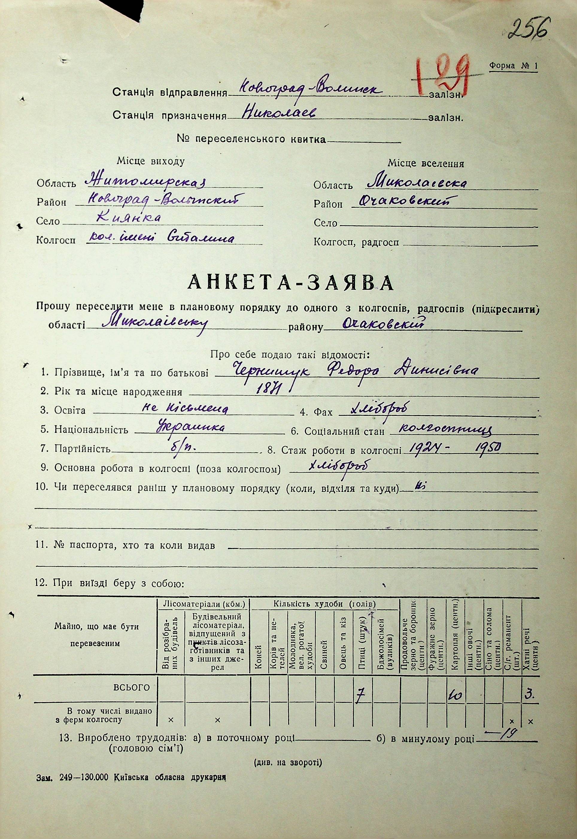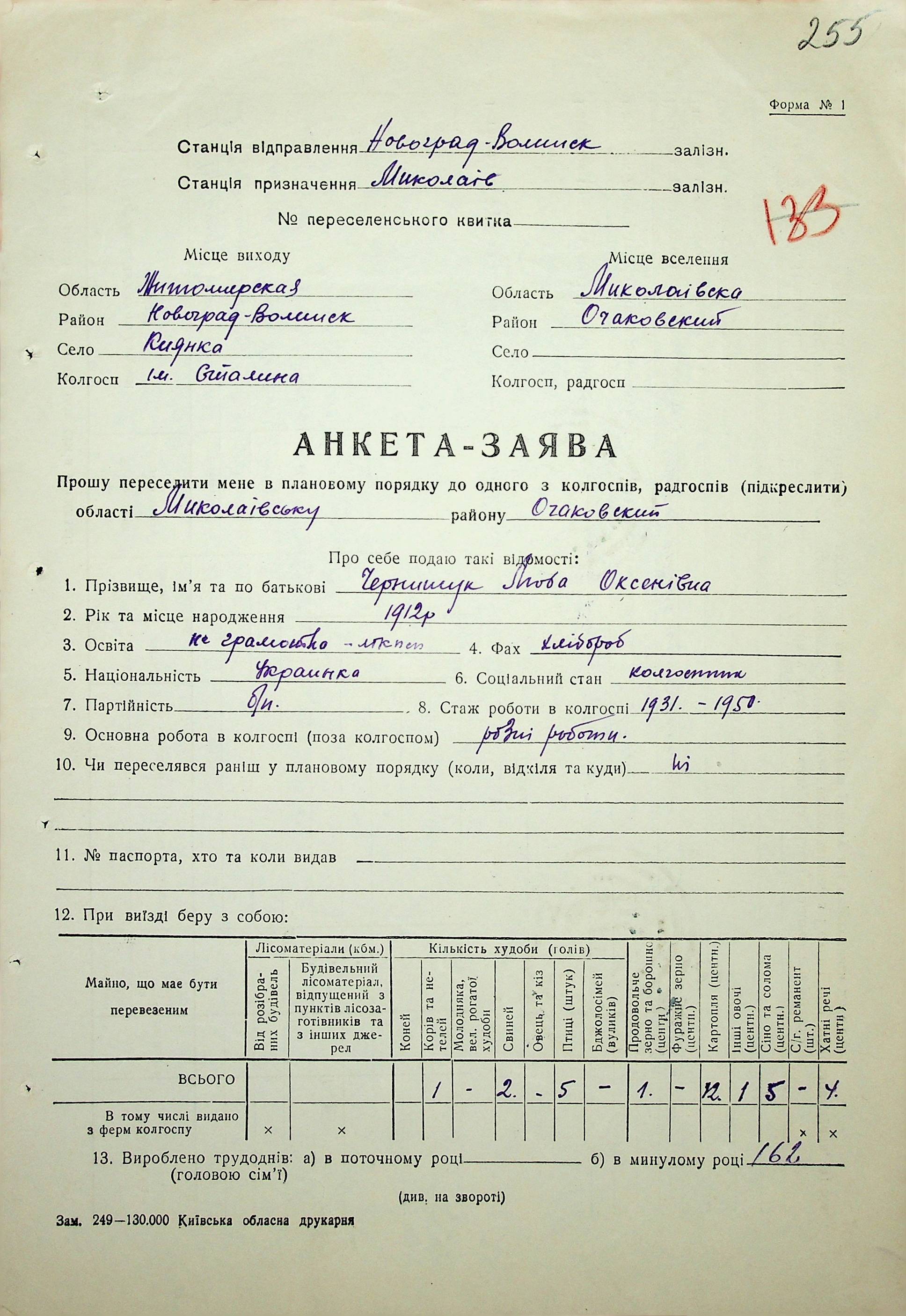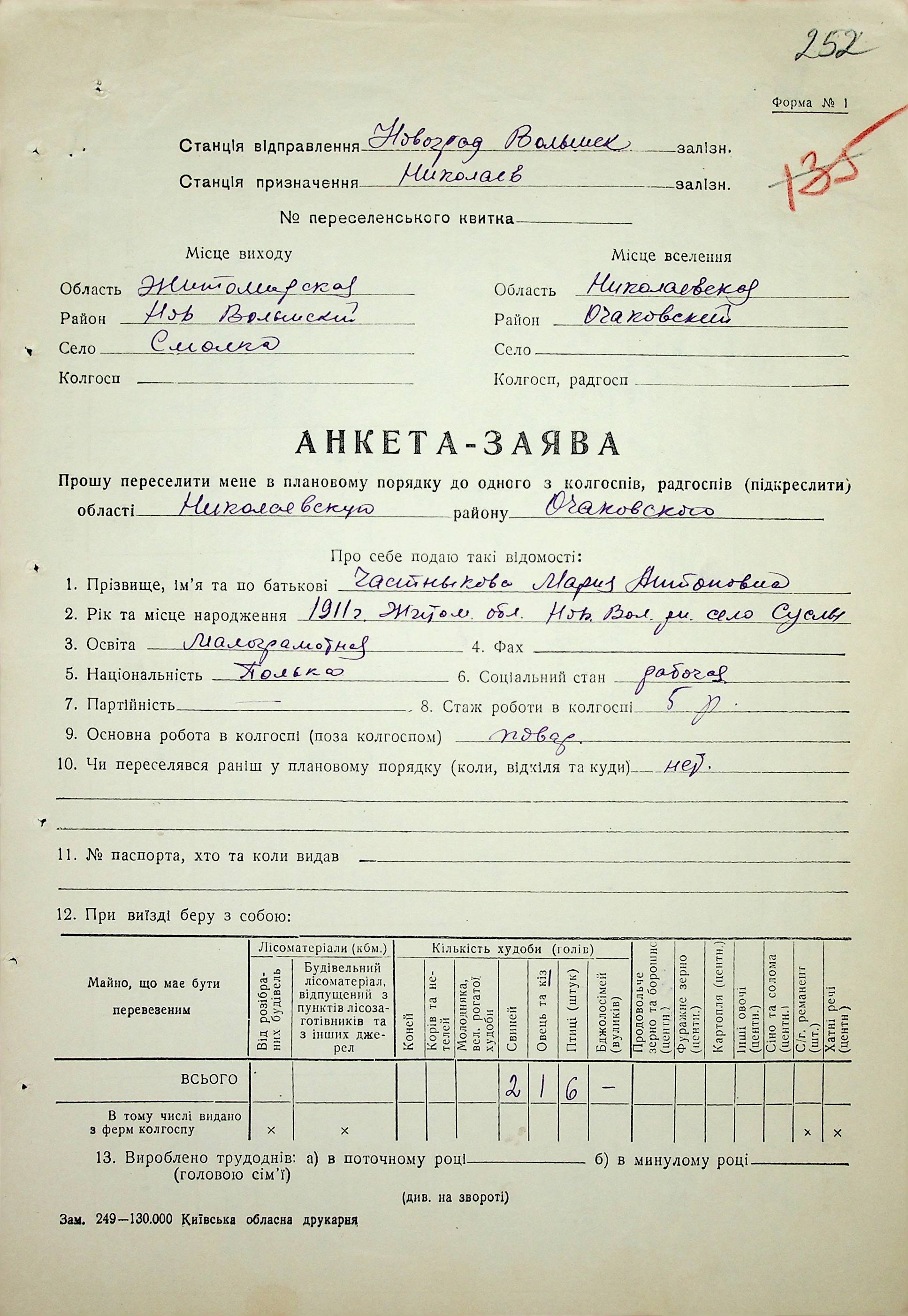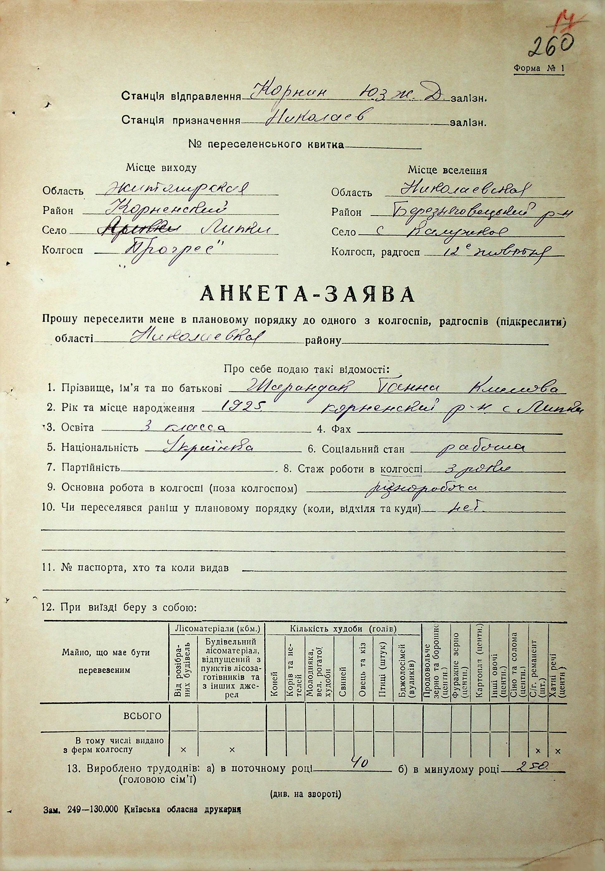 • • • • Справа № 37 “Анкети-заяви про планове переселення сімей з Житомирської до Миколаївської області, прізвища з літери «М» по літеру «Я»”