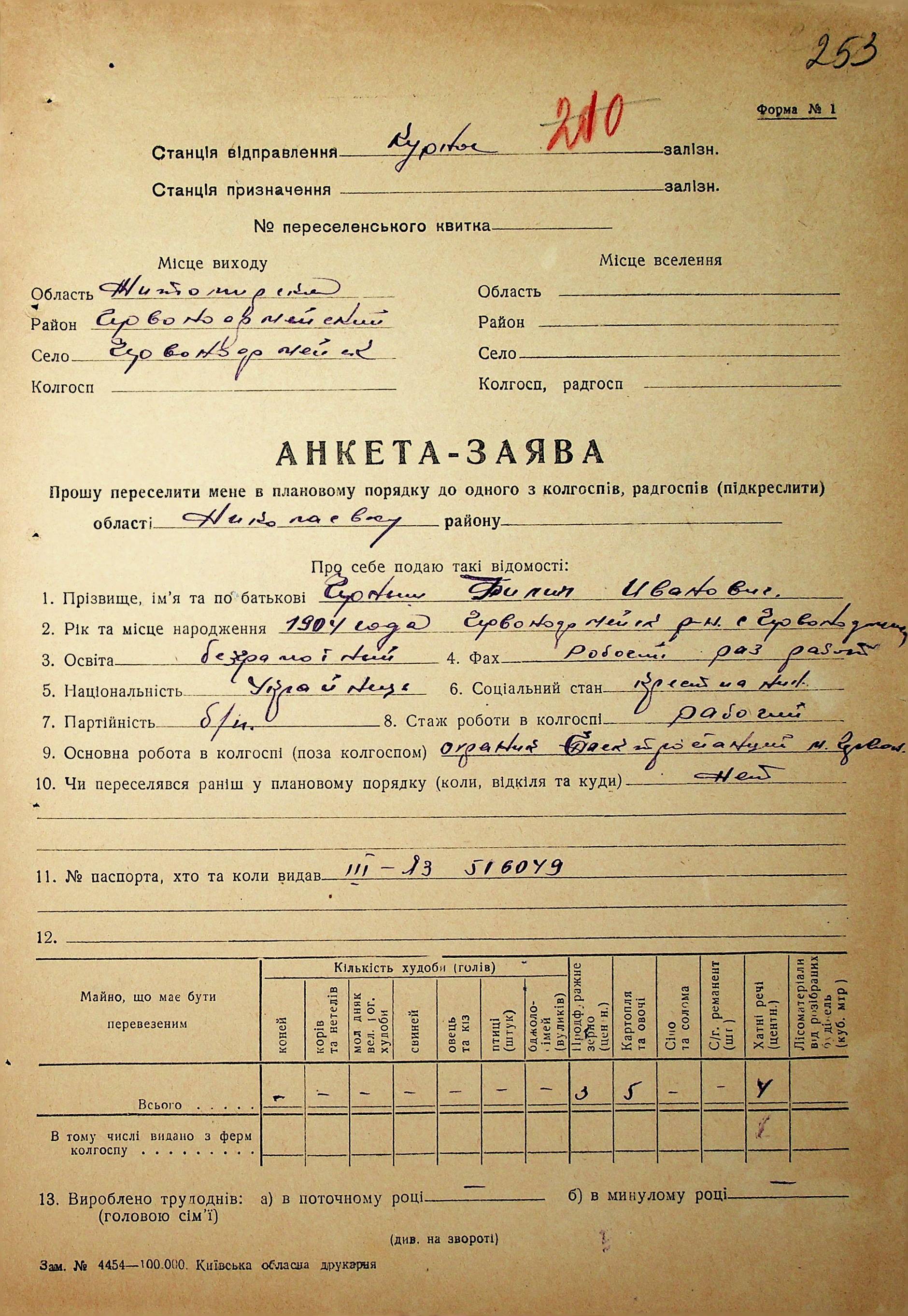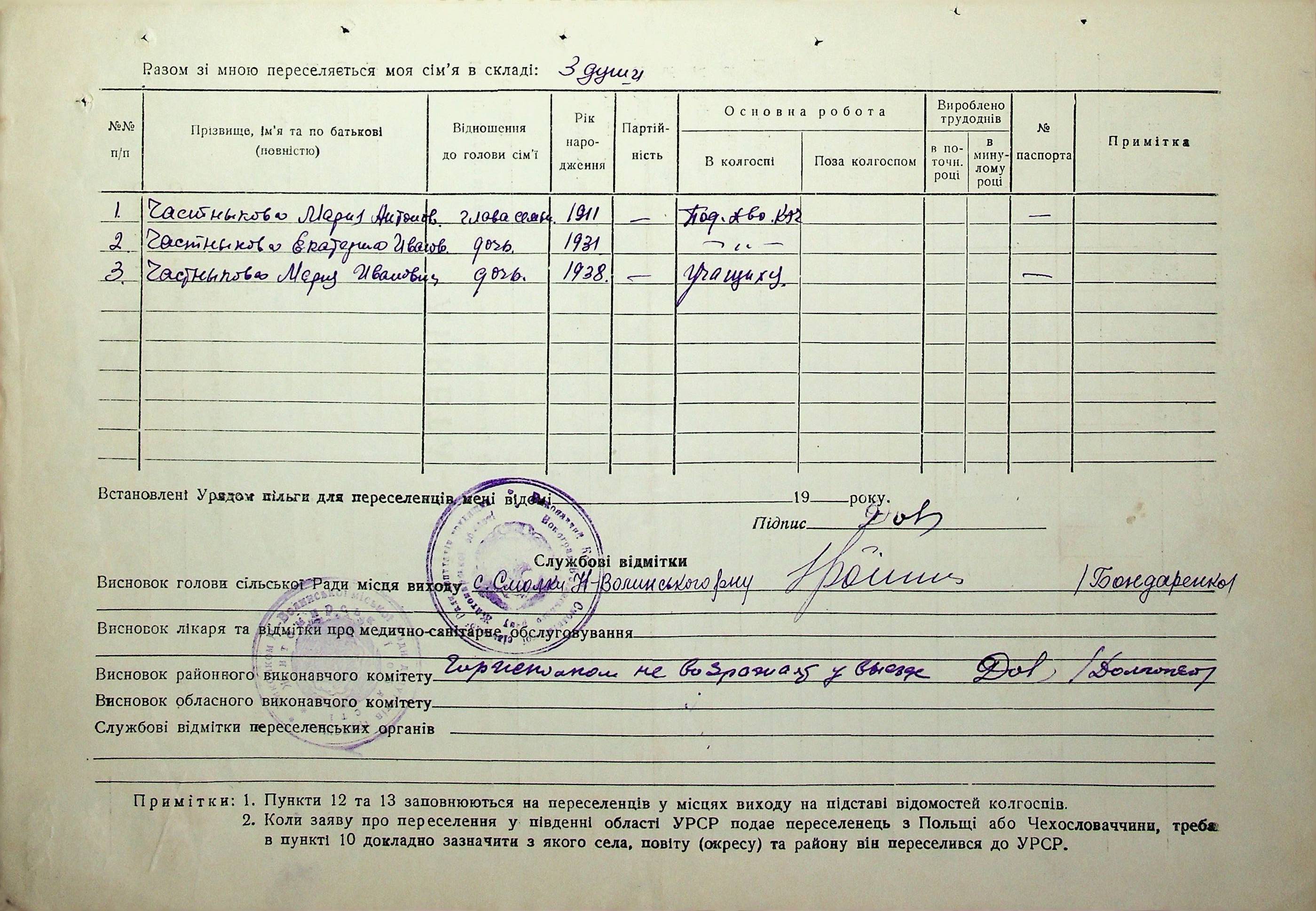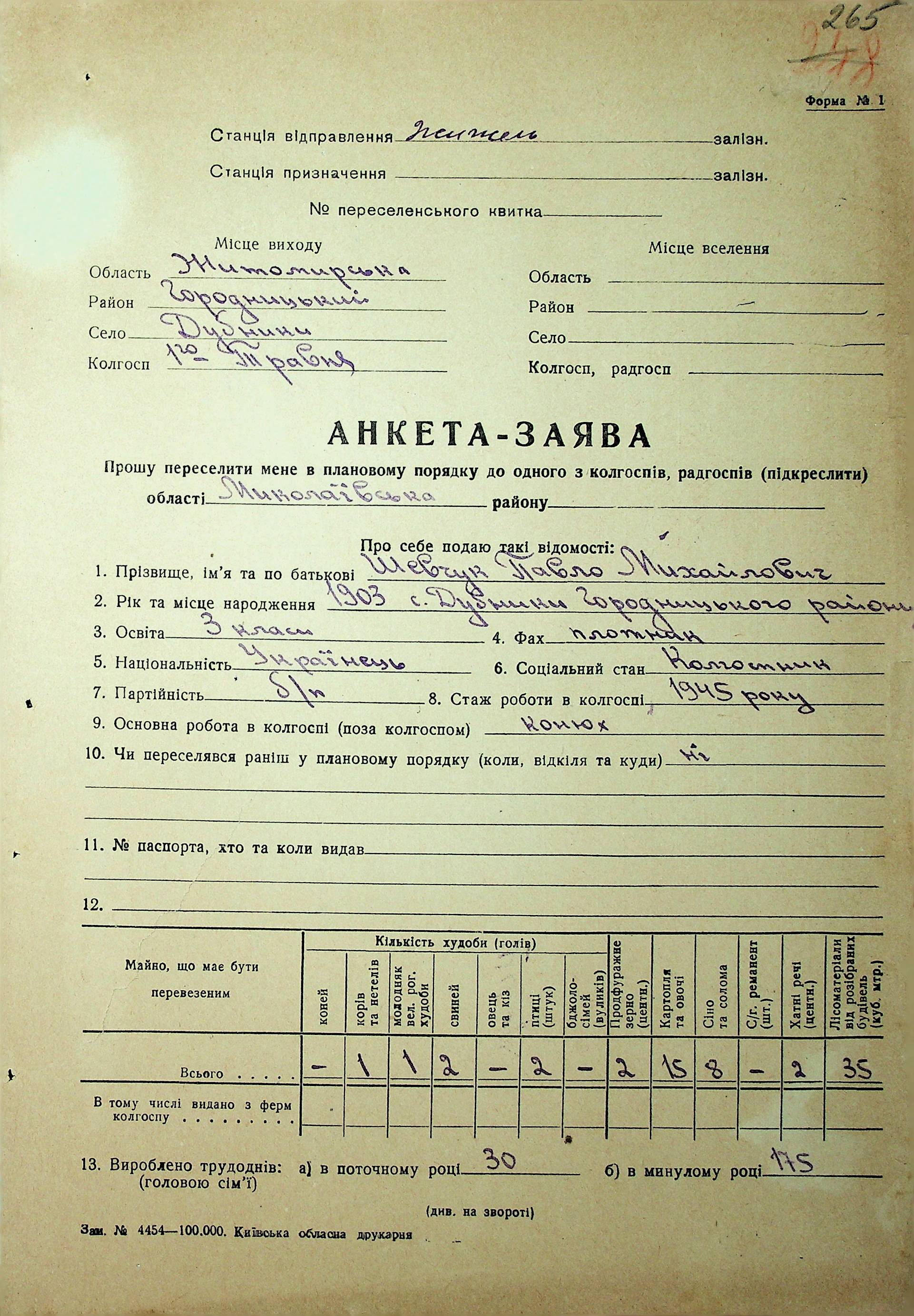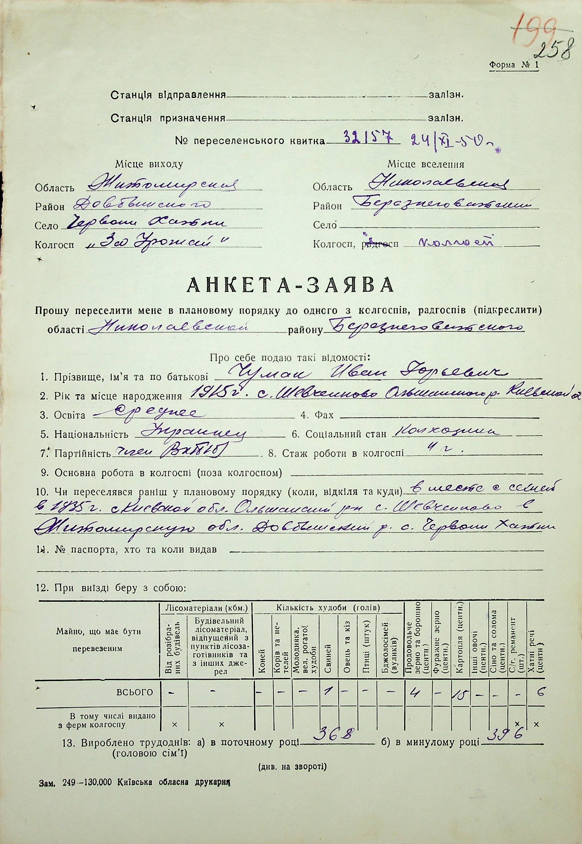 • • • • Справа № 37 “Анкети-заяви про планове переселення сімей з Житомирської до Миколаївської області, прізвища з літери «М» по літеру «Я»”