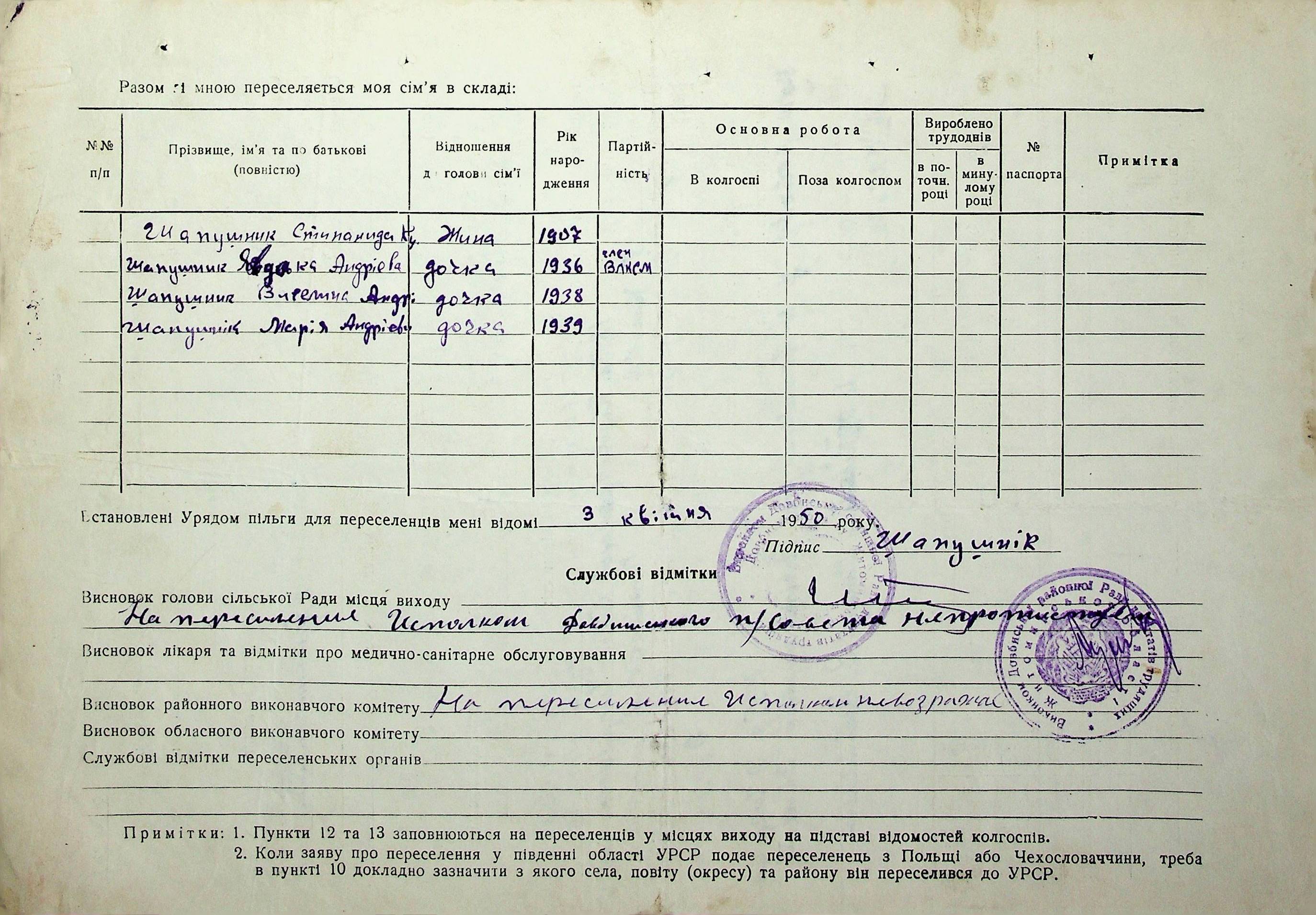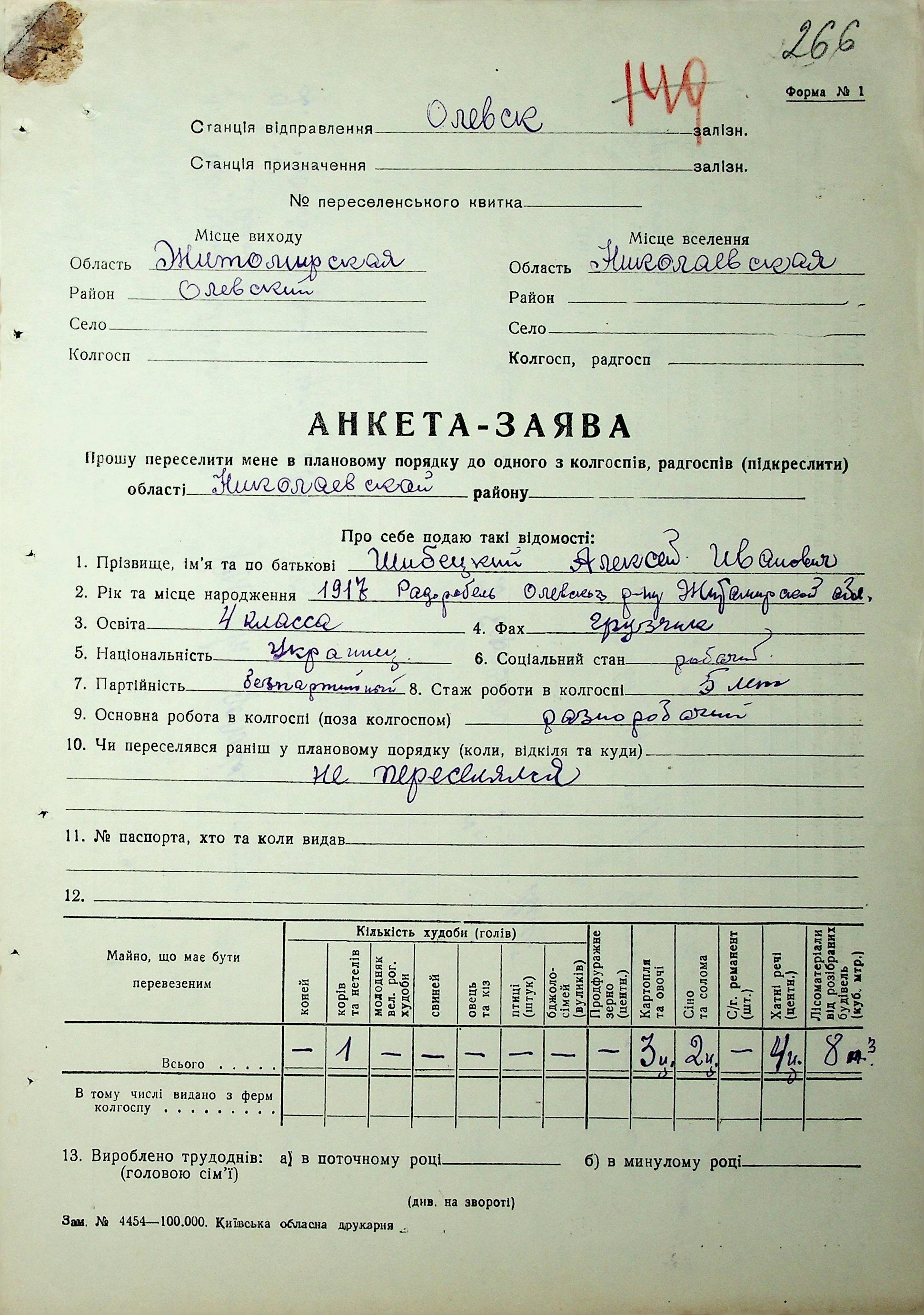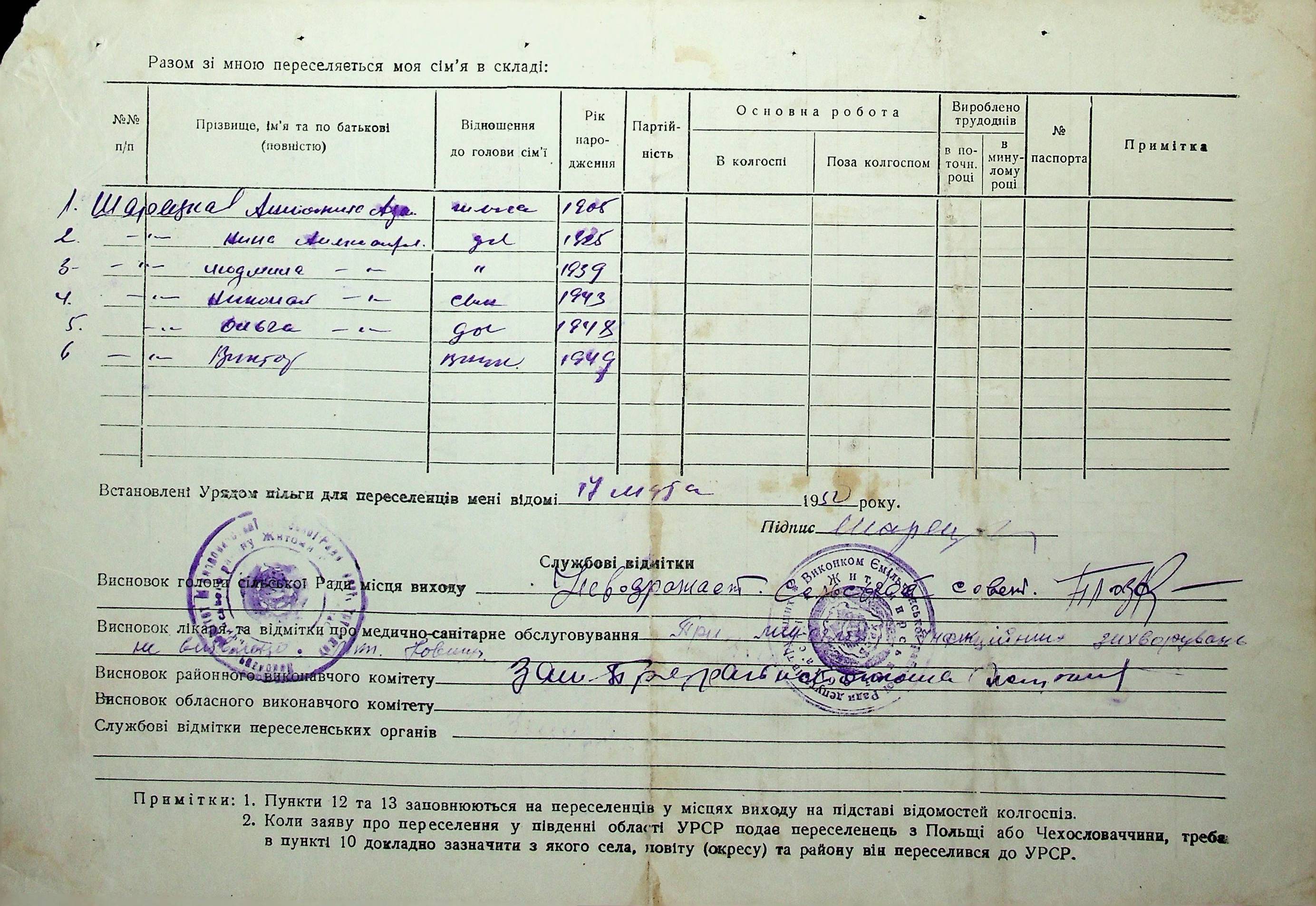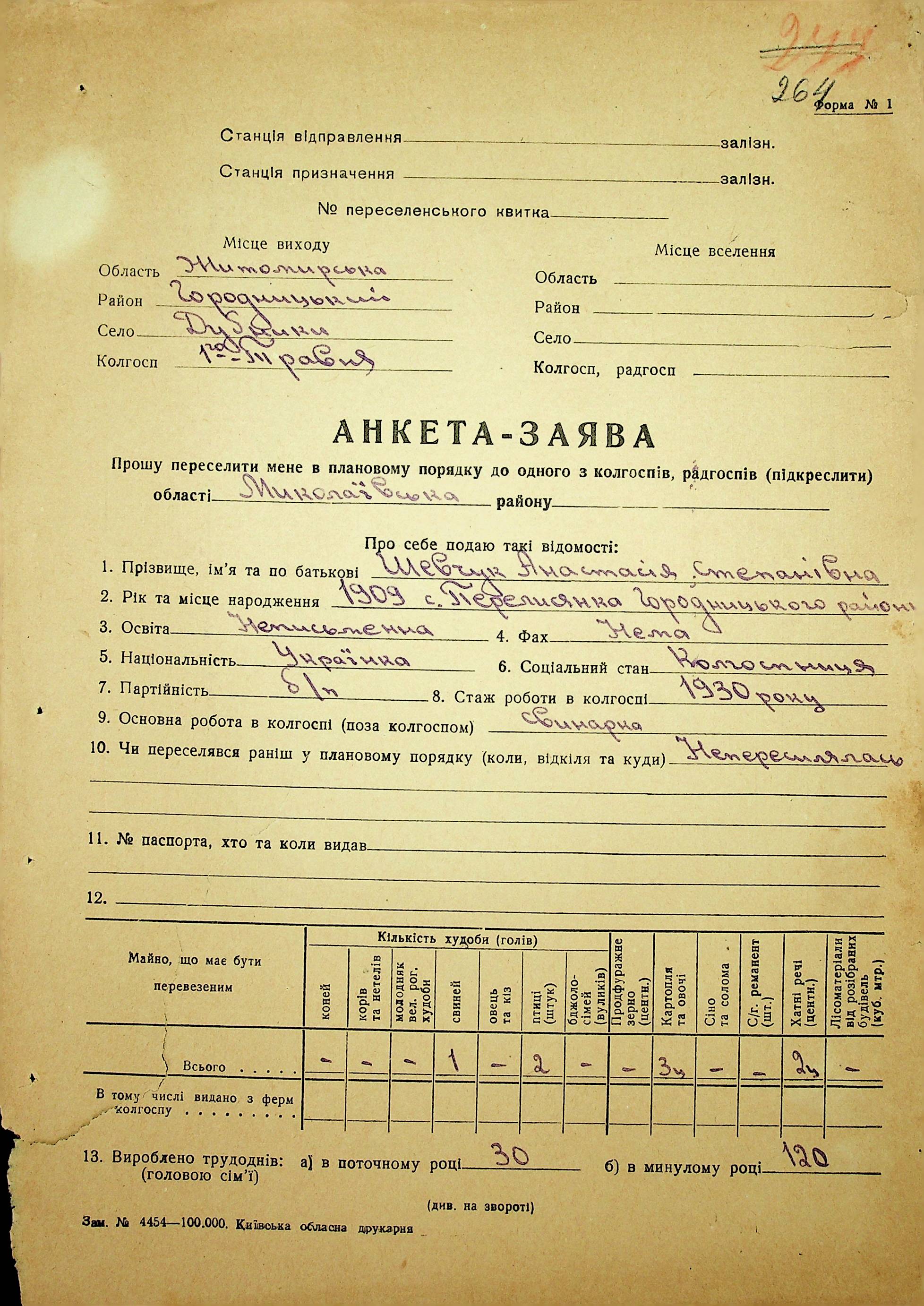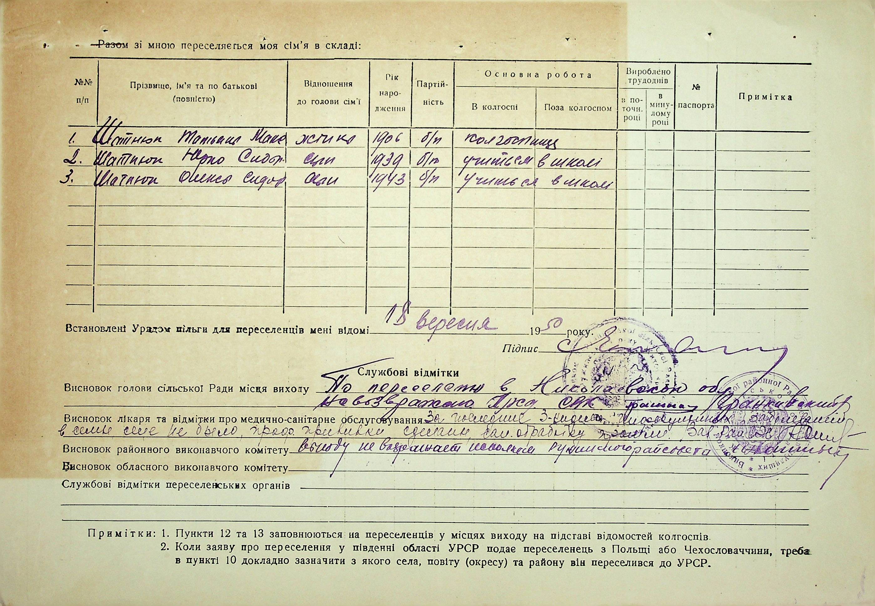 • • • • Справа № 37 “Анкети-заяви про планове переселення сімей з Житомирської до Миколаївської області, прізвища з літери «М» по літеру «Я»”