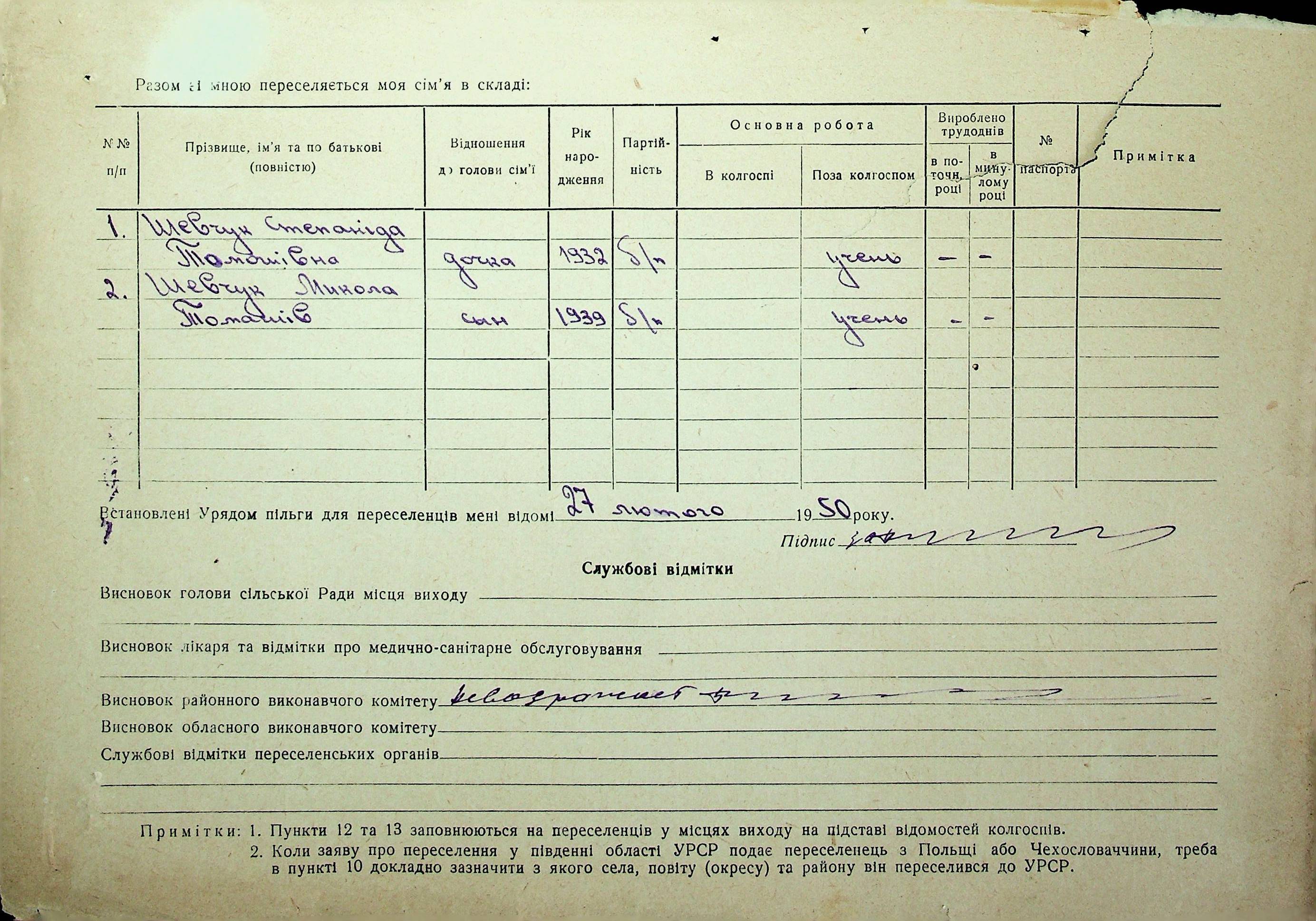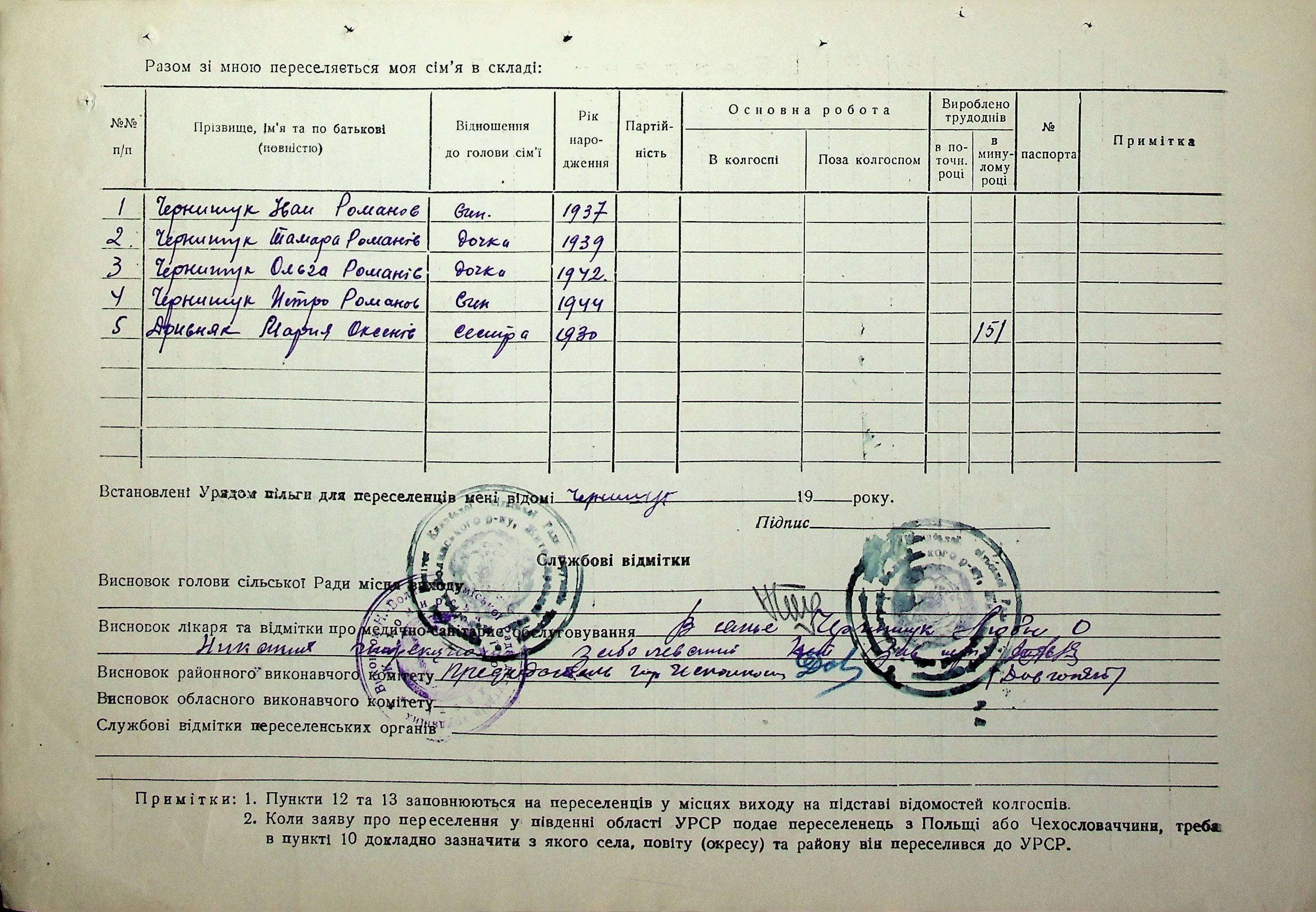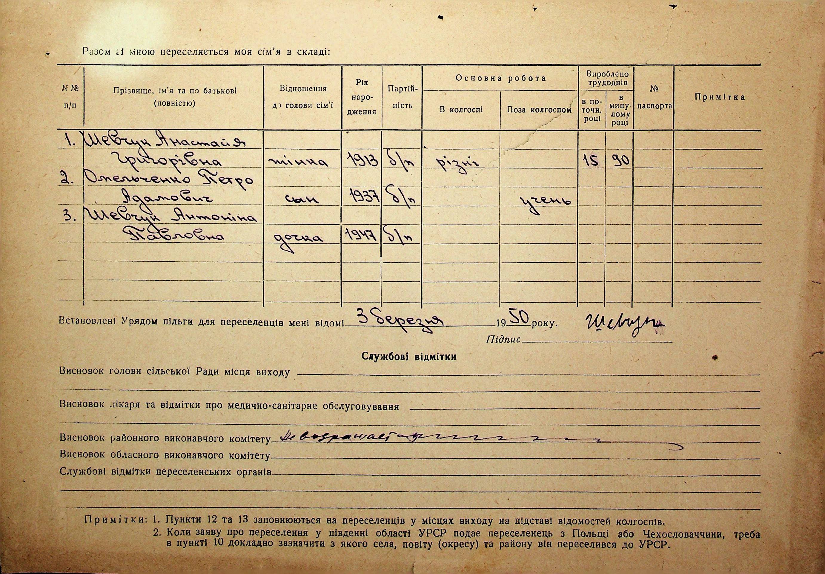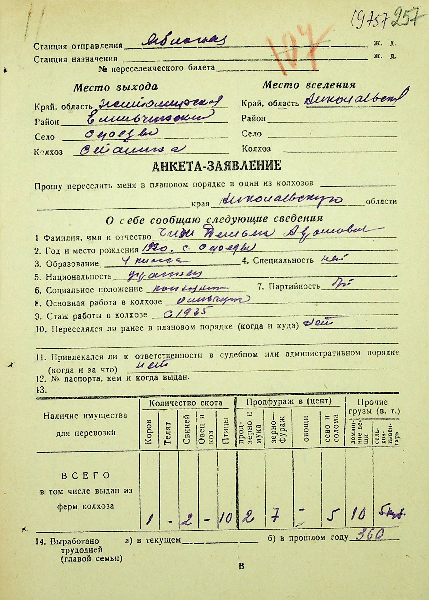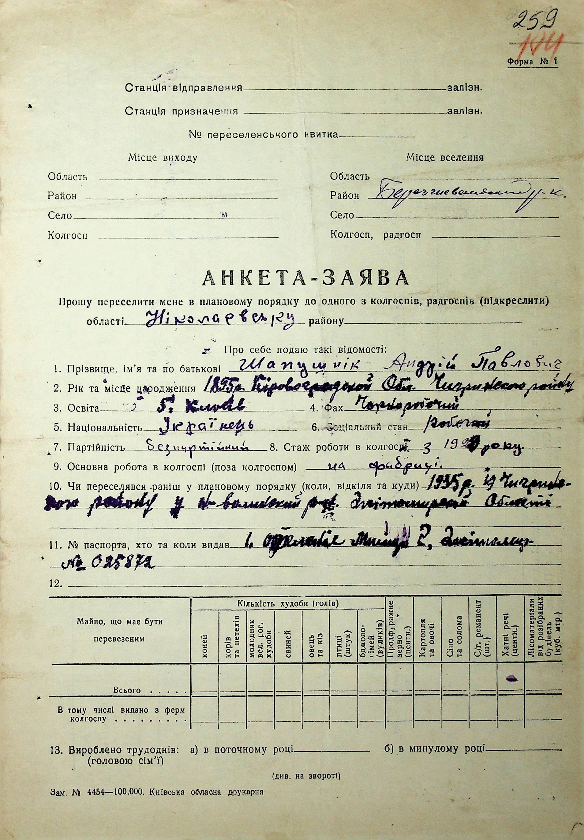 • • • • Справа № 37 “Анкети-заяви про планове переселення сімей з Житомирської до Миколаївської області, прізвища з літери «М» по літеру «Я»”