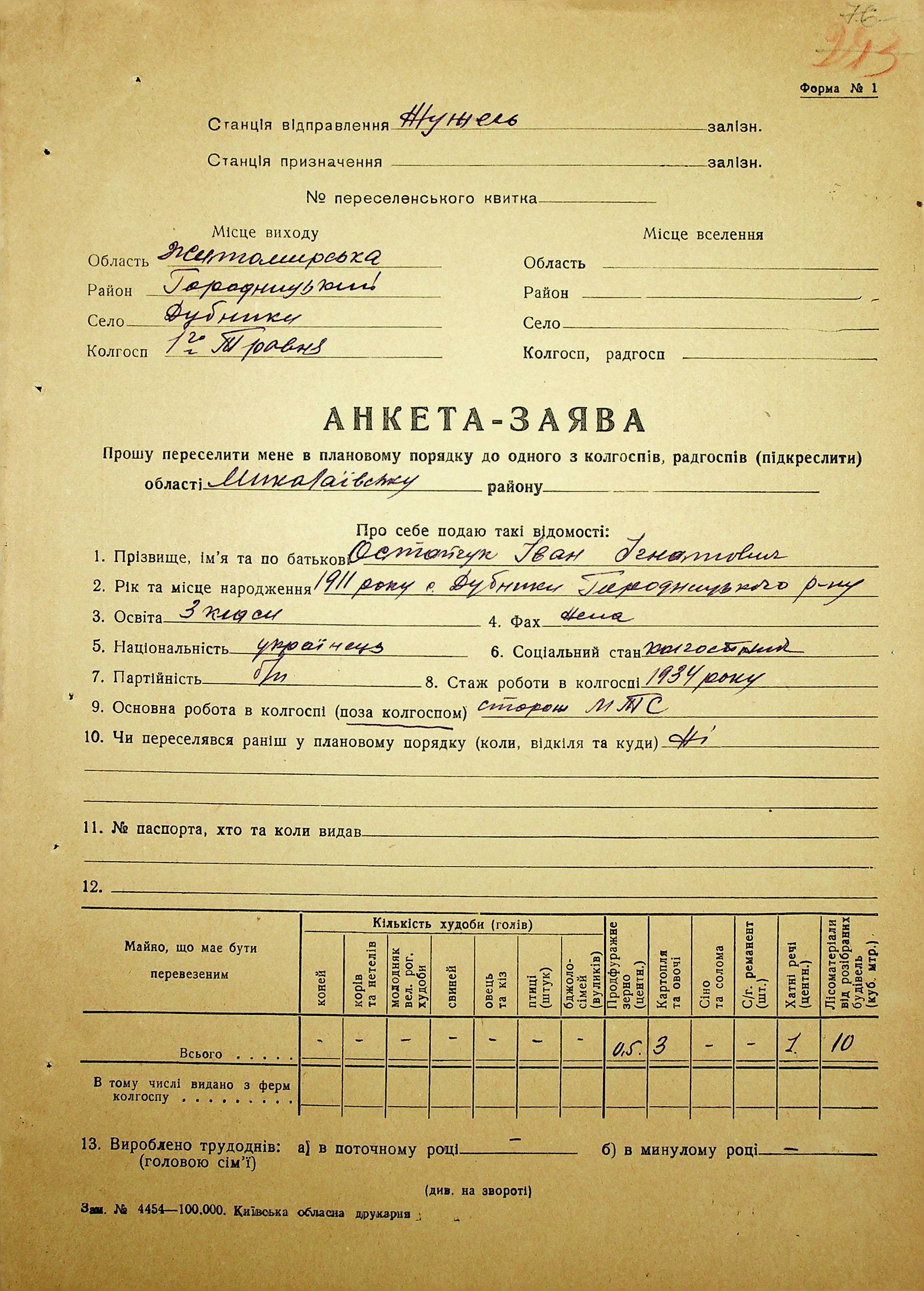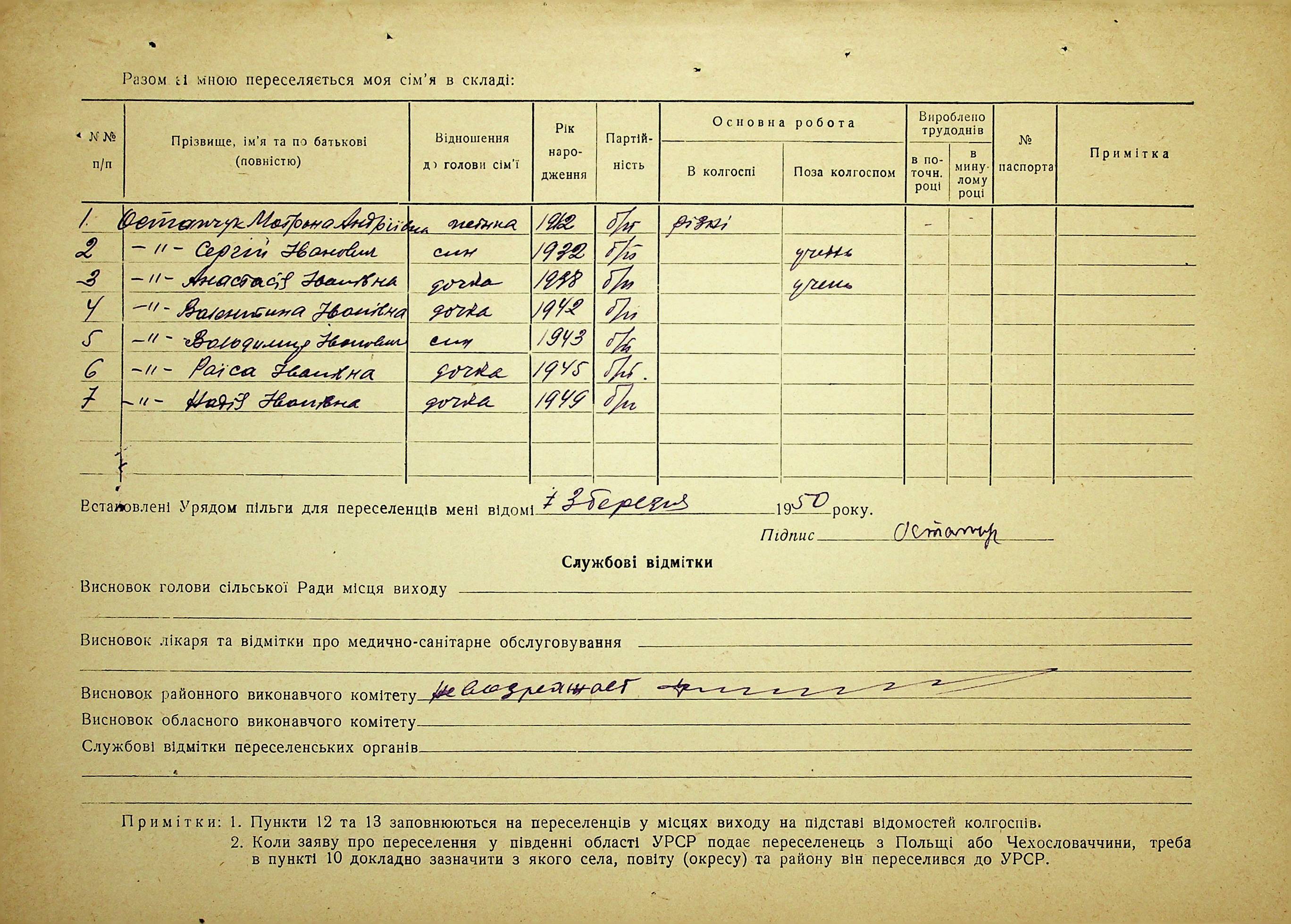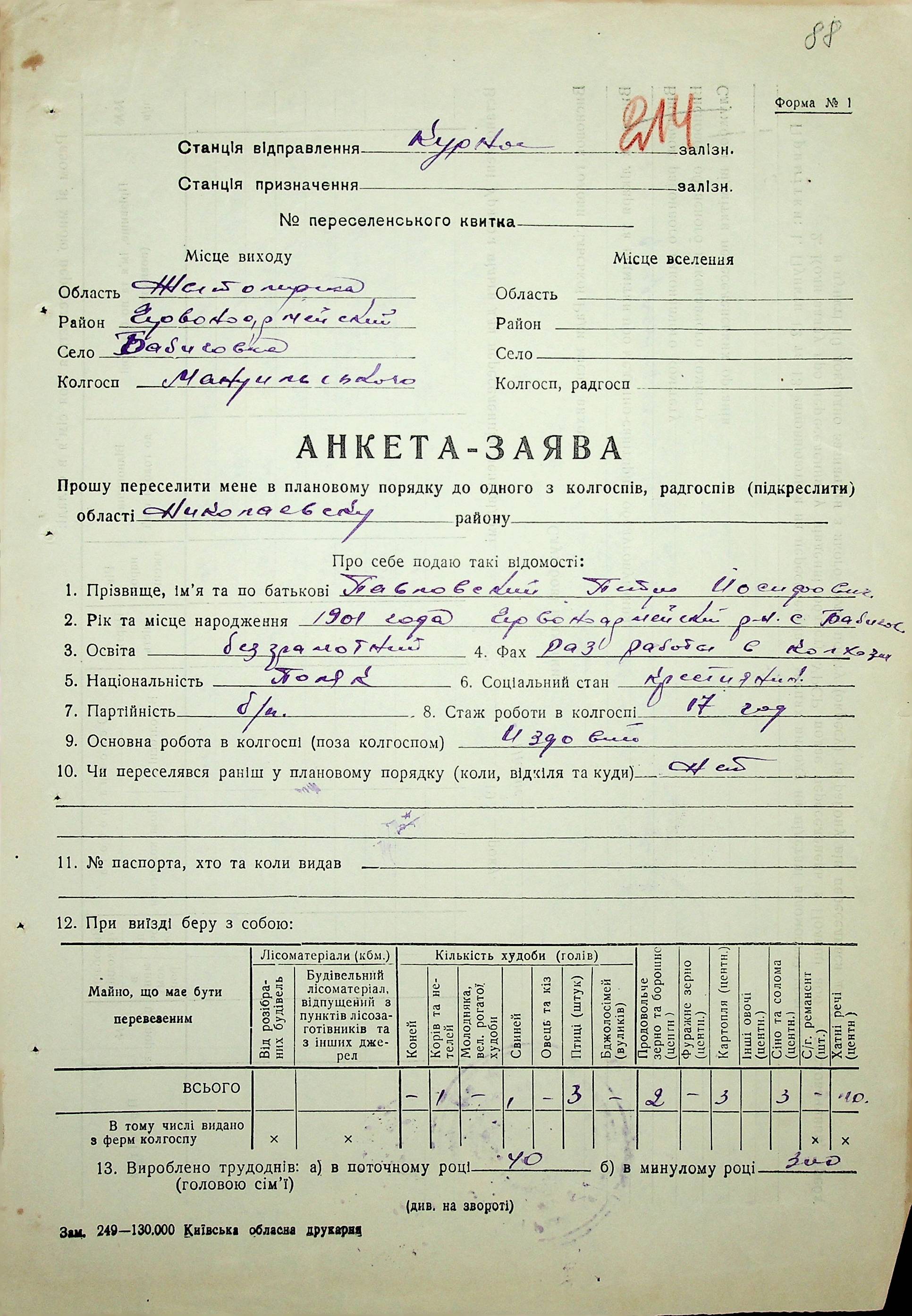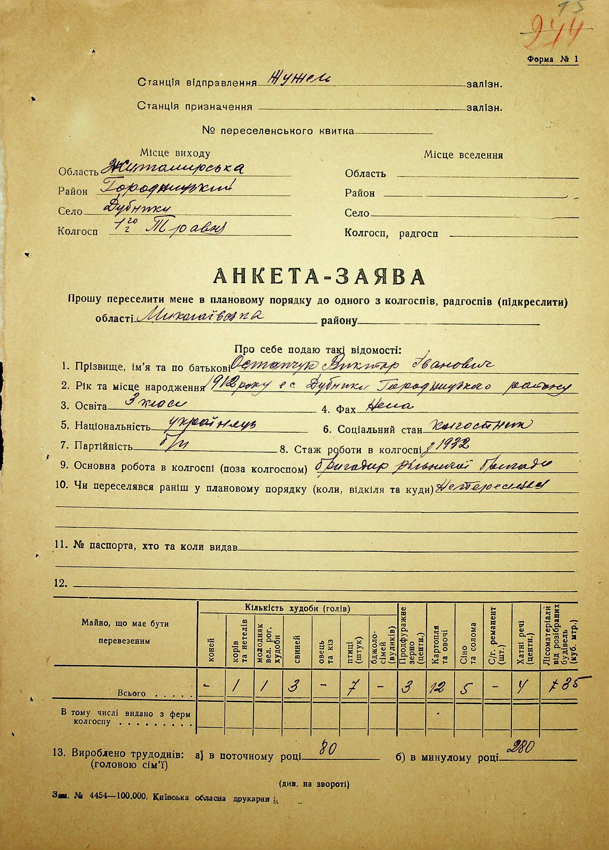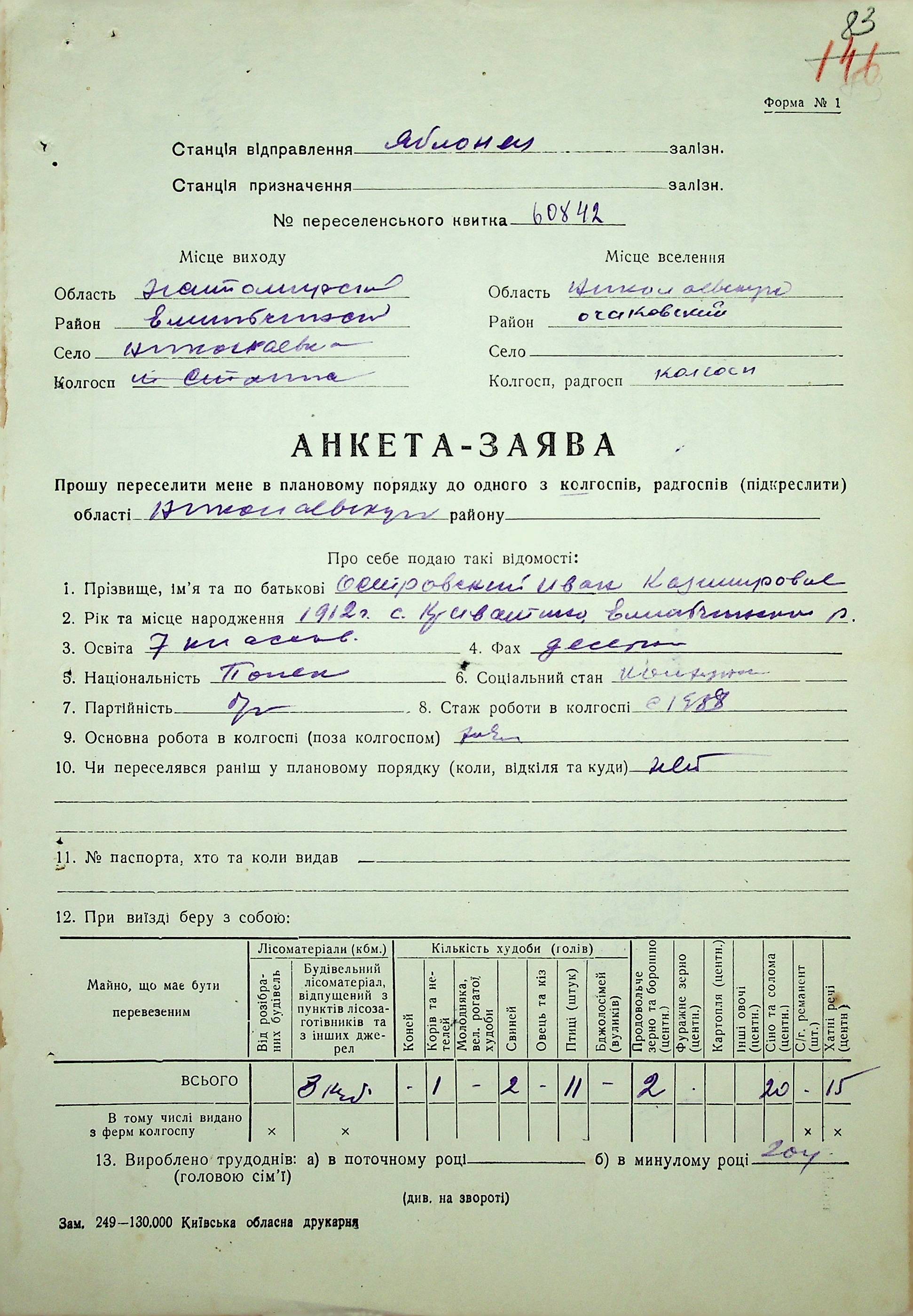 • • • • Справа № 37 “Анкети-заяви про планове переселення сімей з Житомирської до Миколаївської області, прізвища з літери «М» по літеру «Я»”