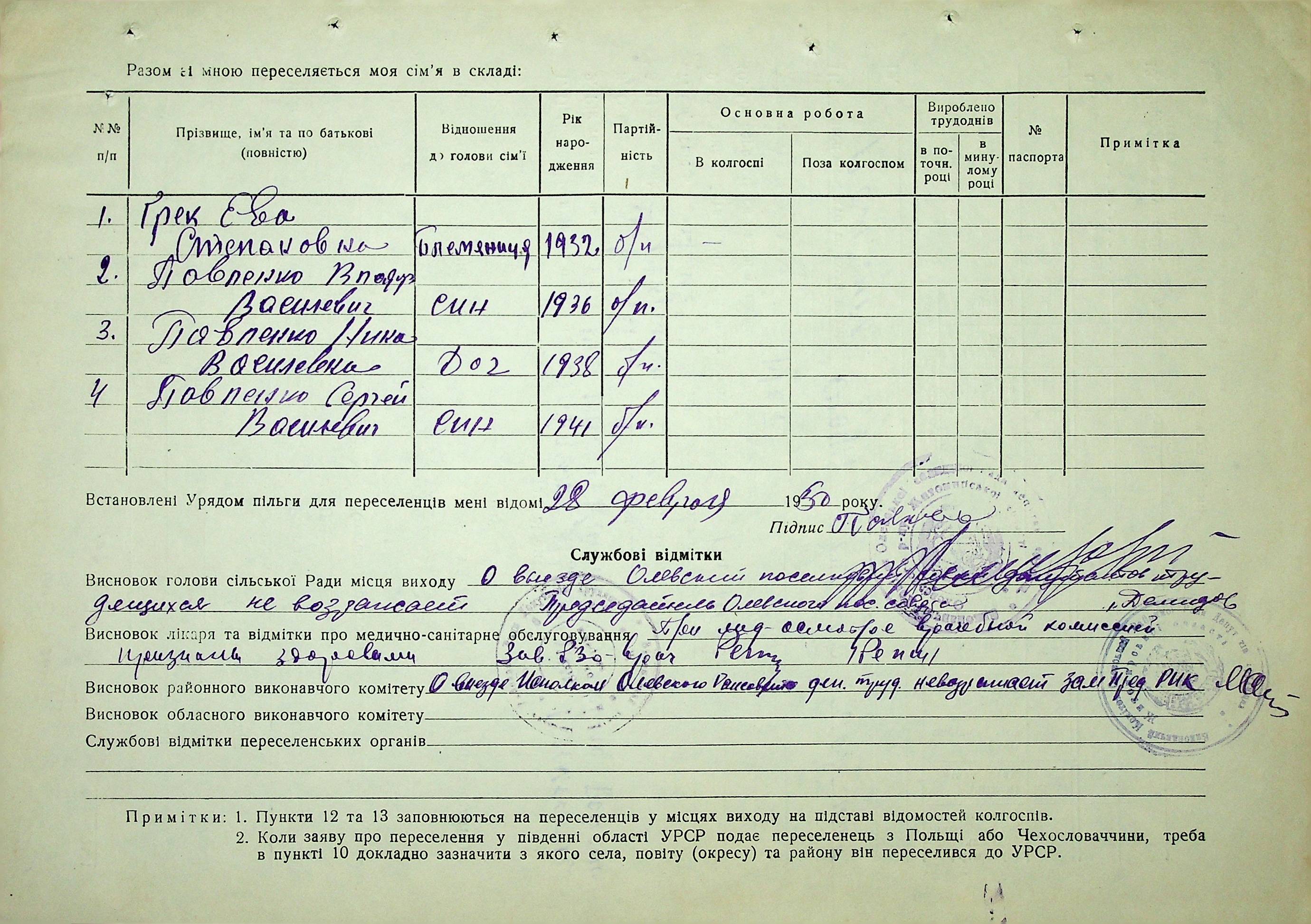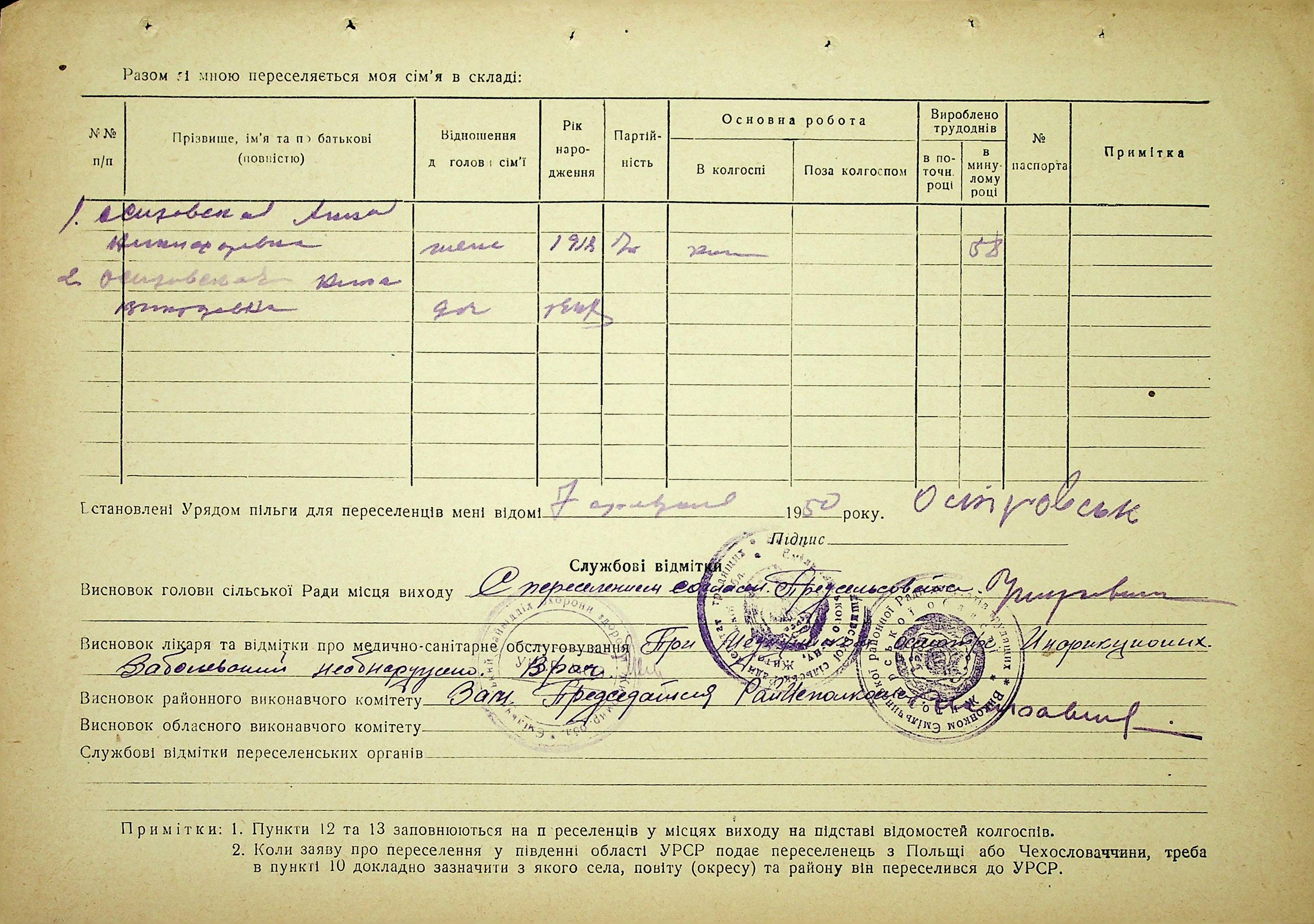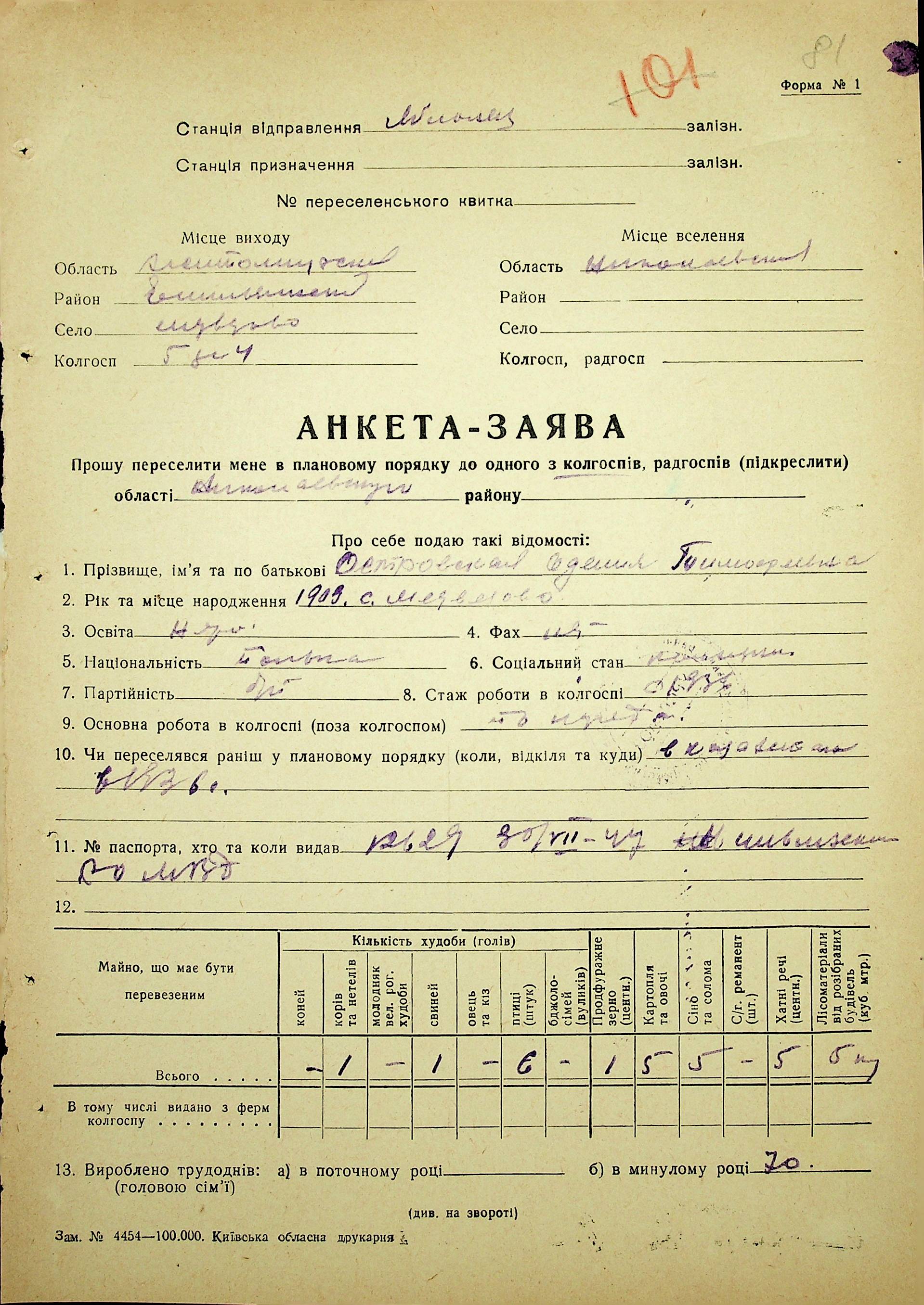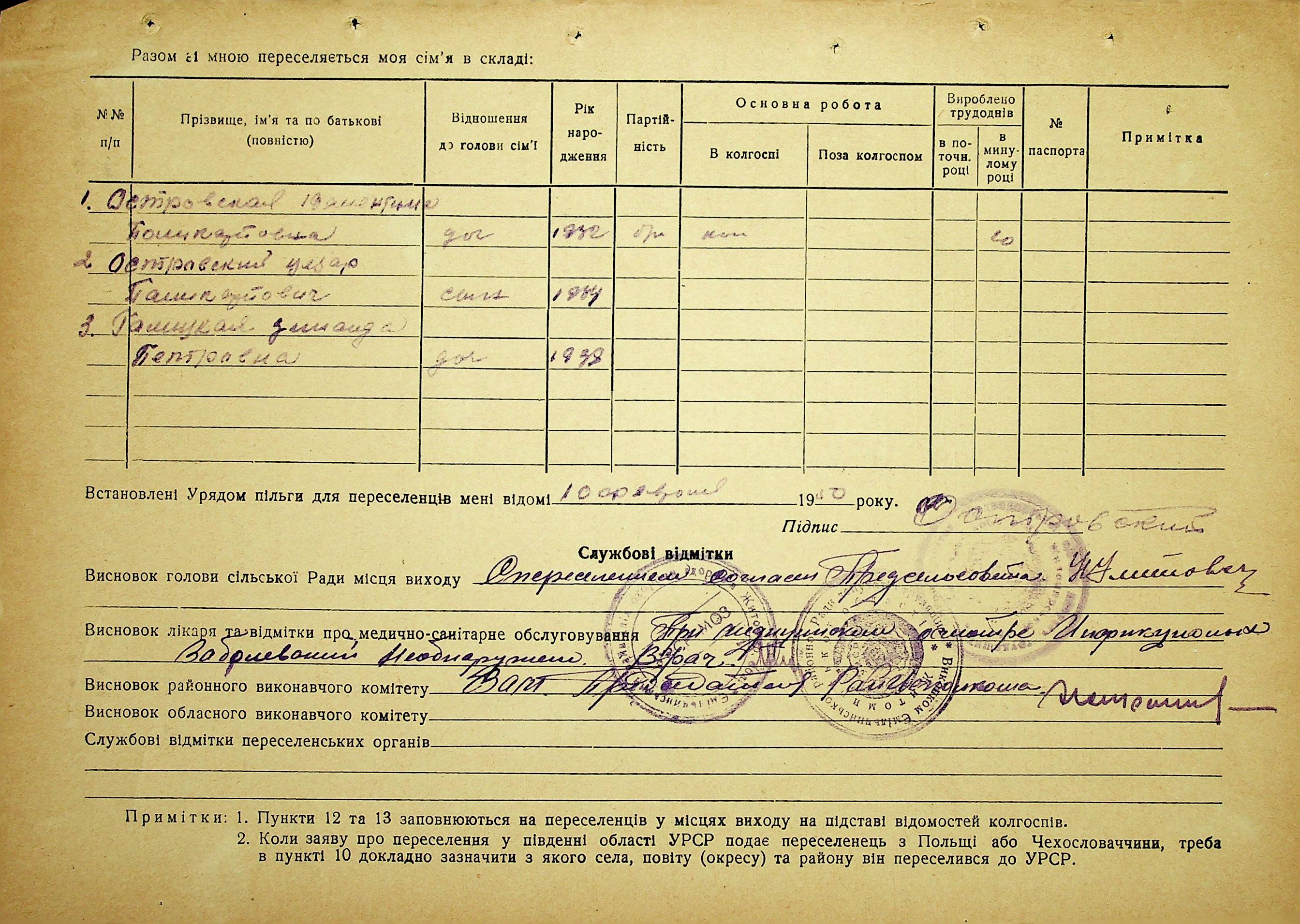 • • • • Справа № 37 “Анкети-заяви про планове переселення сімей з Житомирської до Миколаївської області, прізвища з літери «М» по літеру «Я»”