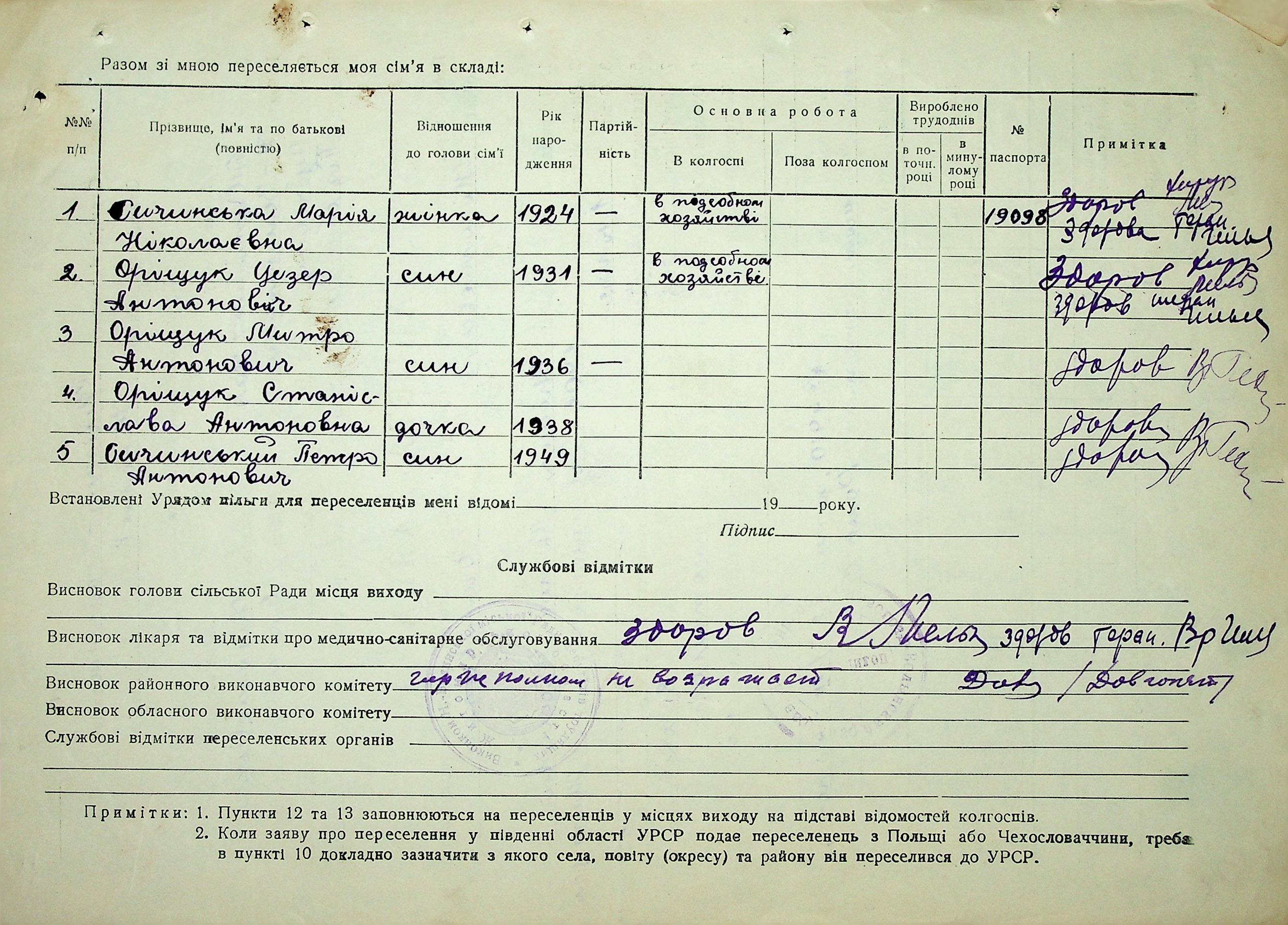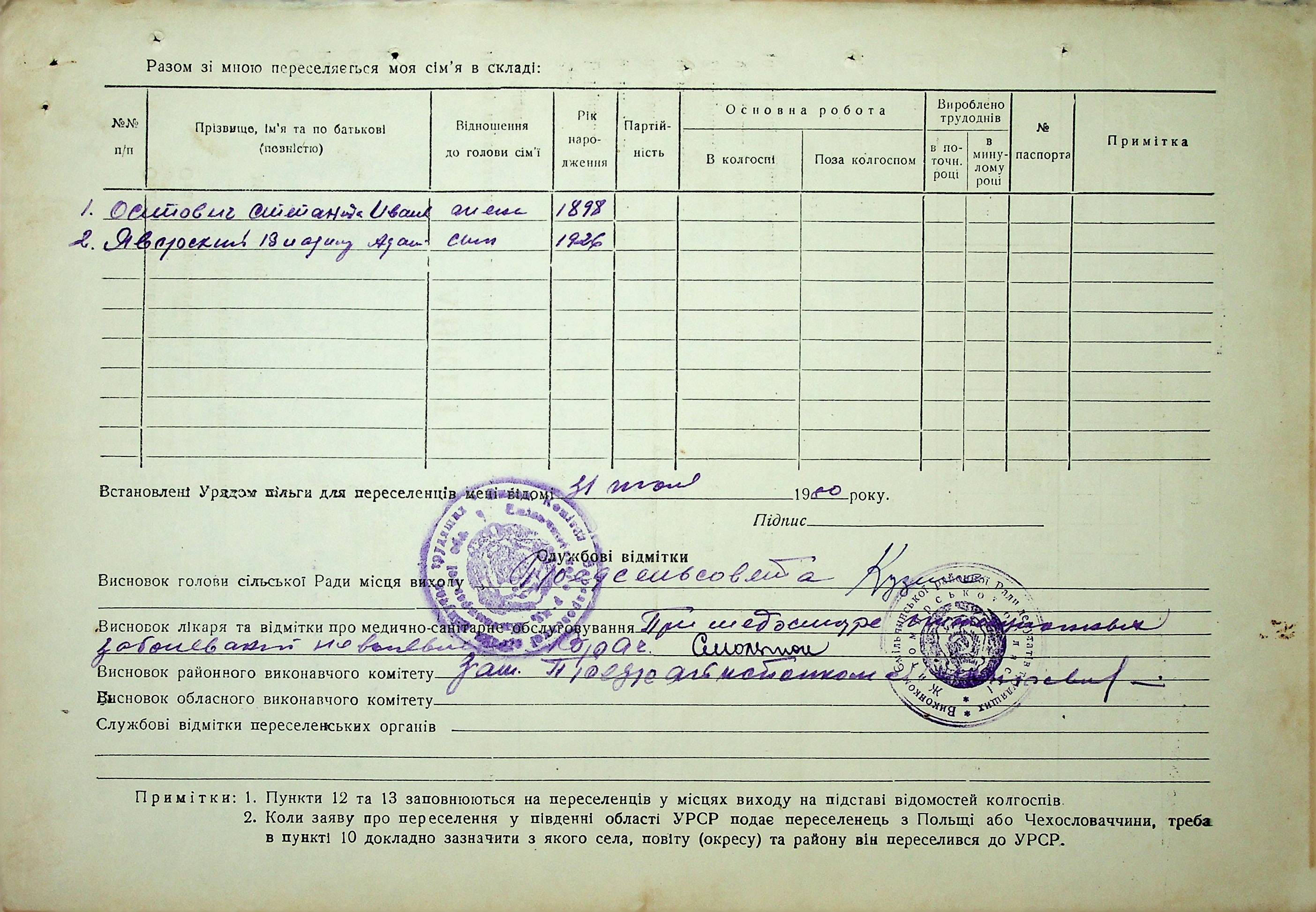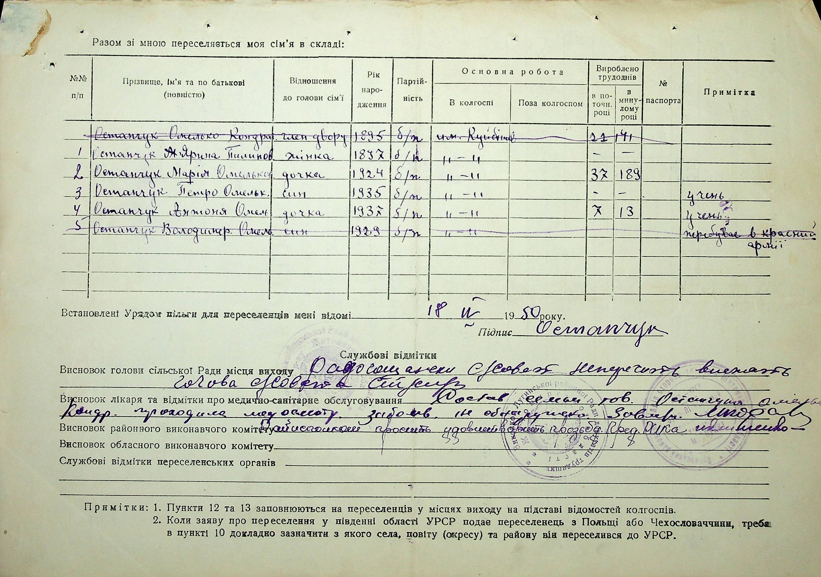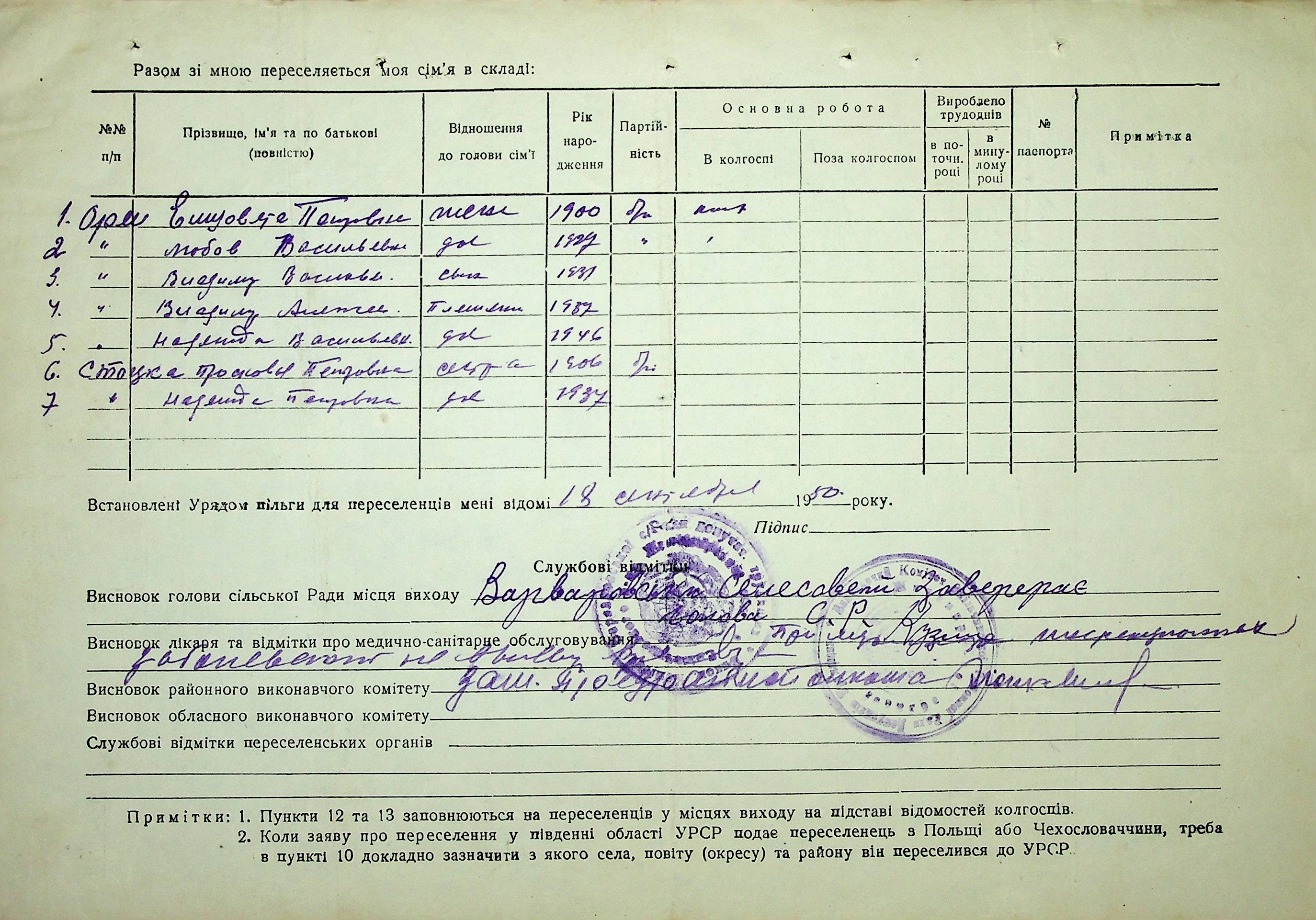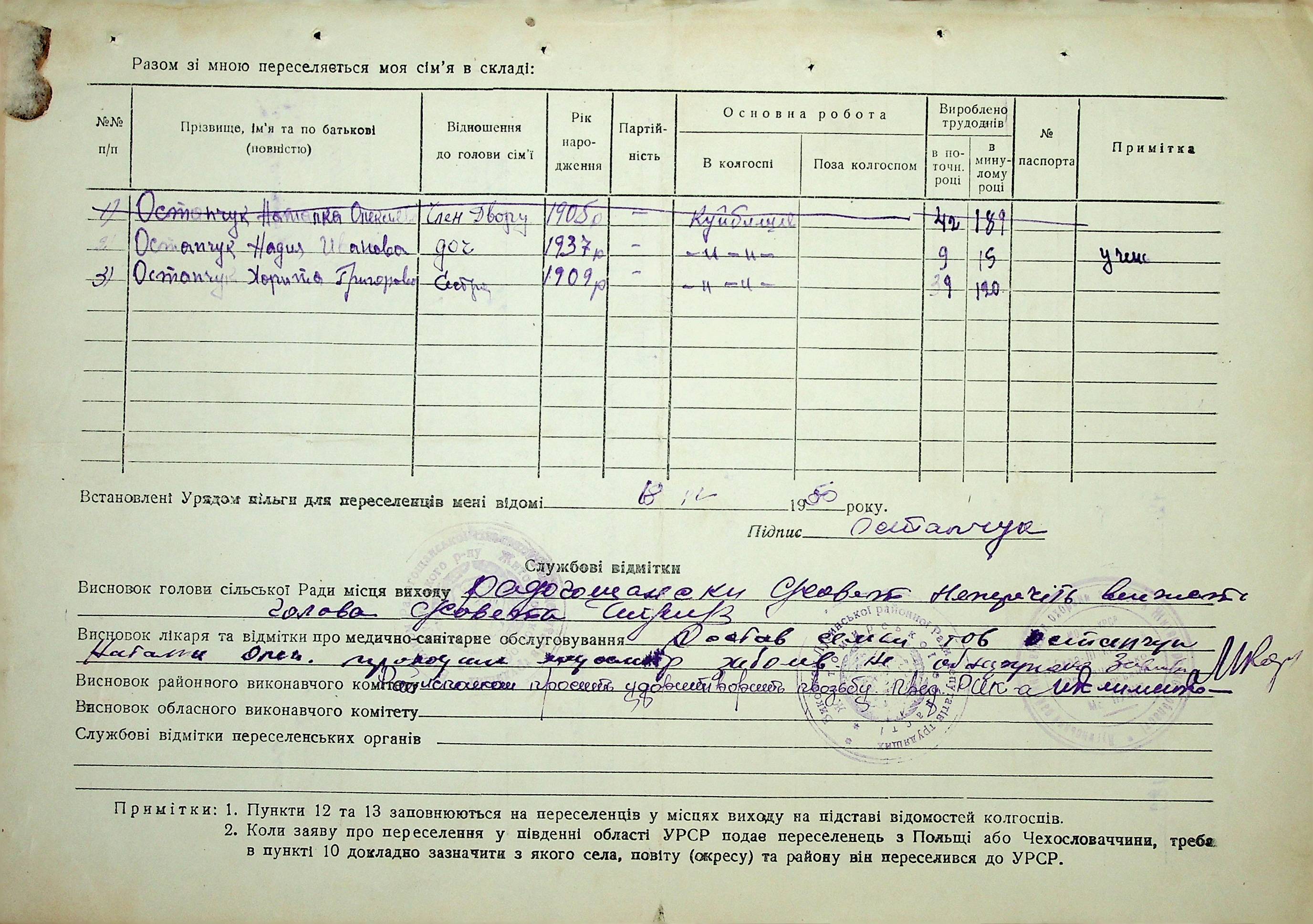 • • • • Справа № 37 “Анкети-заяви про планове переселення сімей з Житомирської до Миколаївської області, прізвища з літери «М» по літеру «Я»”