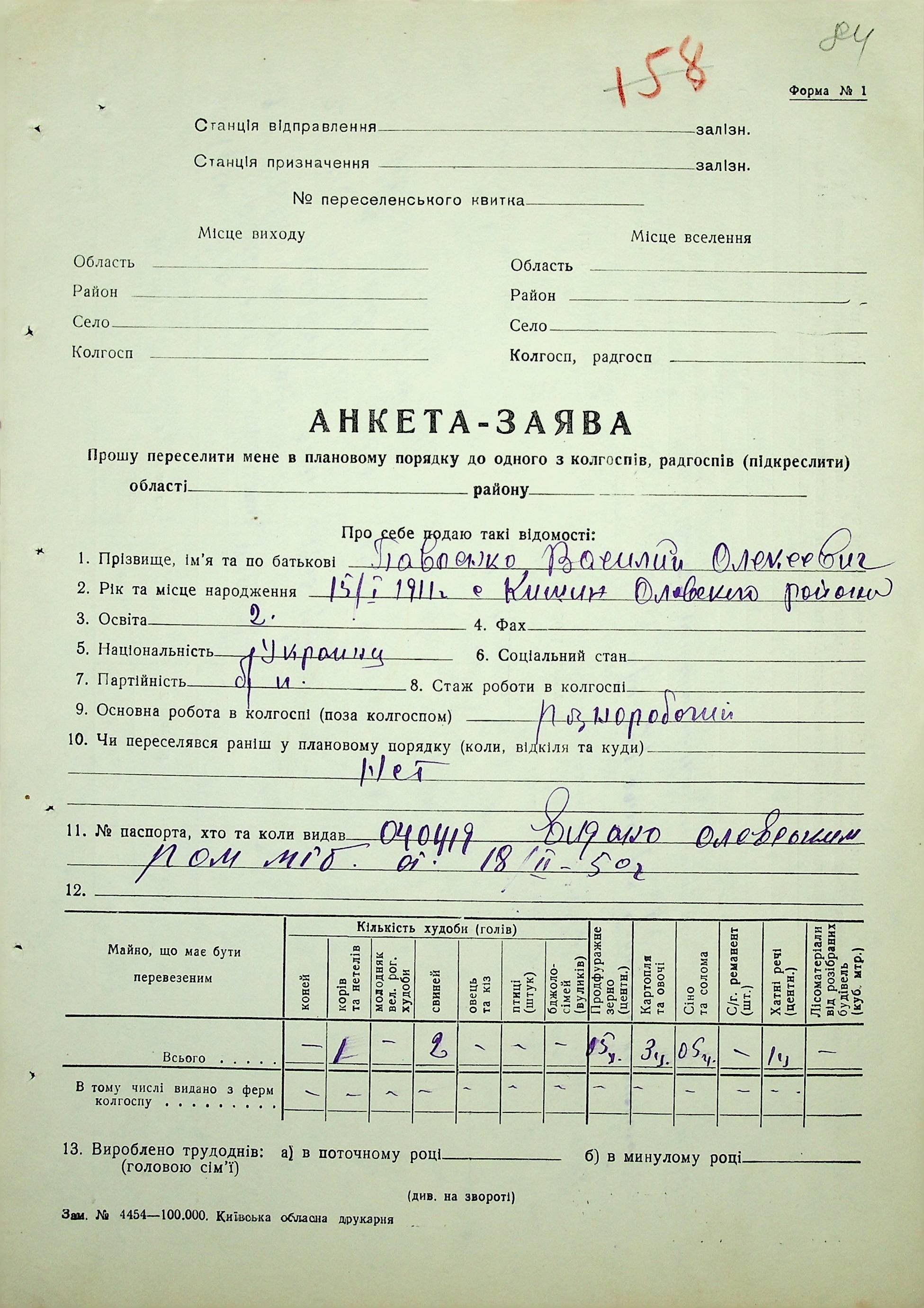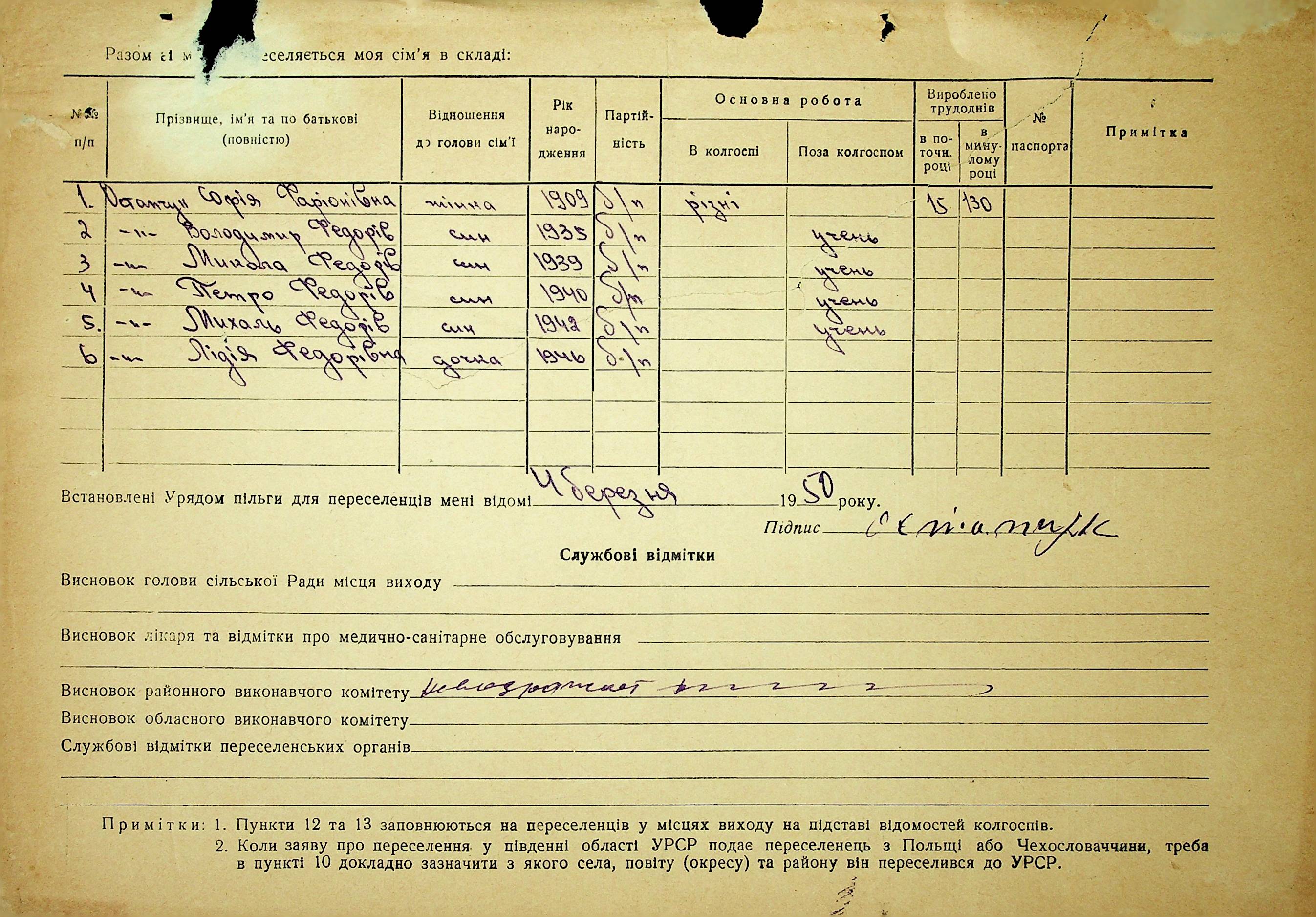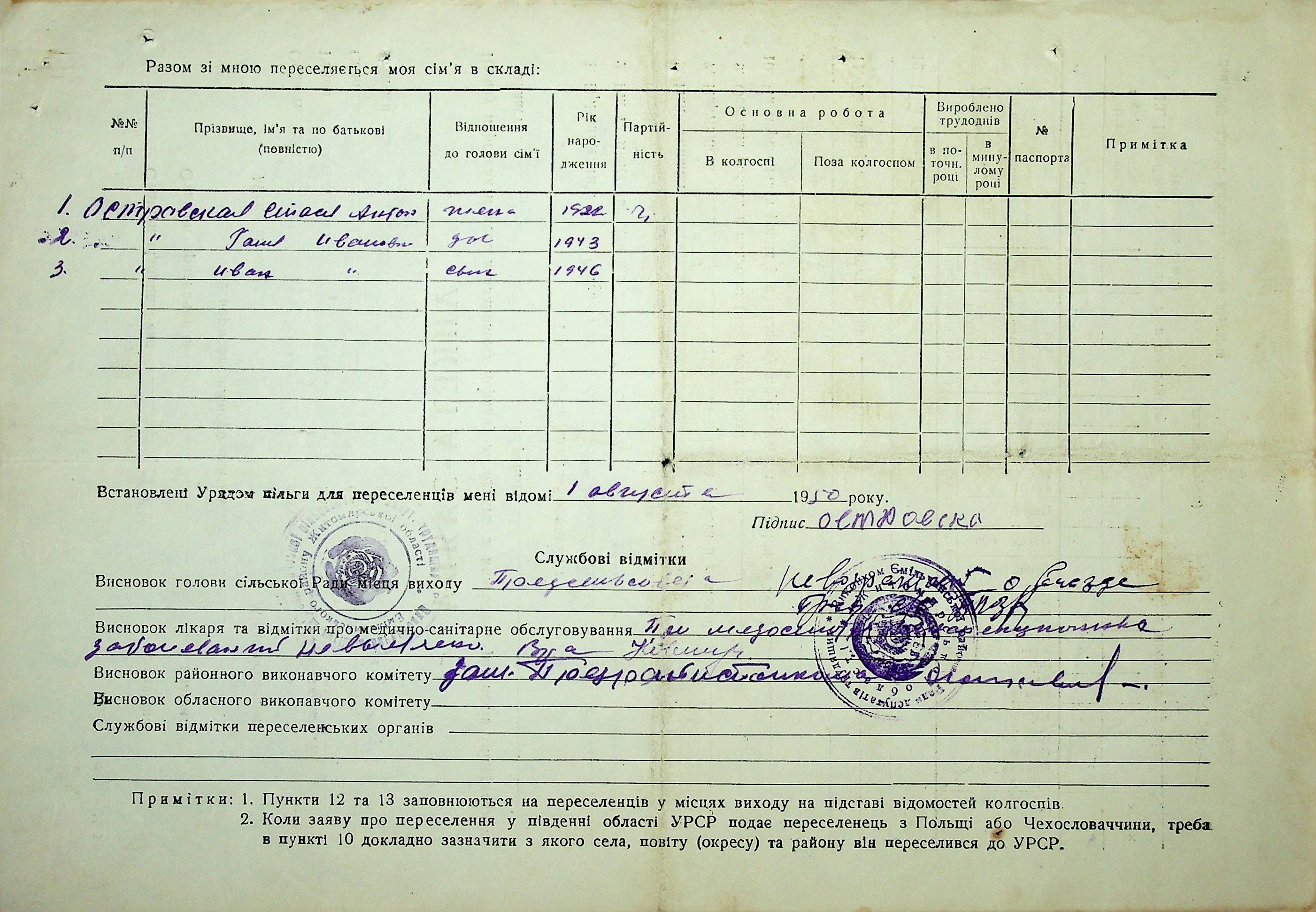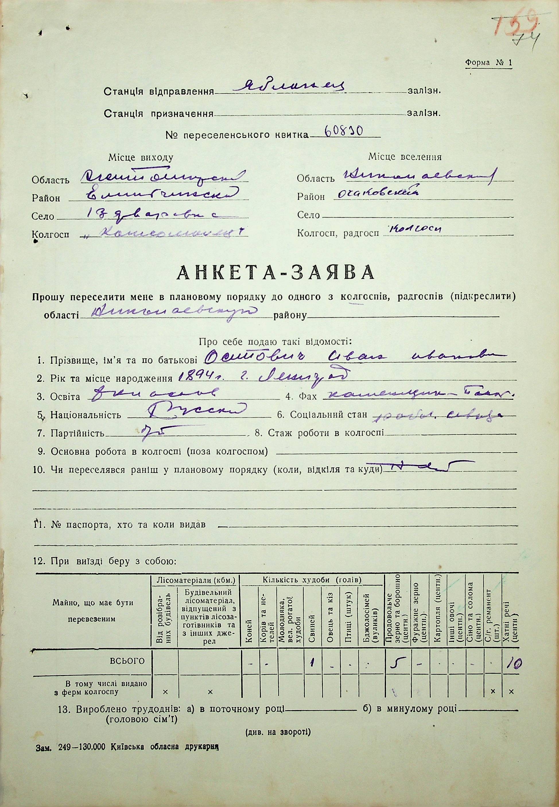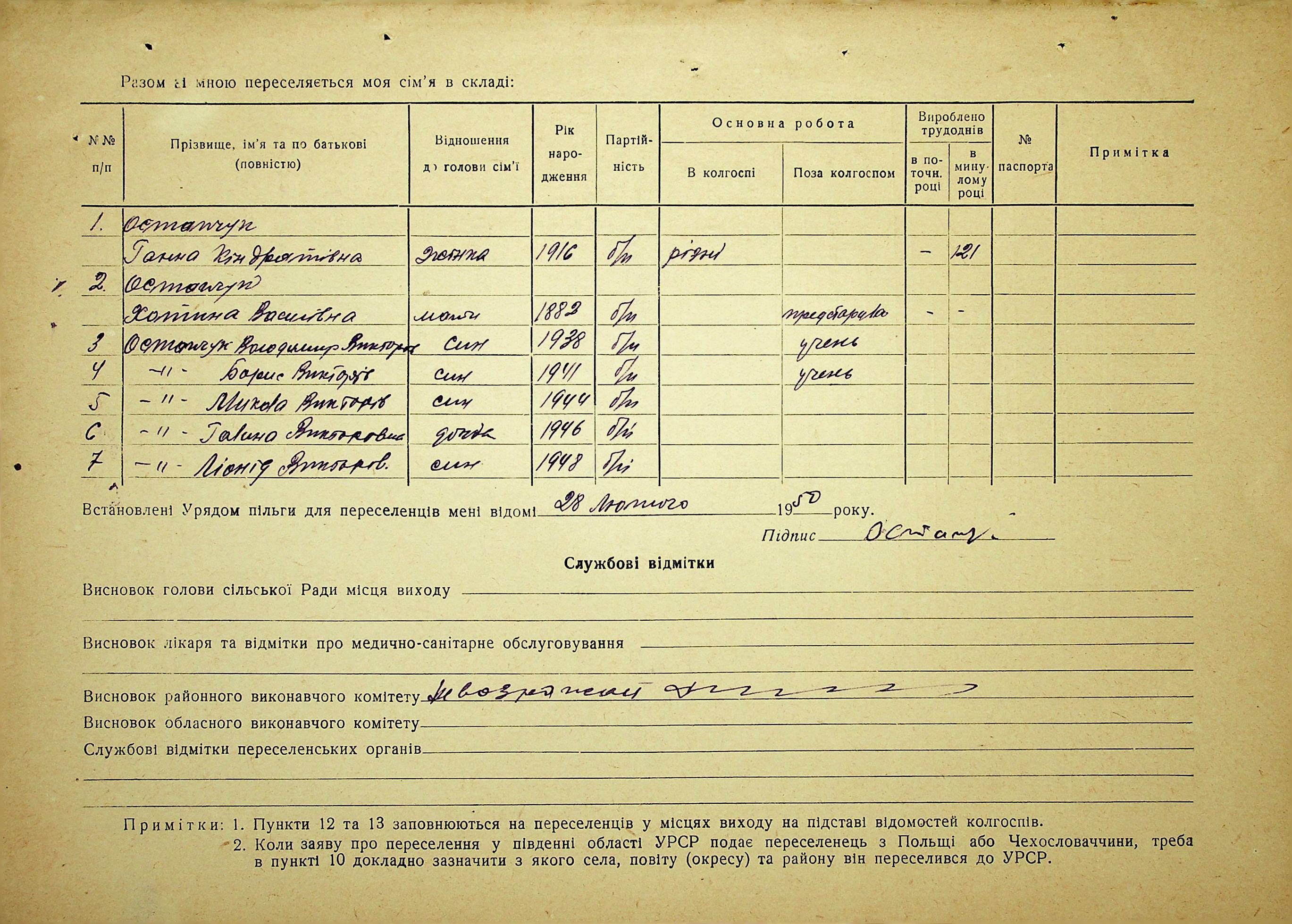 • • • • Справа № 37 “Анкети-заяви про планове переселення сімей з Житомирської до Миколаївської області, прізвища з літери «М» по літеру «Я»”