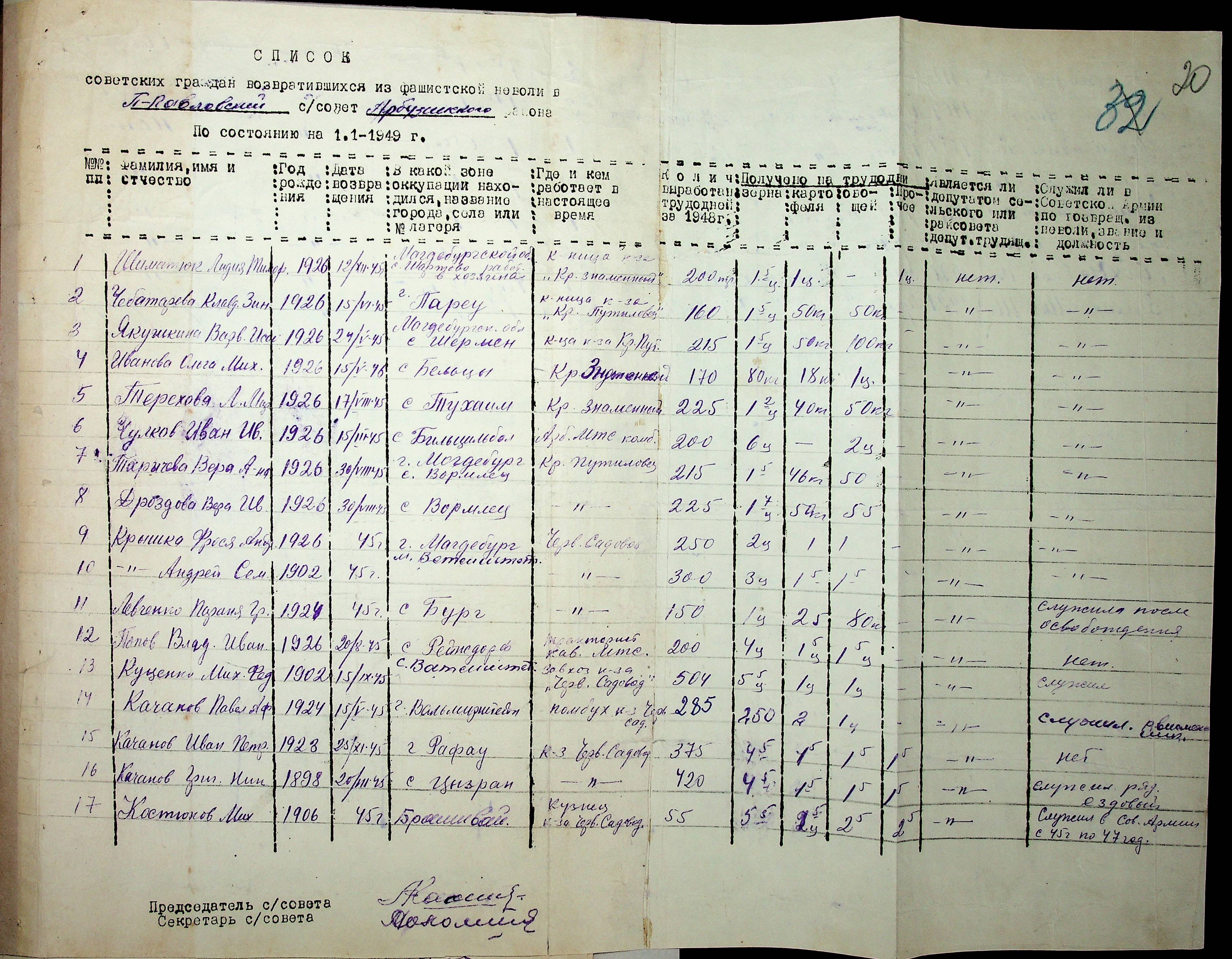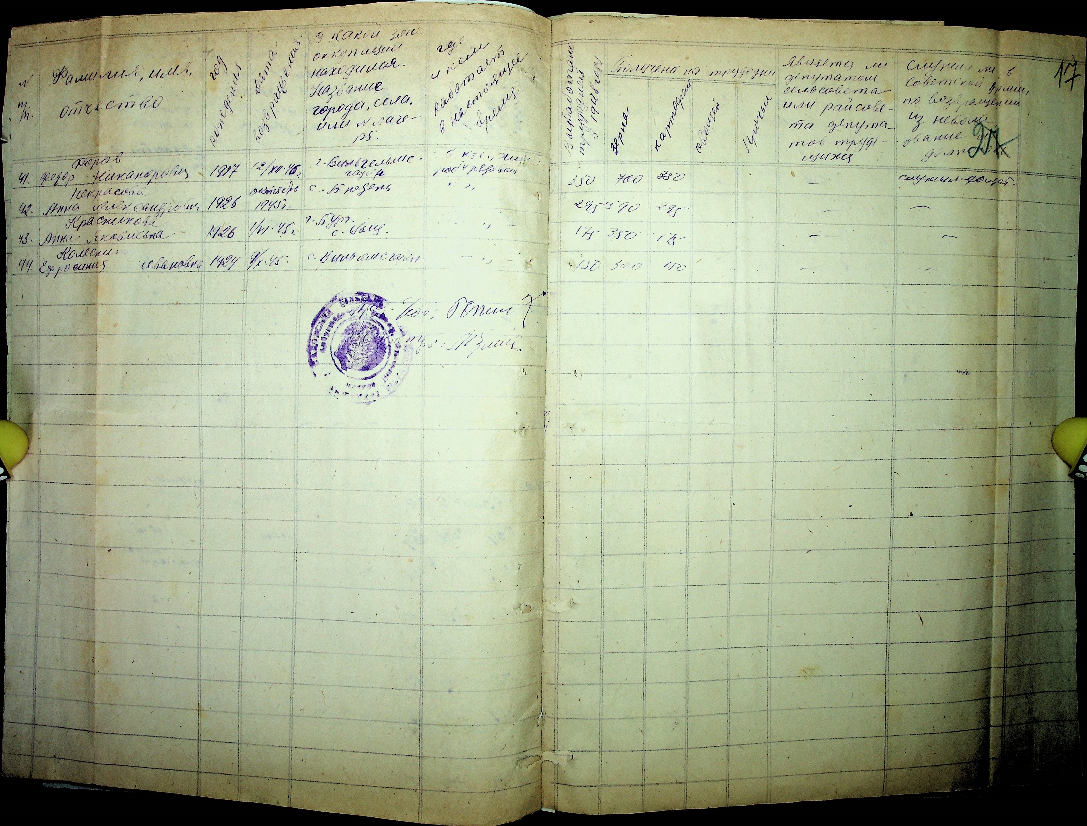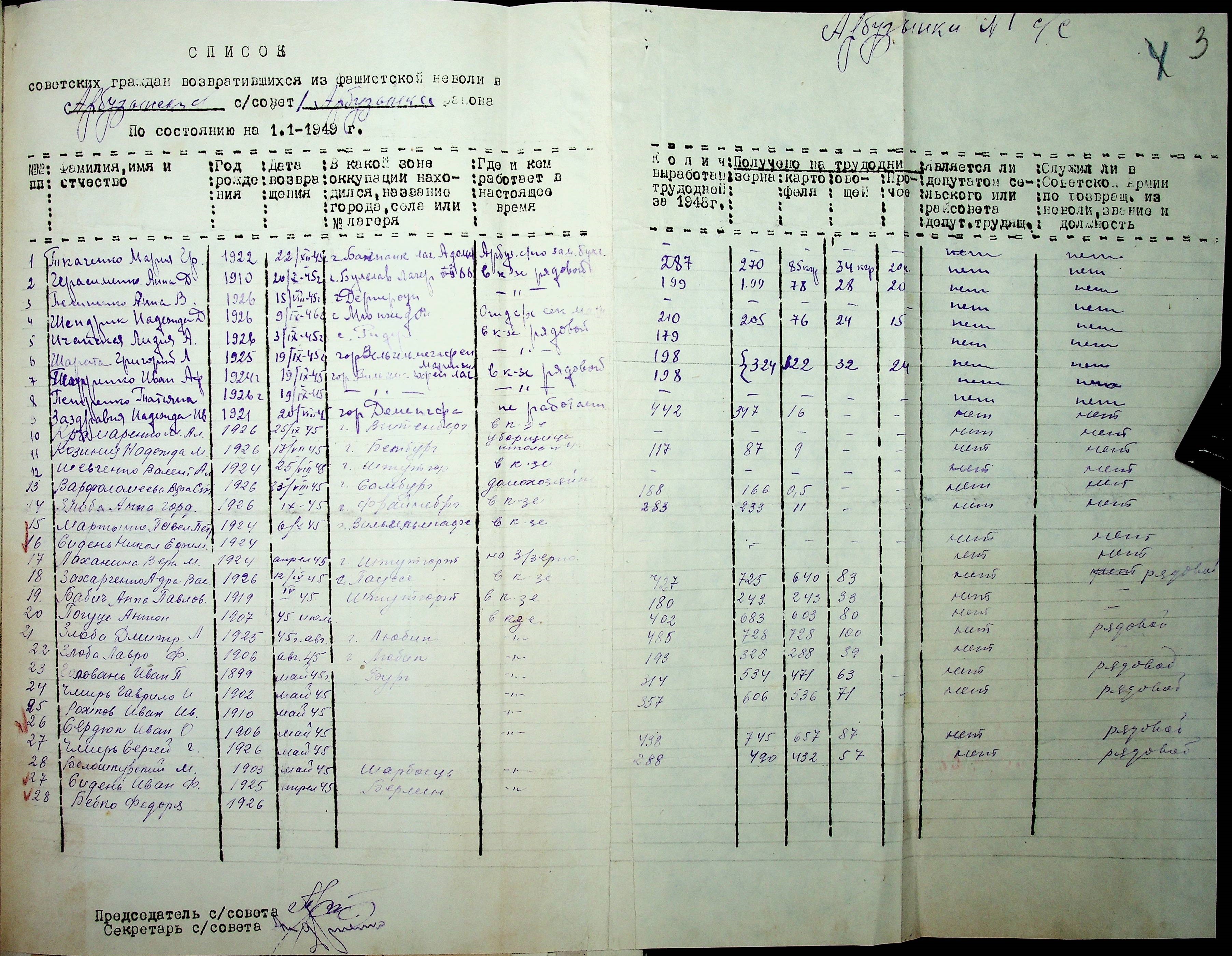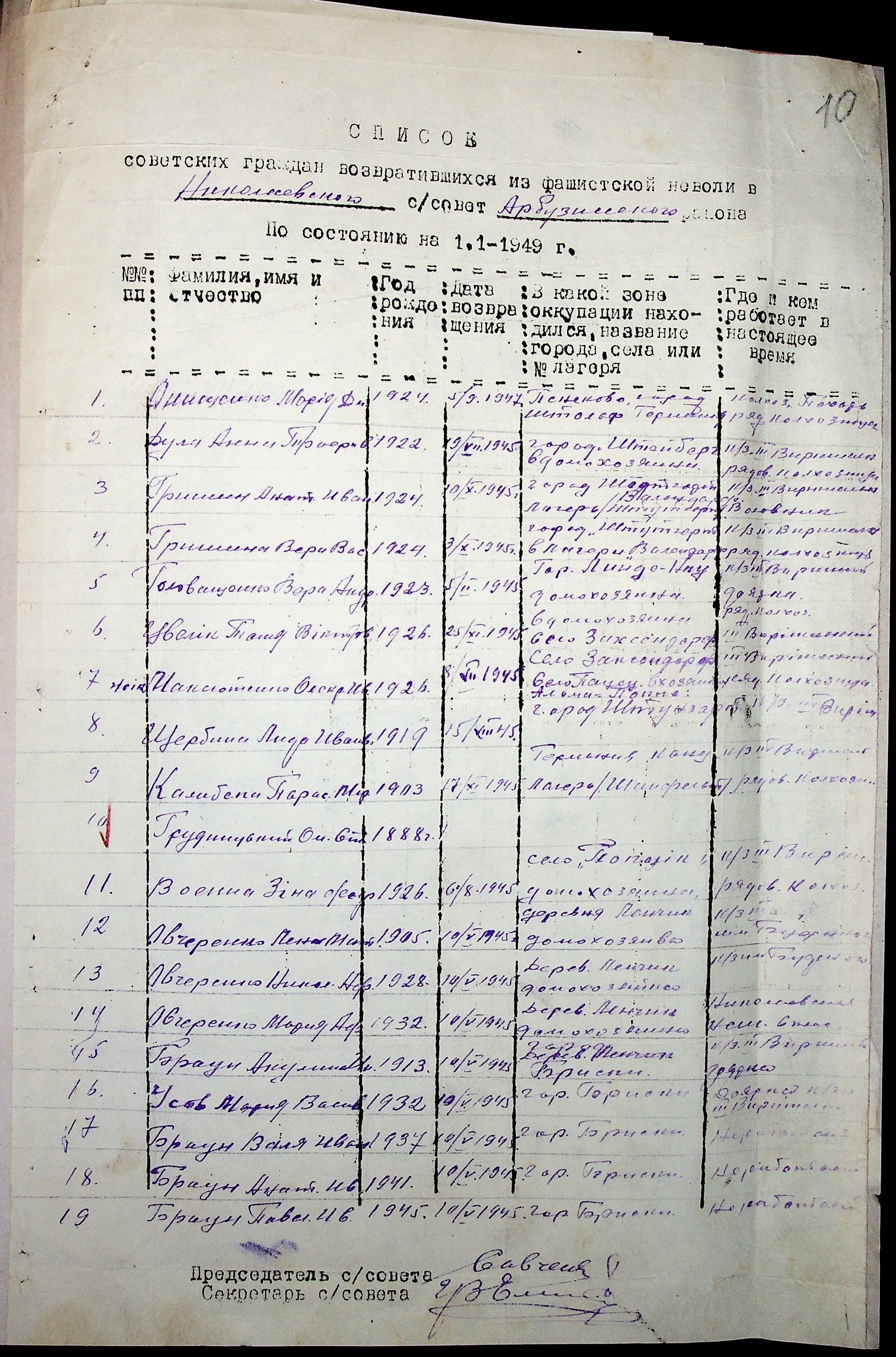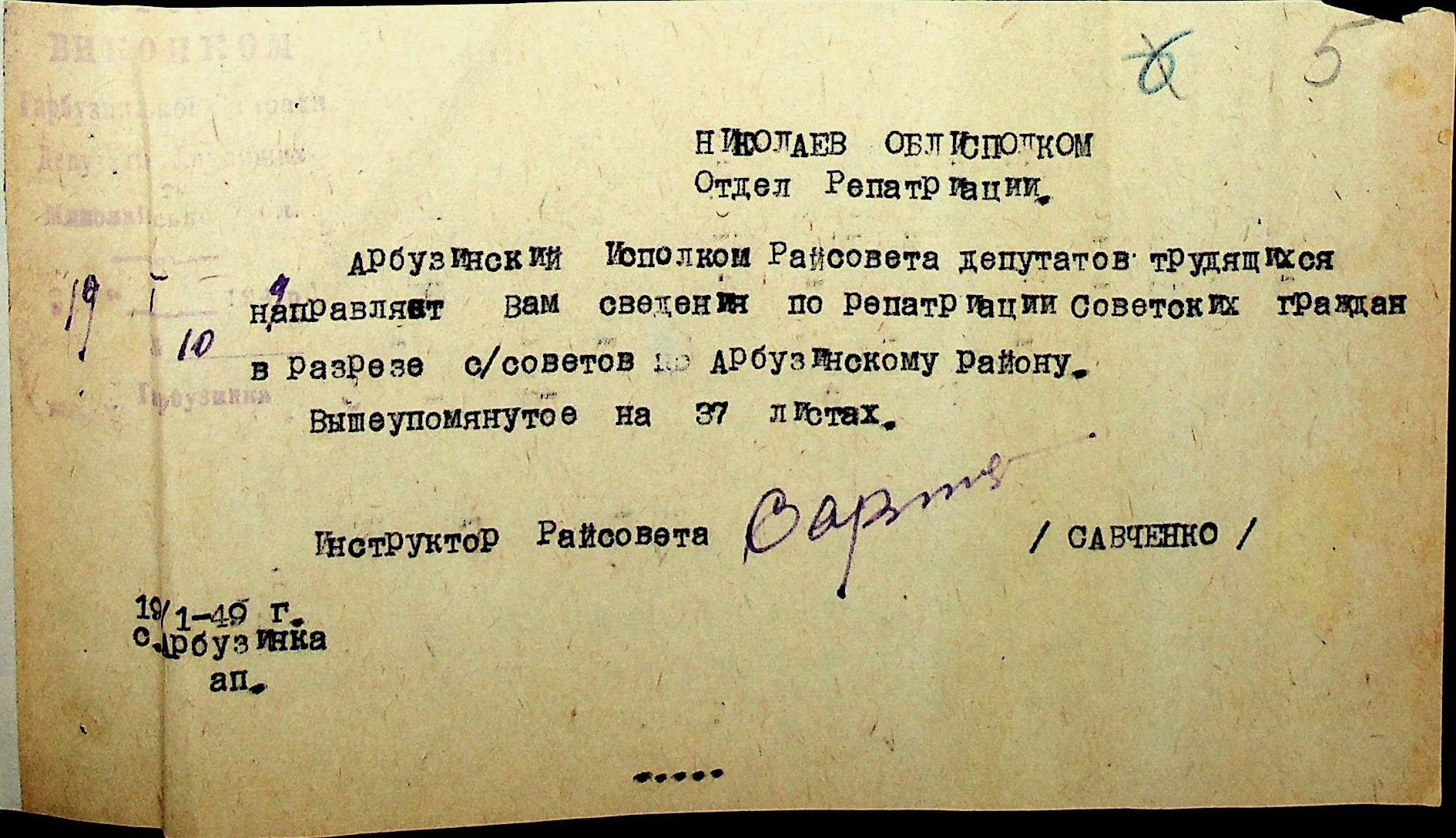 • • • • Справа № 41 “Списки репатрійованих радянських громадян, які повернулися на Батьківщину до Арбузинського району Миколаївської області.