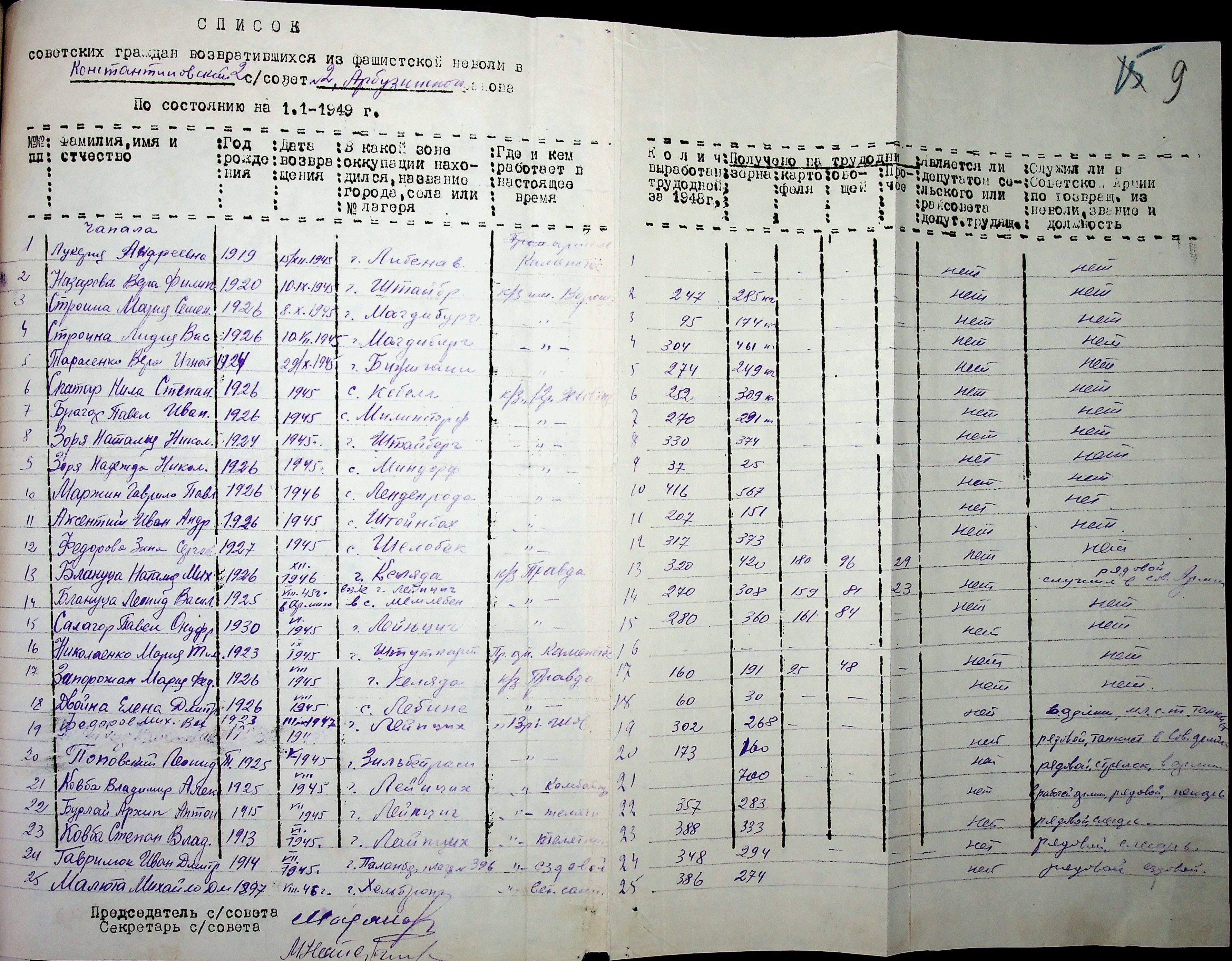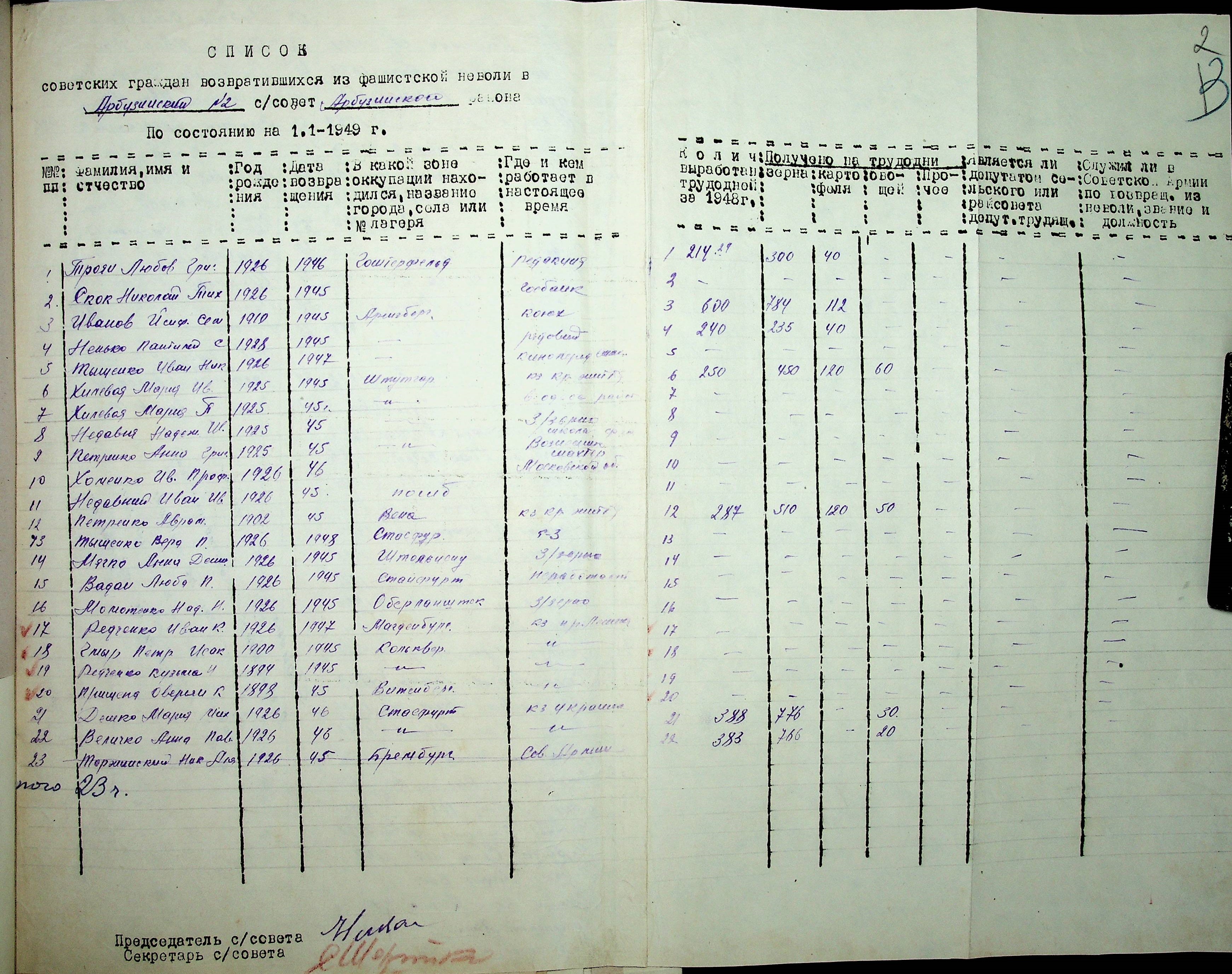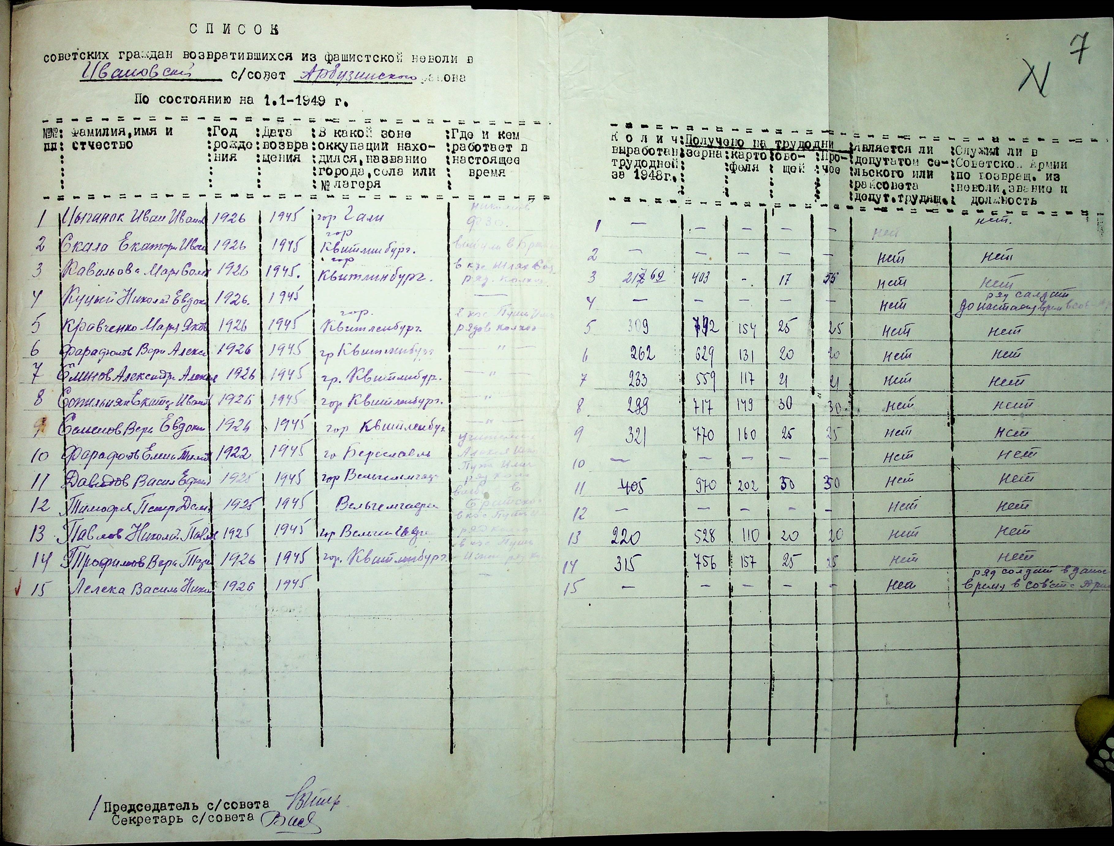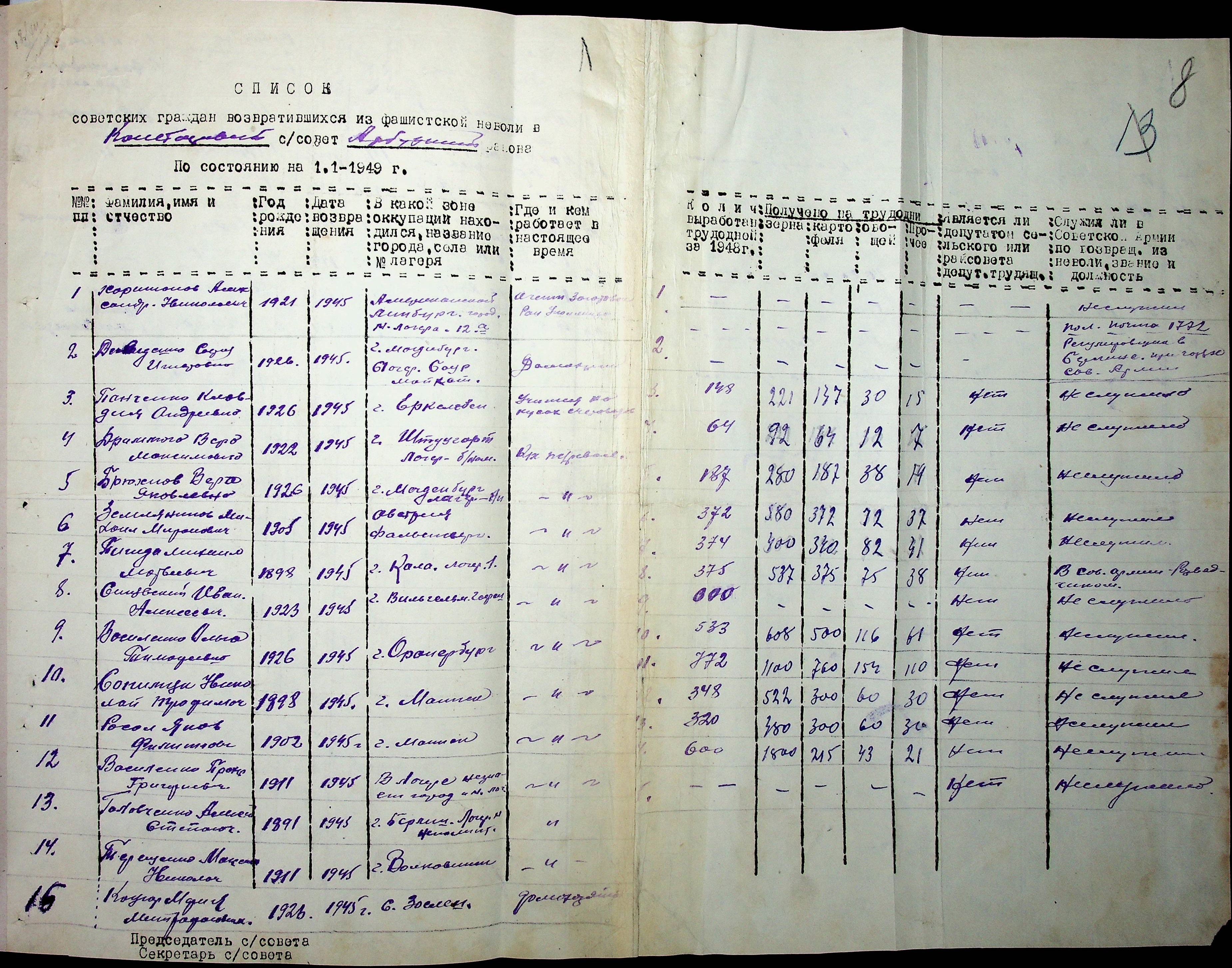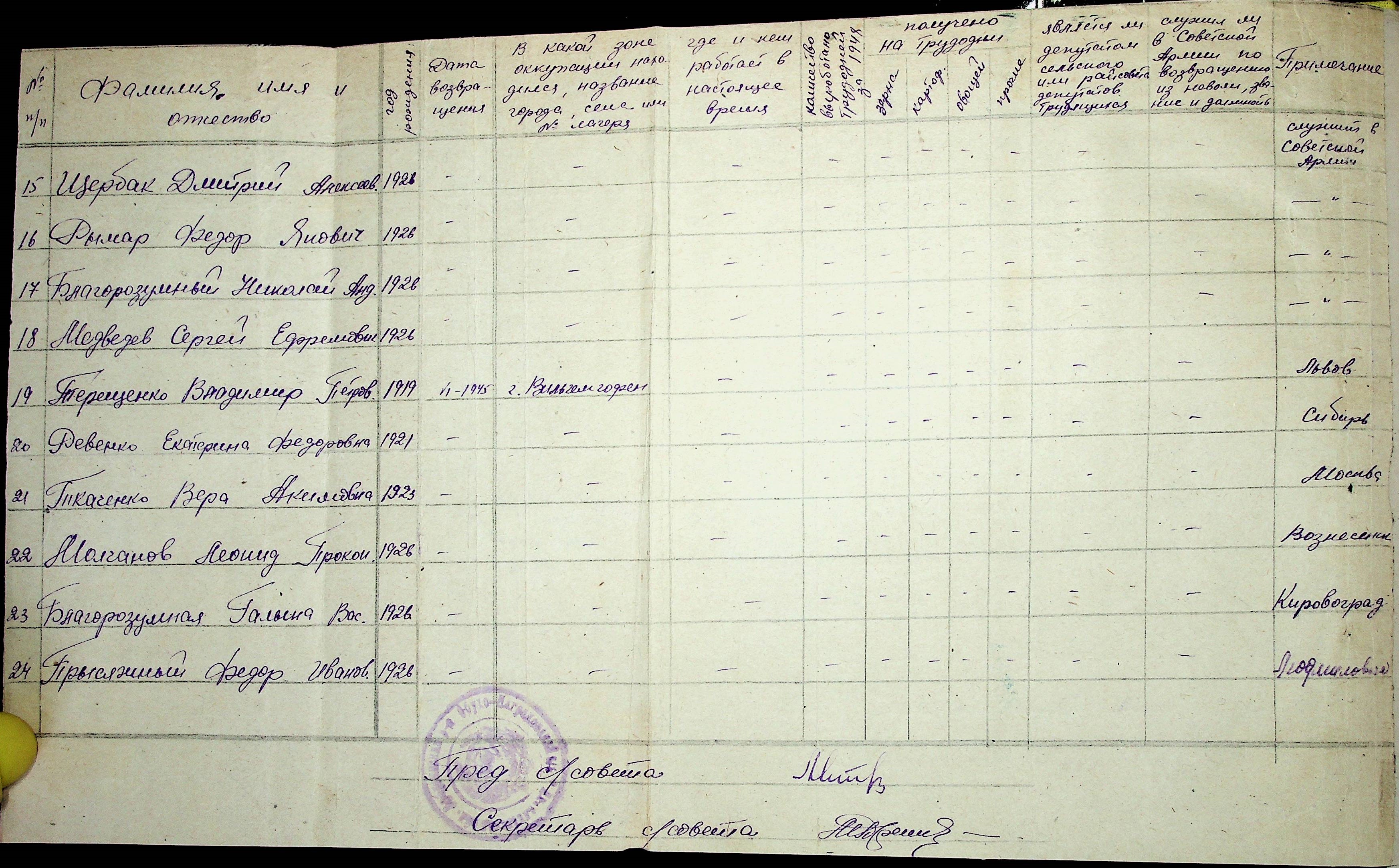 • • • • Справа № 41 “Списки репатрійованих радянських громадян, які повернулися на Батьківщину до Арбузинського району Миколаївської області.