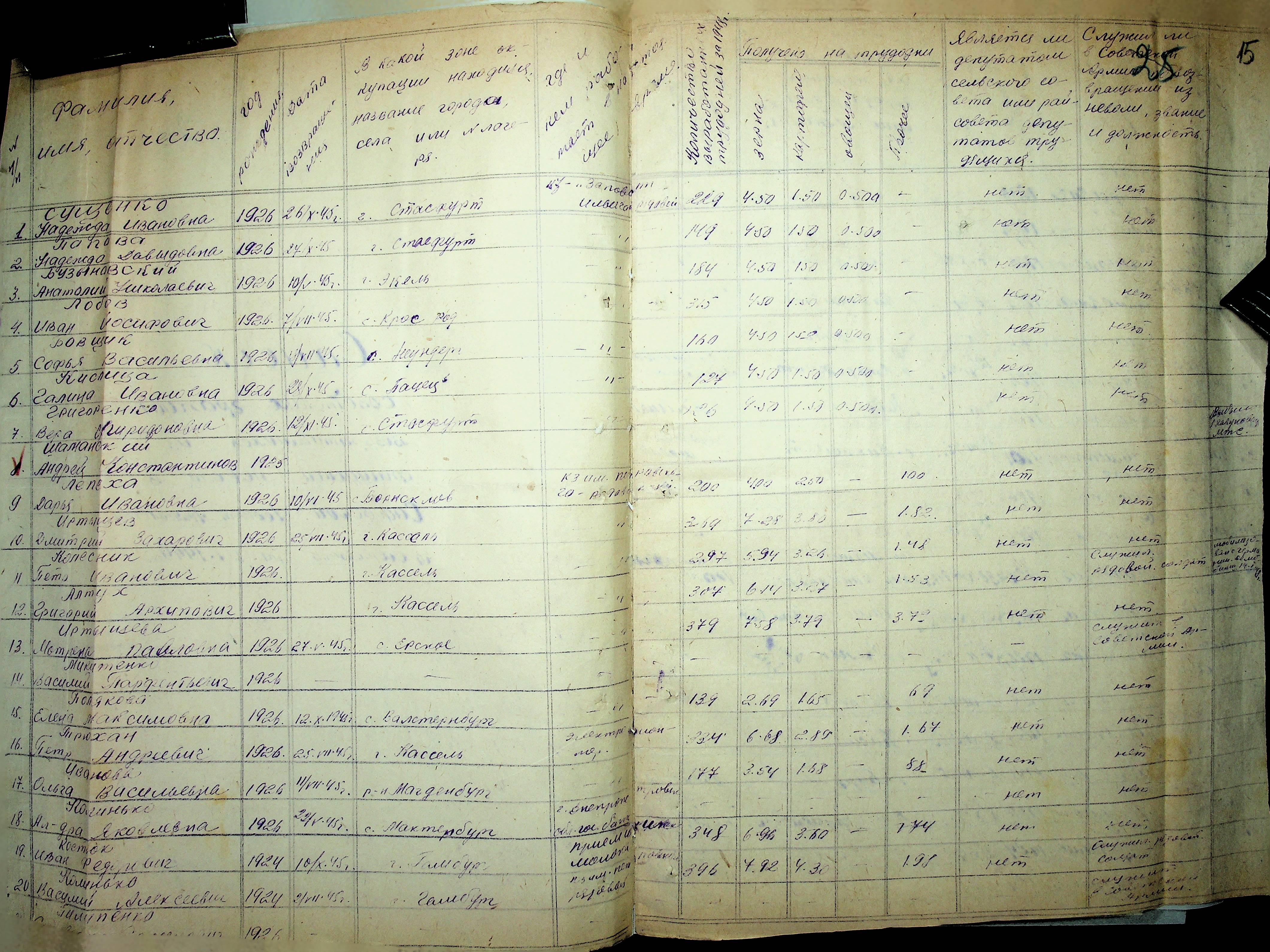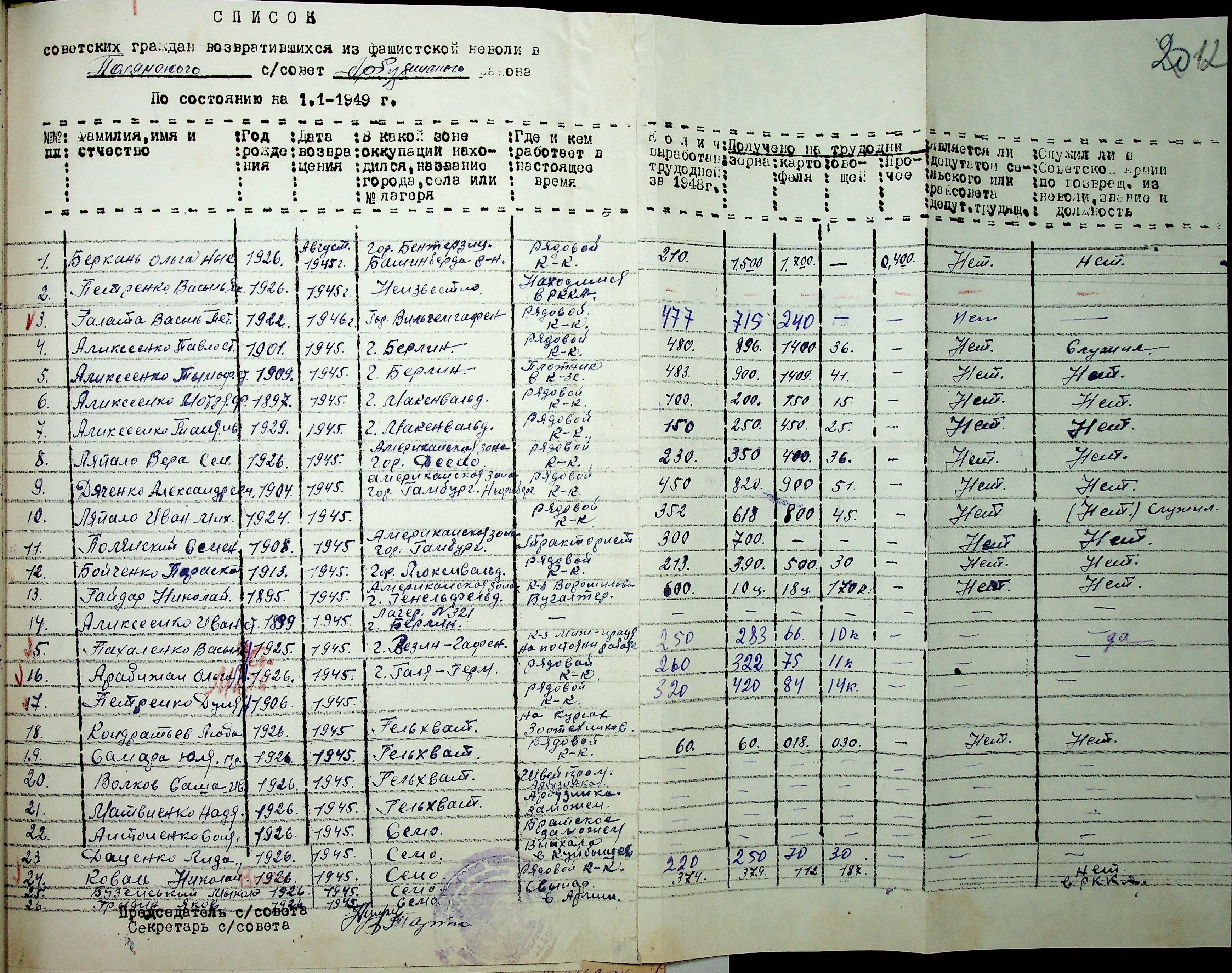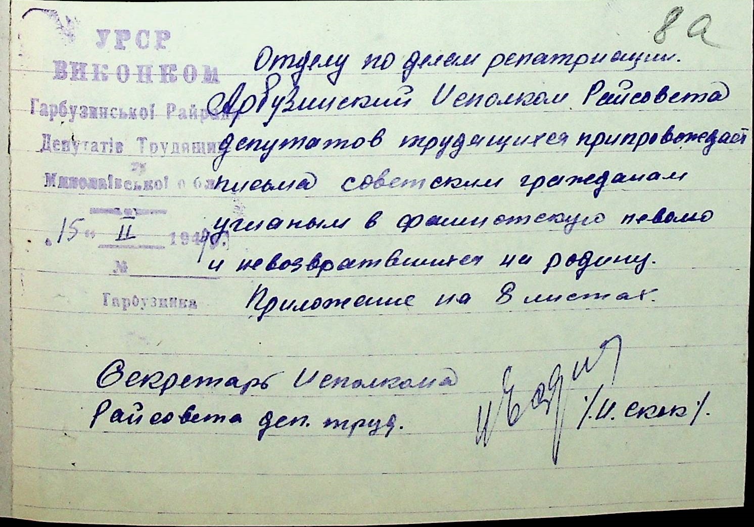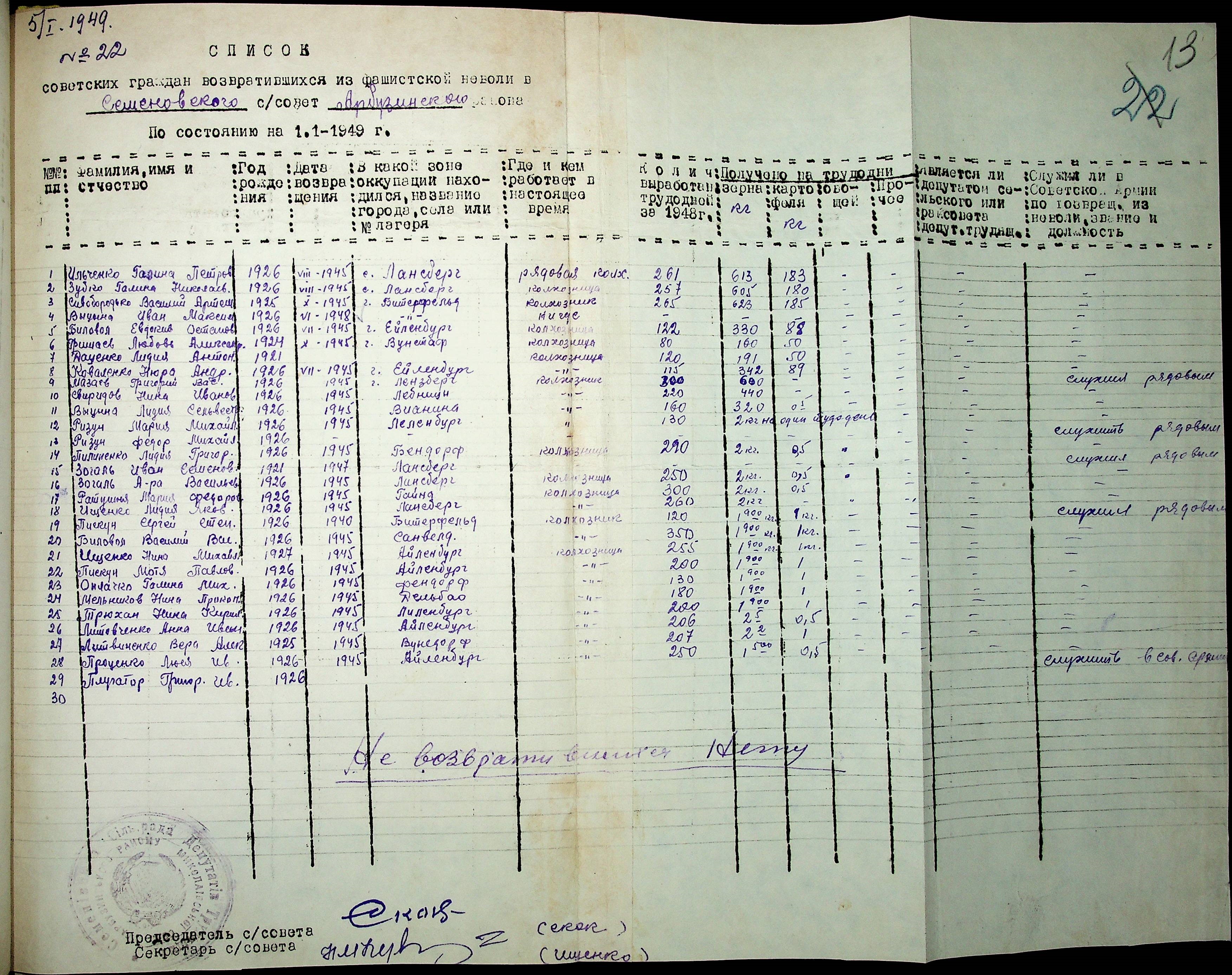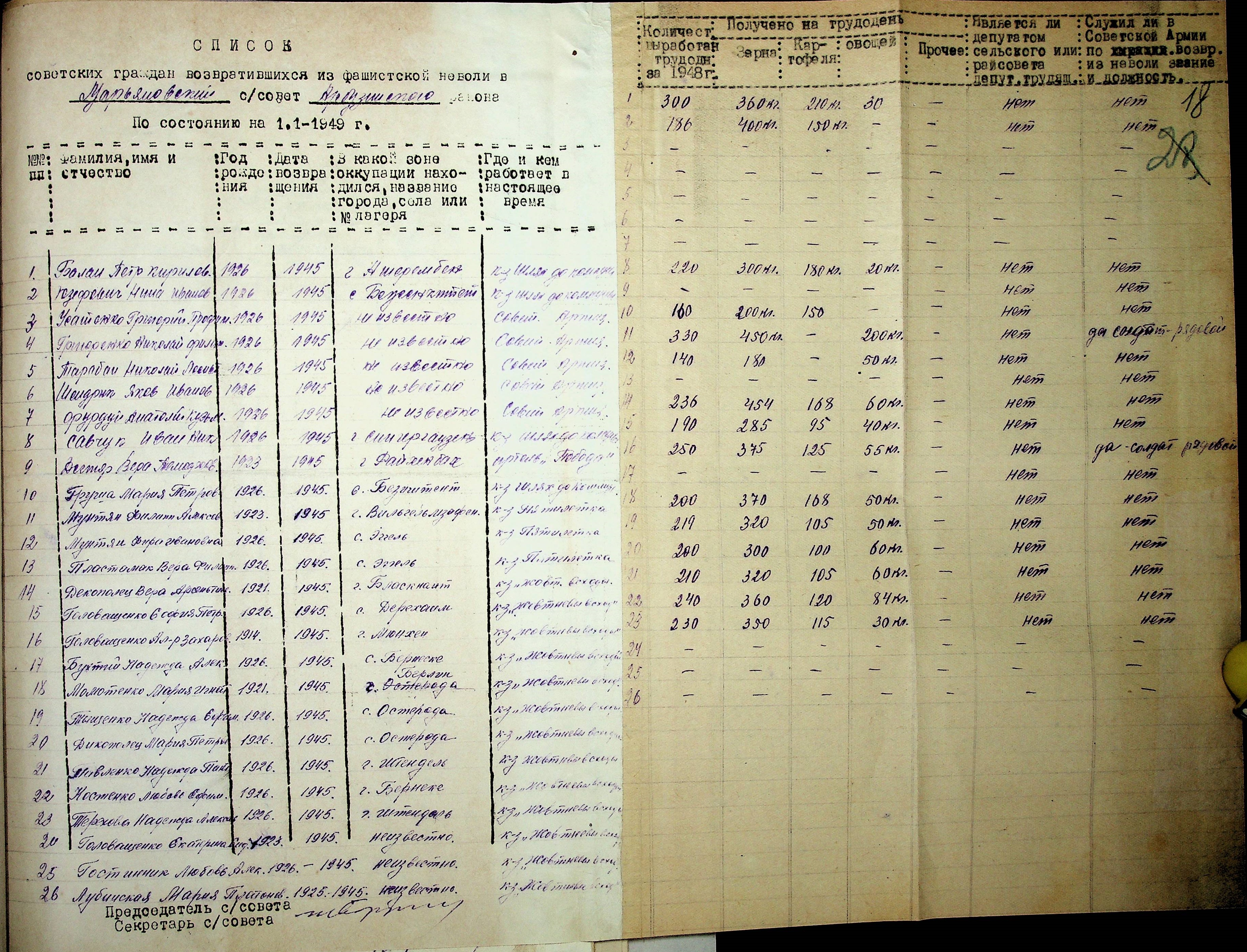 • • • • Справа № 41 “Списки репатрійованих радянських громадян, які повернулися на Батьківщину до Арбузинського району Миколаївської області.