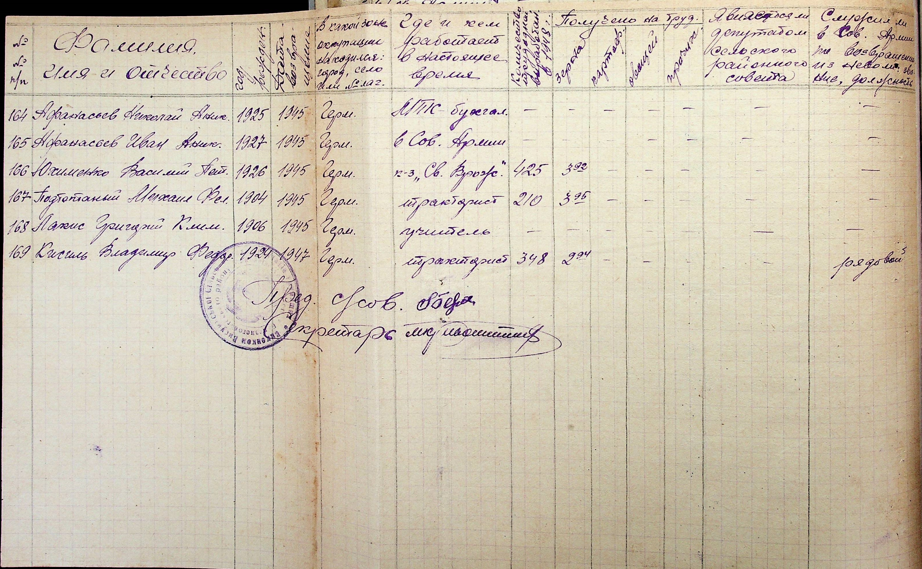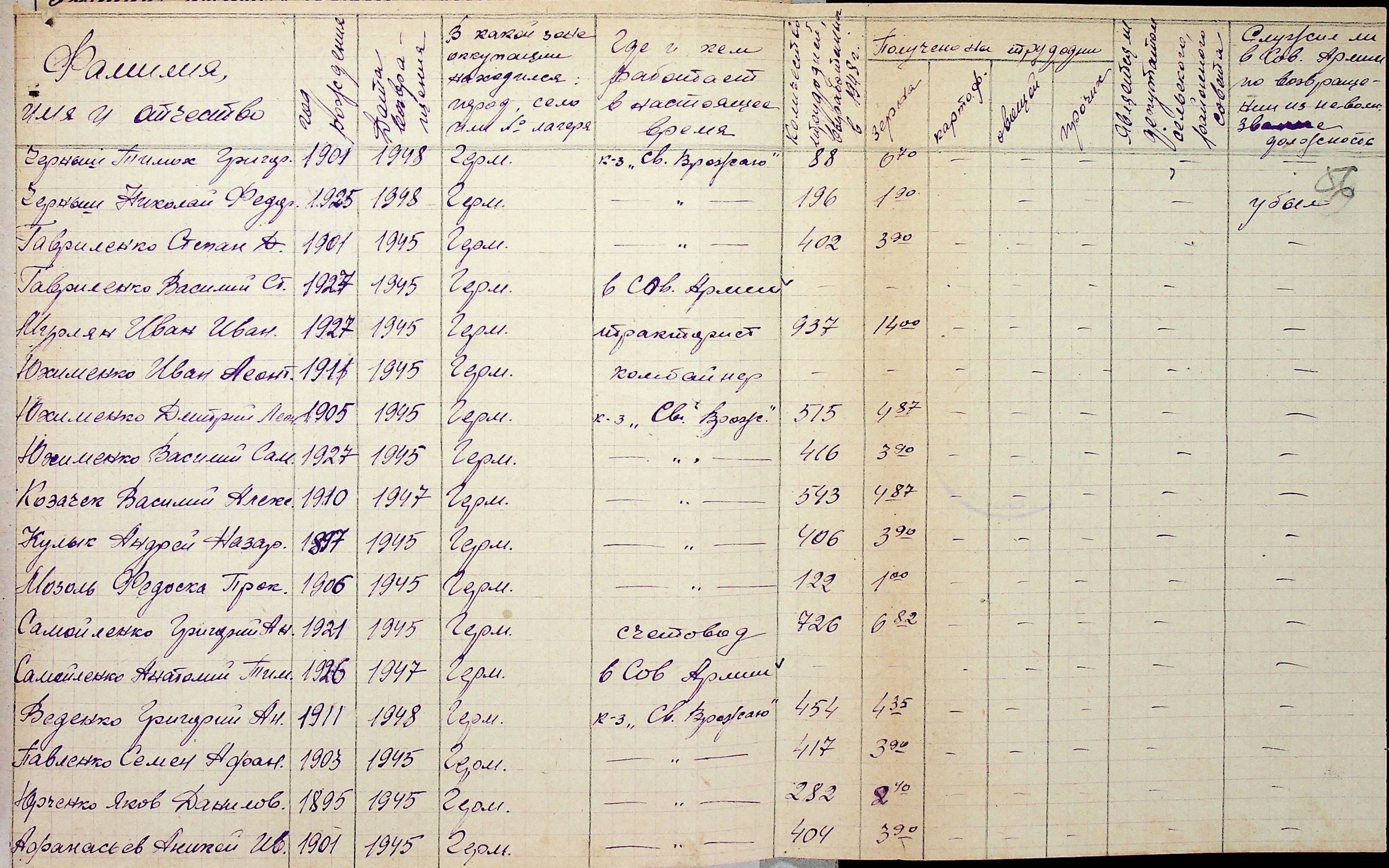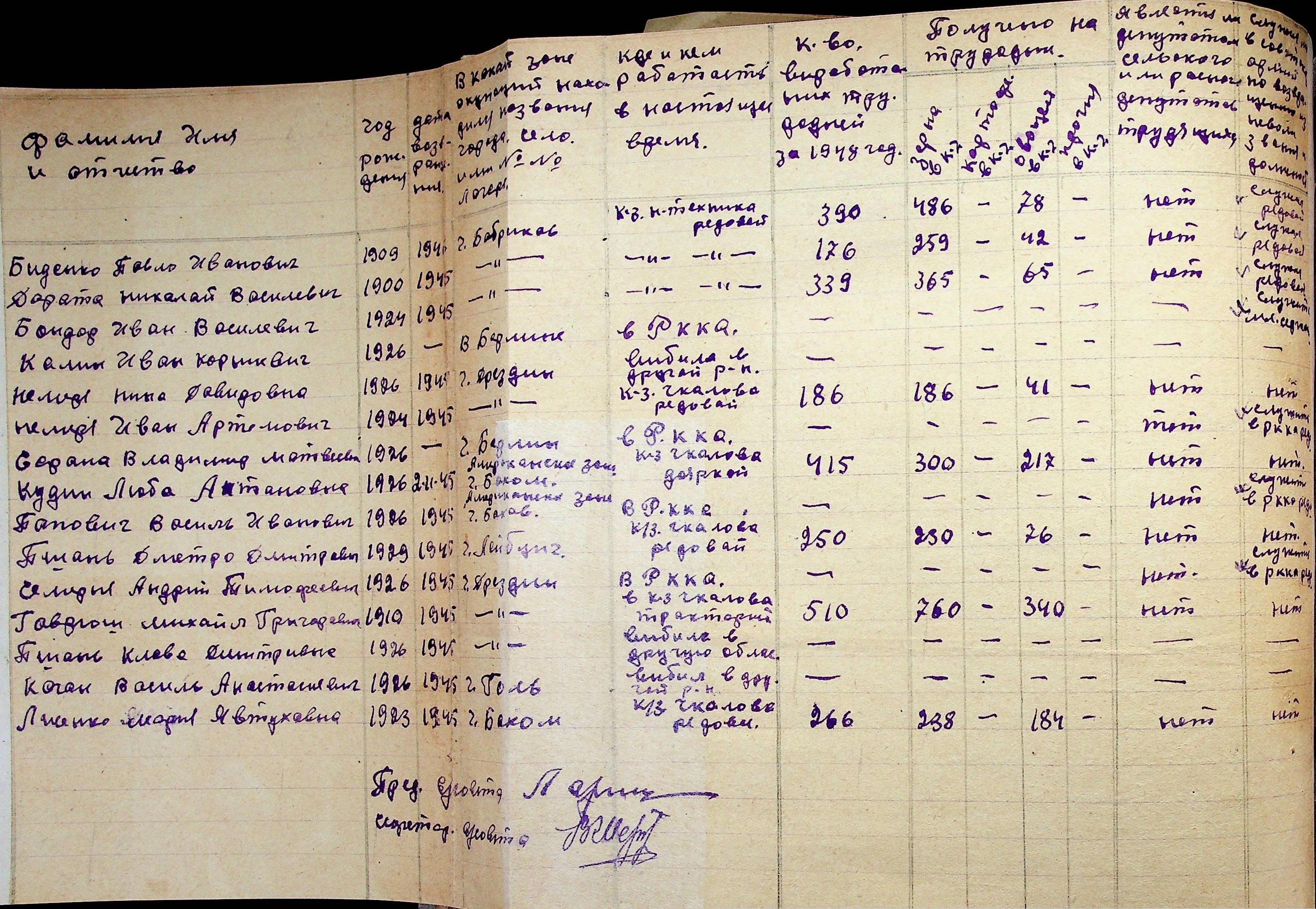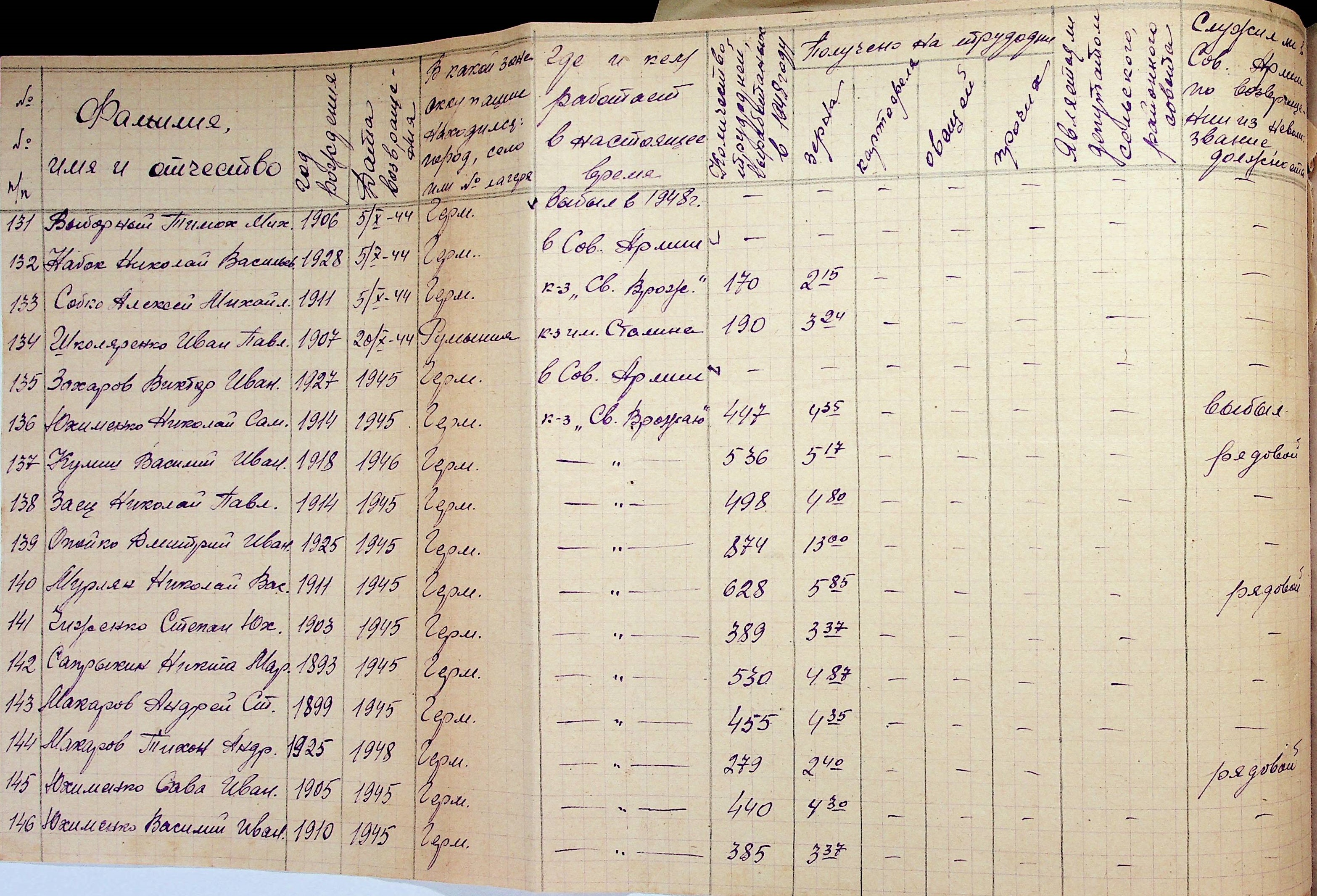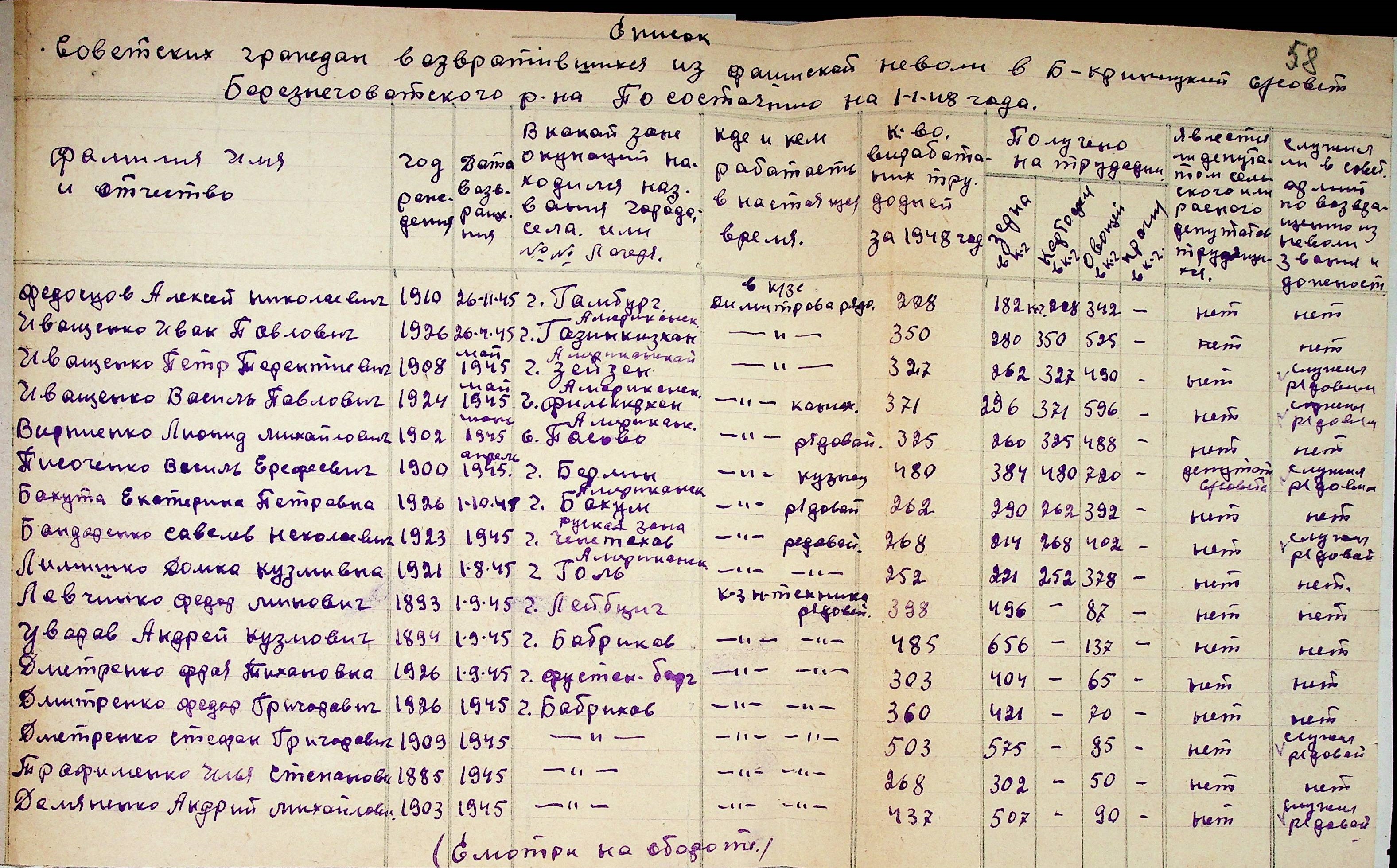• • • • Справа № 43 “Списки репатрійованих радянських громадян, які повернулися на Батьківщину до Березнегуватського району Миколаївської області. Листування відділу у справах репатріації виконкому Микола-ївської облради депутатів трудящих з виконкомом Березнегуватської райради депутатів трудящих з питань обліку репатріантів”