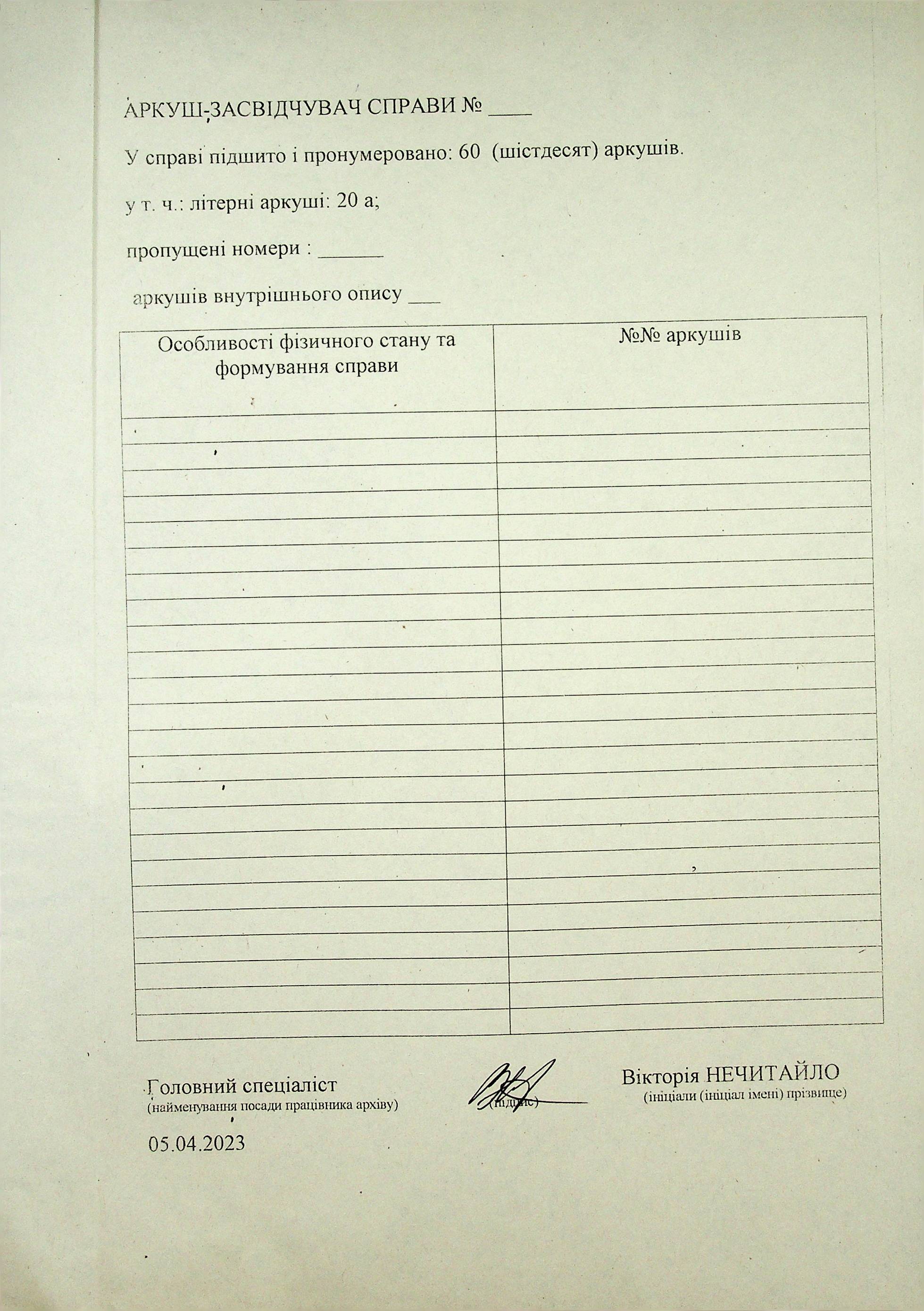 ◦ ◦ ◦ Опис № 1 справ постійного зберігання за 1944-2000 роки