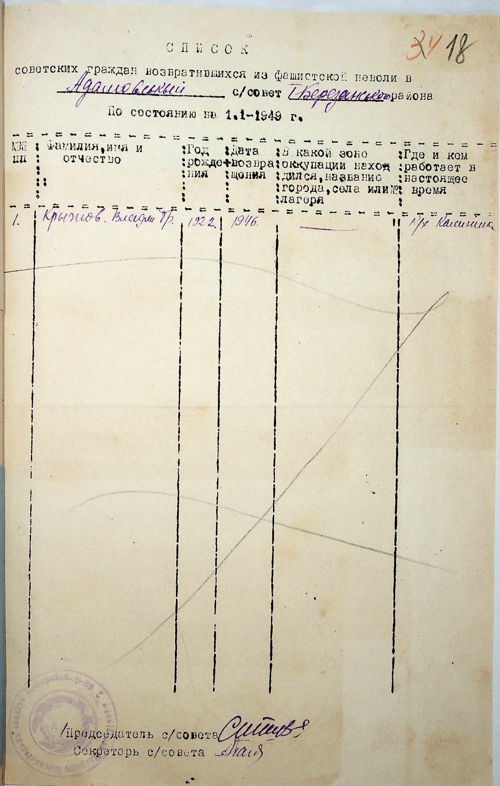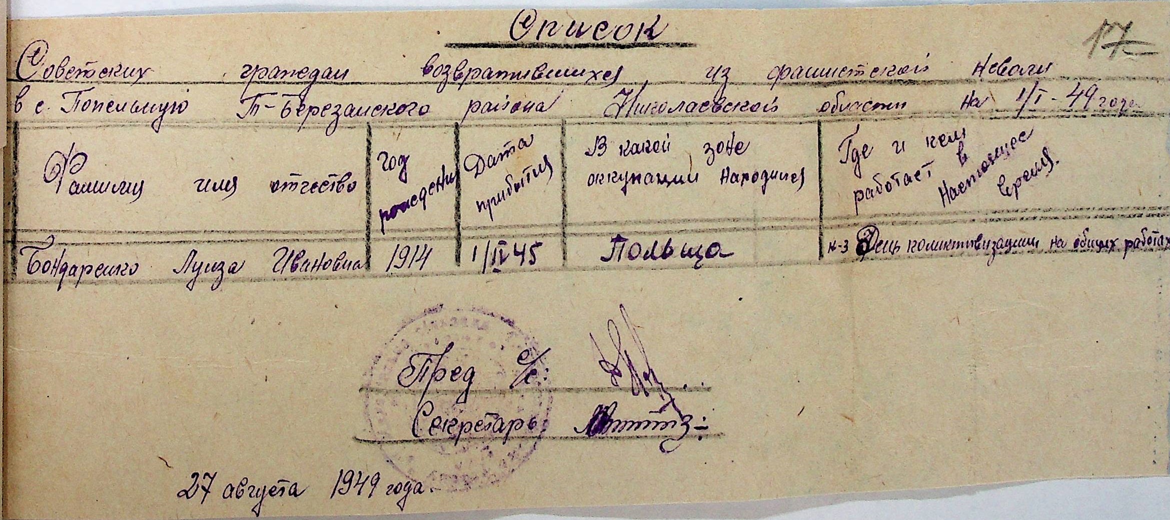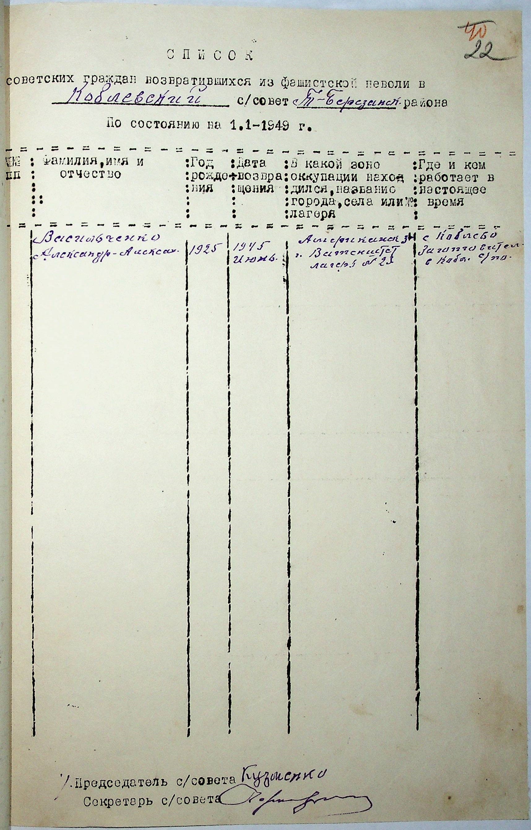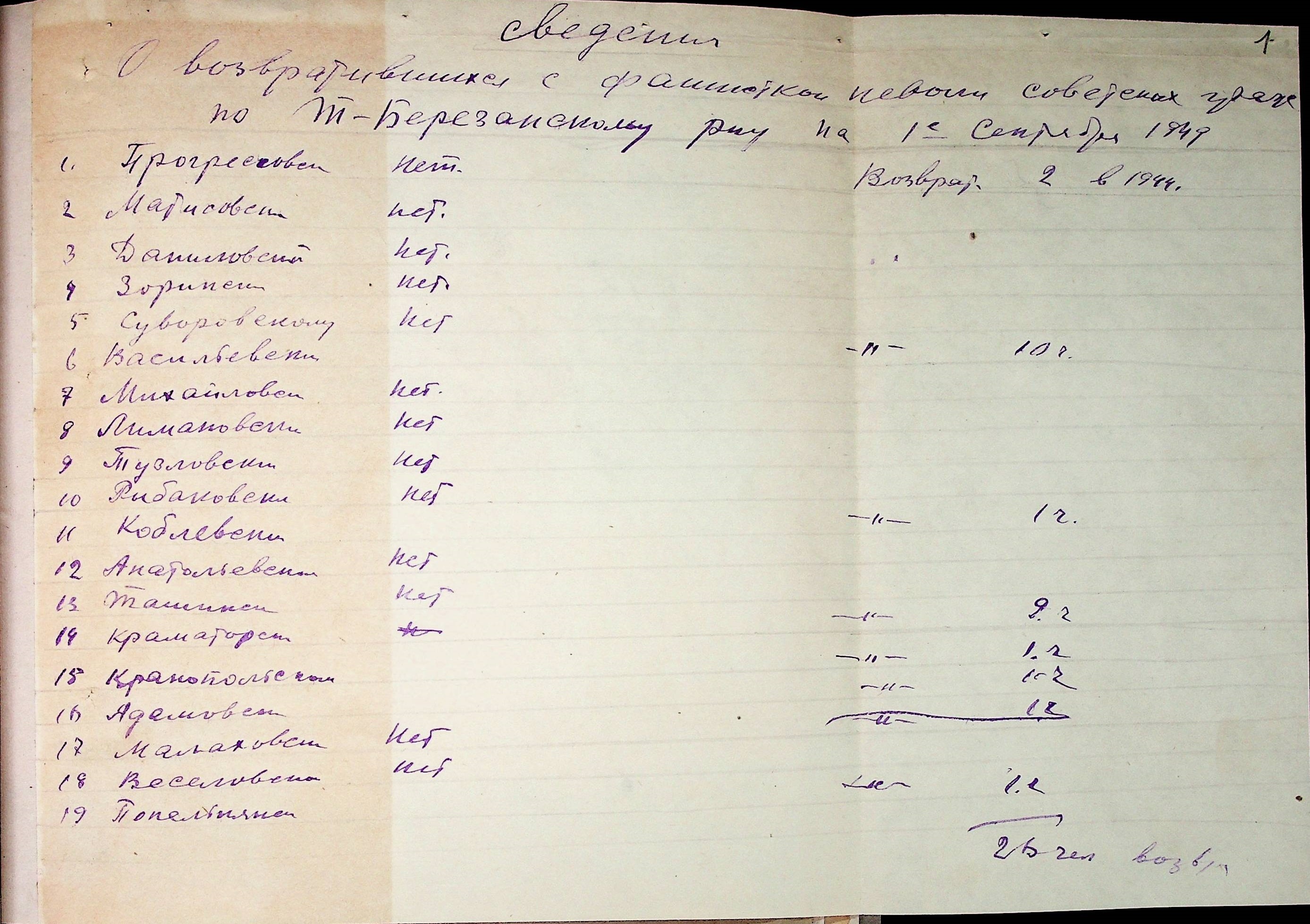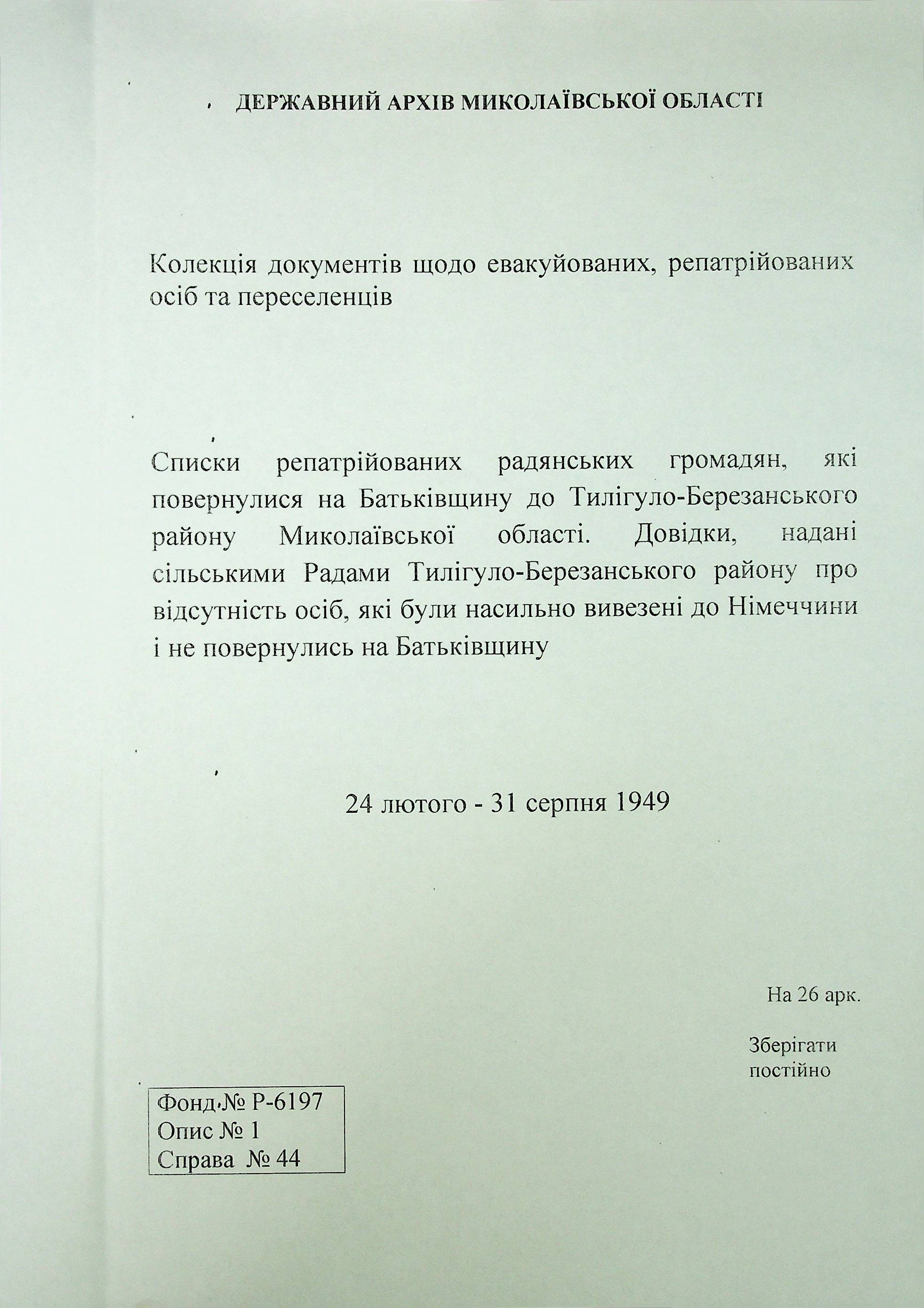 • • • • Справа № 44 “Списки репатрійованих радянських громадян, які повернулися на Батьківщину до Тилігуло-Березанського району Миколаївської області.