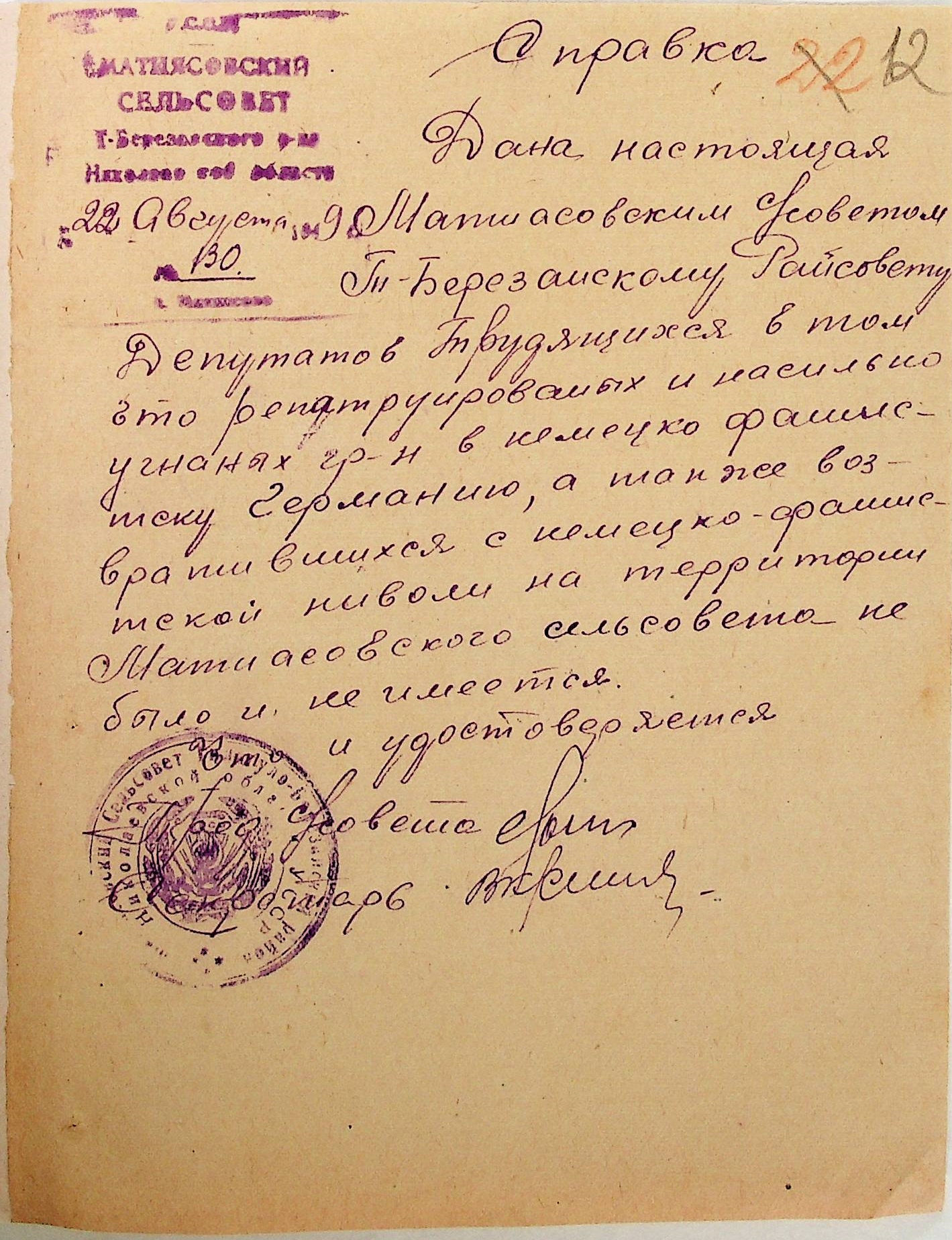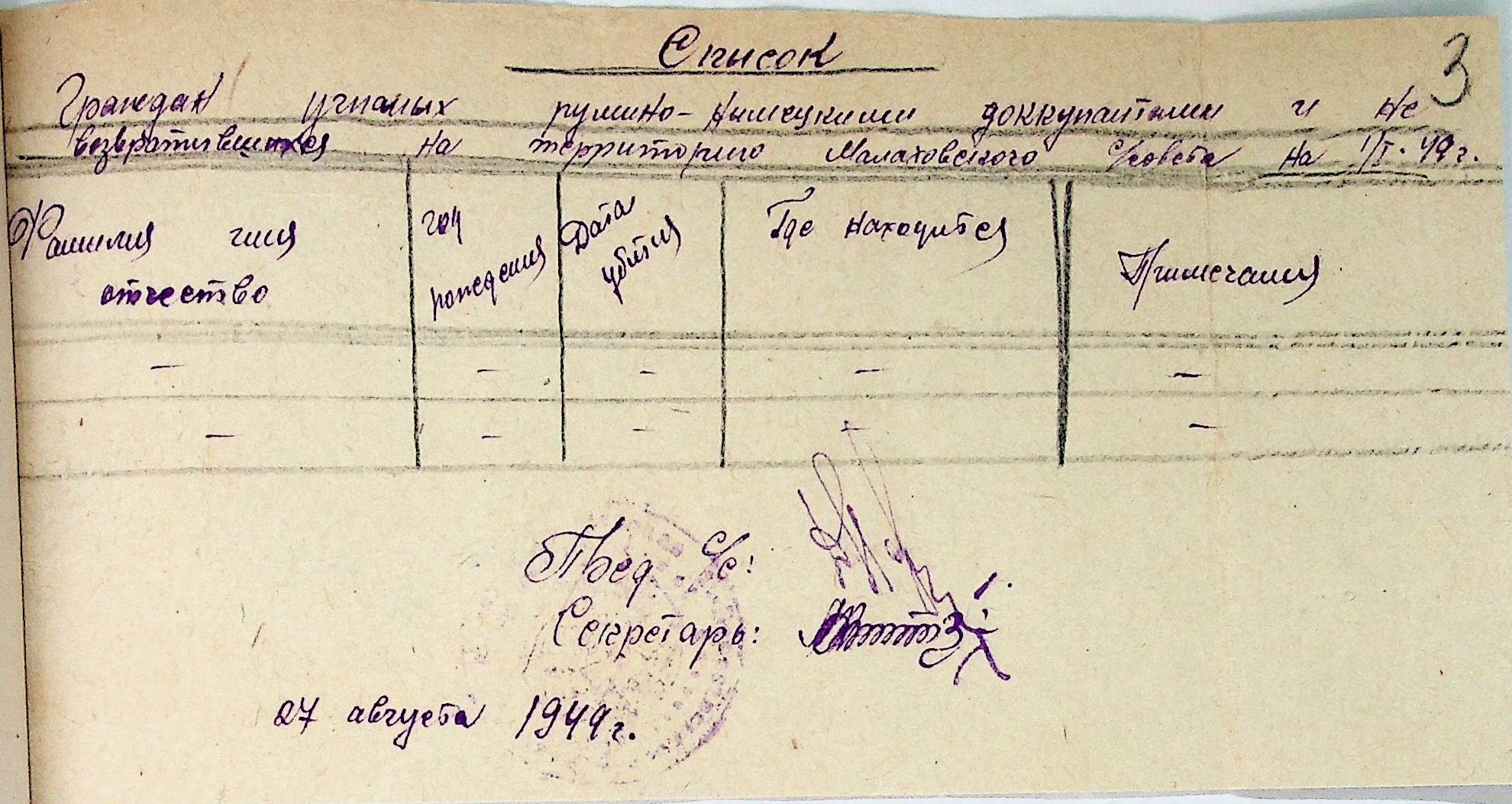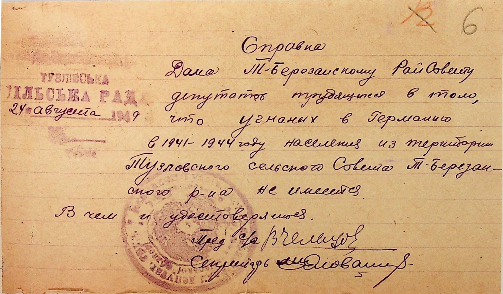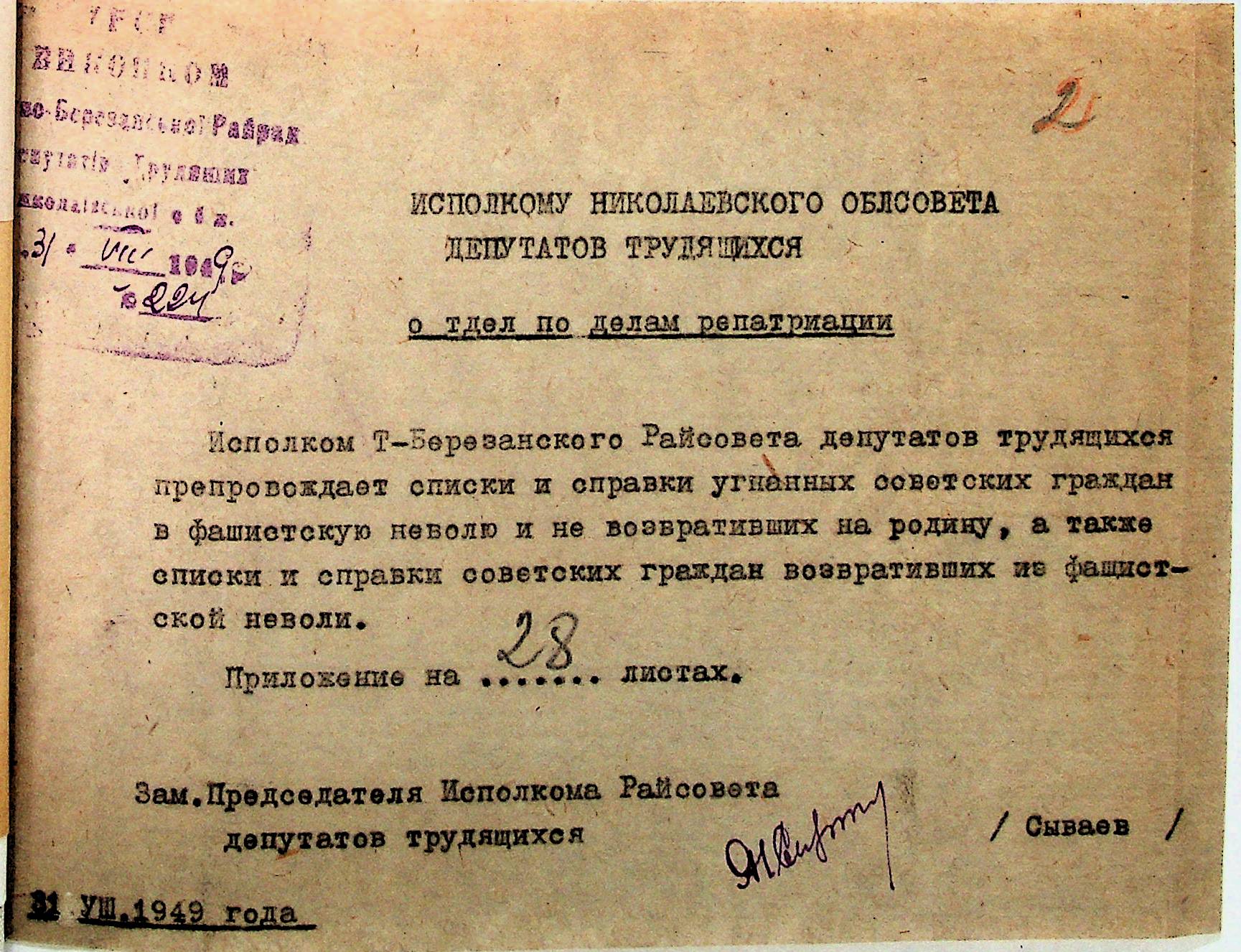 Довідки, надані сільськими Радами Тилігуло-Березанського району про відсутність осіб, які були насильно вивезені до Німеччини і не повернулись на Батьківщину”