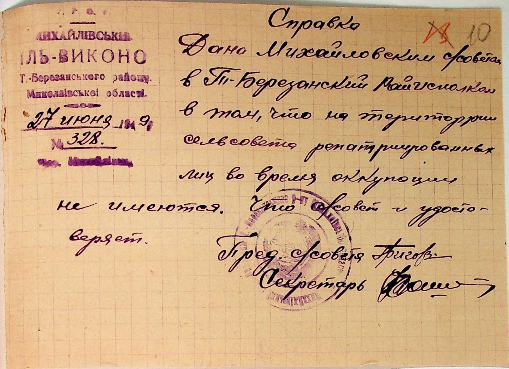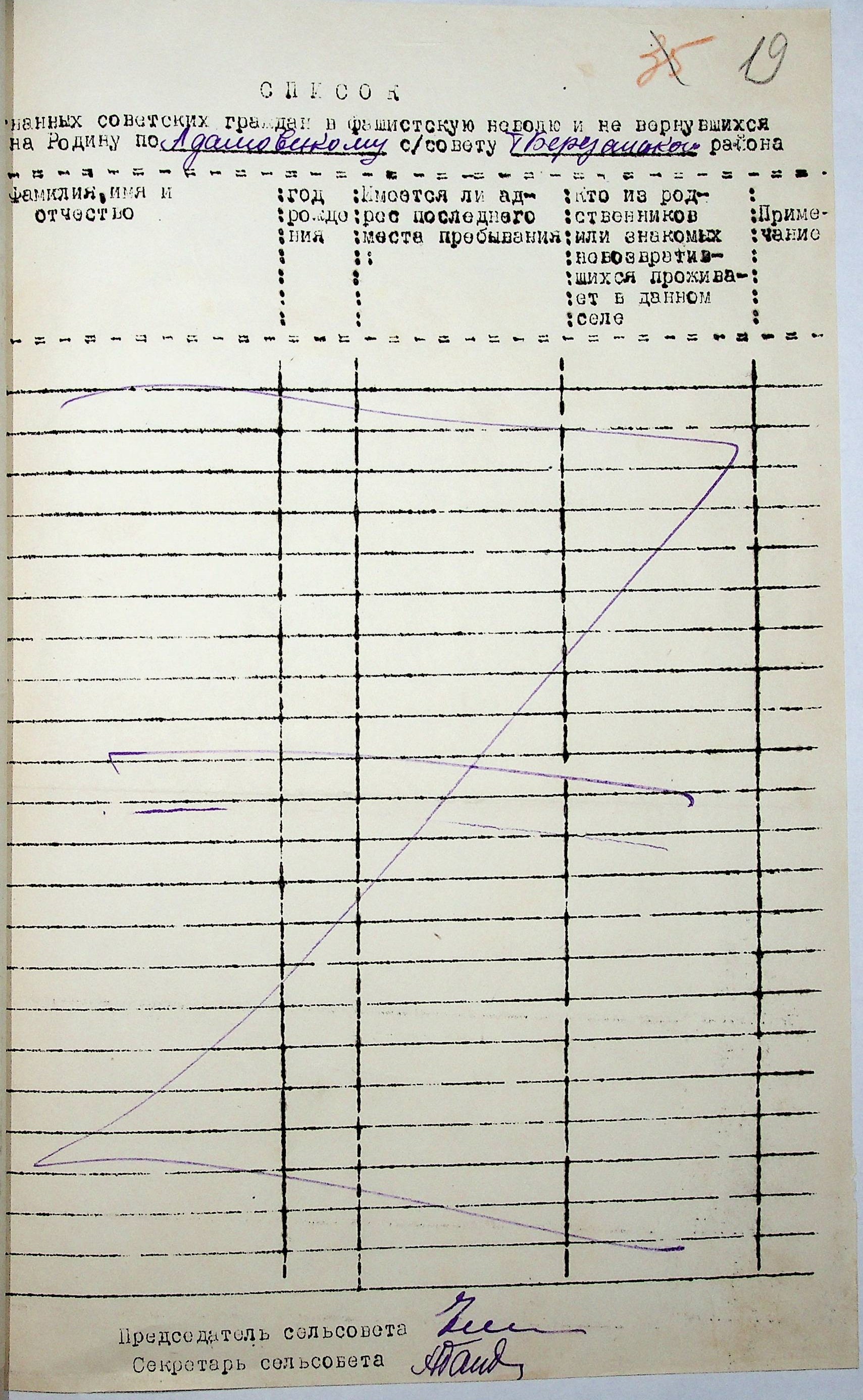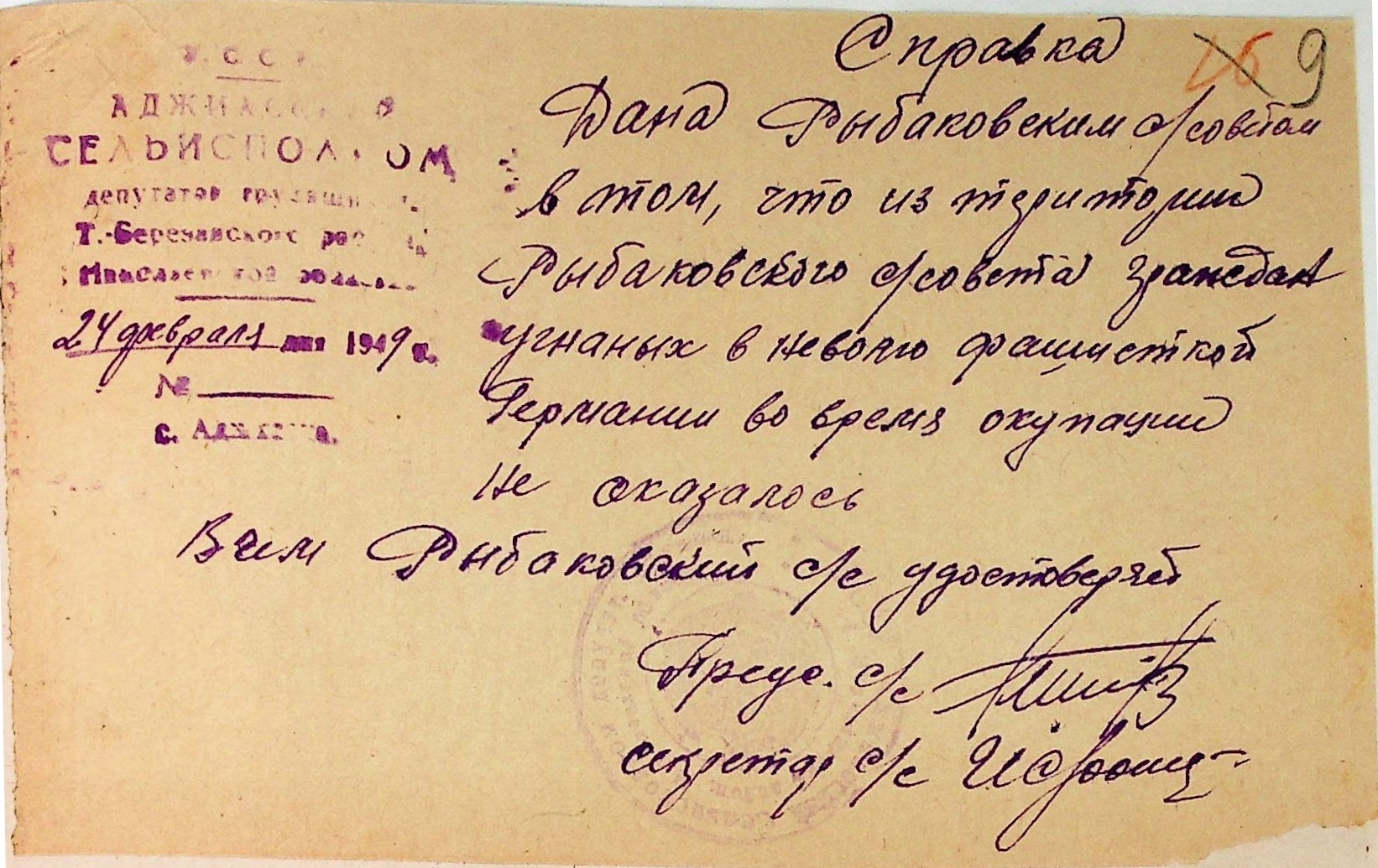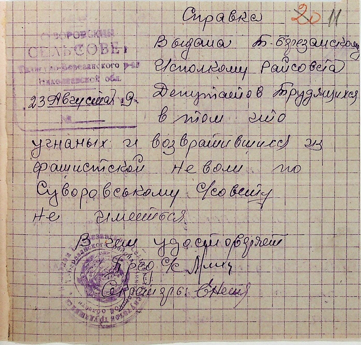 Довідки, надані сільськими Радами Тилігуло-Березанського району про відсутність осіб, які були насильно вивезені до Німеччини і не повернулись на Батьківщину”