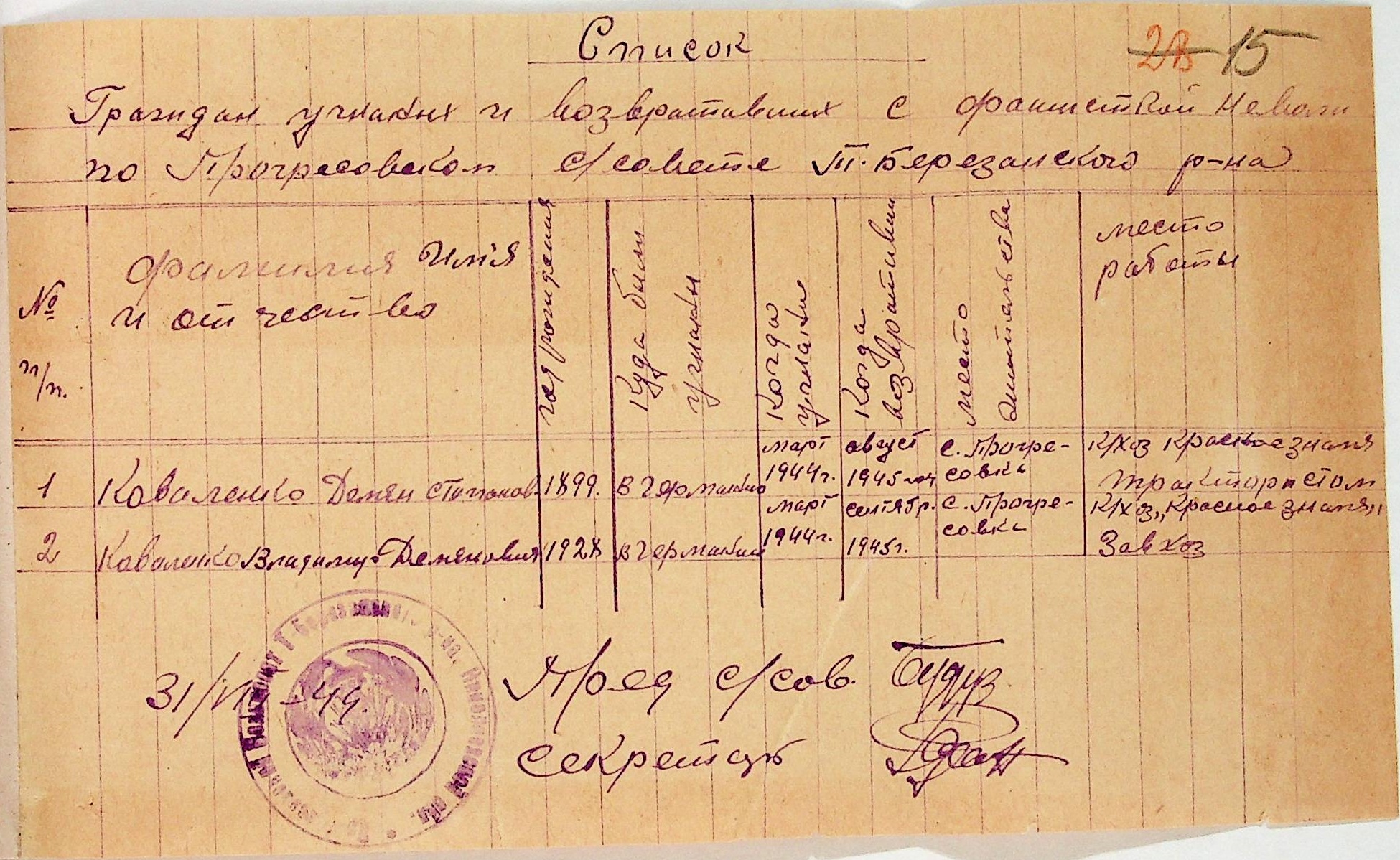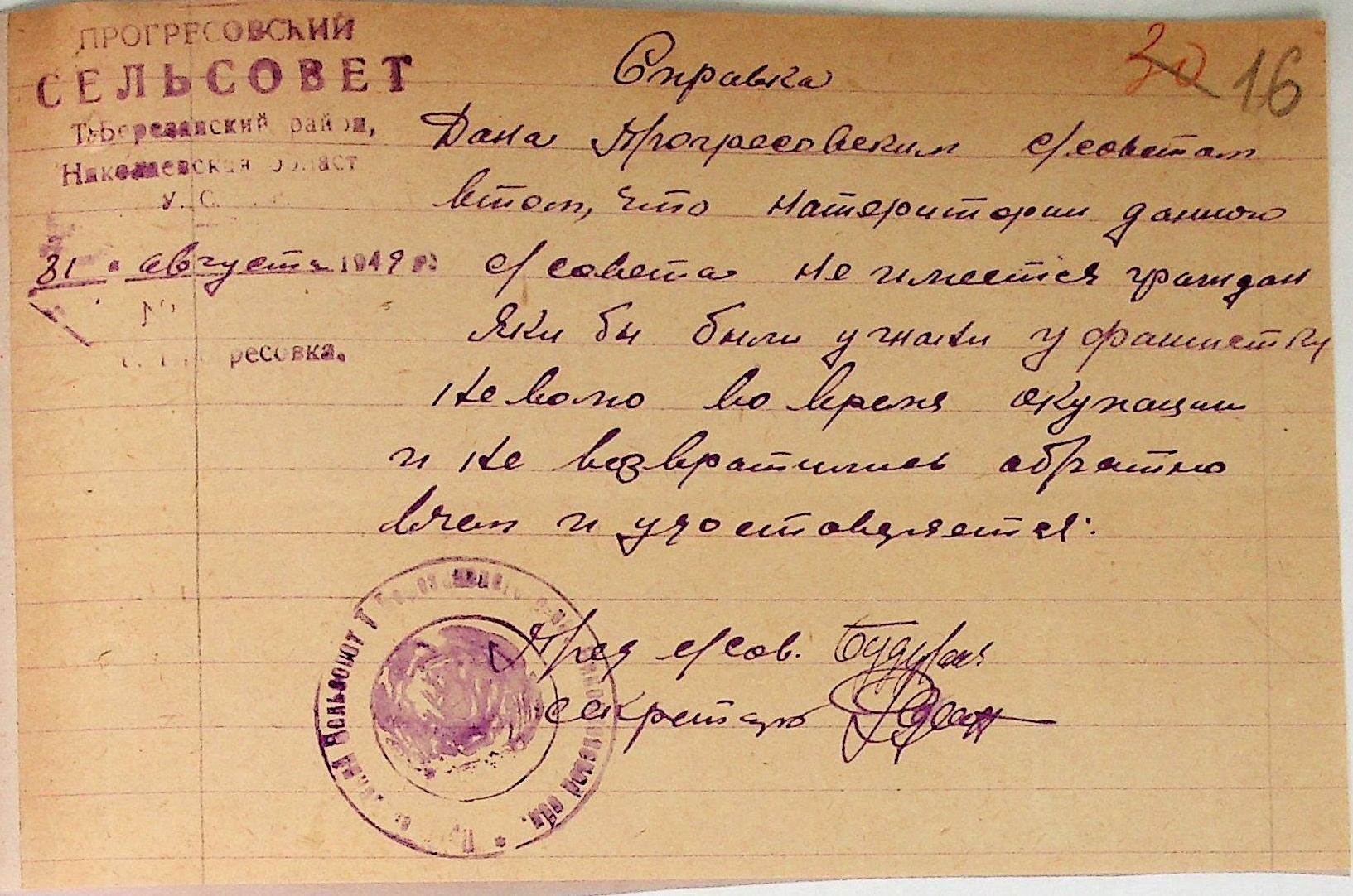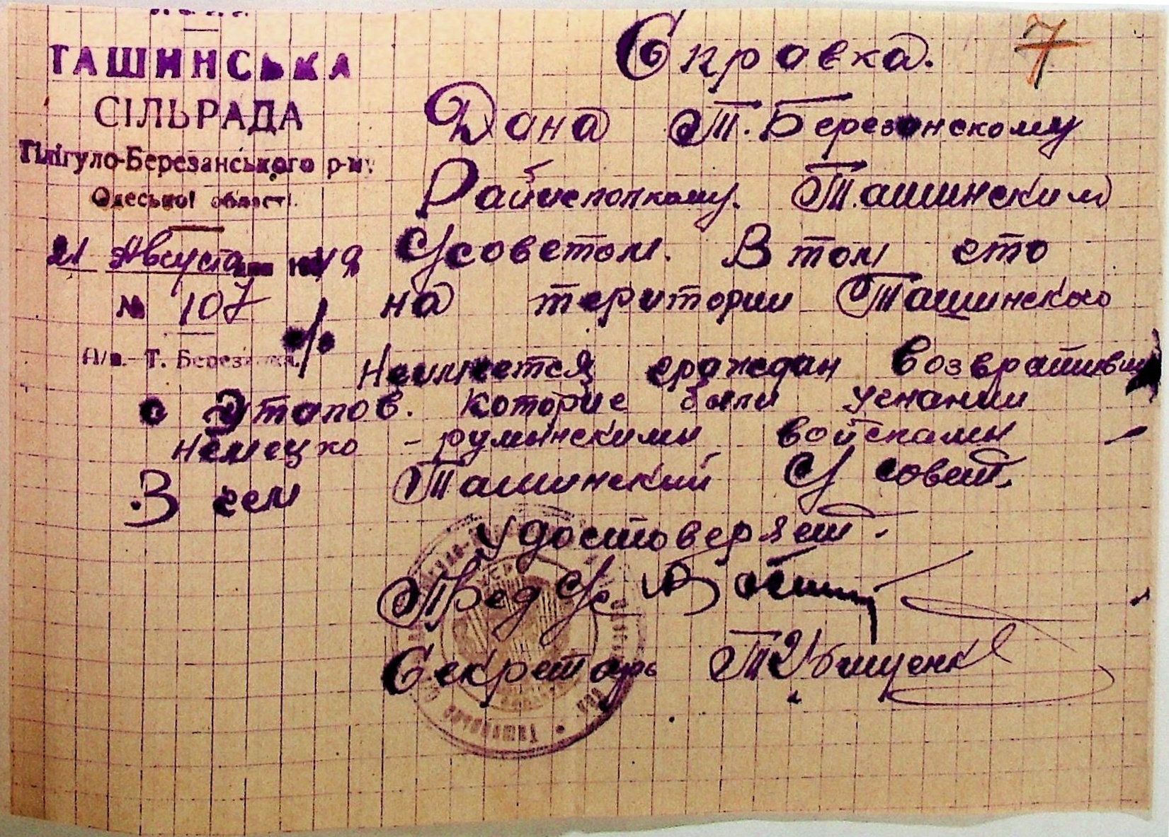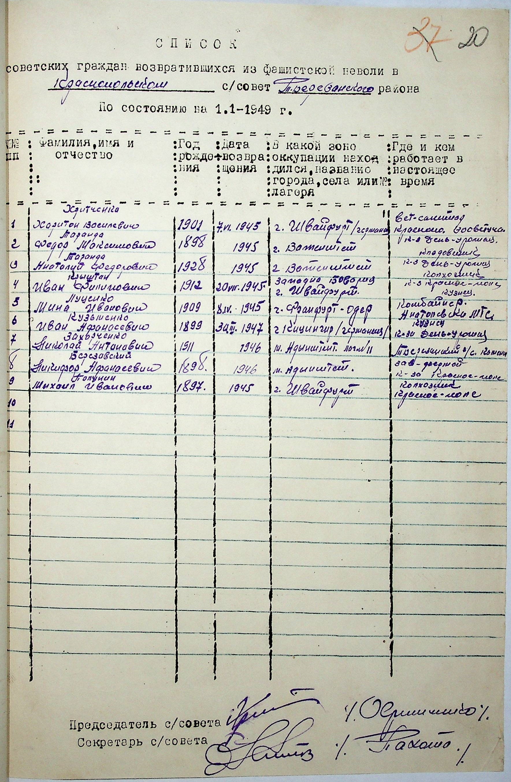 Довідки, надані сільськими Радами Тилігуло-Березанського району про відсутність осіб, які були насильно вивезені до Німеччини і не повернулись на Батьківщину”