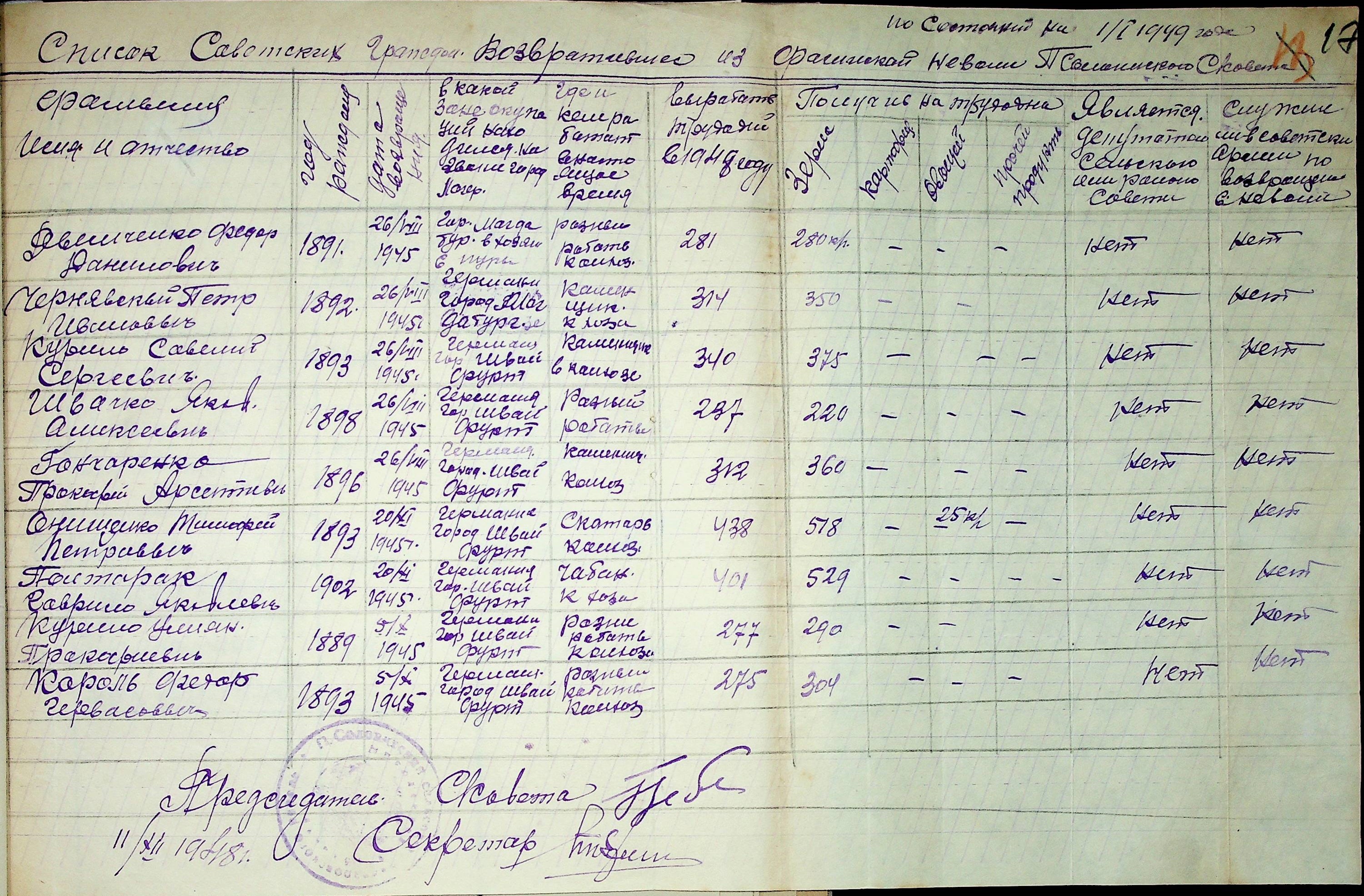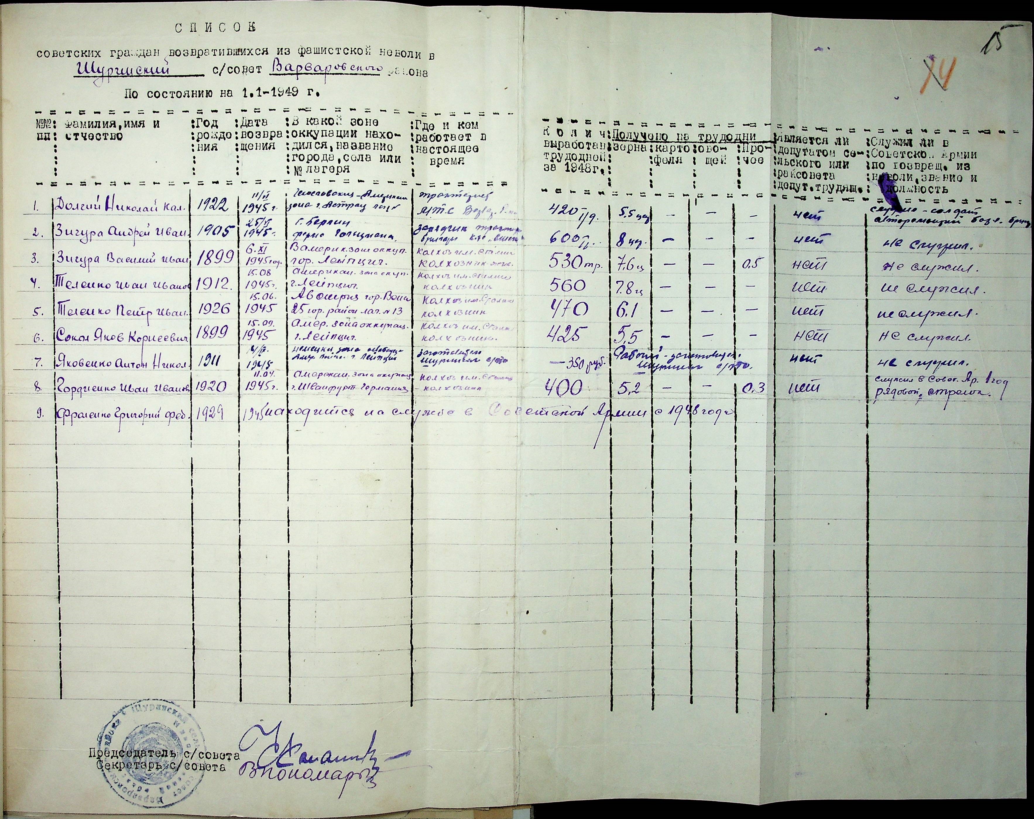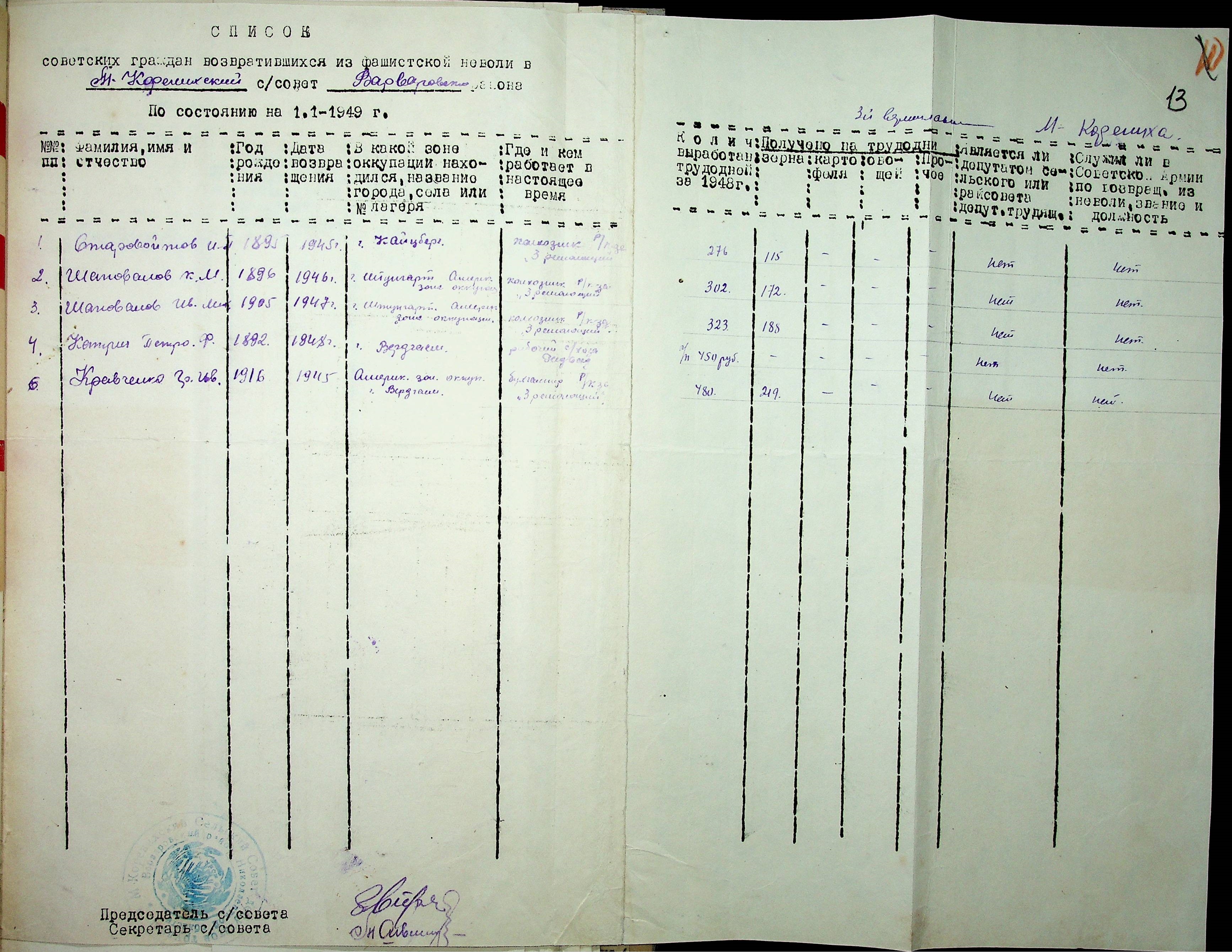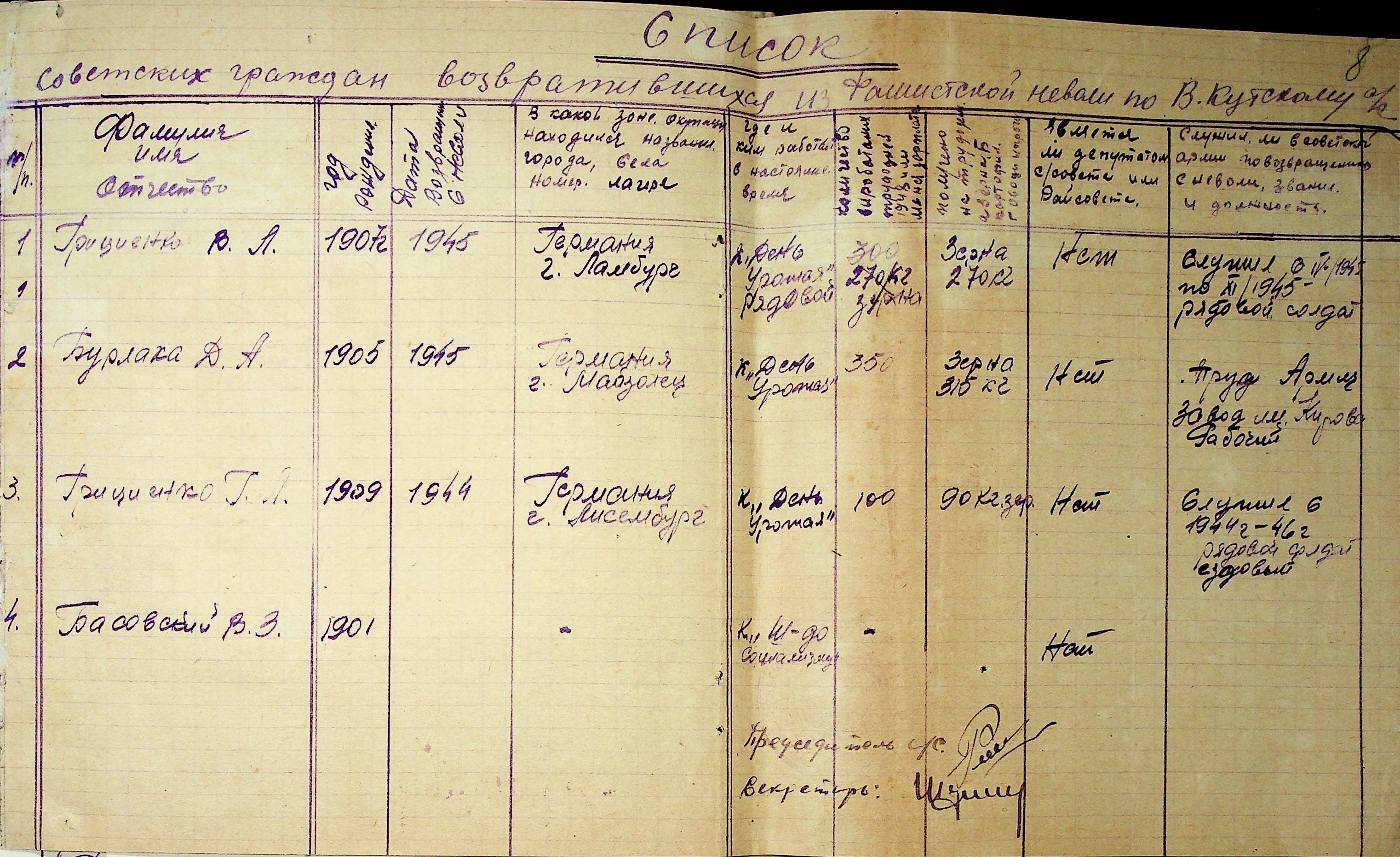 • • • • Справа № 46 “Списки репатрійованих радянських громадян, які повернулися на Батьківщину до Варварівського району Миколаївської області.