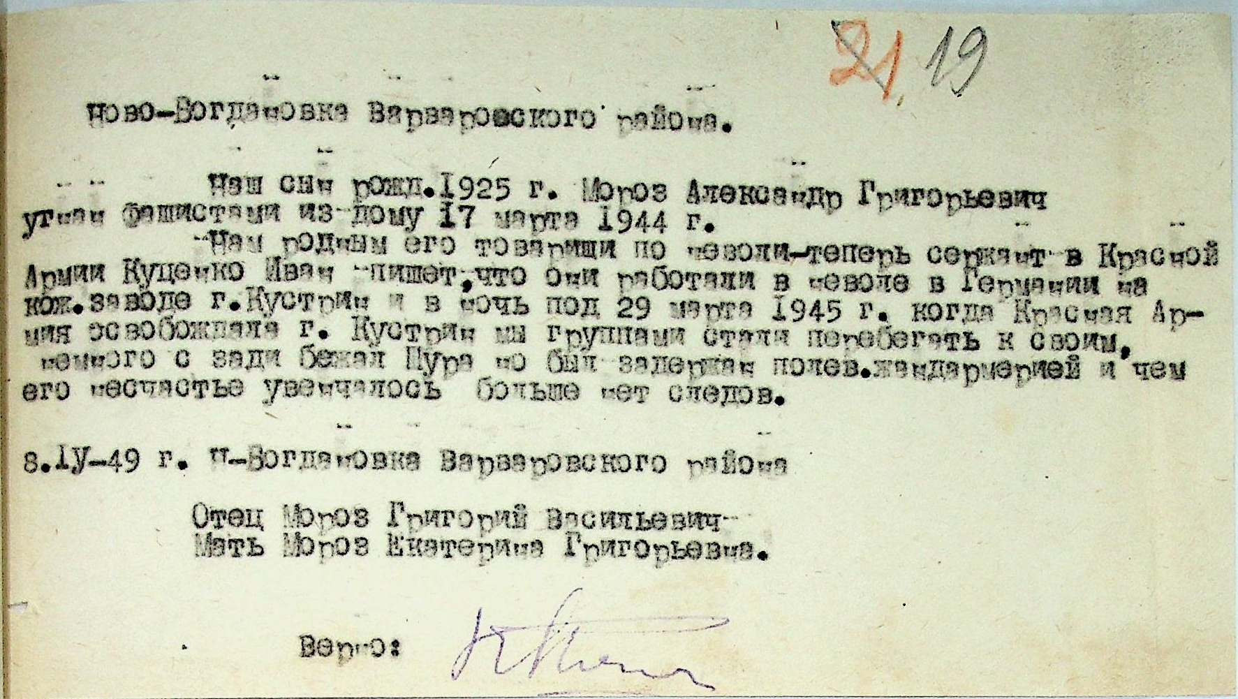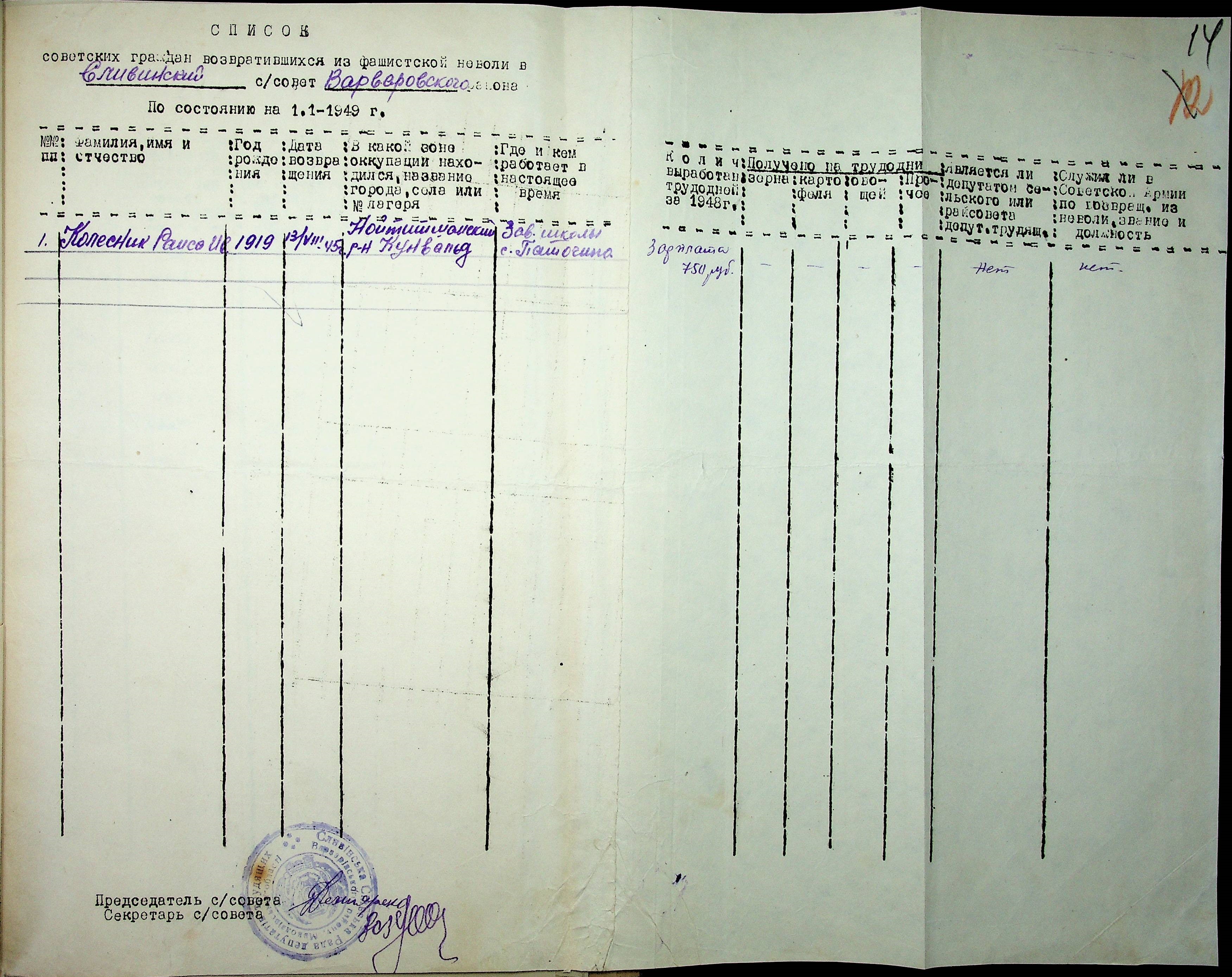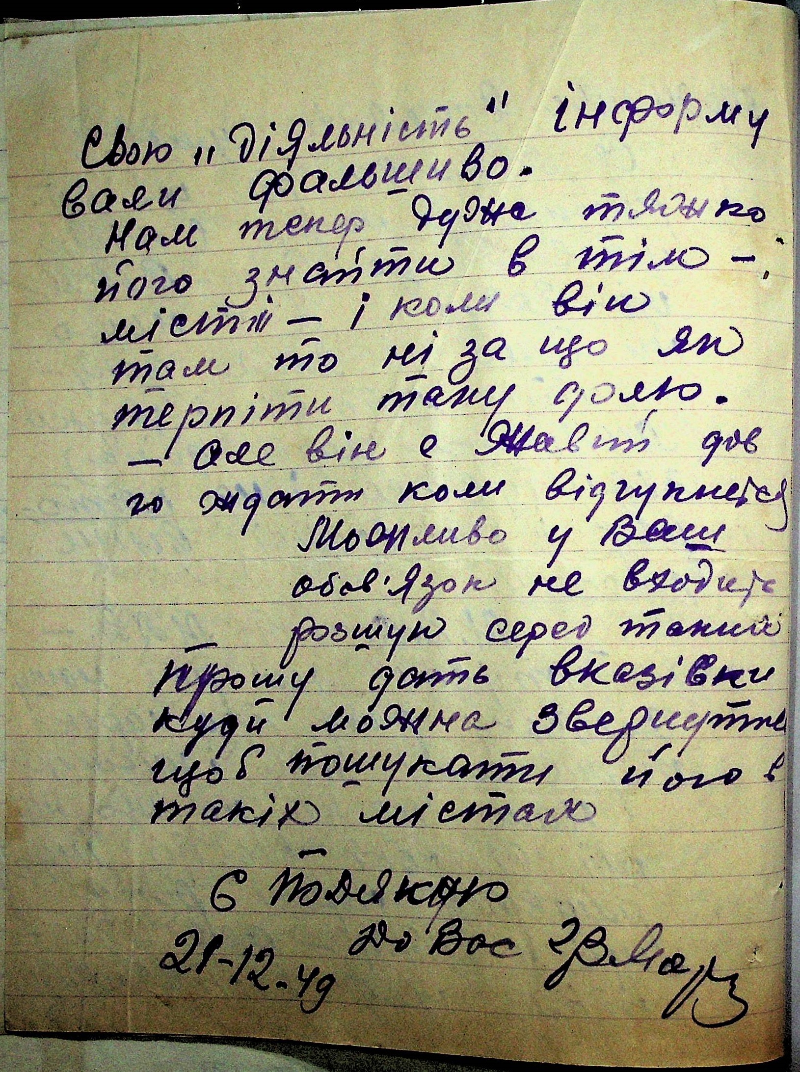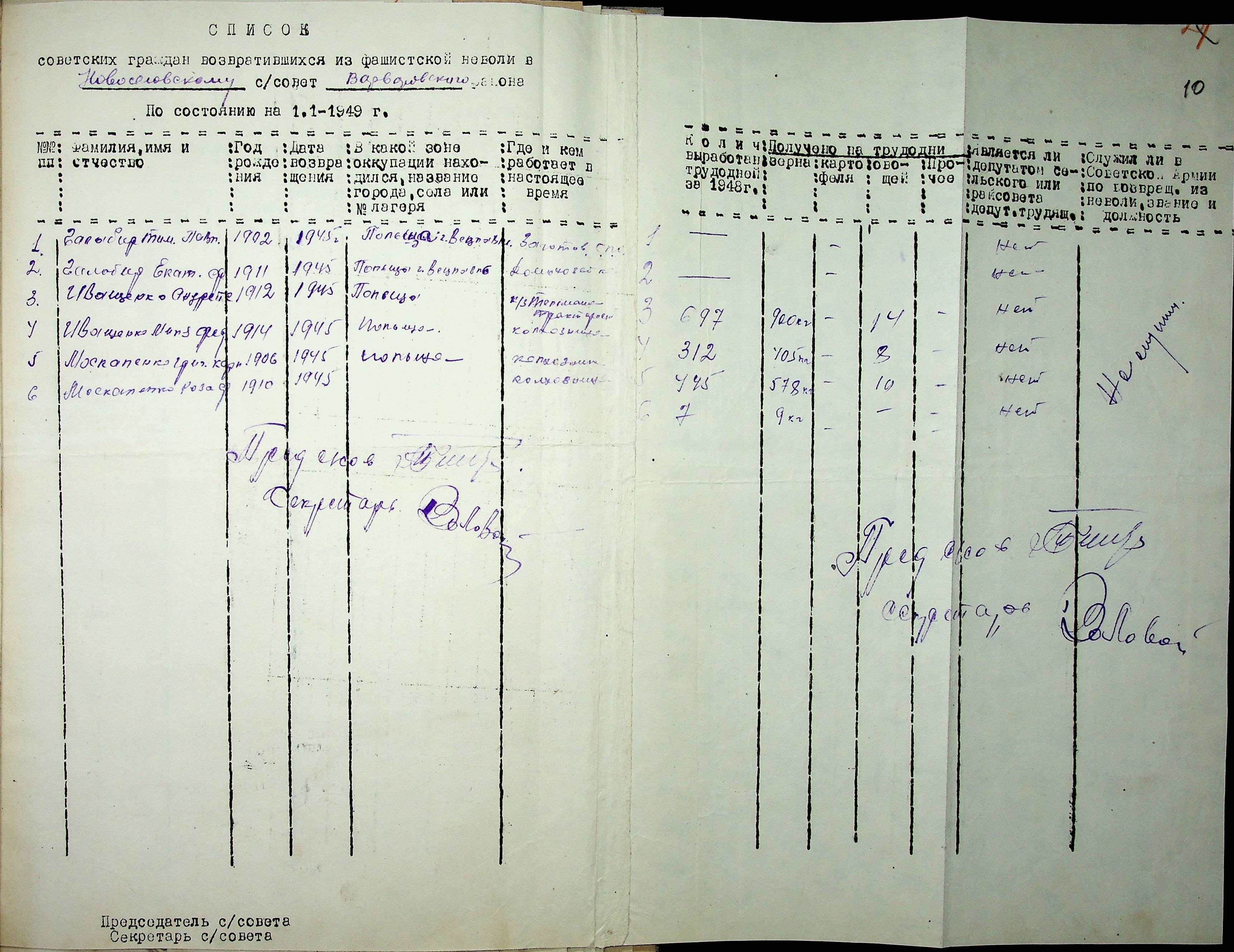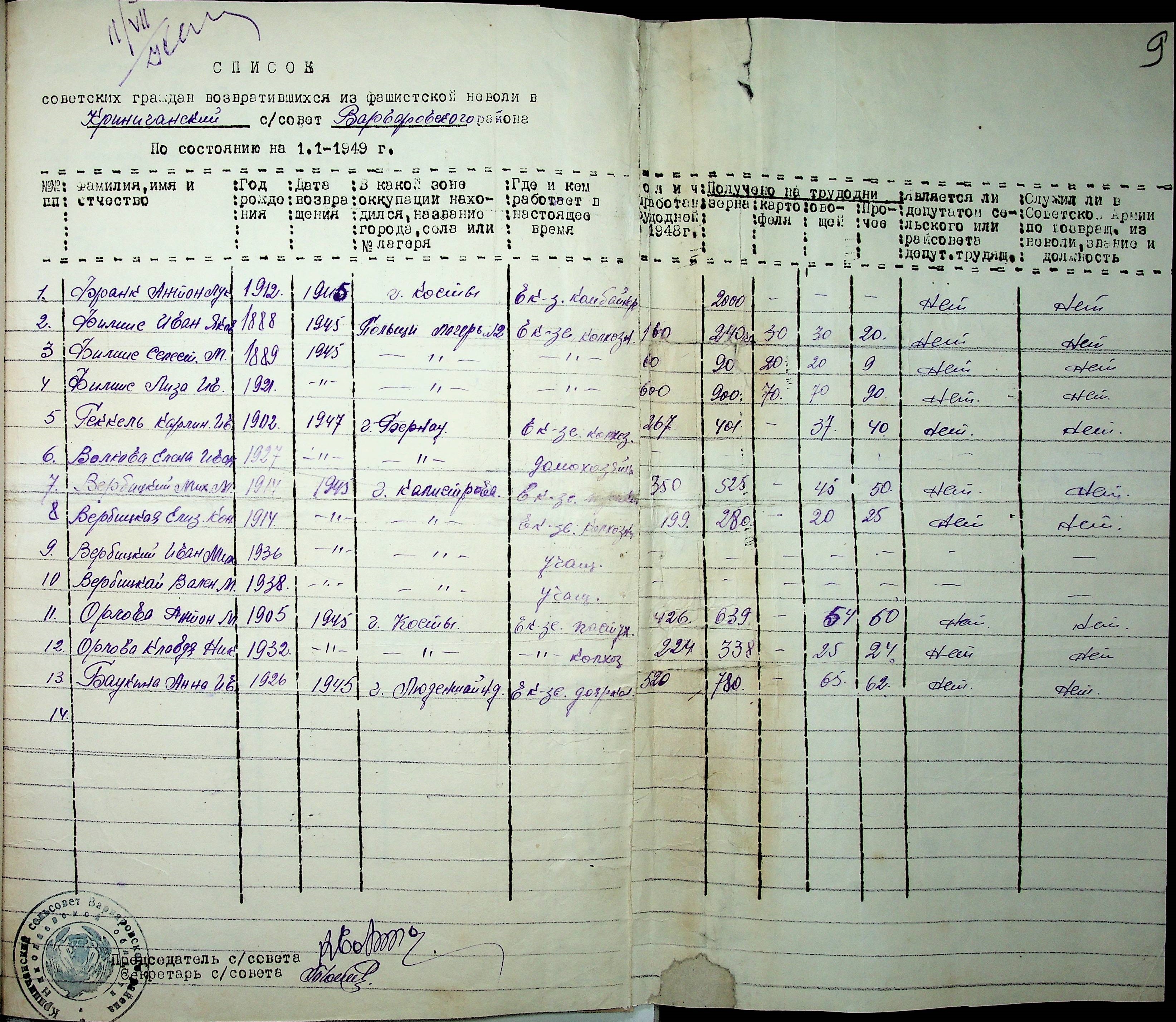 Листування відділу у справах репатріації виконкому Микола-ївської облради депутатів трудящих з сільрадами Варварівського району з питань розшуку та обліку радянських громадян”