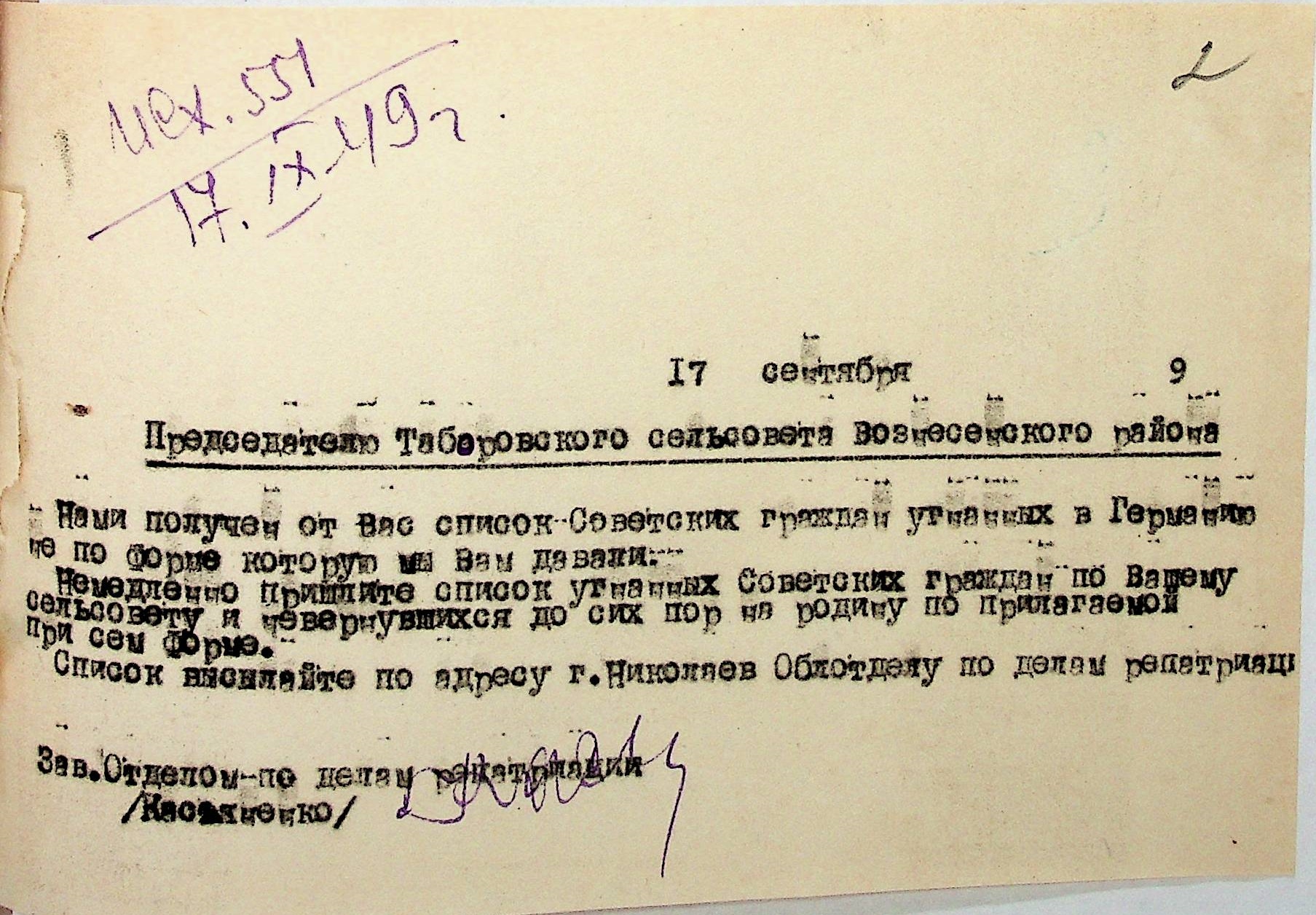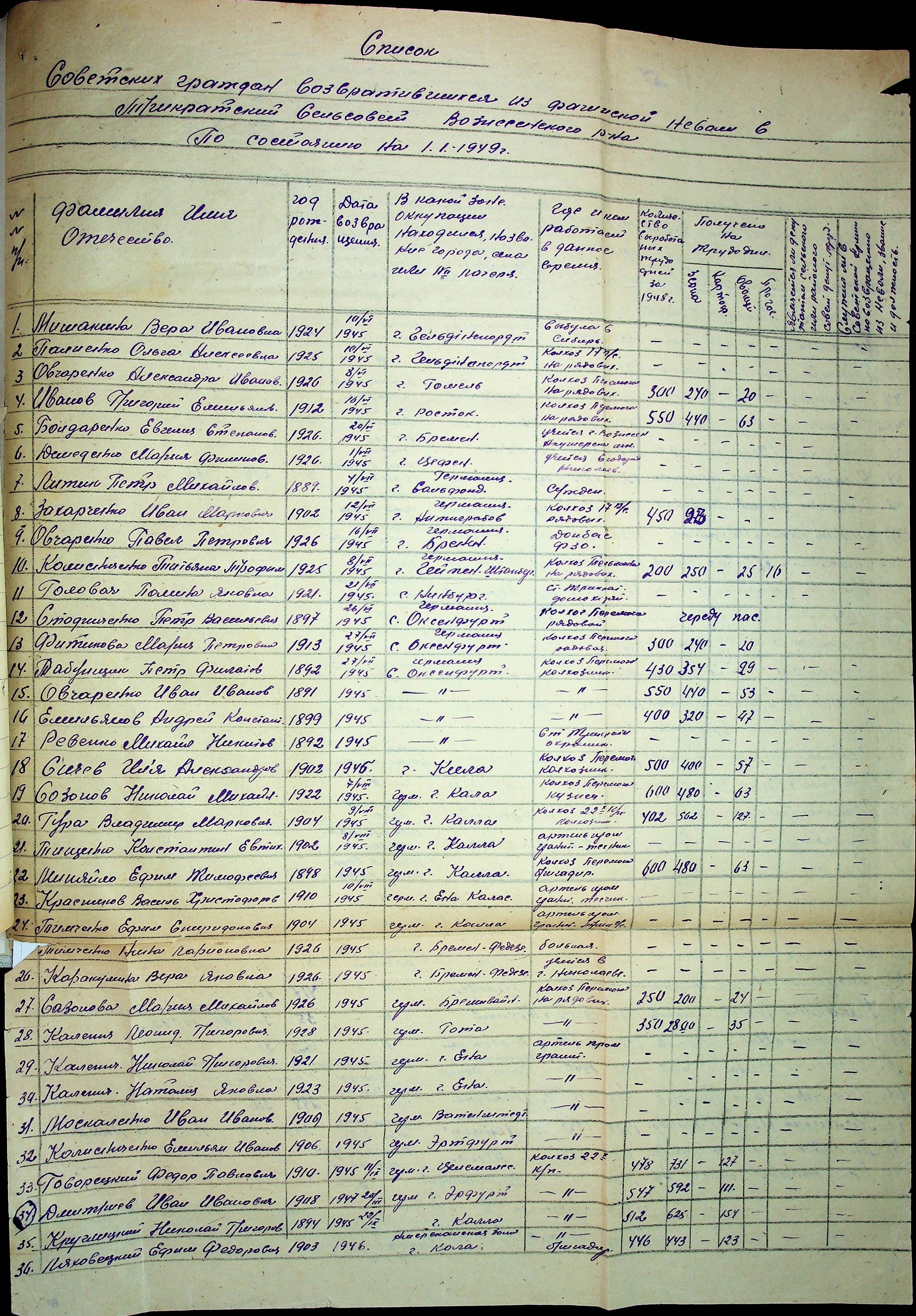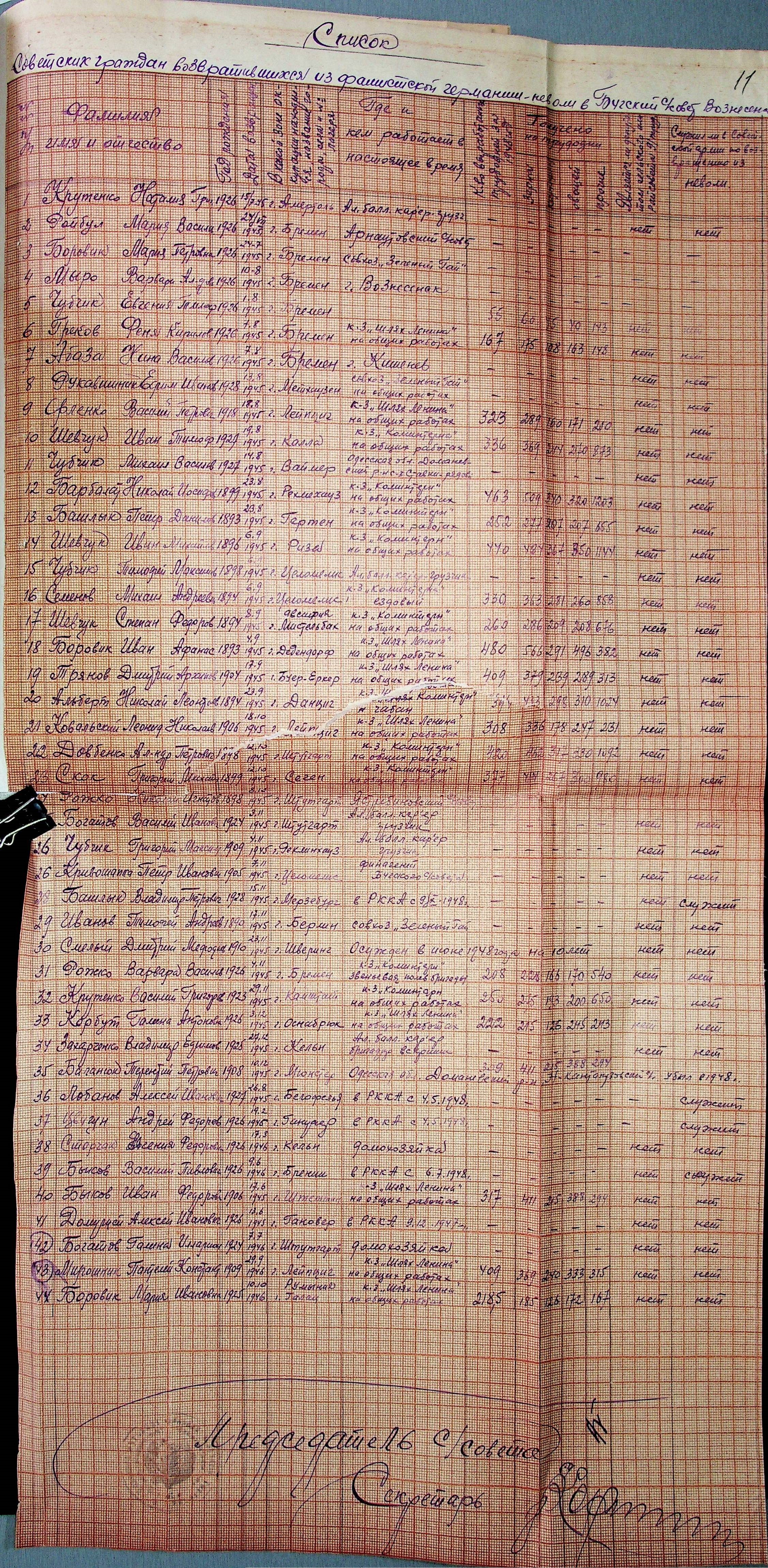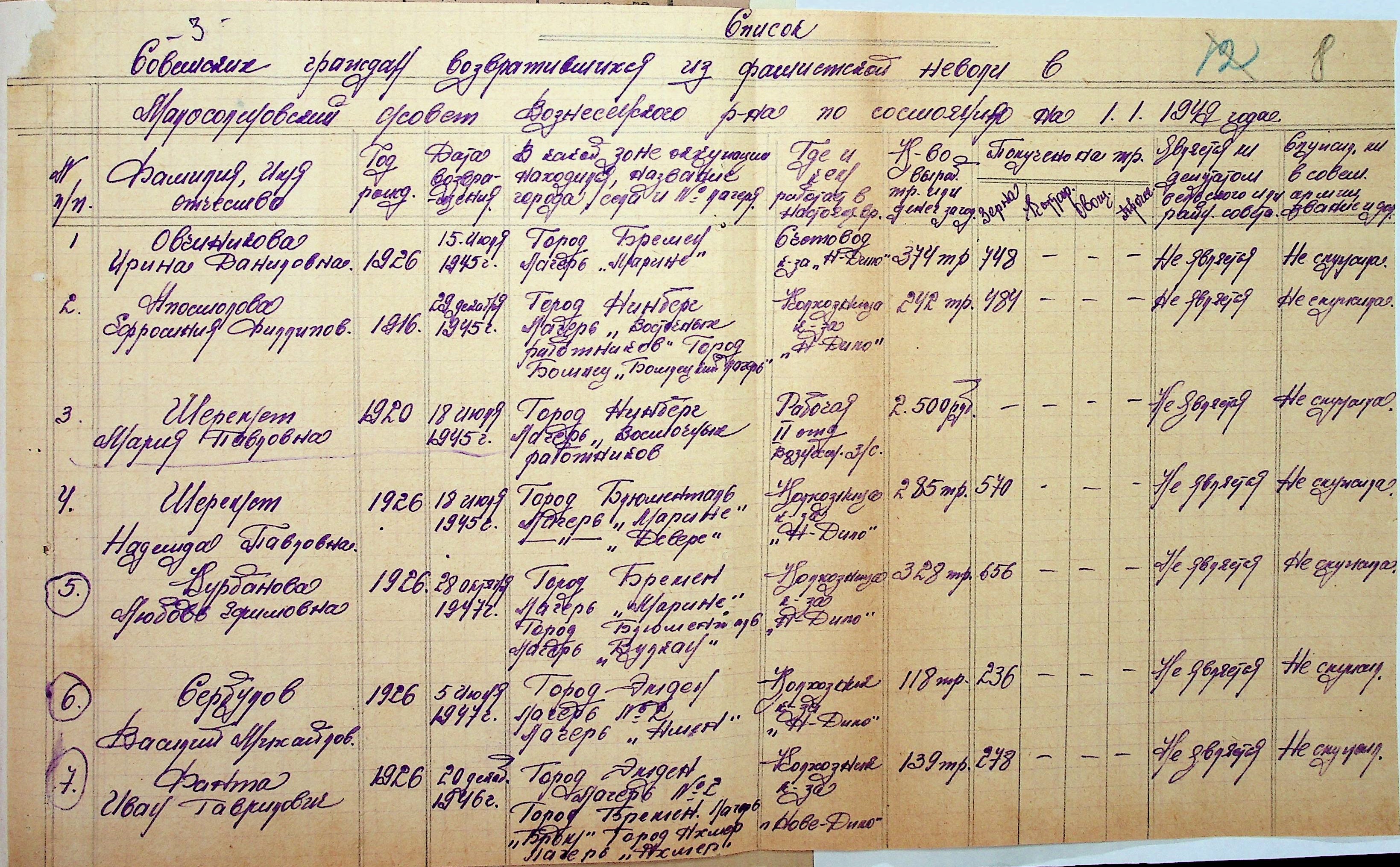 • • • • Справа № 48 “Списки репатрійованих радянських громадян, які повернулися на Батьківщину до Вознесенського району Миколаївської області.