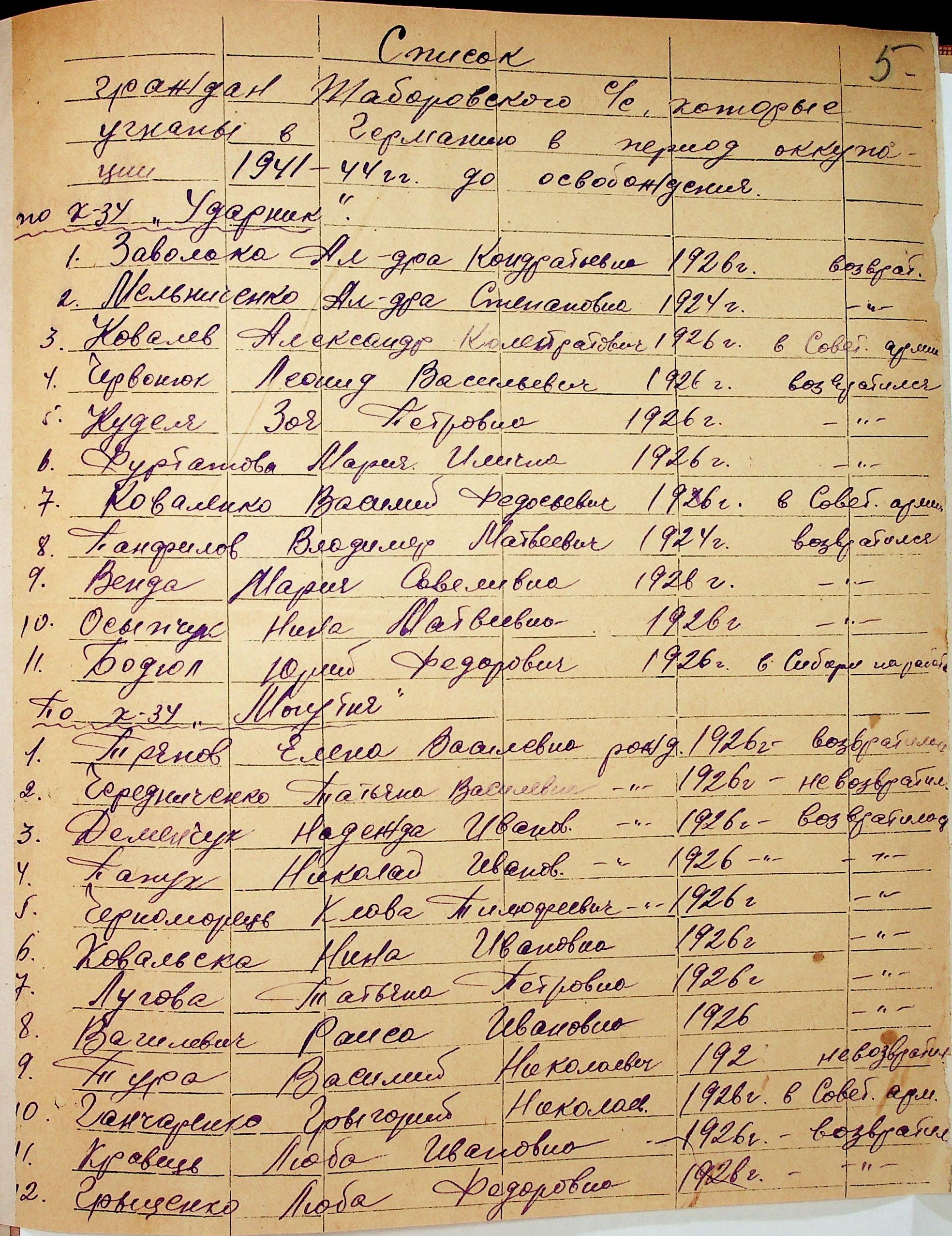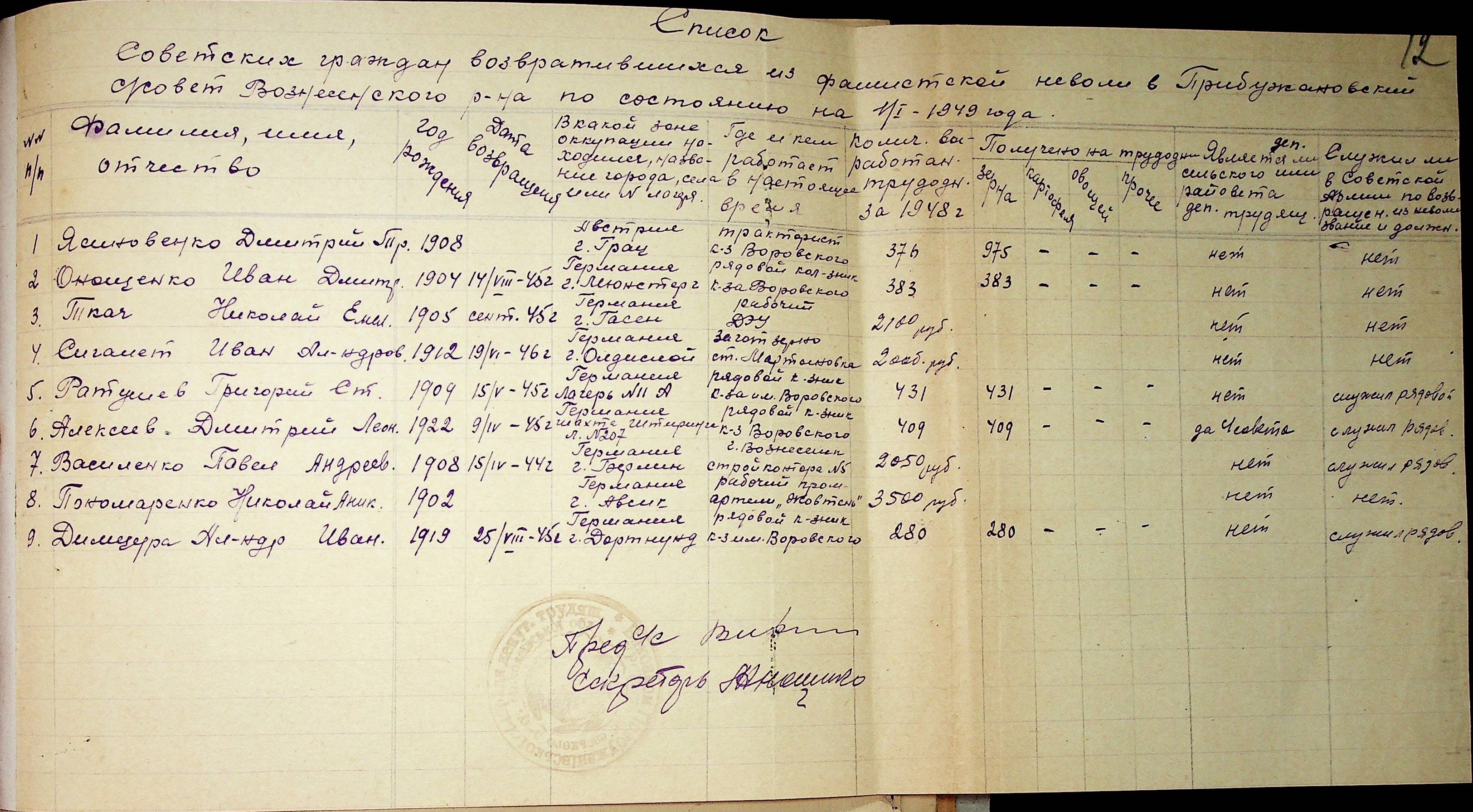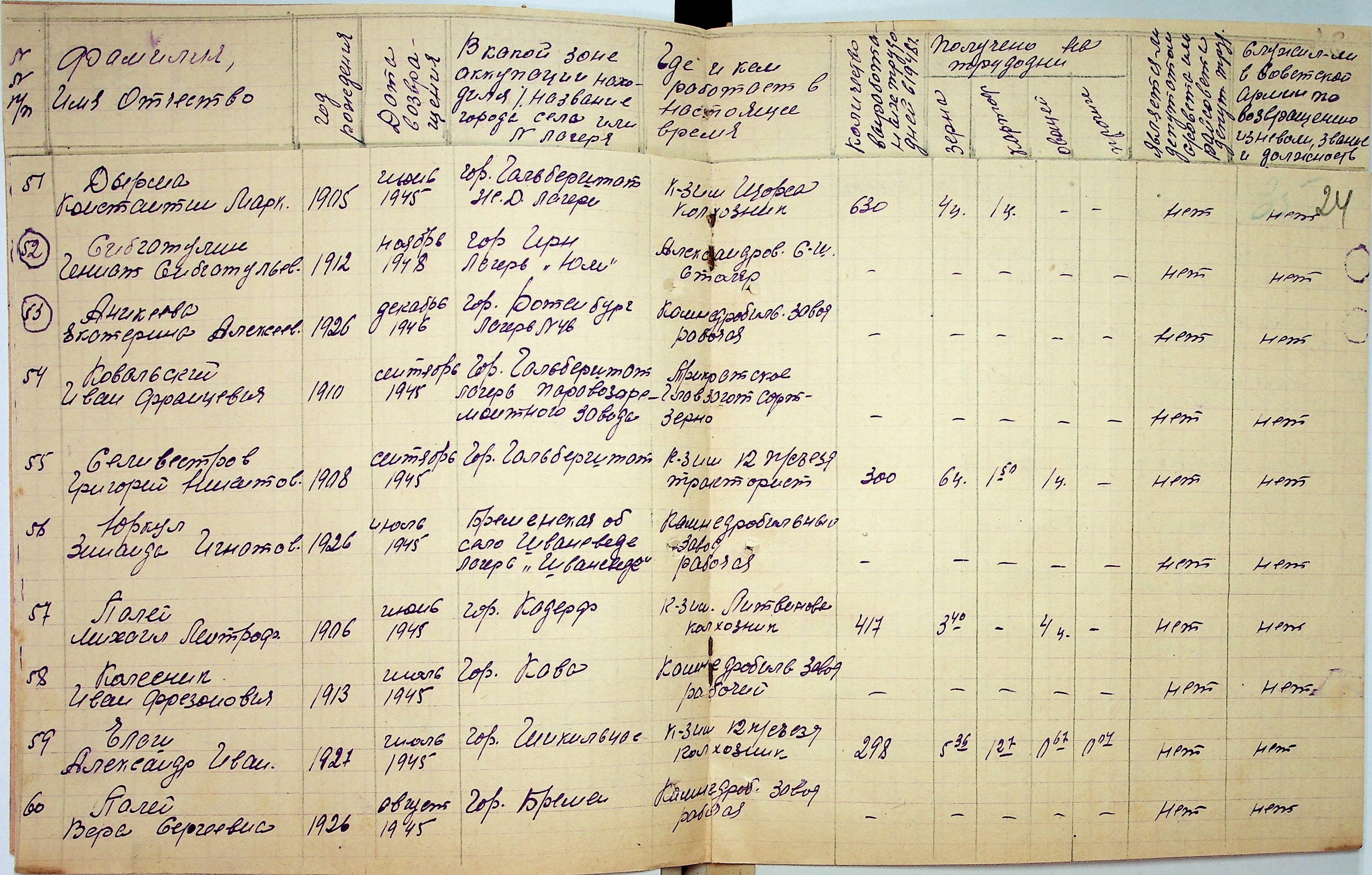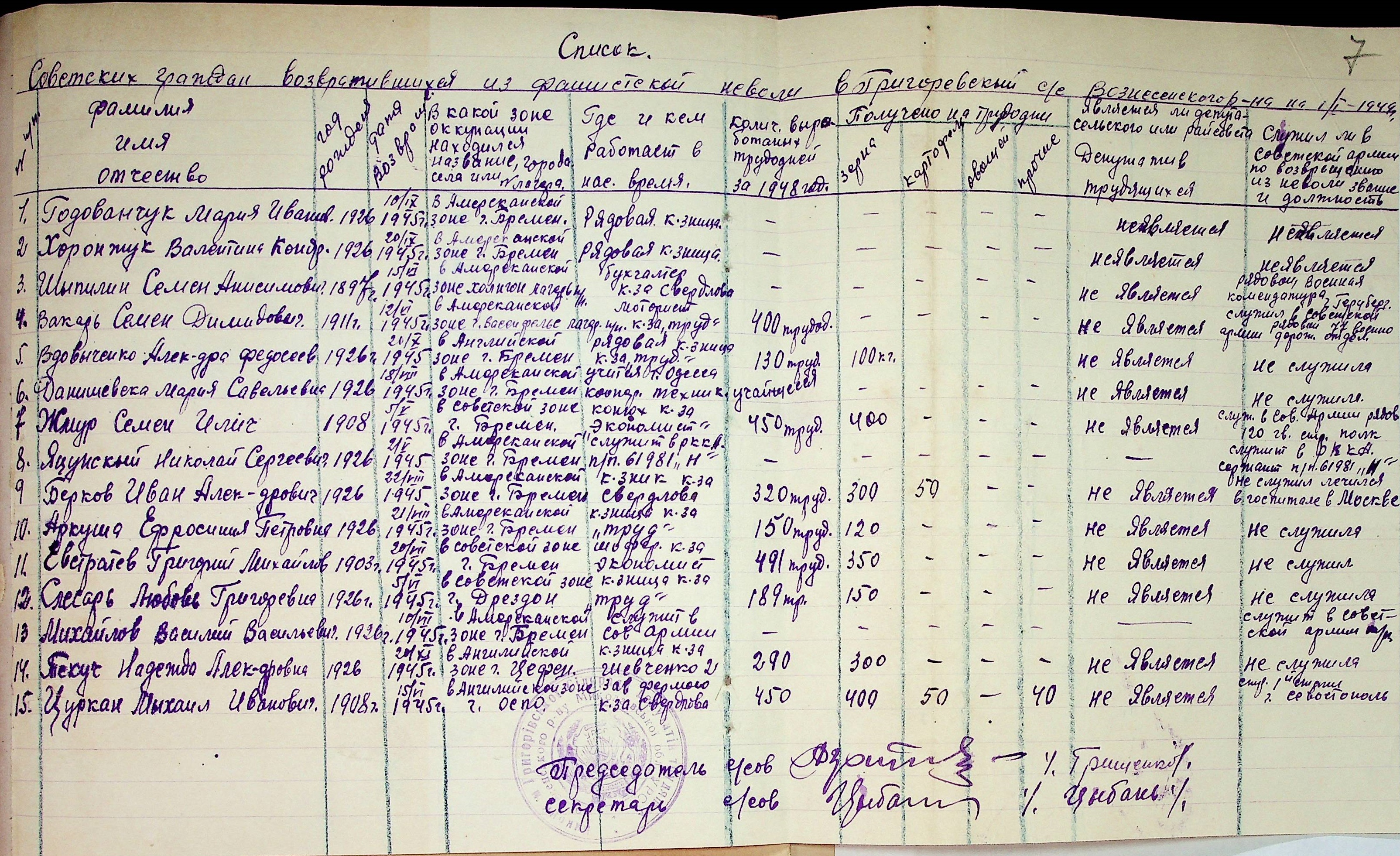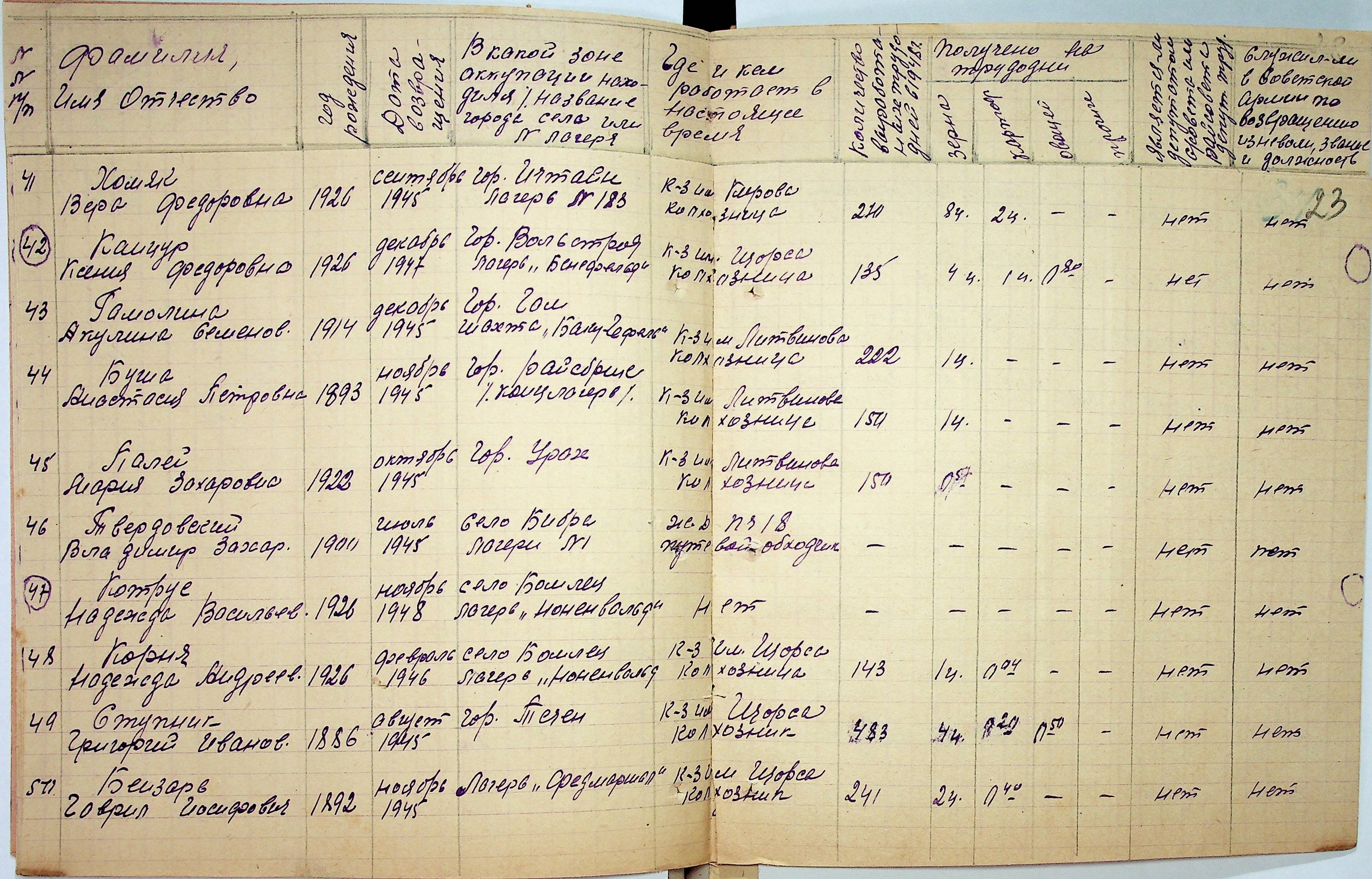 • • • • Справа № 48 “Списки репатрійованих радянських громадян, які повернулися на Батьківщину до Вознесенського району Миколаївської області.