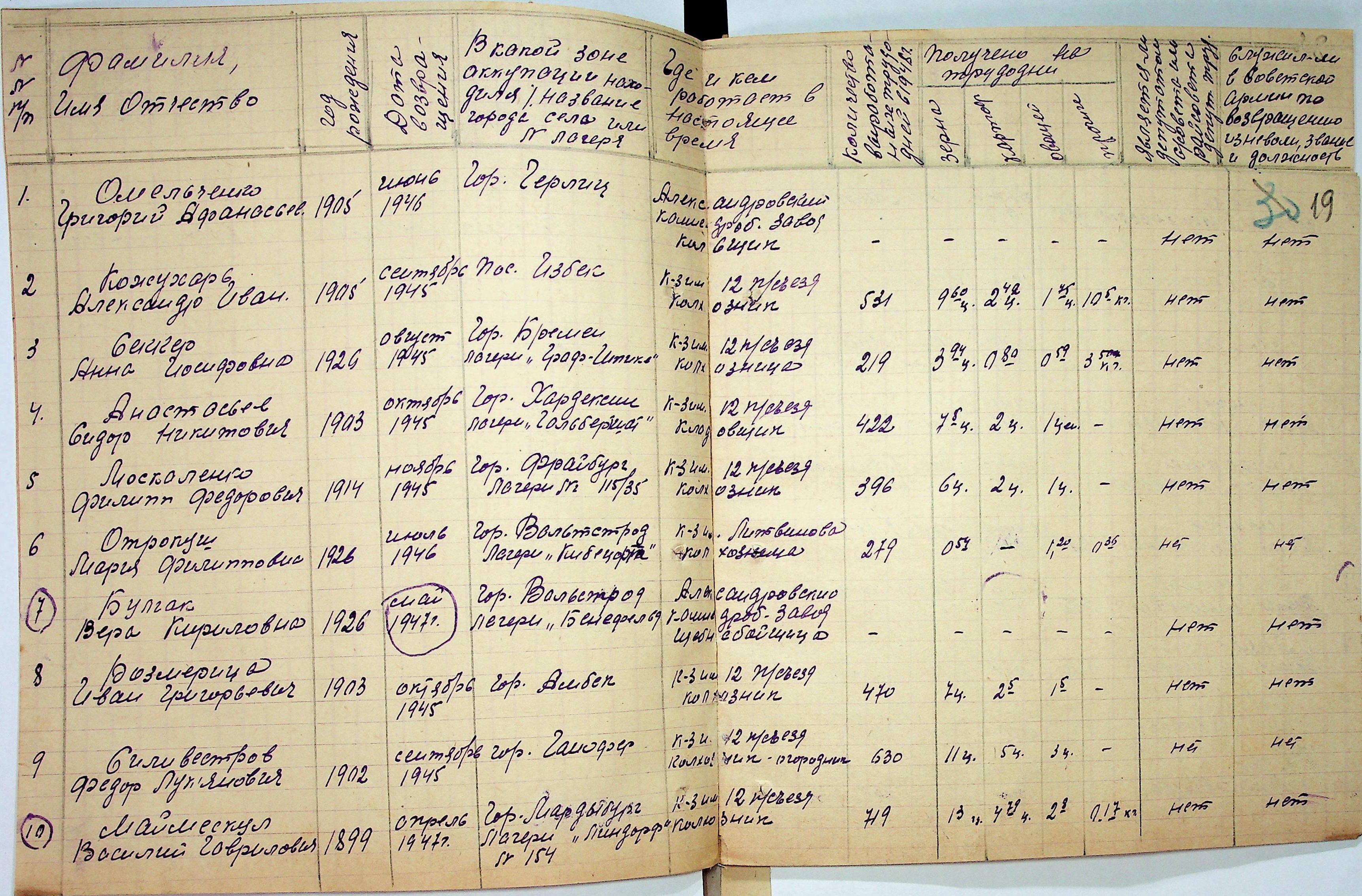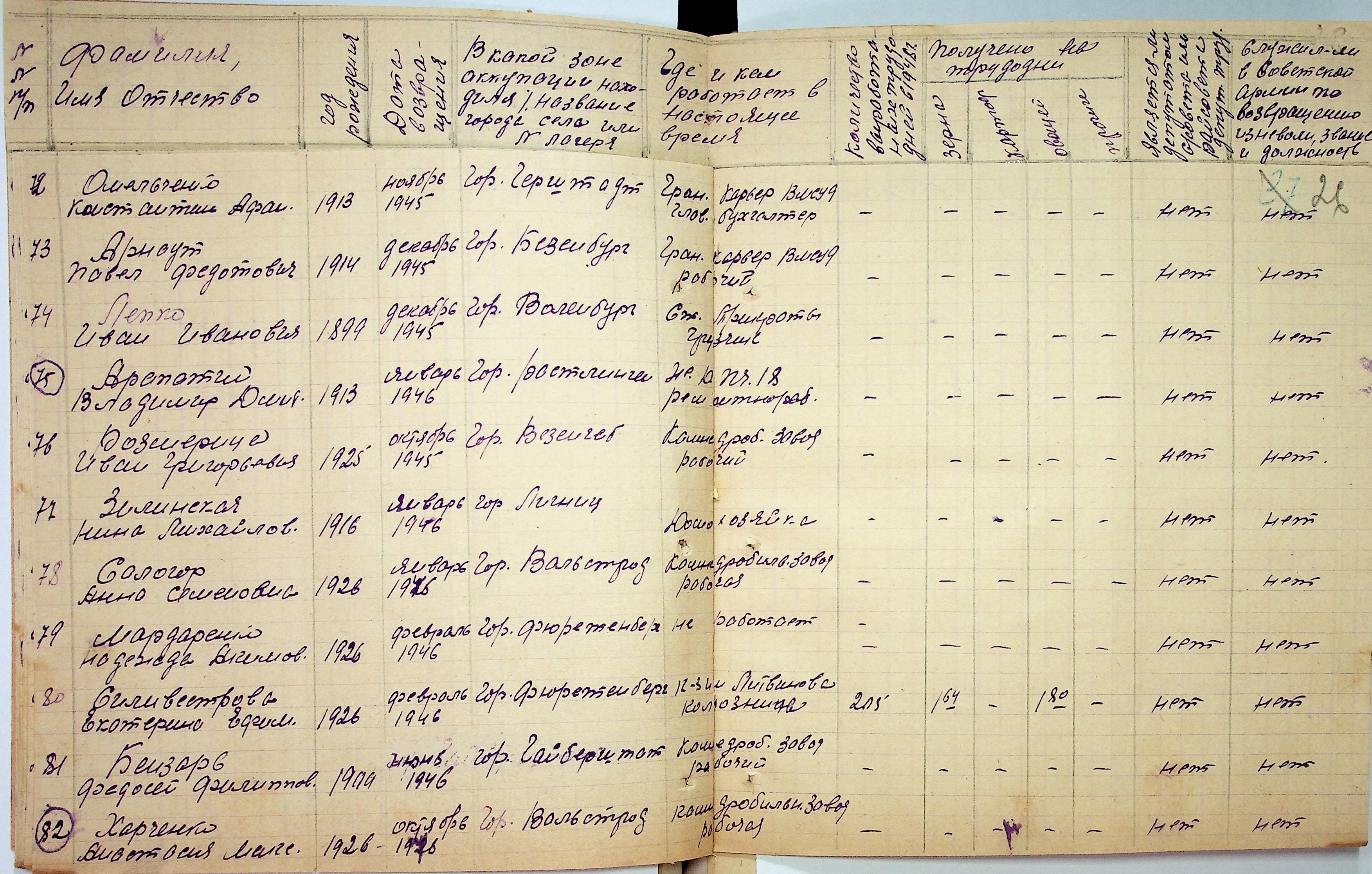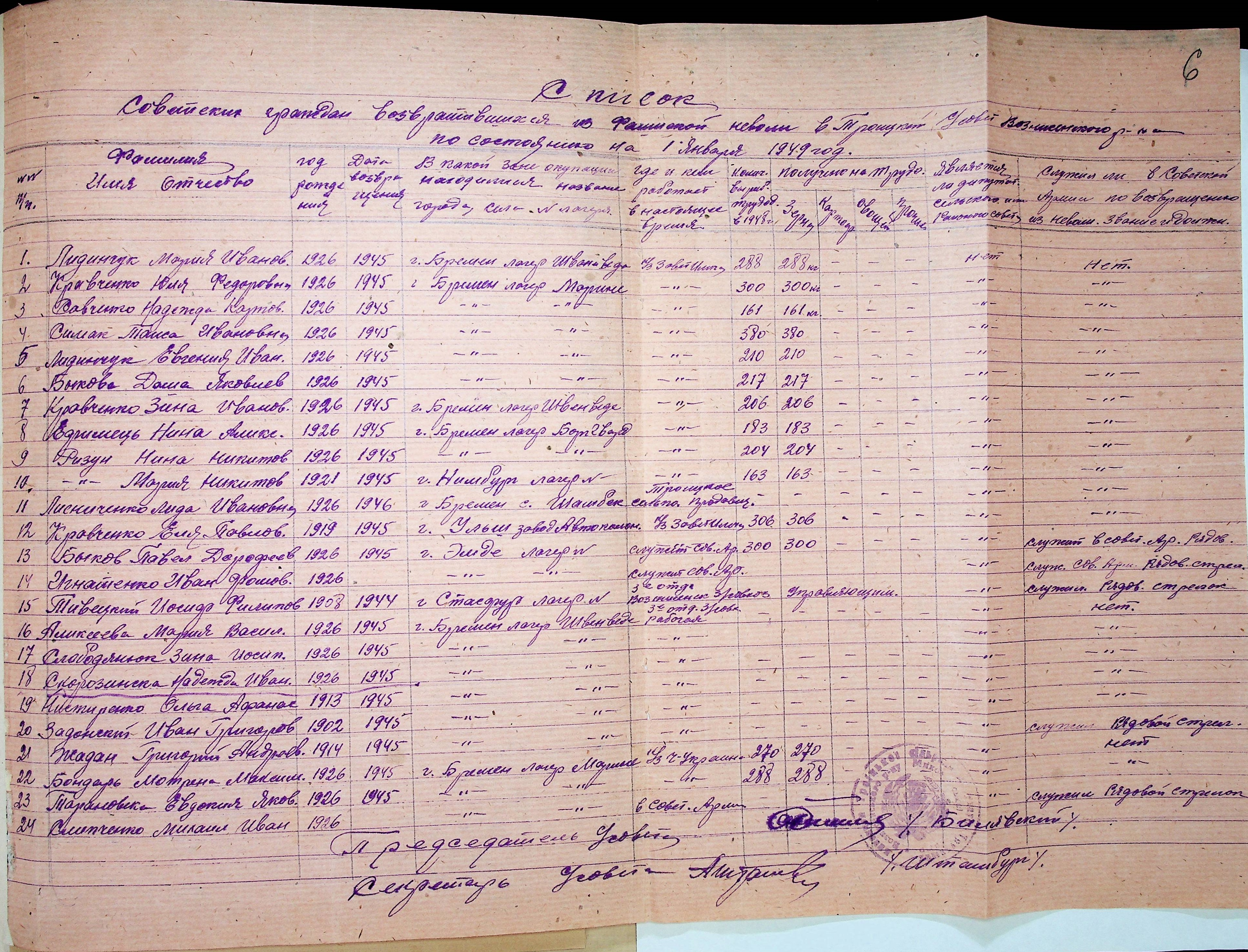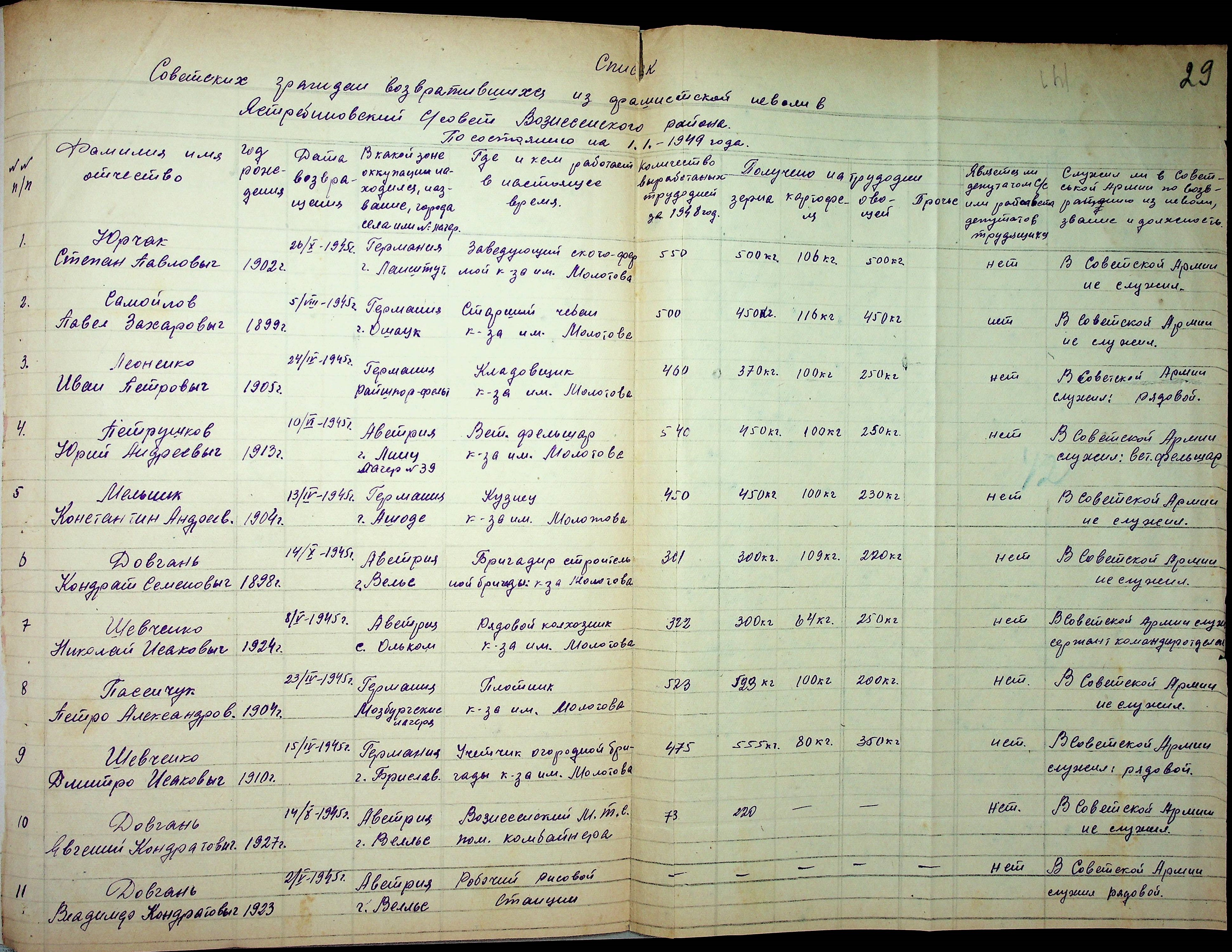 • • • • Справа № 48 “Списки репатрійованих радянських громадян, які повернулися на Батьківщину до Вознесенського району Миколаївської області.