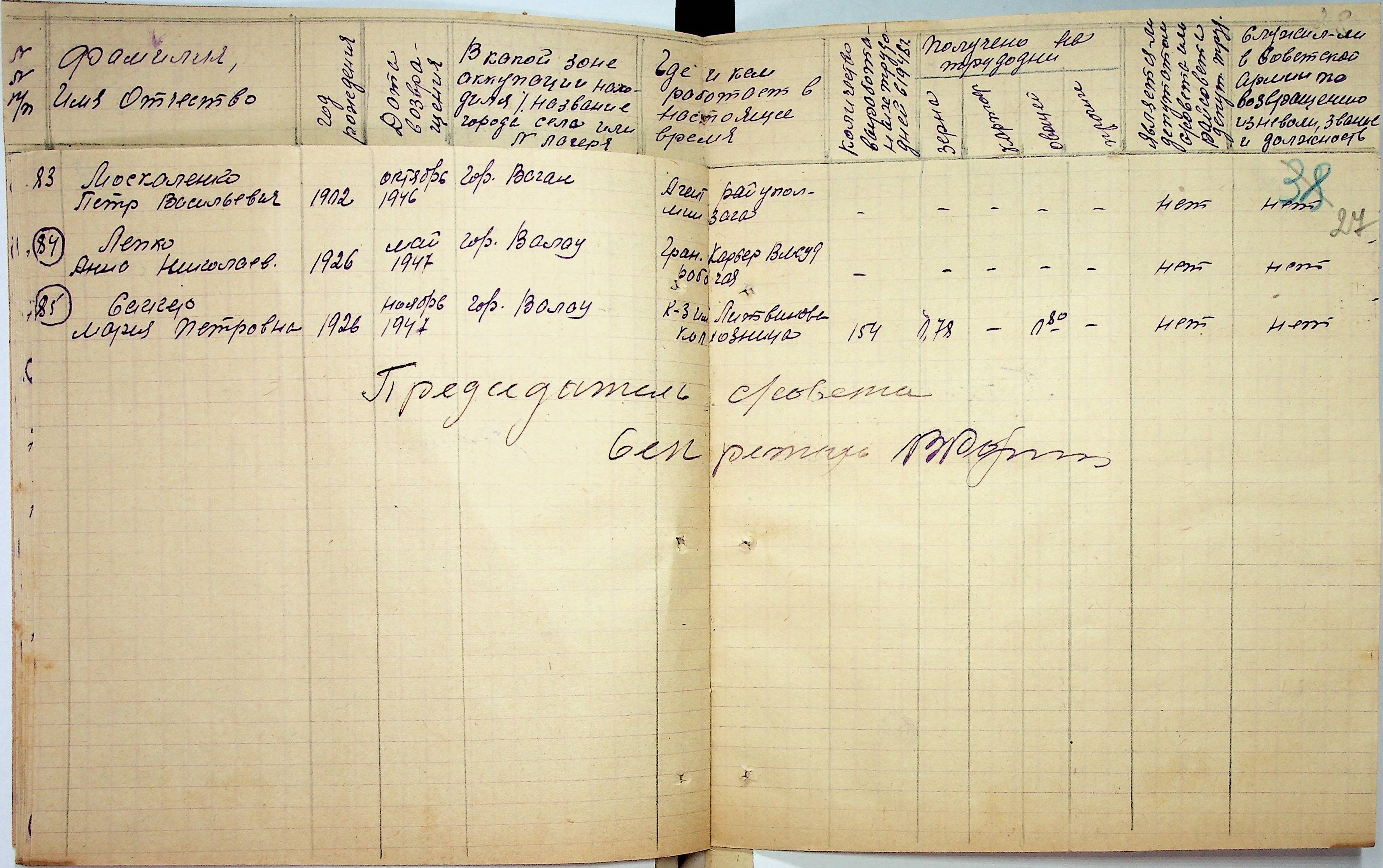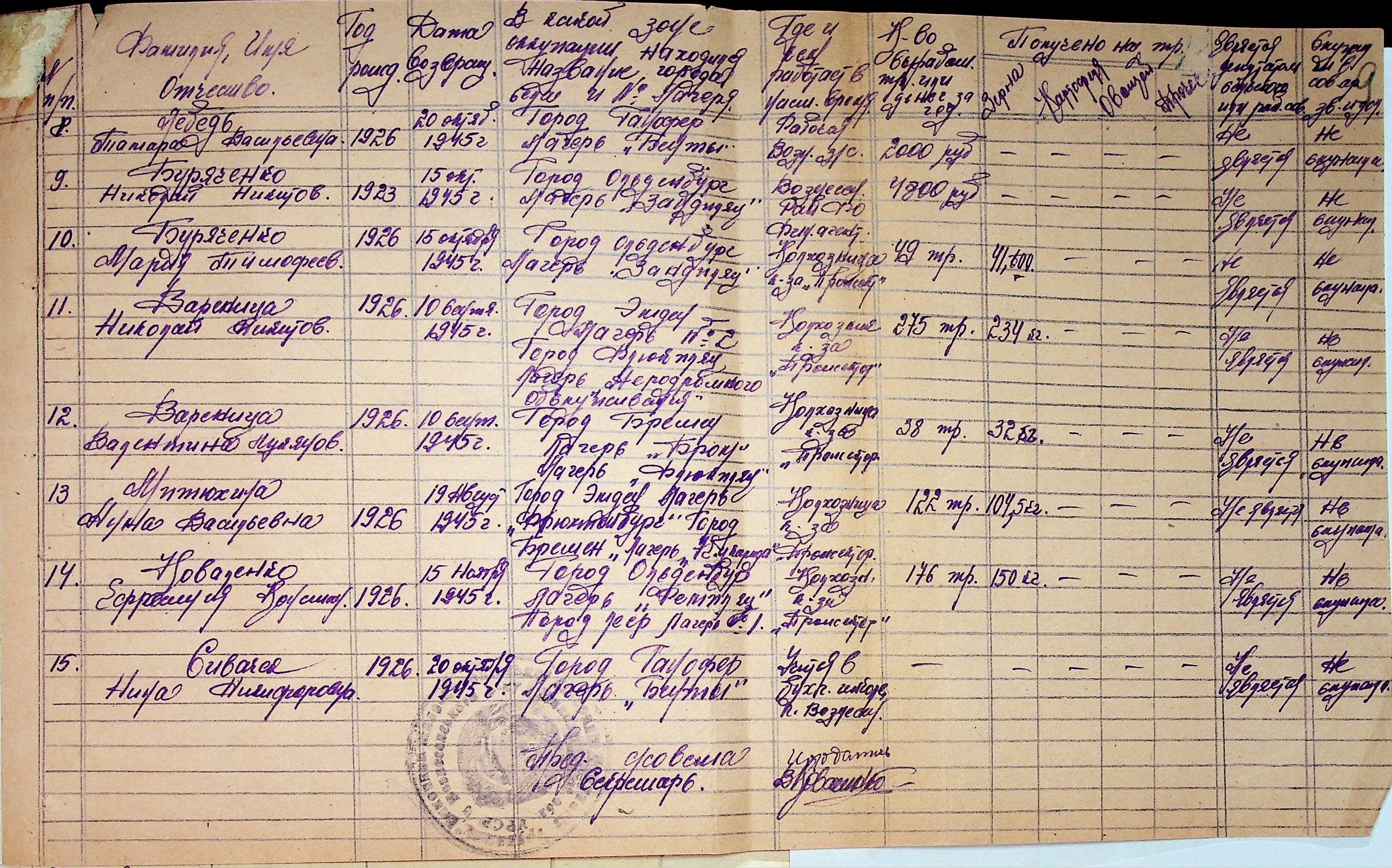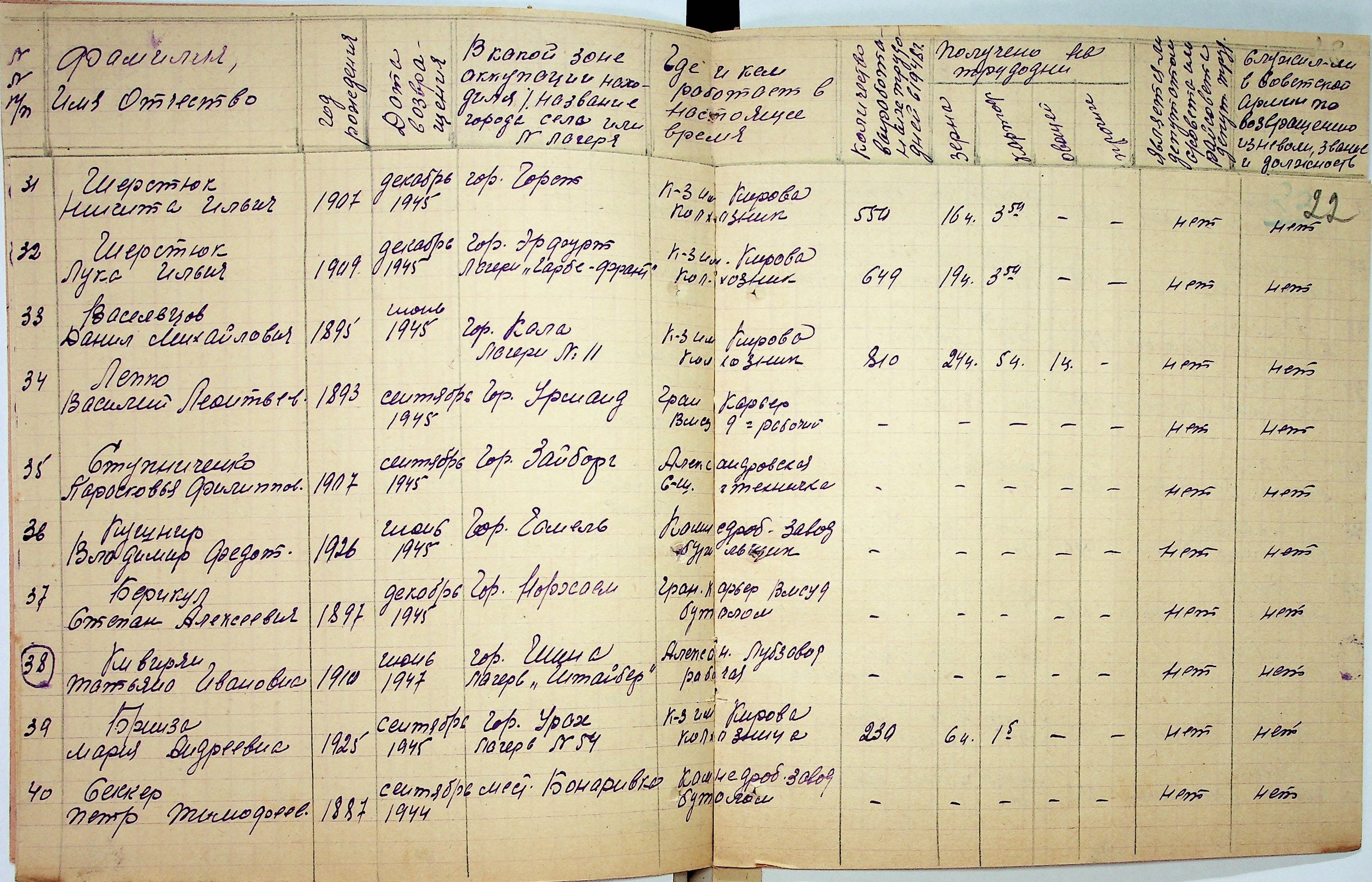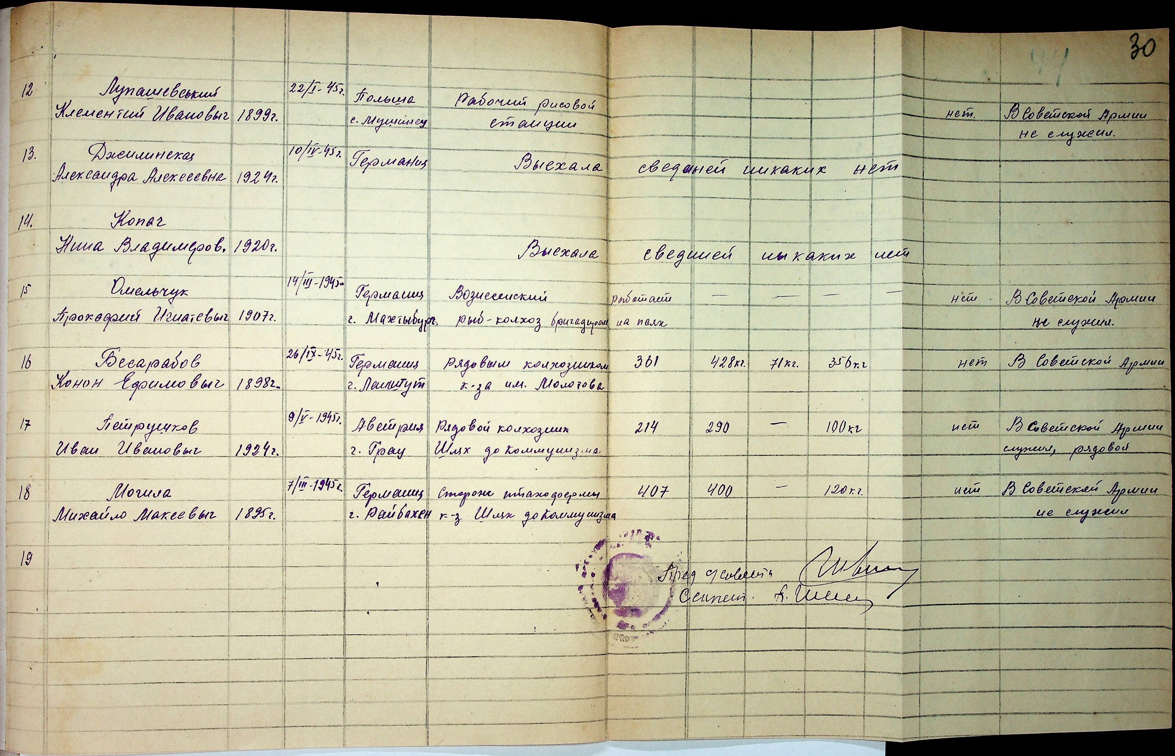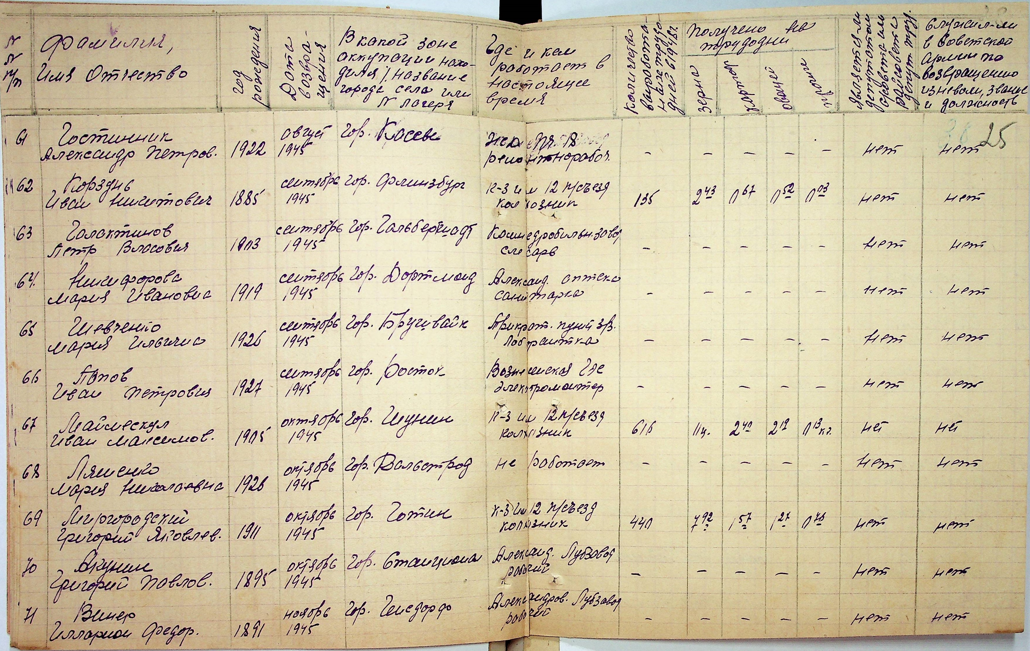 • • • • Справа № 48 “Списки репатрійованих радянських громадян, які повернулися на Батьківщину до Вознесенського району Миколаївської області.