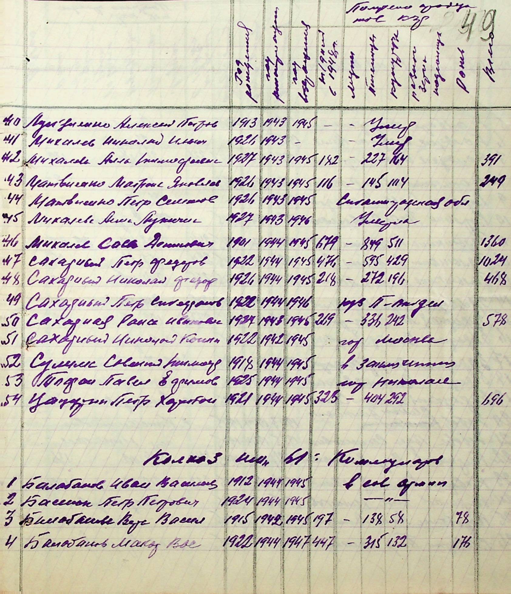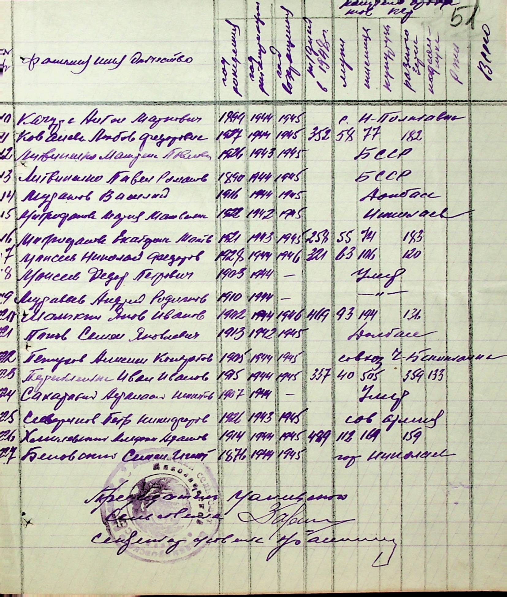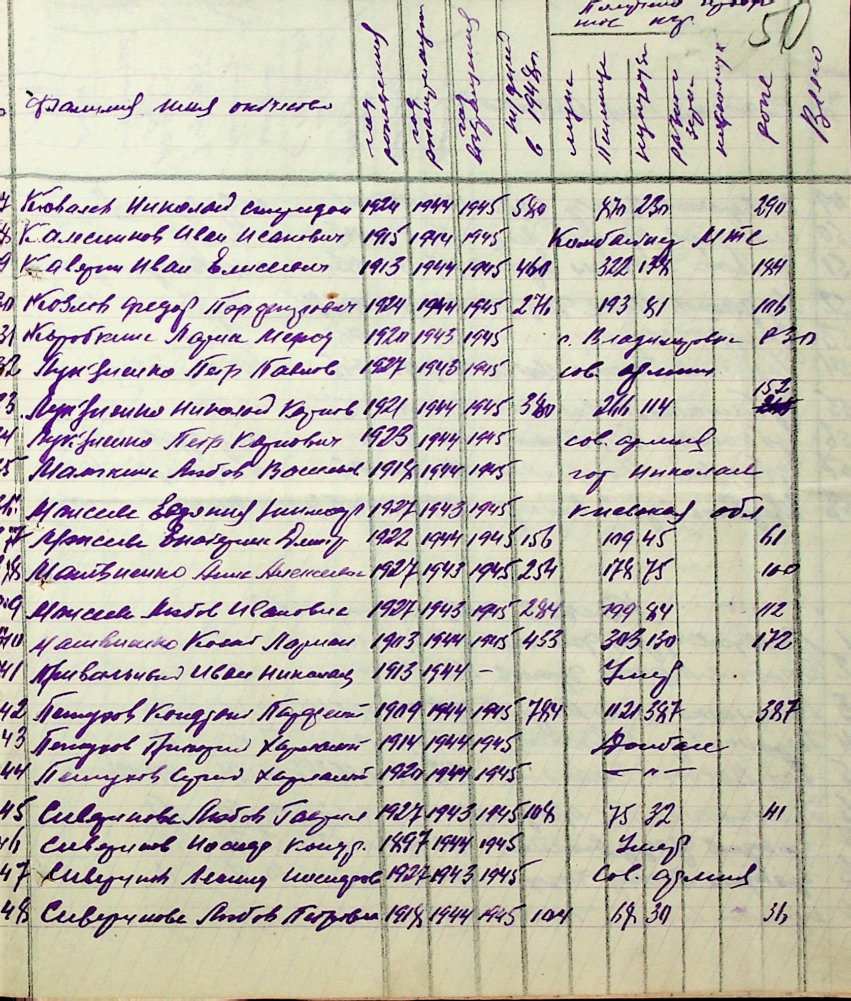 • • • • Справа № 49 “Списки репатрійованих радянських громадян, які повернулися на Батьківщину до Володимирівського району Миколаївської області.