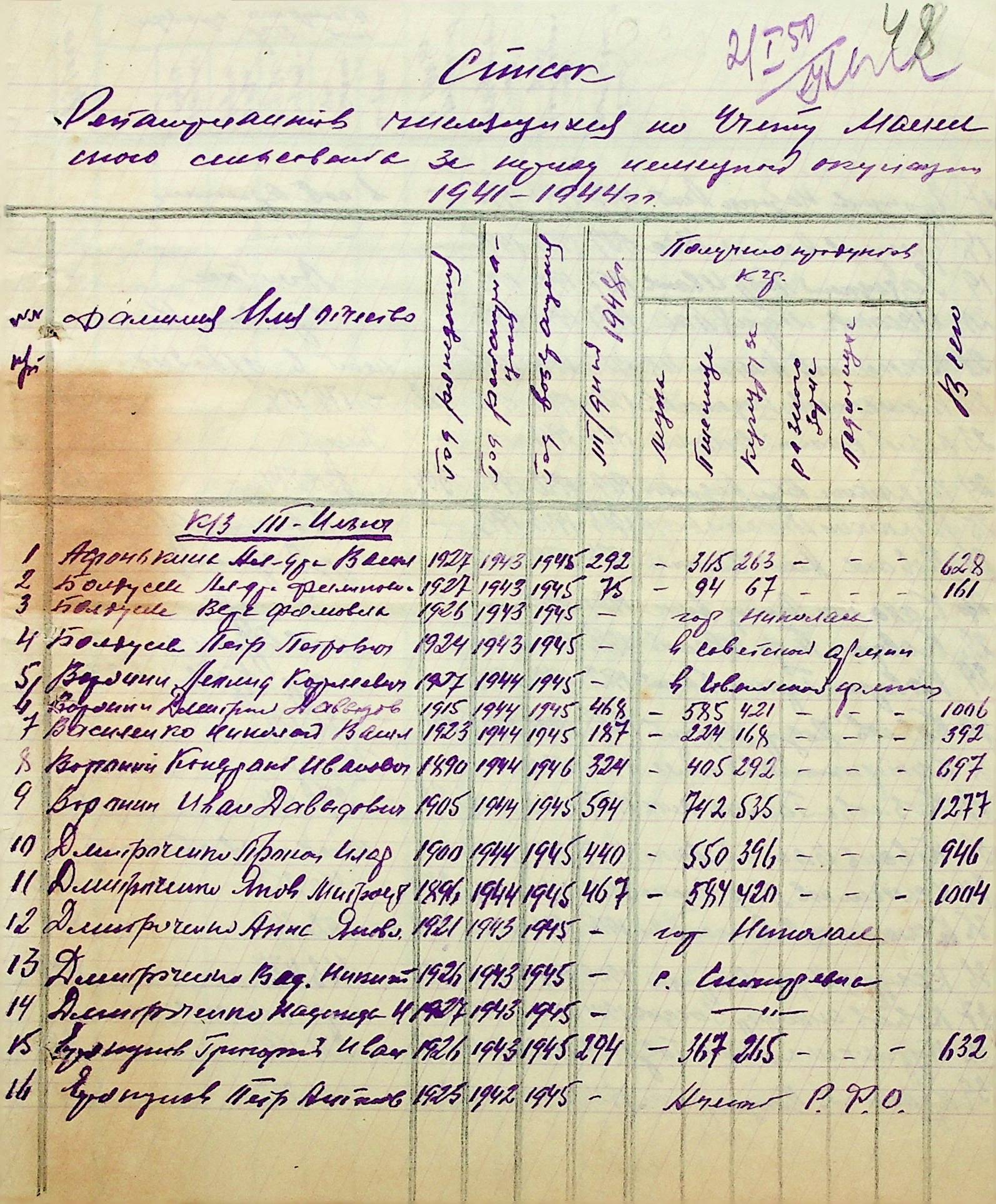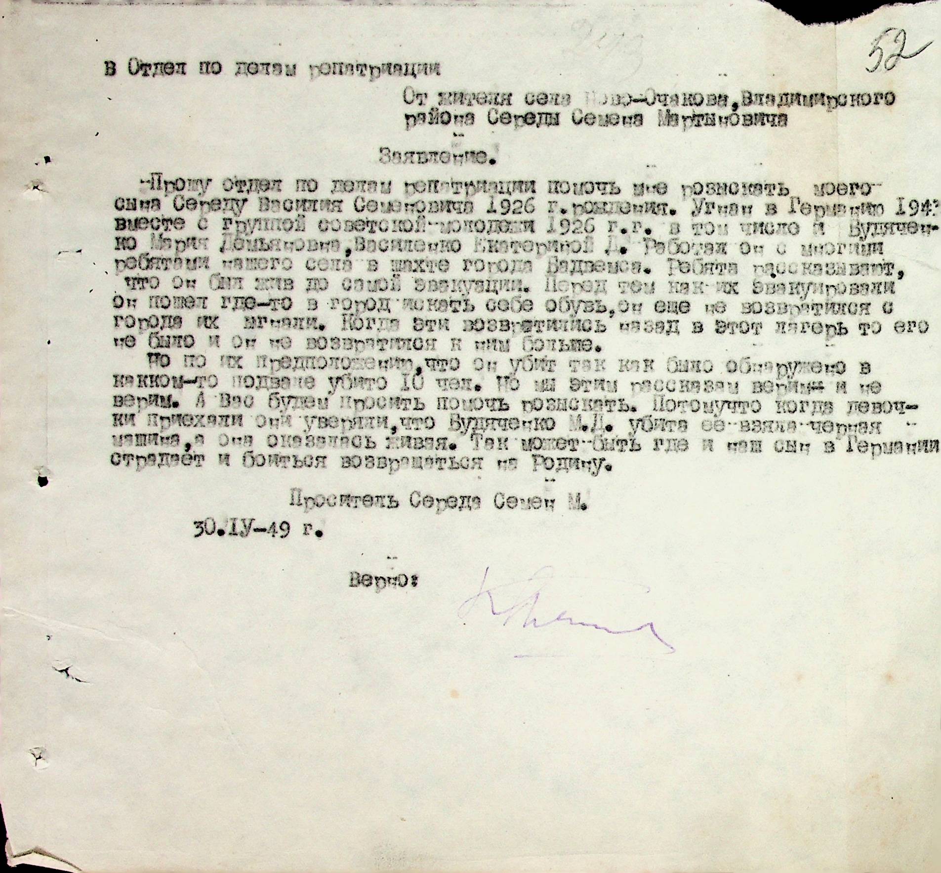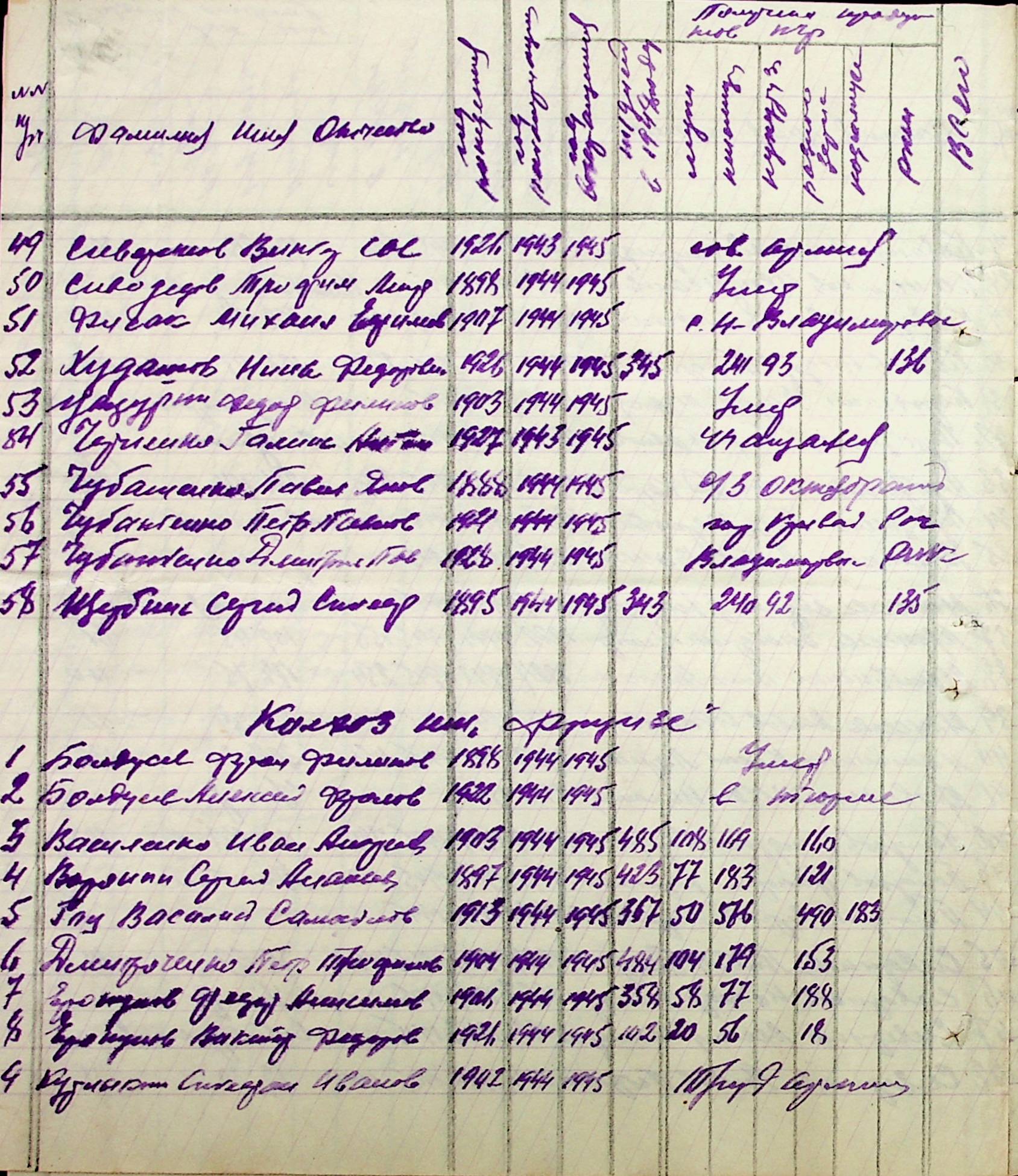 • • • • Справа № 49 “Списки репатрійованих радянських громадян, які повернулися на Батьківщину до Володимирівського району Миколаївської області.