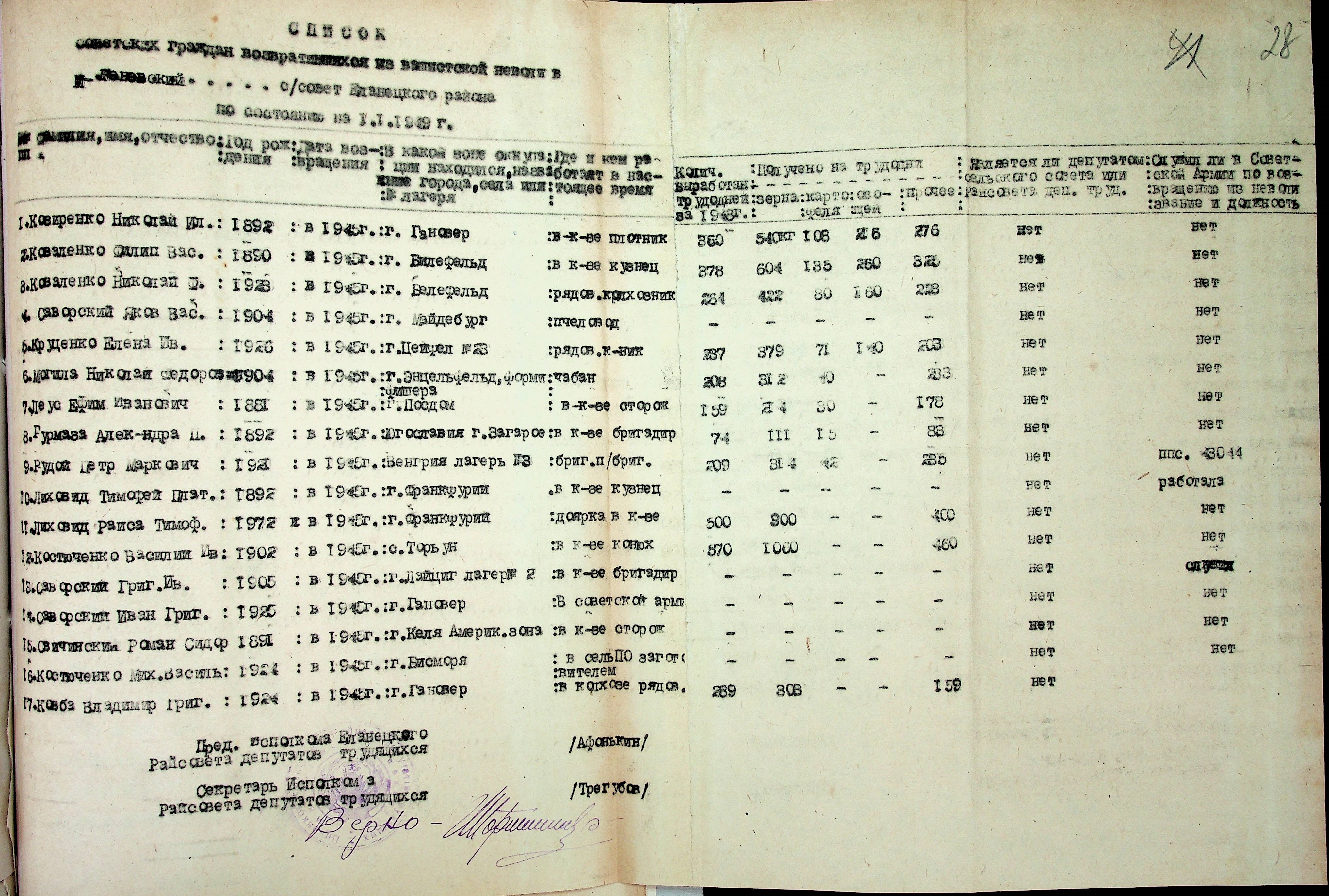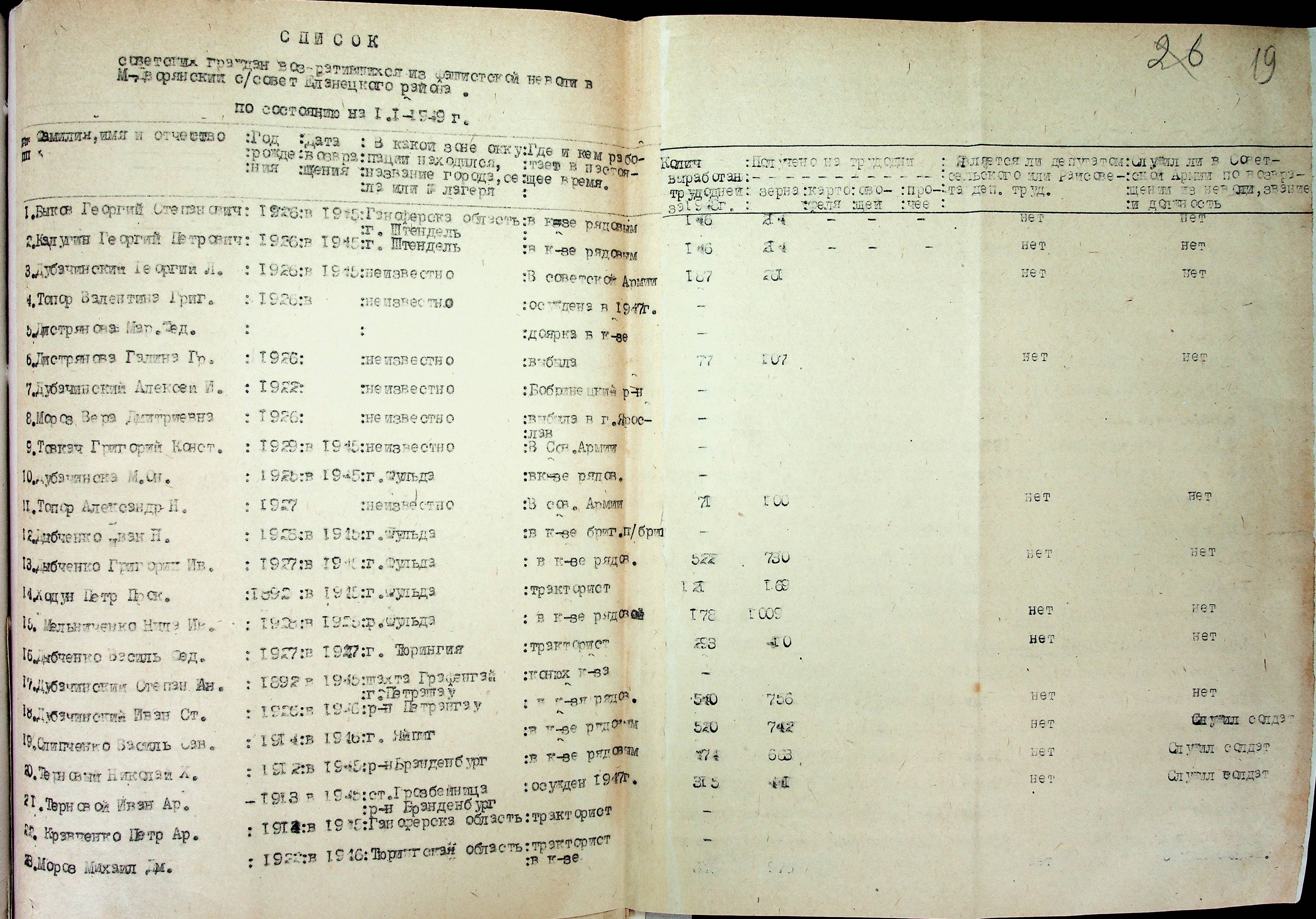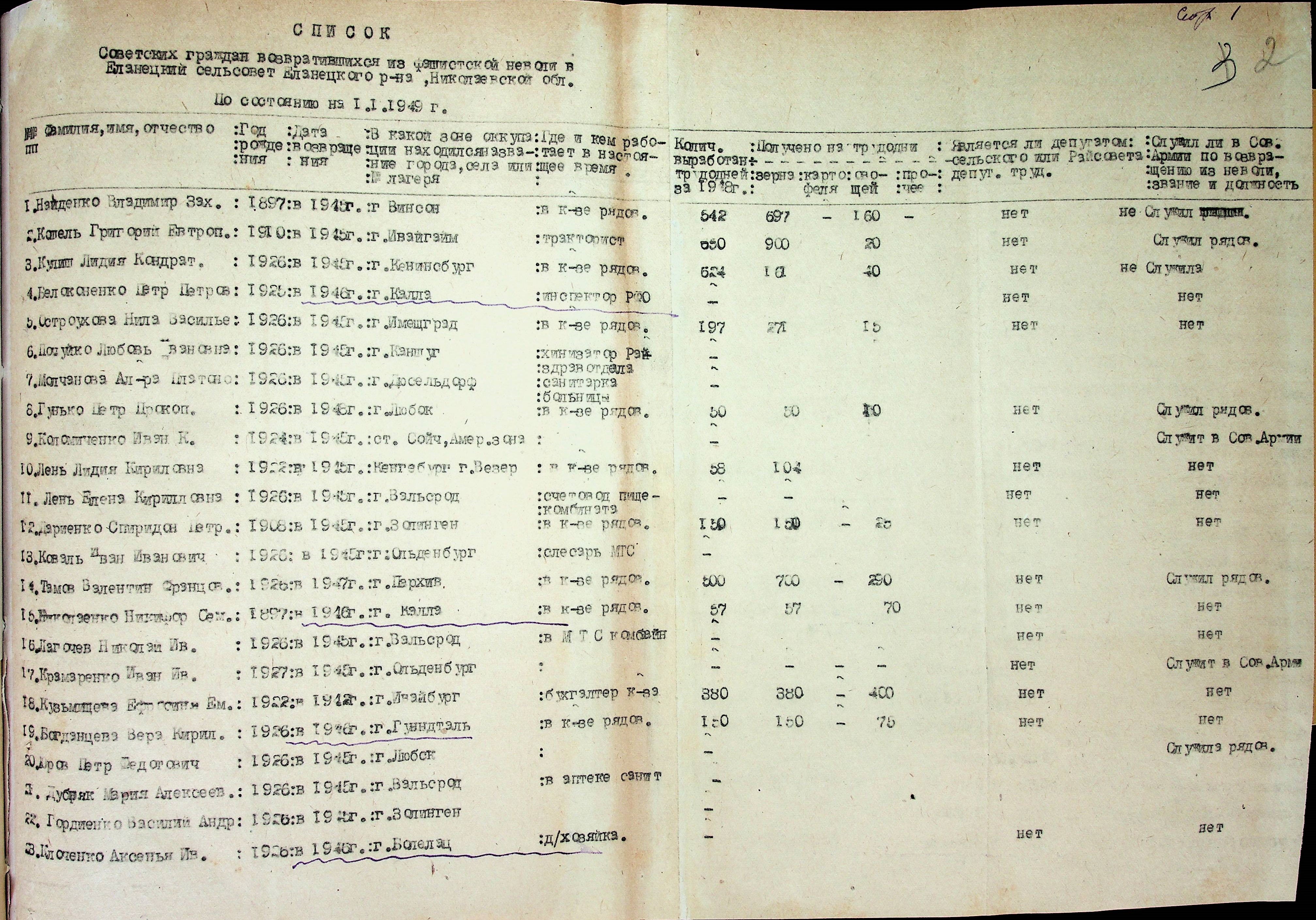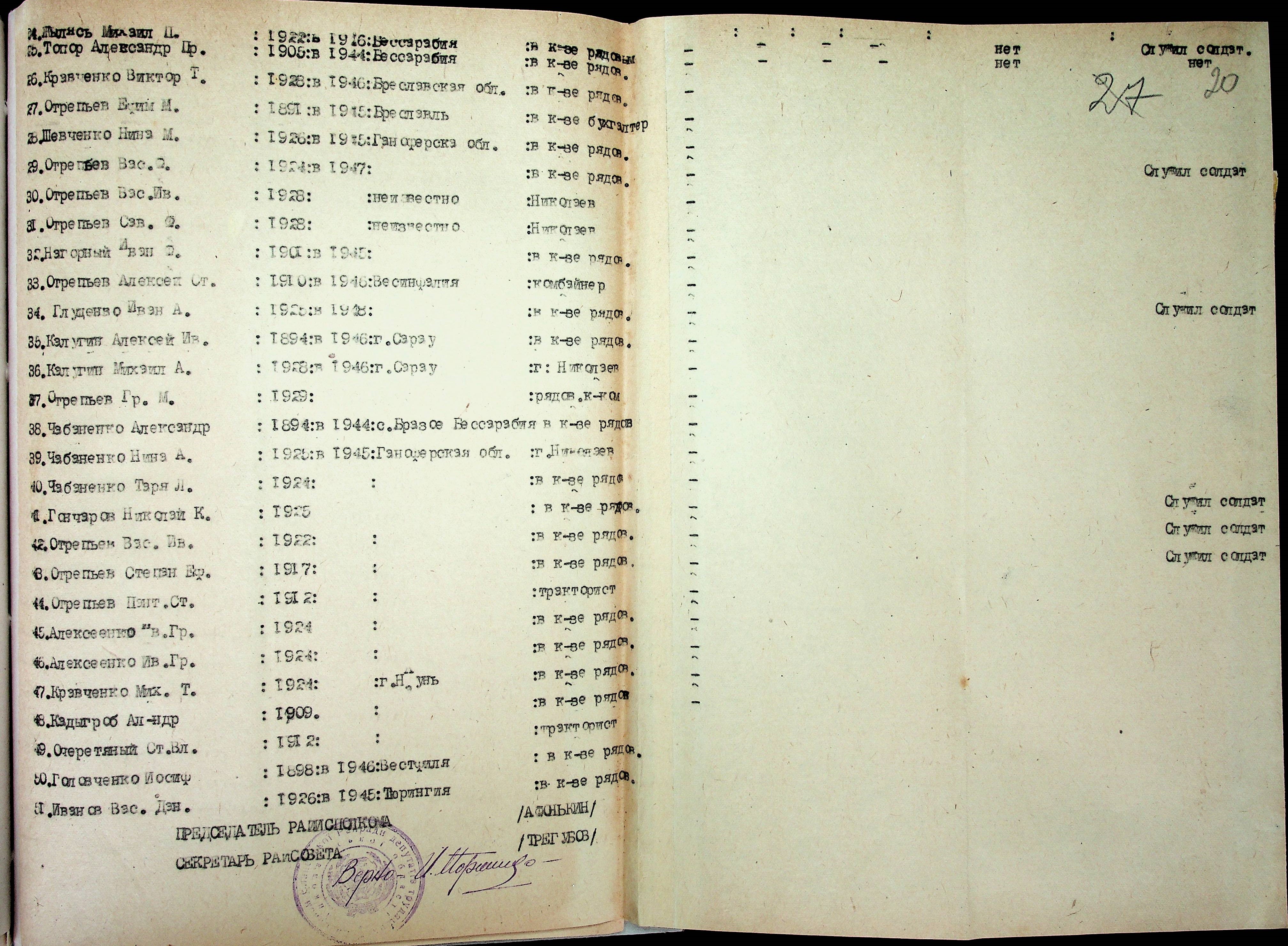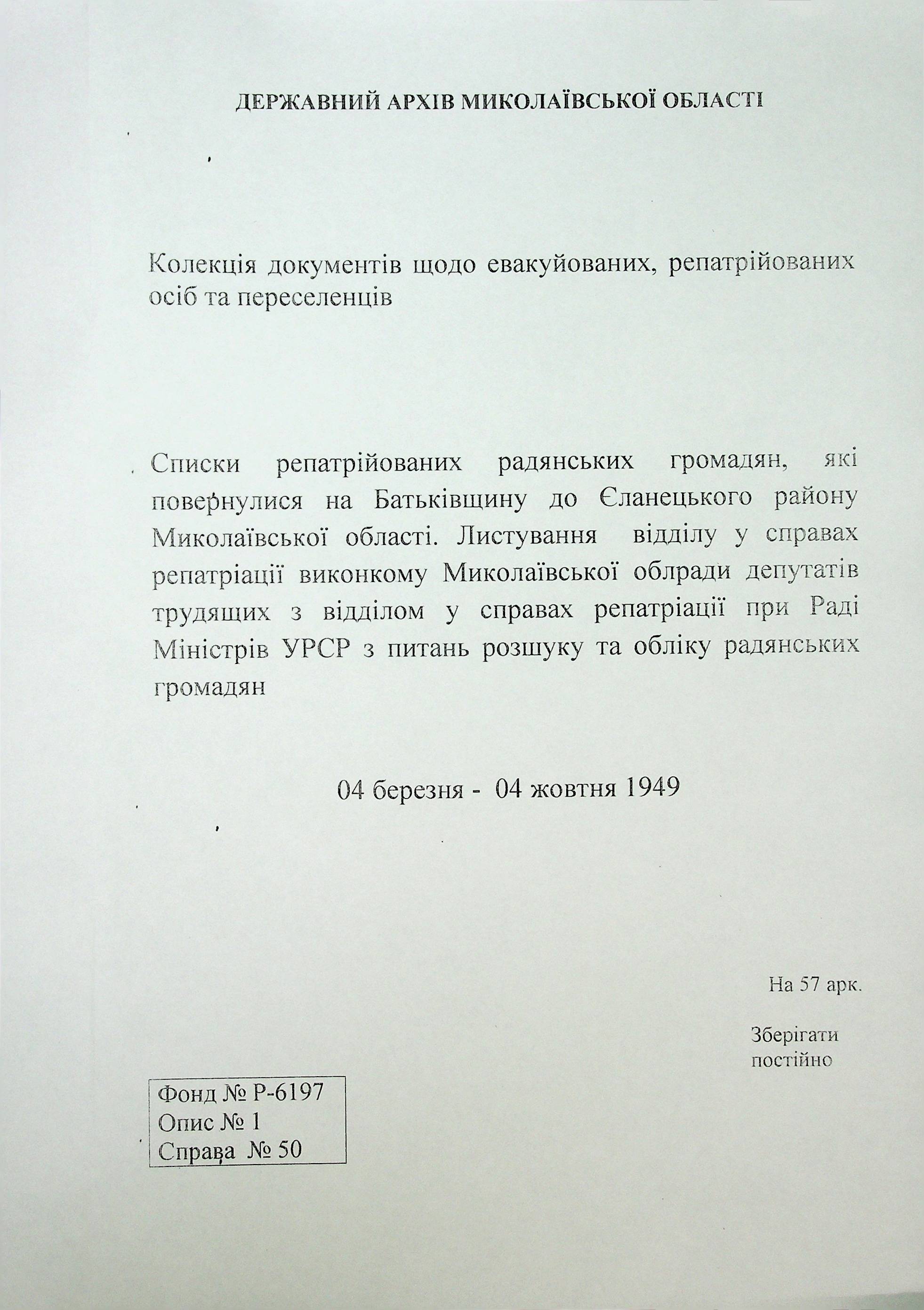 • • • • Справа № 50 “Списки репатрійованих радянських громадян, які повернулися на Батьківщину до Єланецького району Миколаївської області.