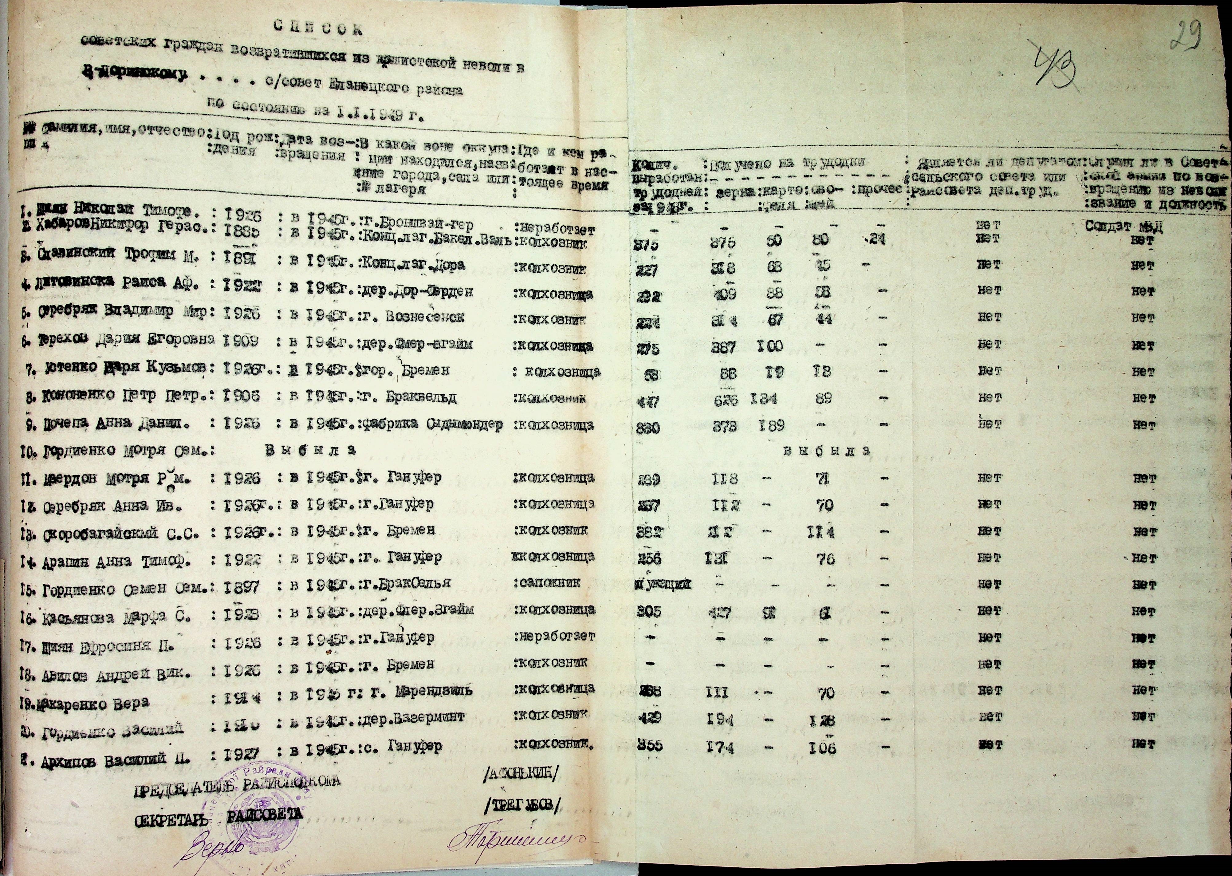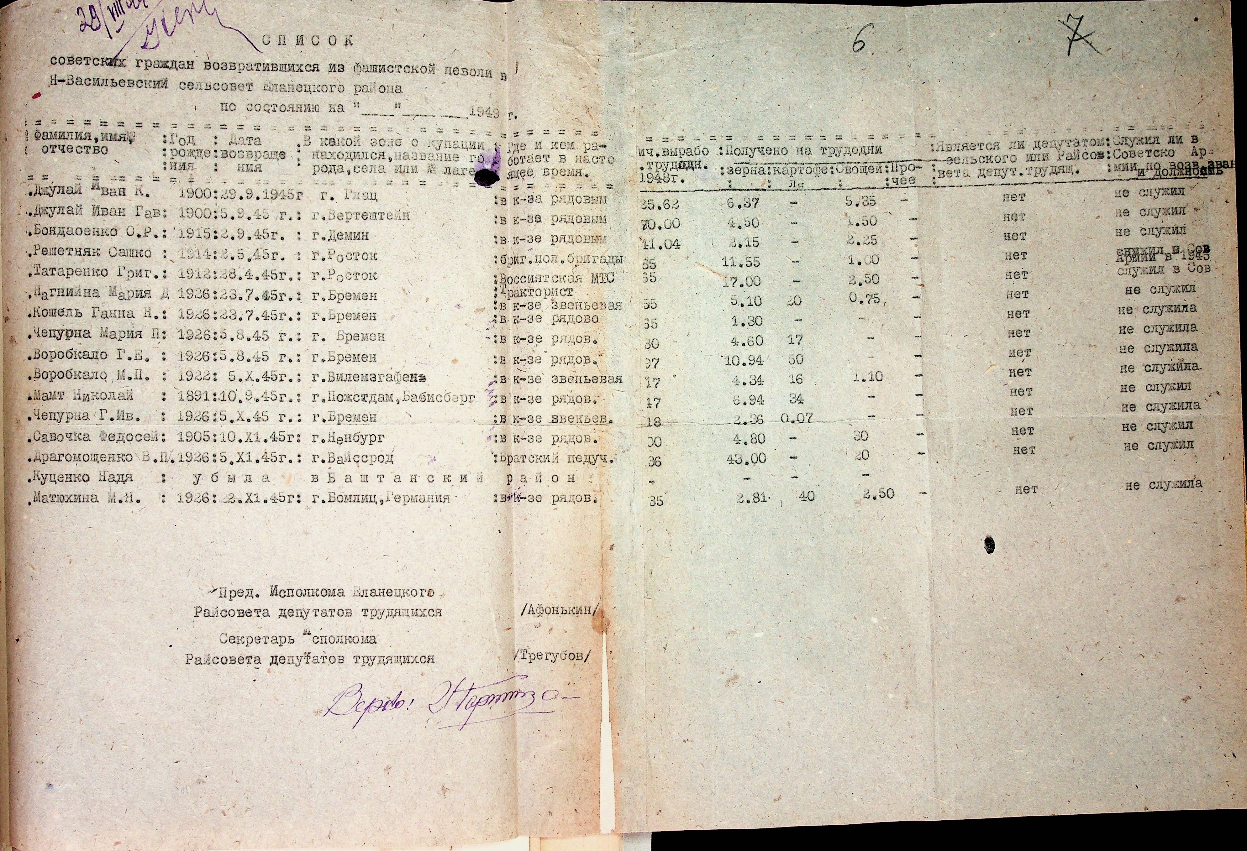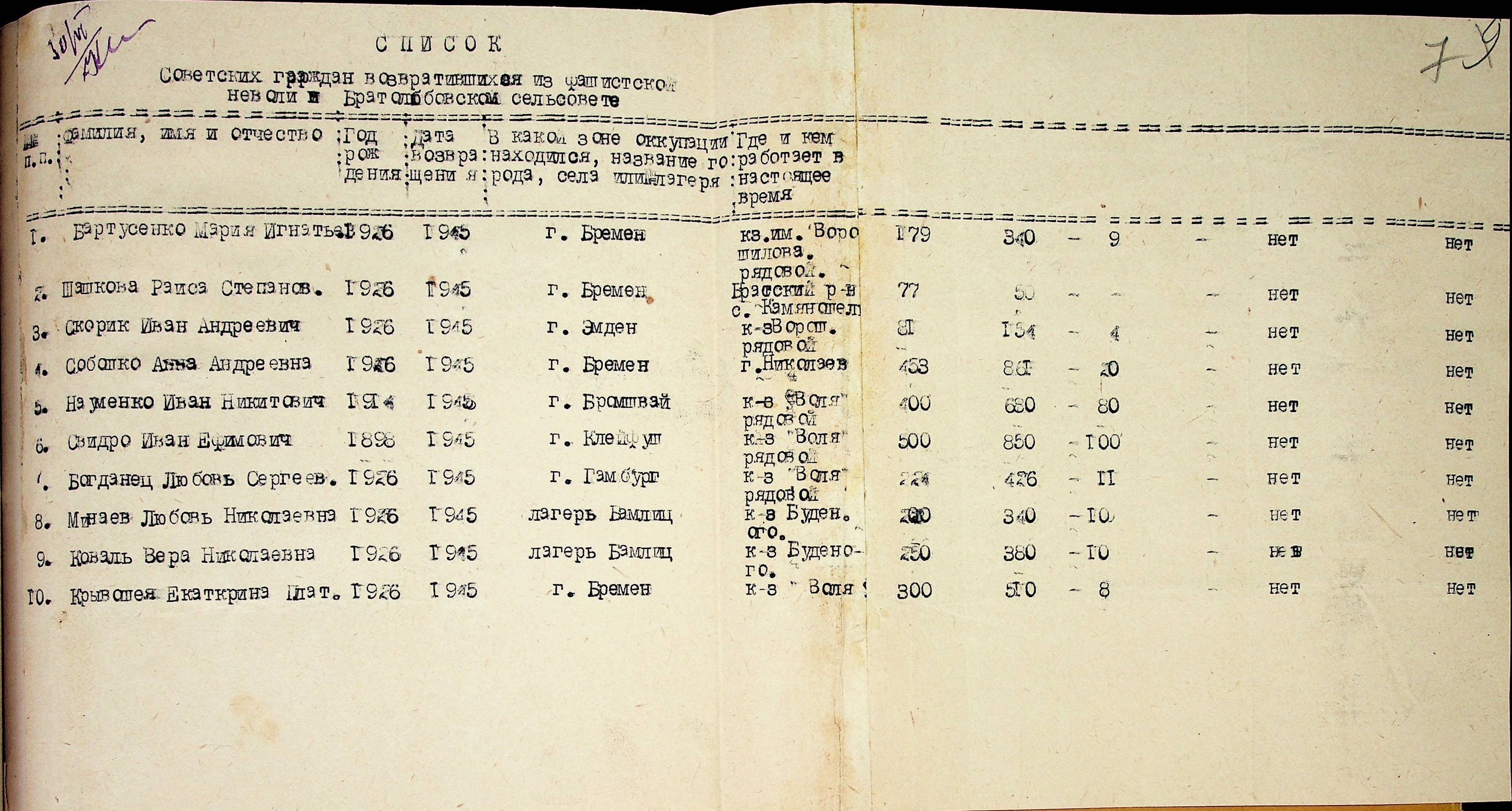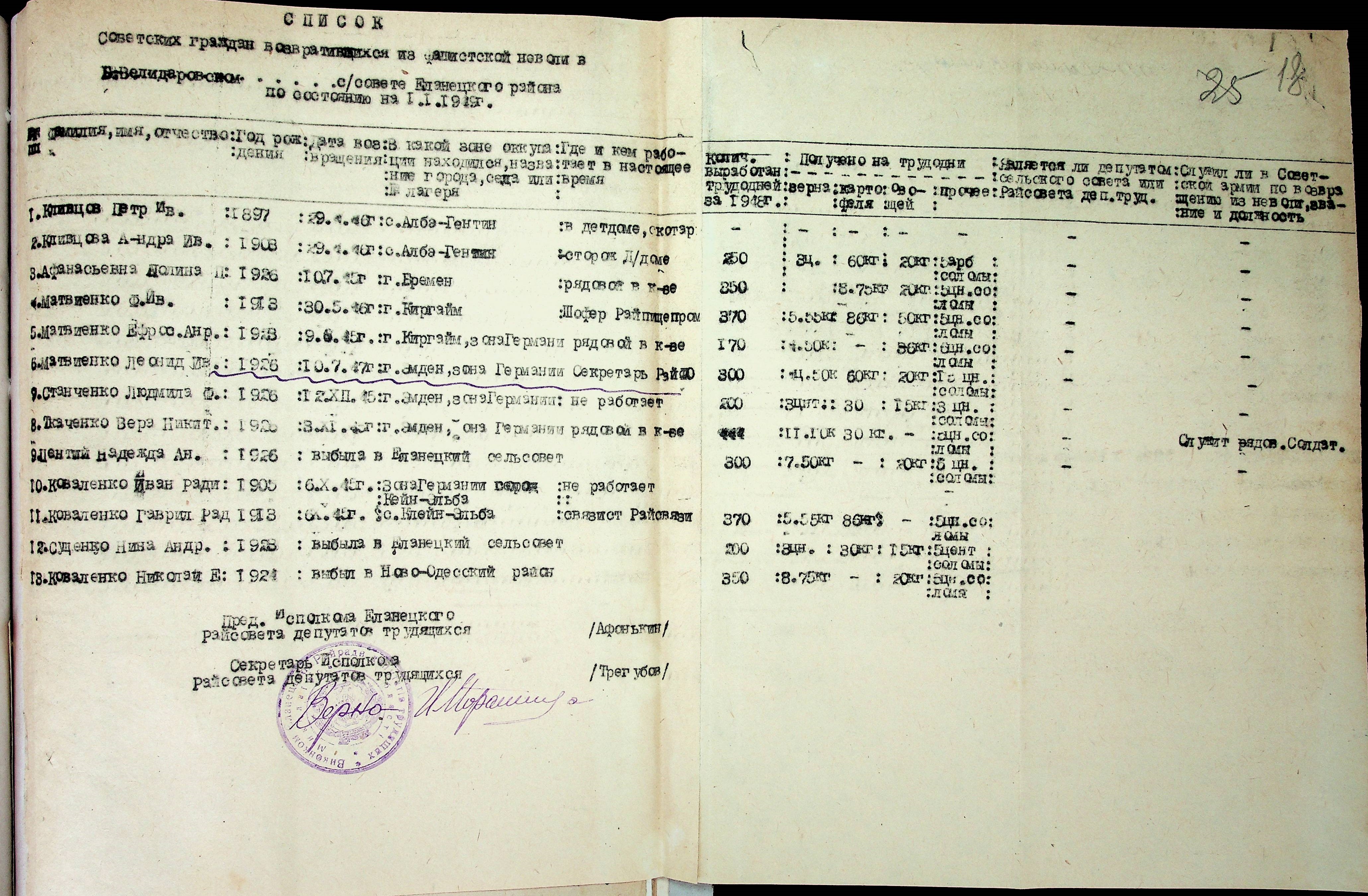 • • • • Справа № 50 “Списки репатрійованих радянських громадян, які повернулися на Батьківщину до Єланецького району Миколаївської області.