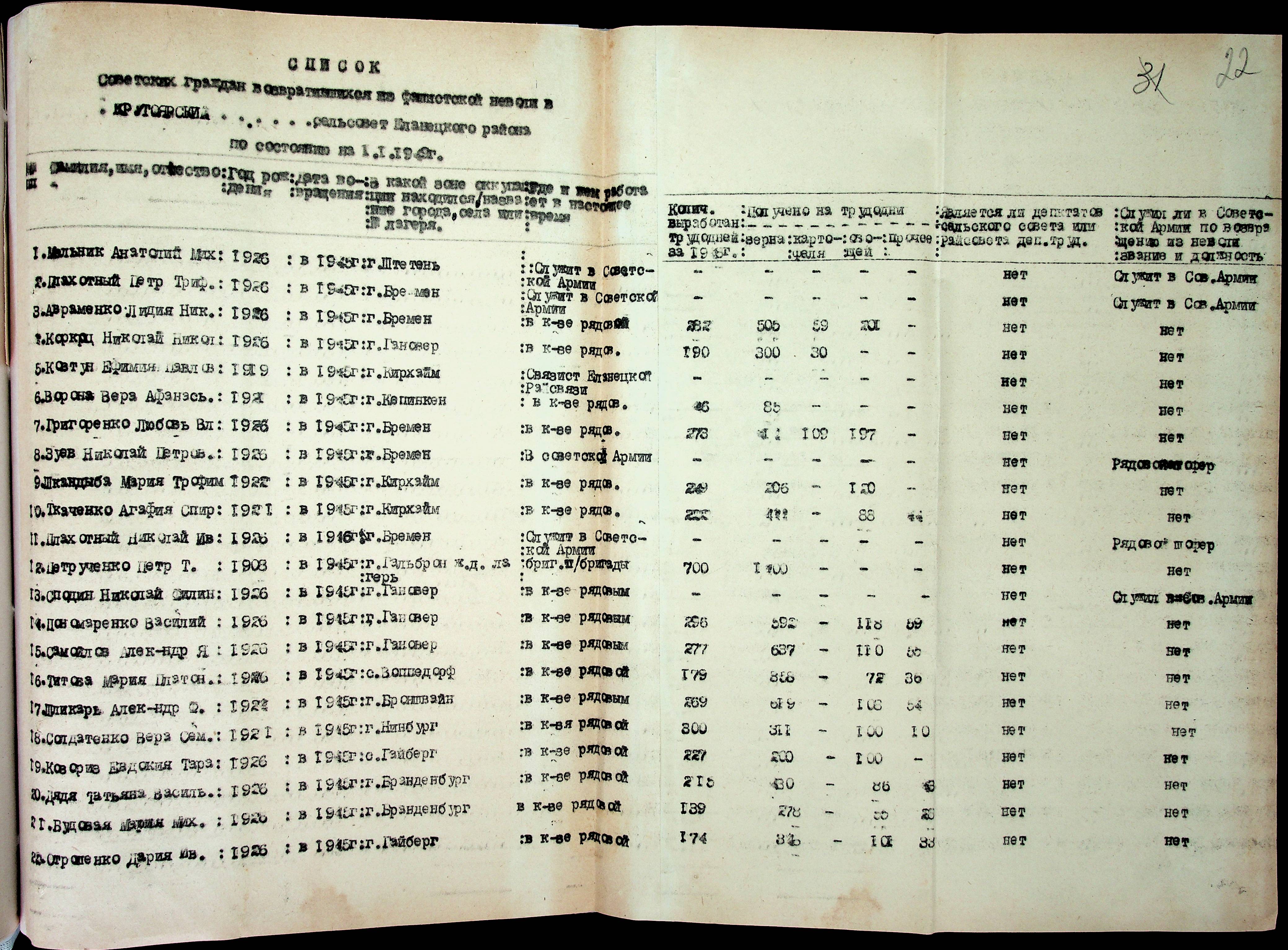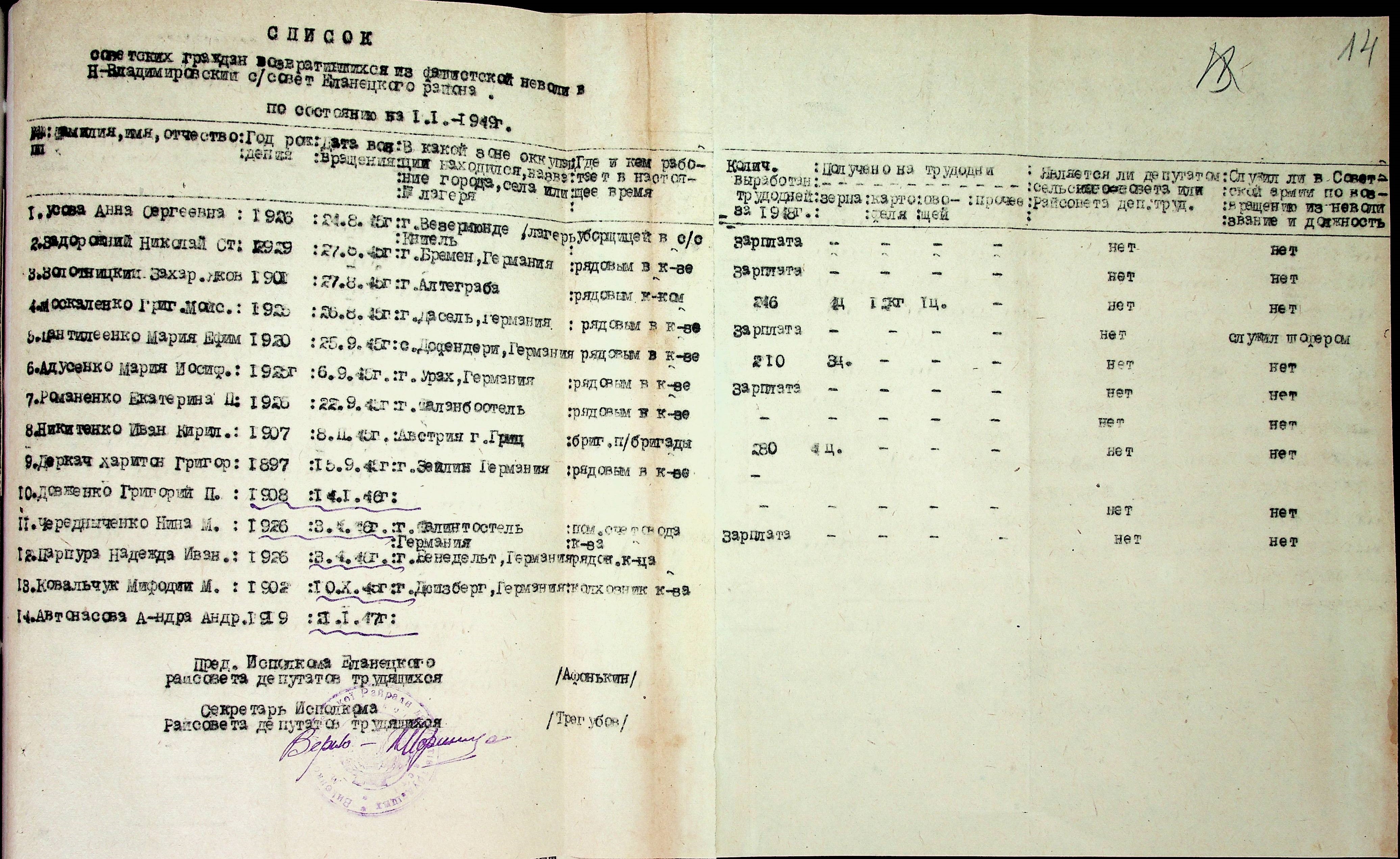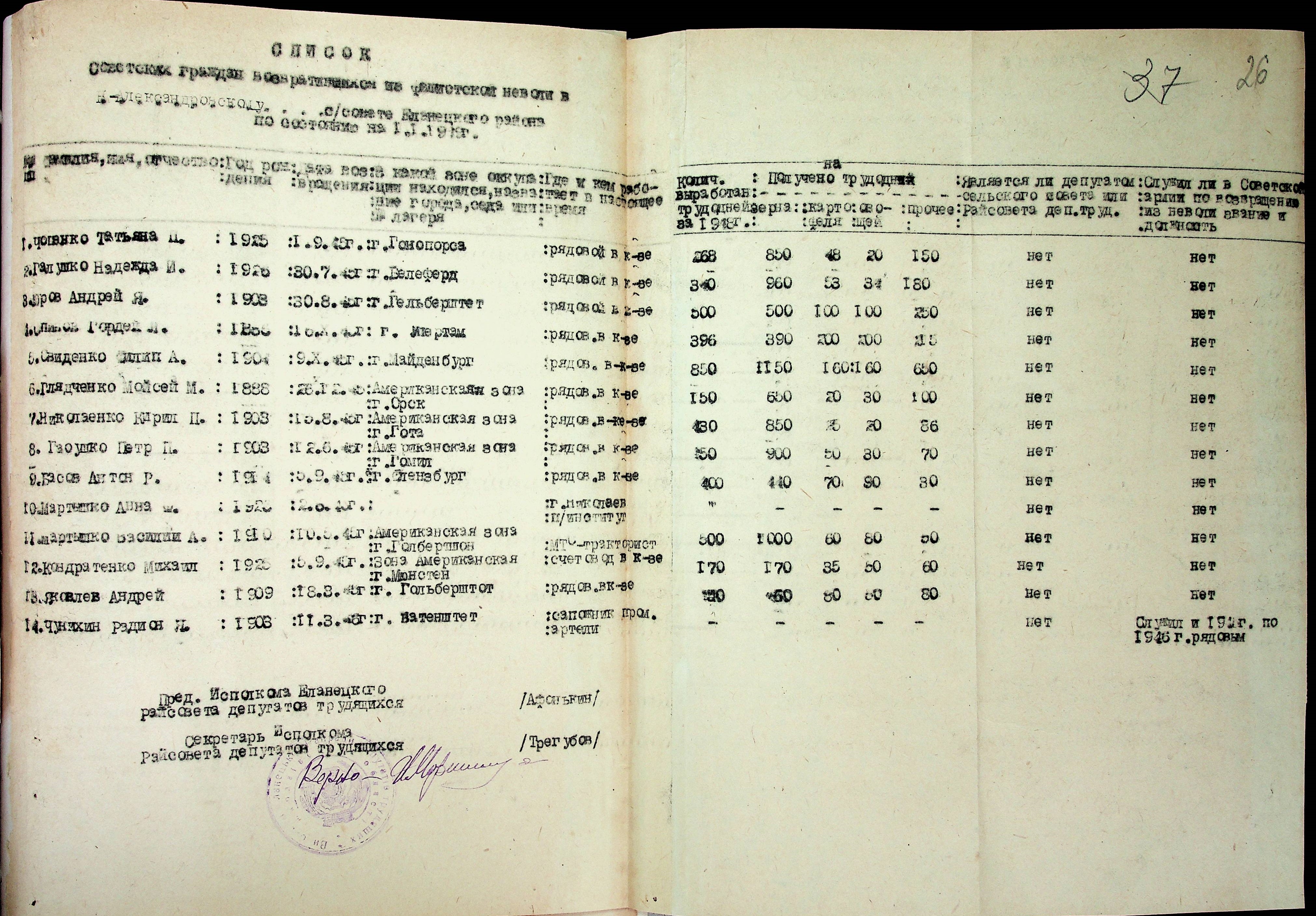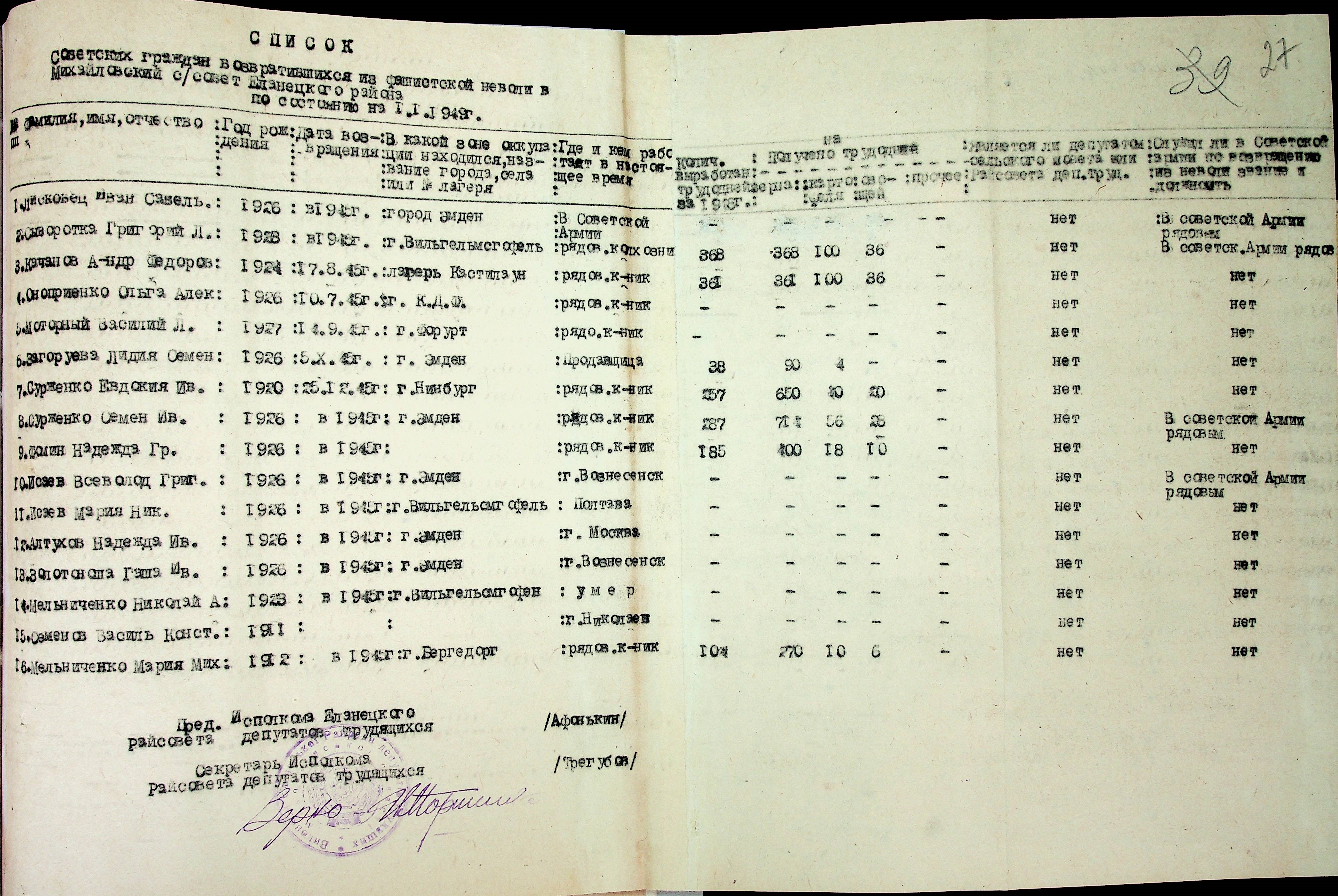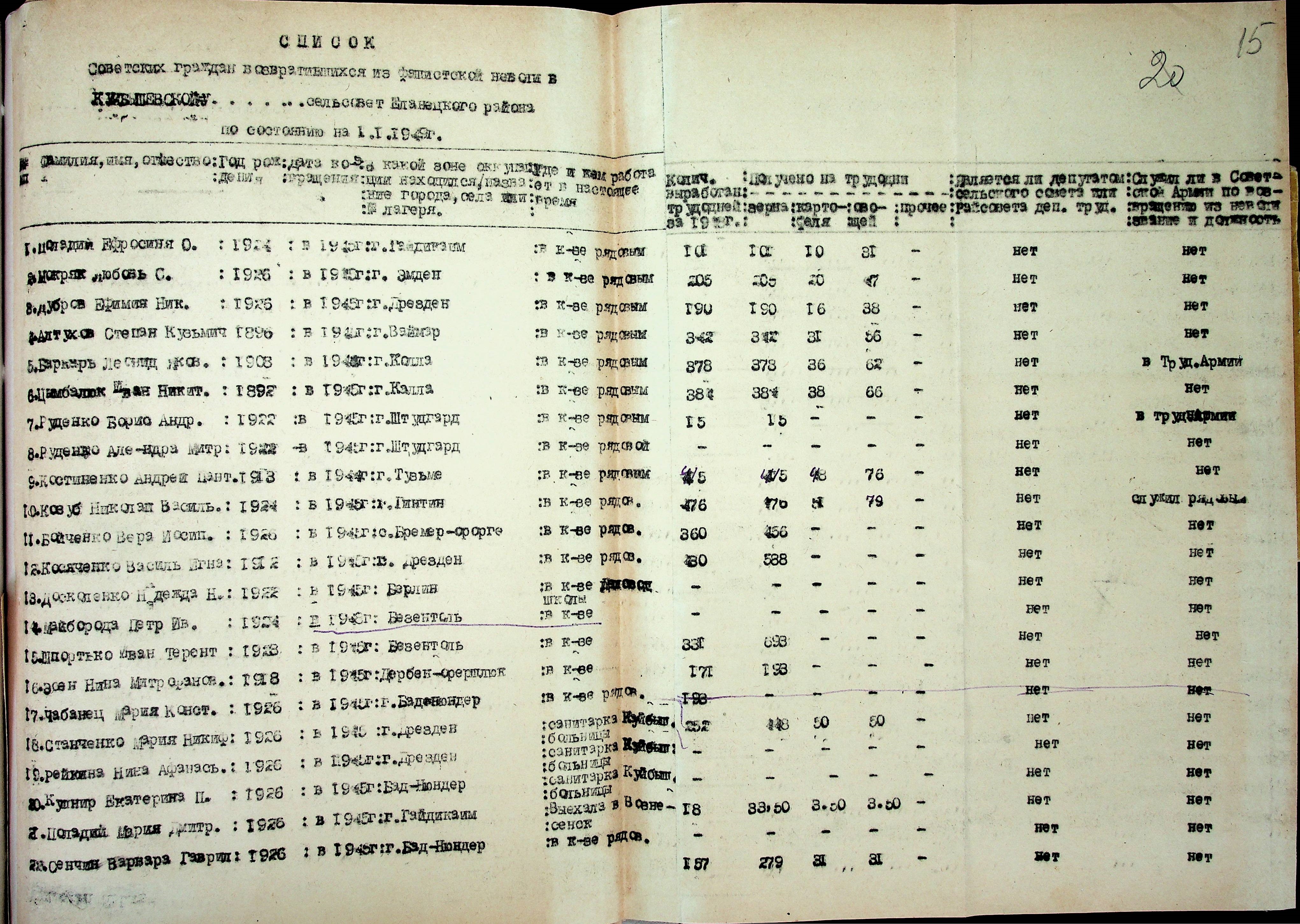 • • • • Справа № 50 “Списки репатрійованих радянських громадян, які повернулися на Батьківщину до Єланецького району Миколаївської області.