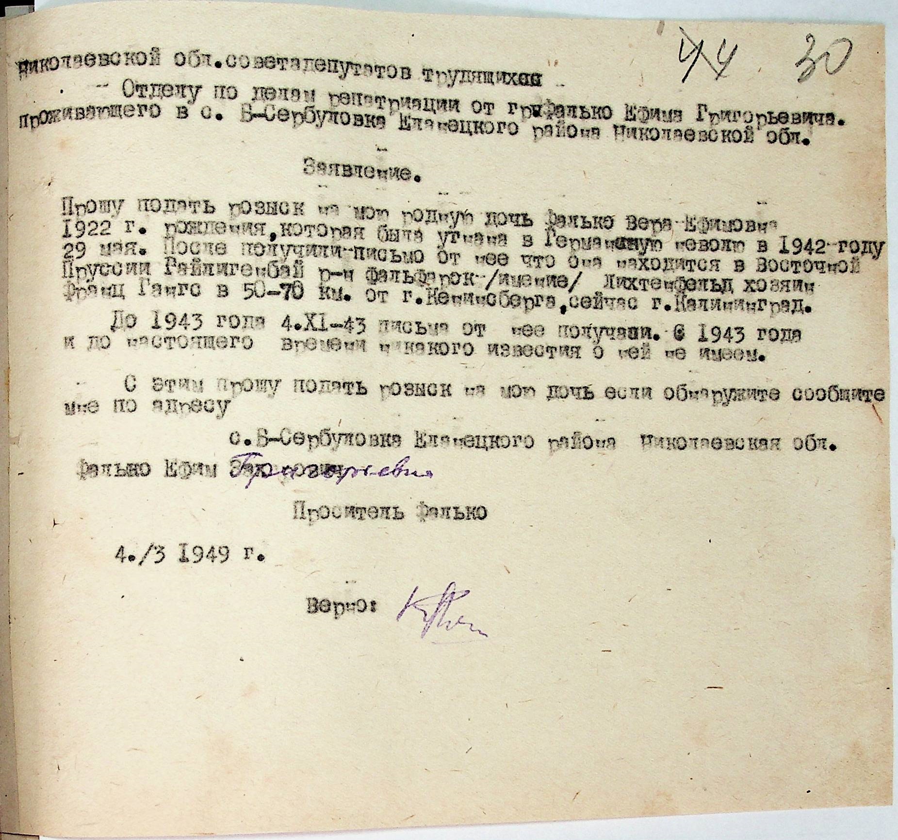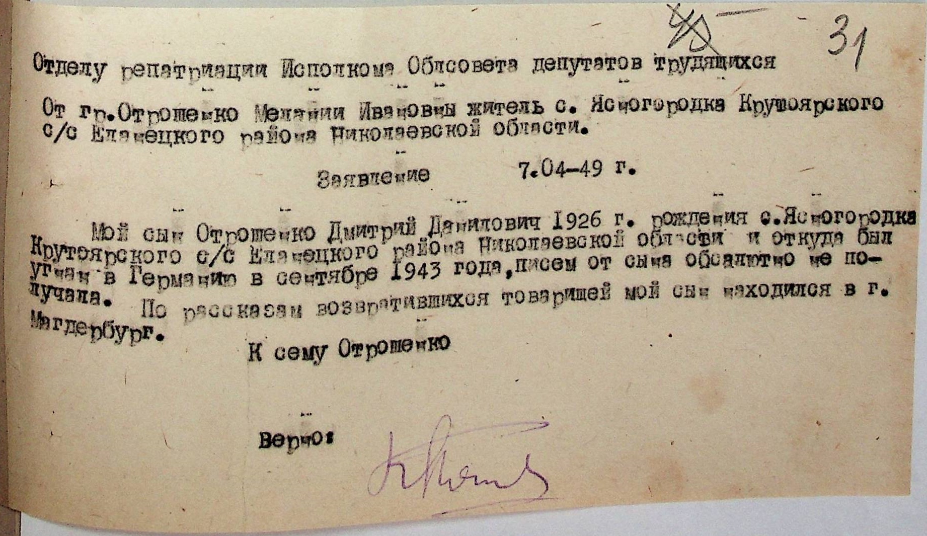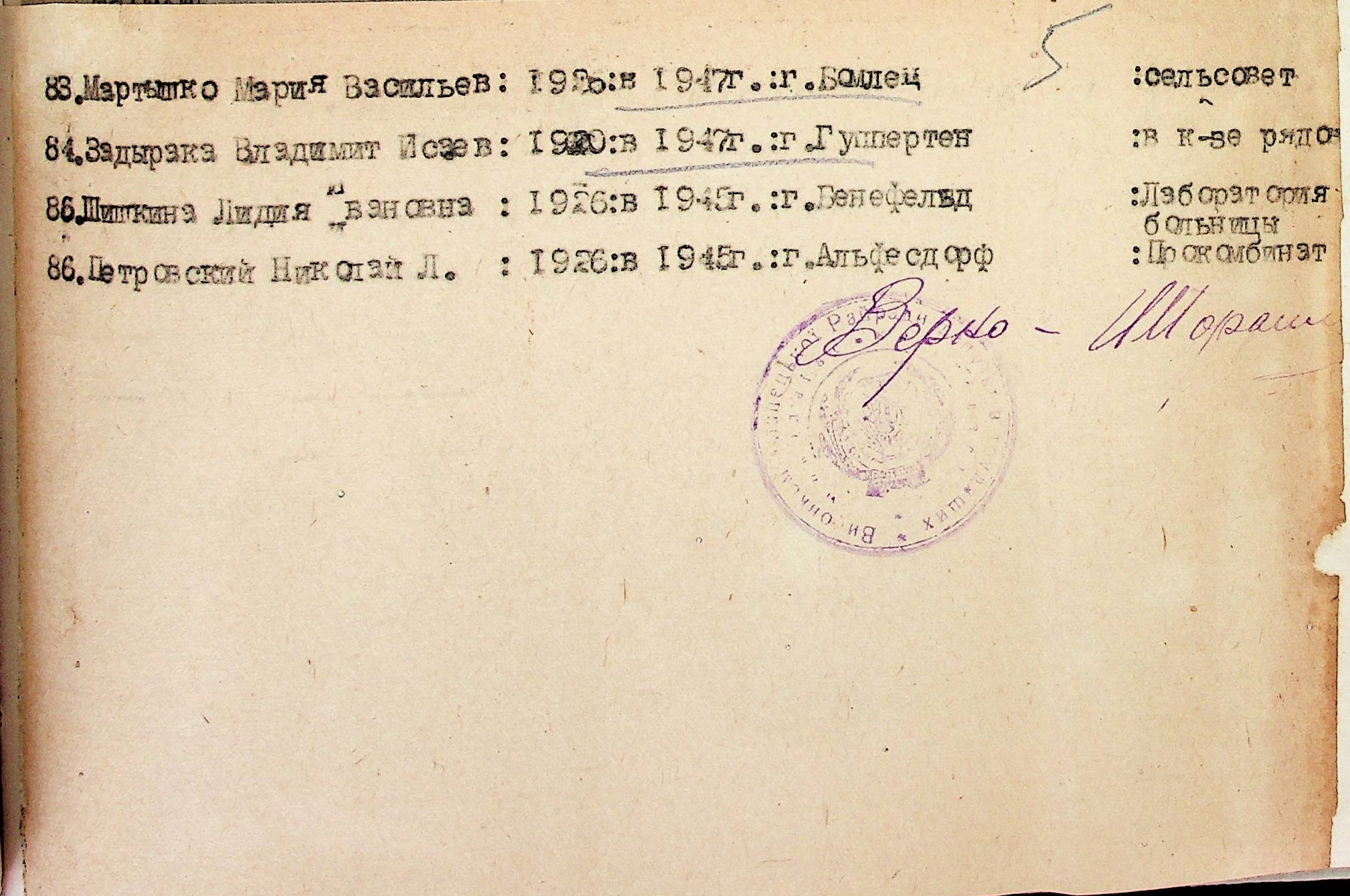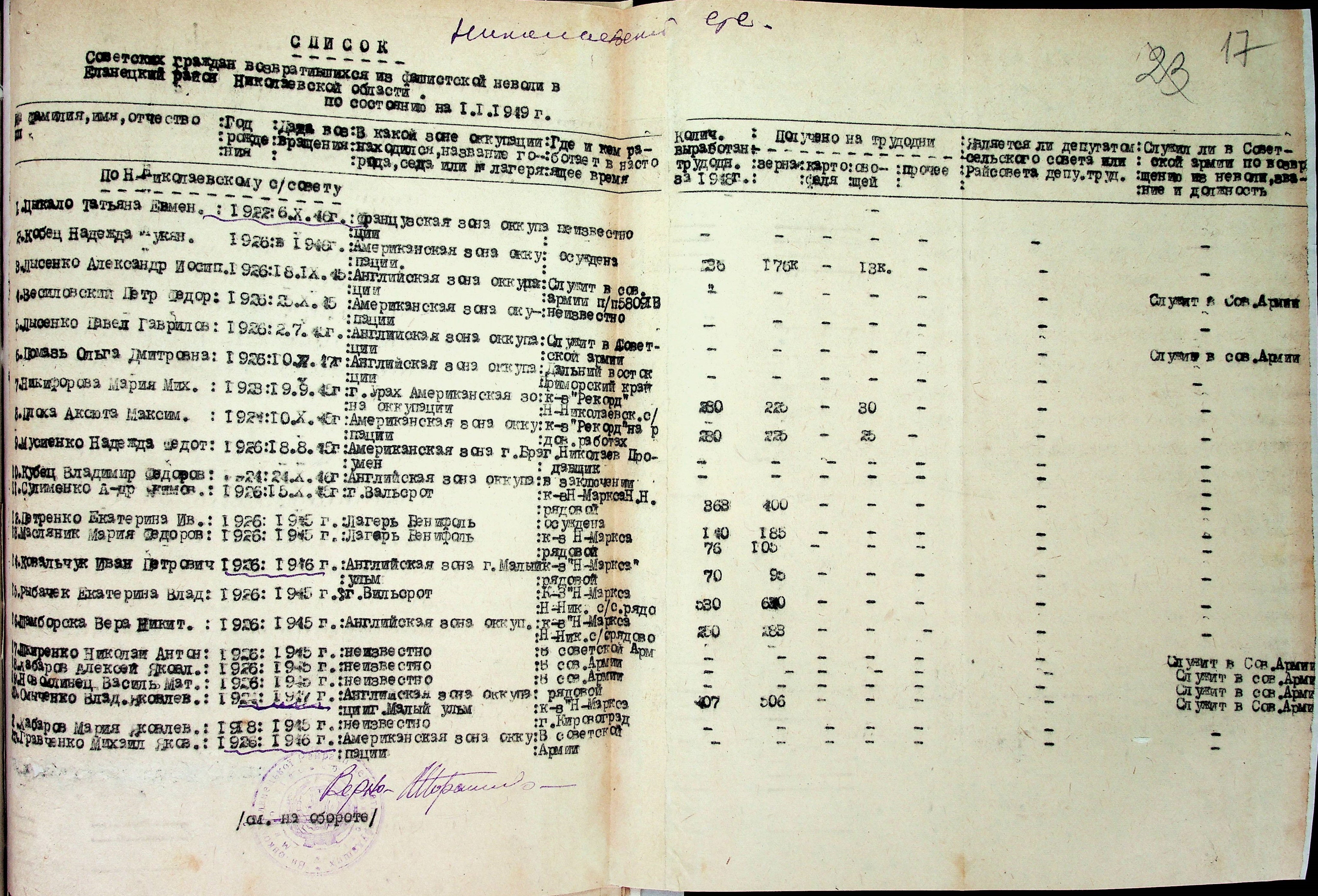 Листування відділу у справах репатріації виконкому Микола-ївської облради депутатів трудящих з відділом у справах репатріації при Раді Міністрів УРСР з питань розшуку та обліку радянських громадян”