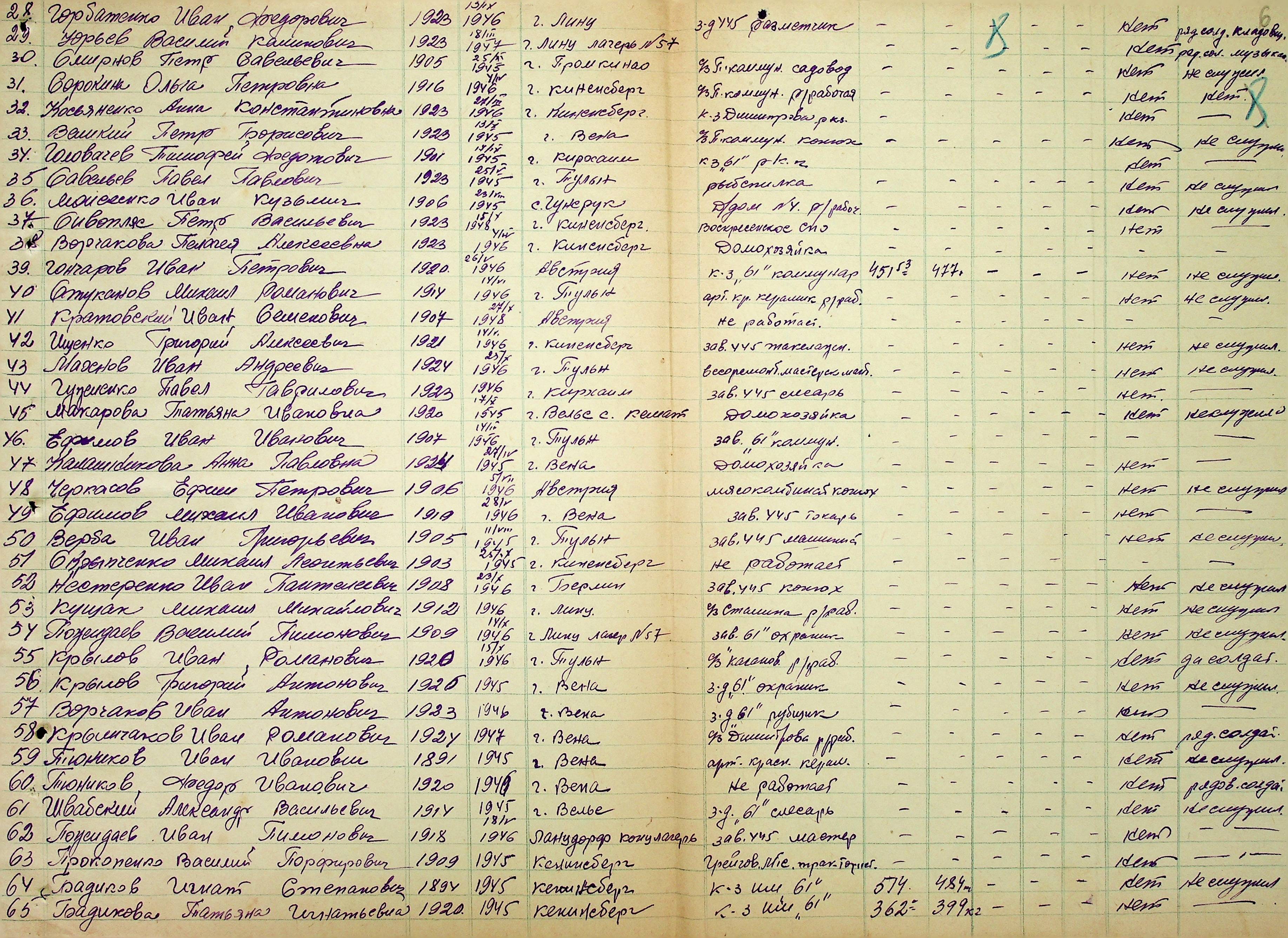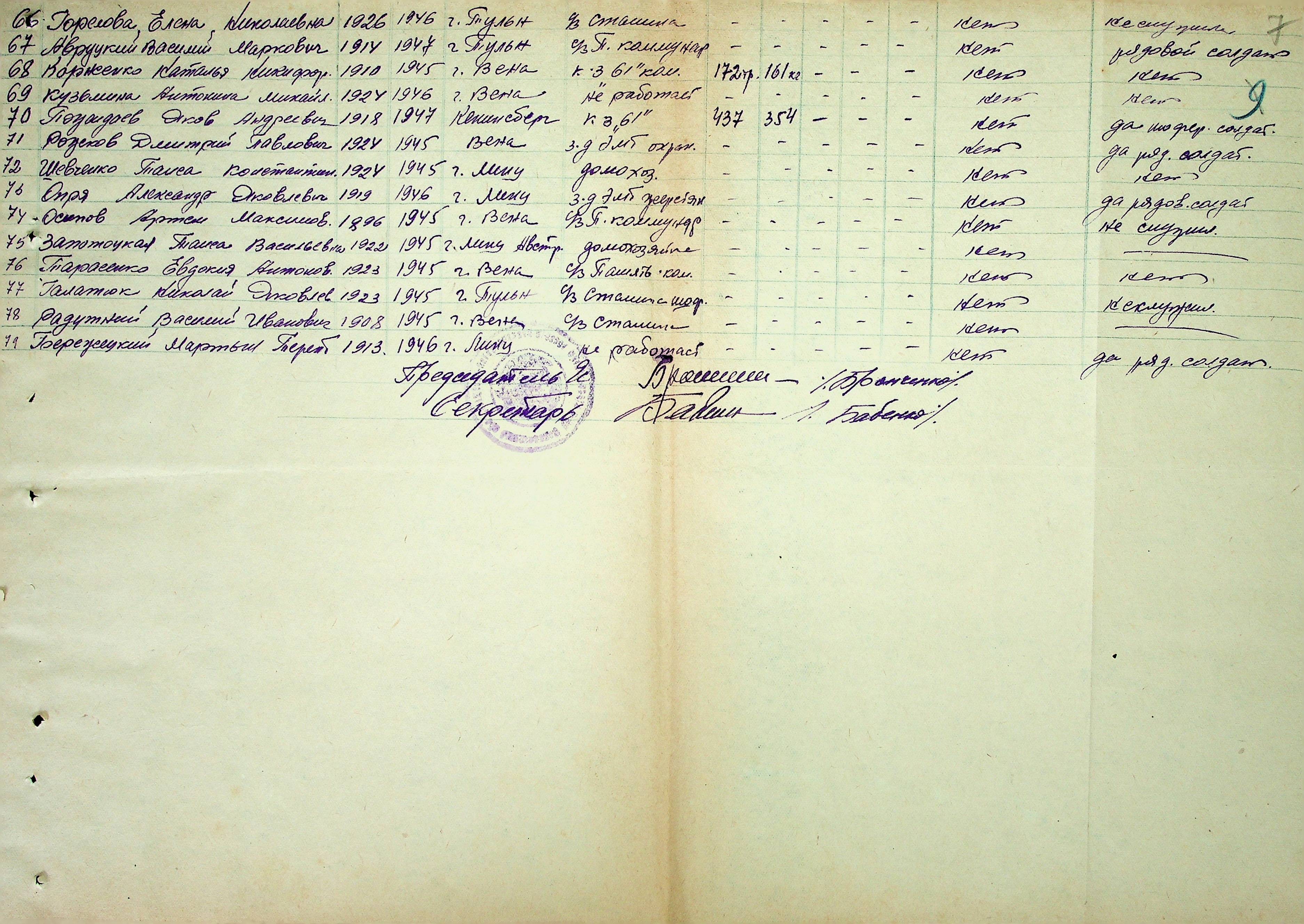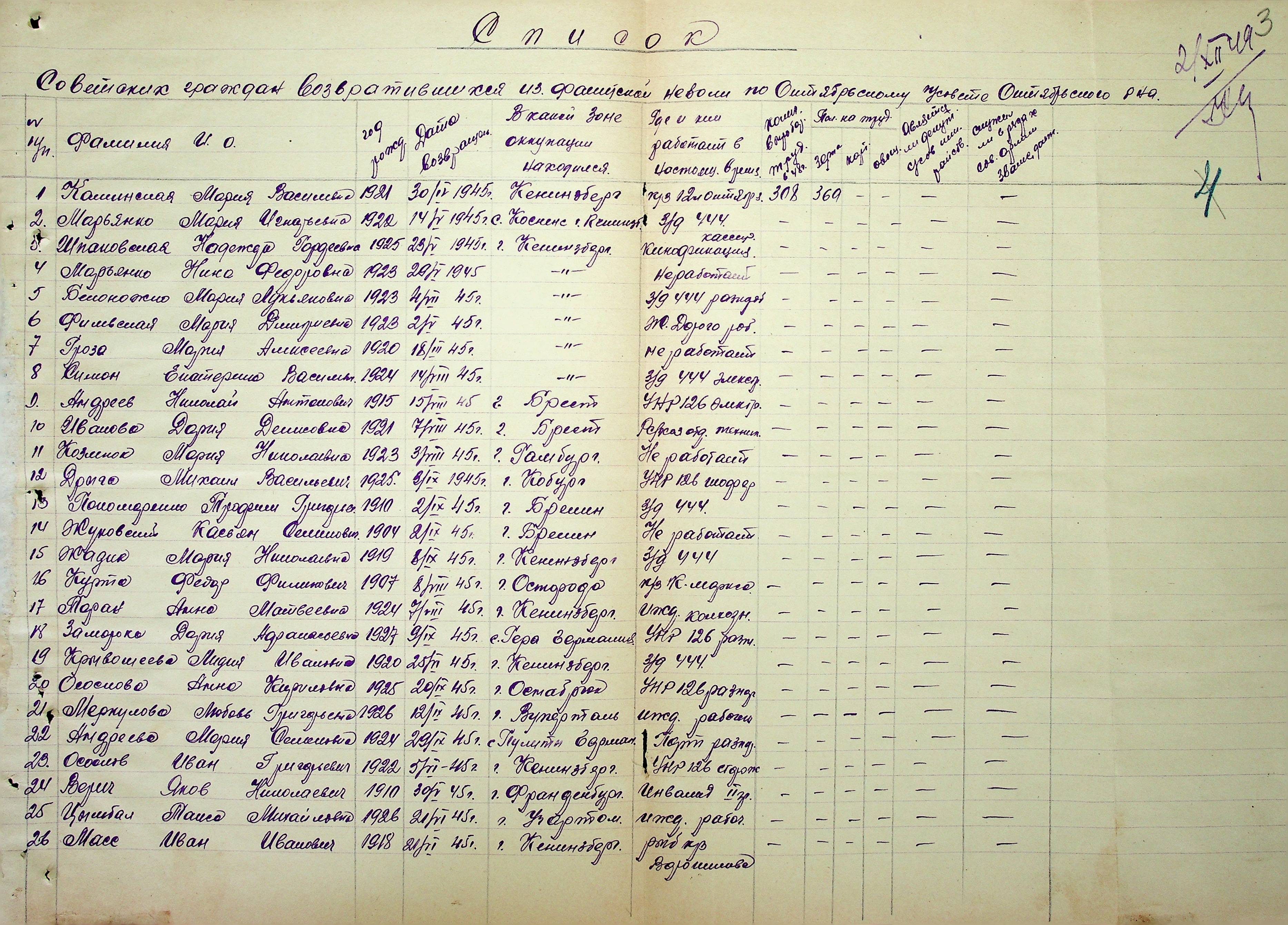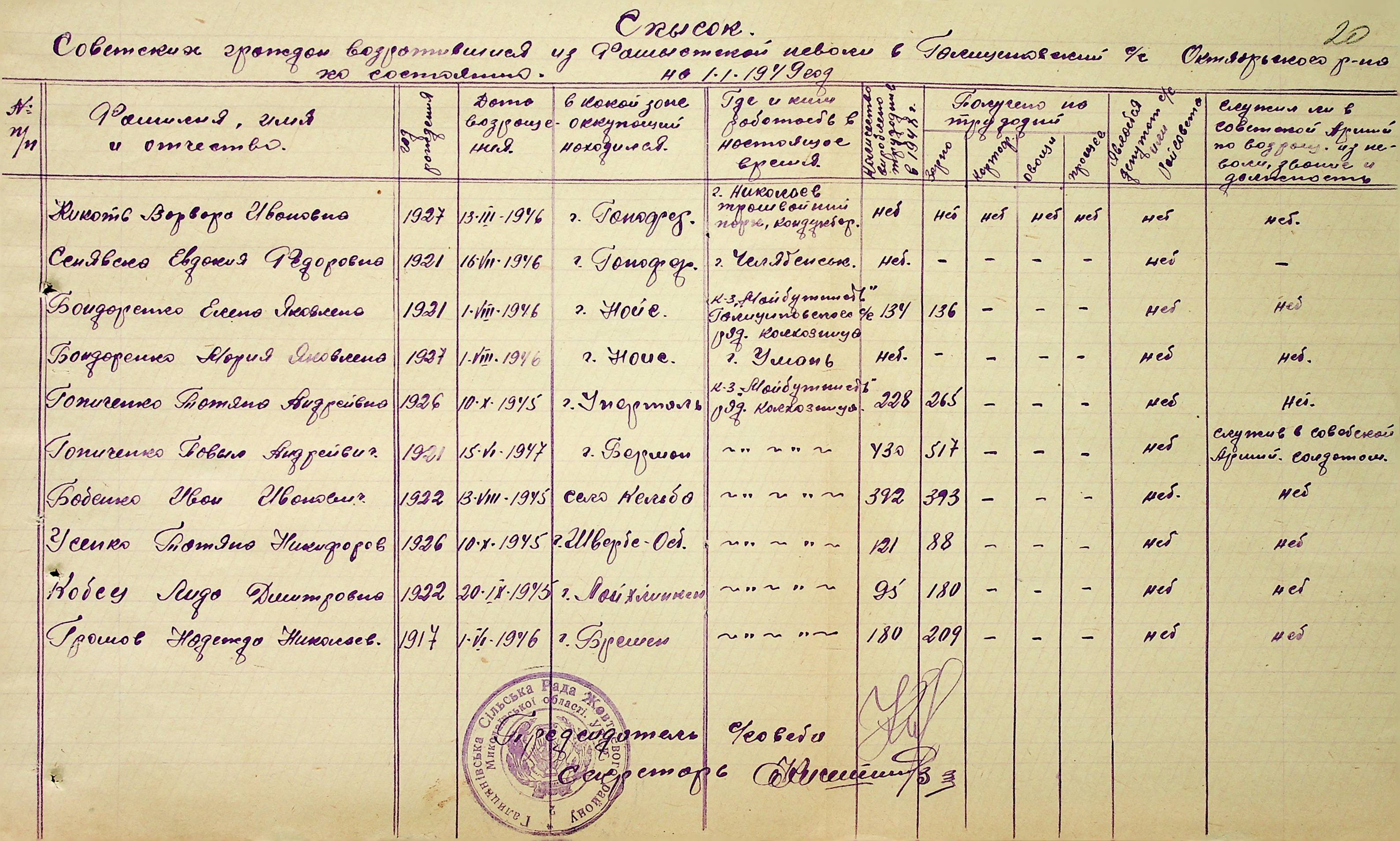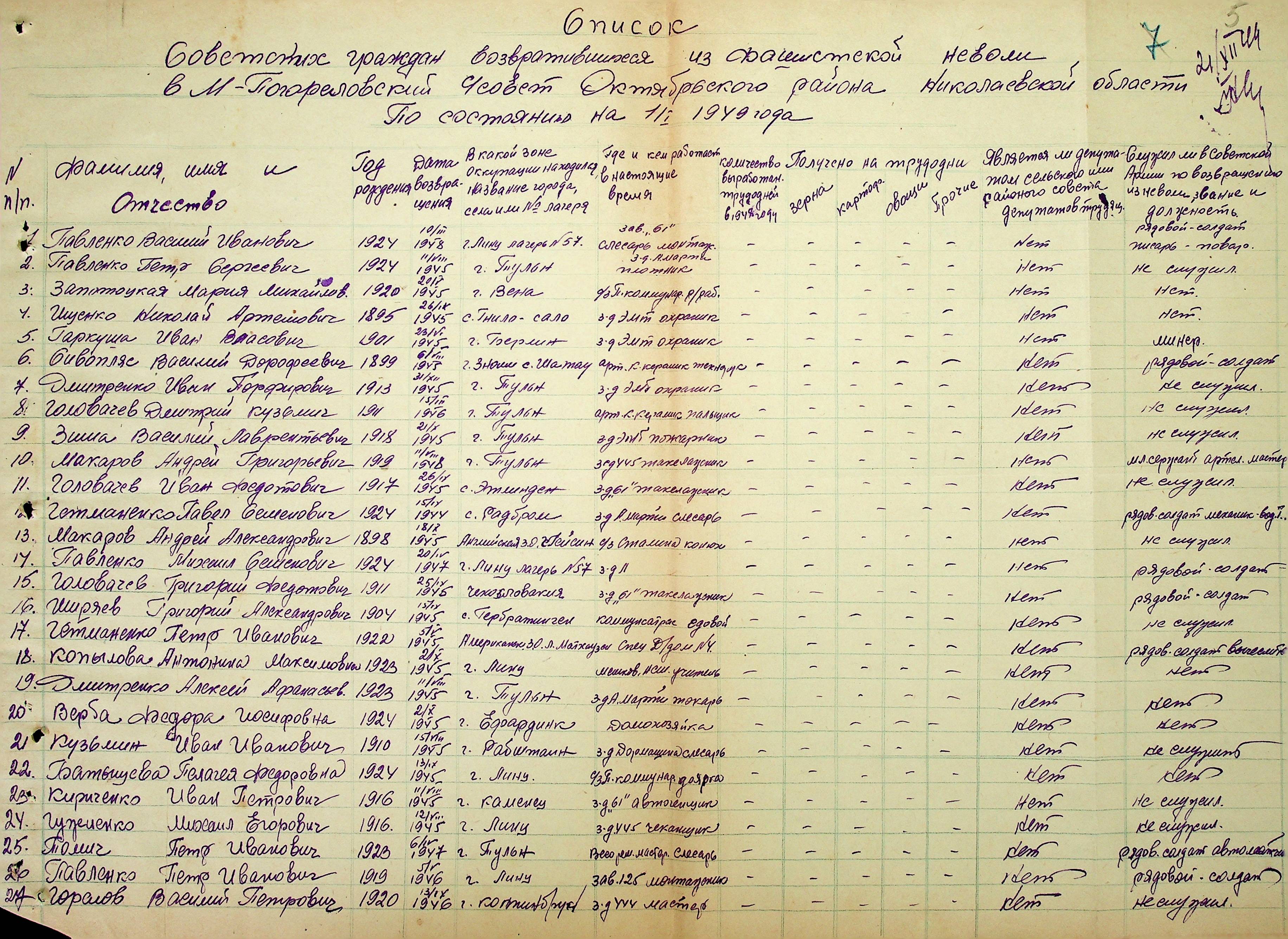 • • • • Справа № 51 “Списки репатрійованих радянських громадян, які повернулися на Батьківщину до Жовтневого району Миколаївської області.