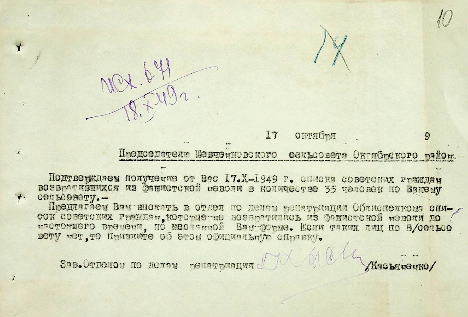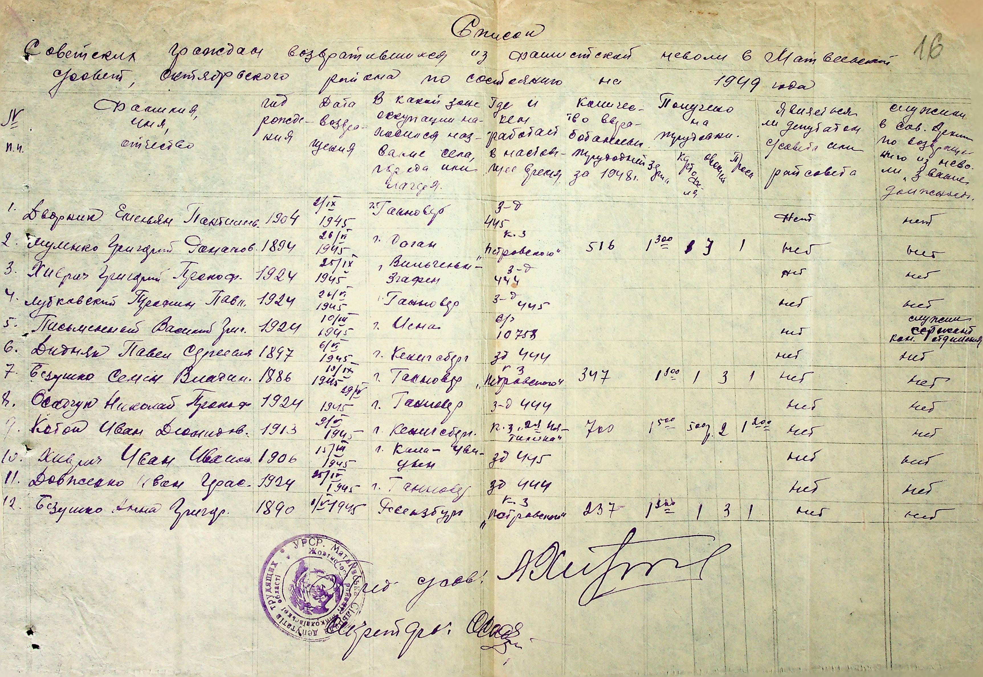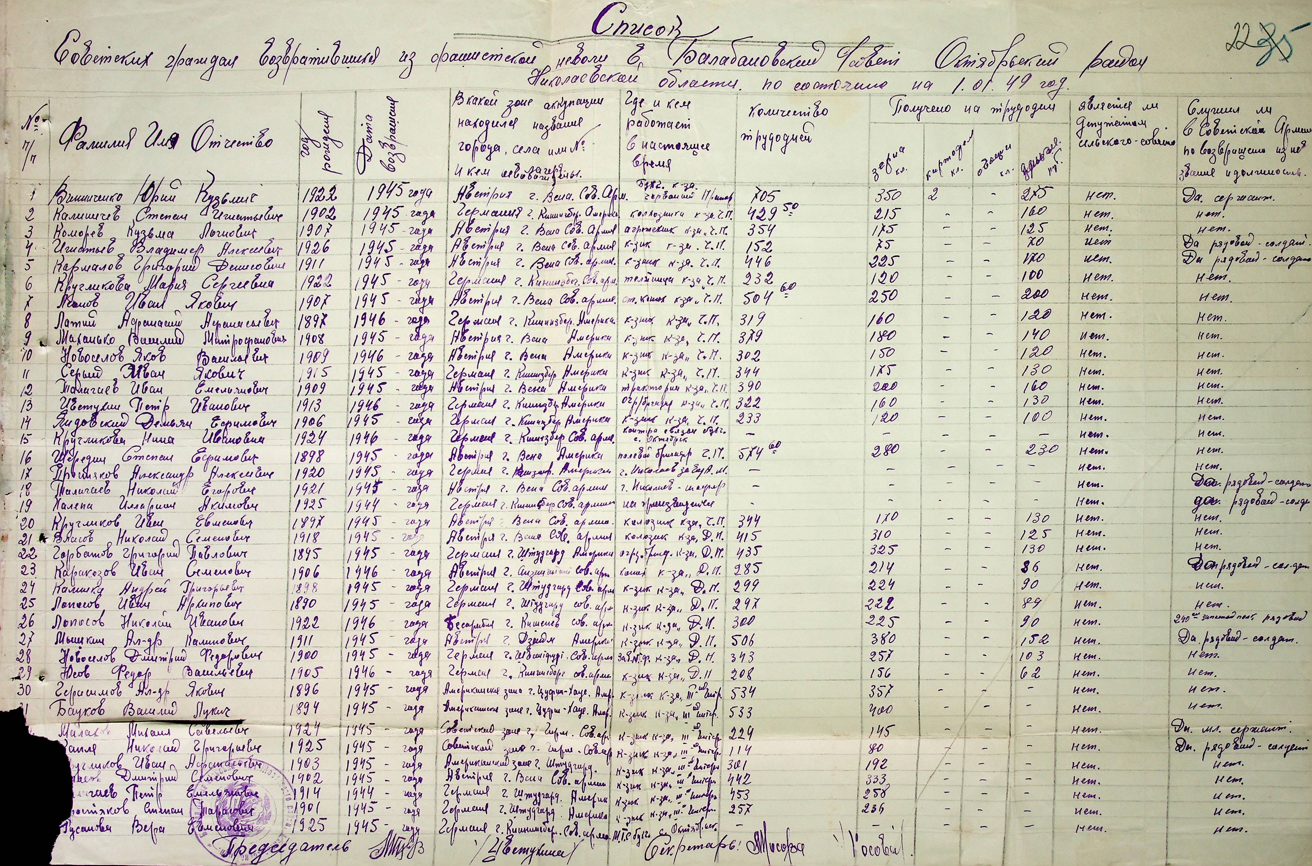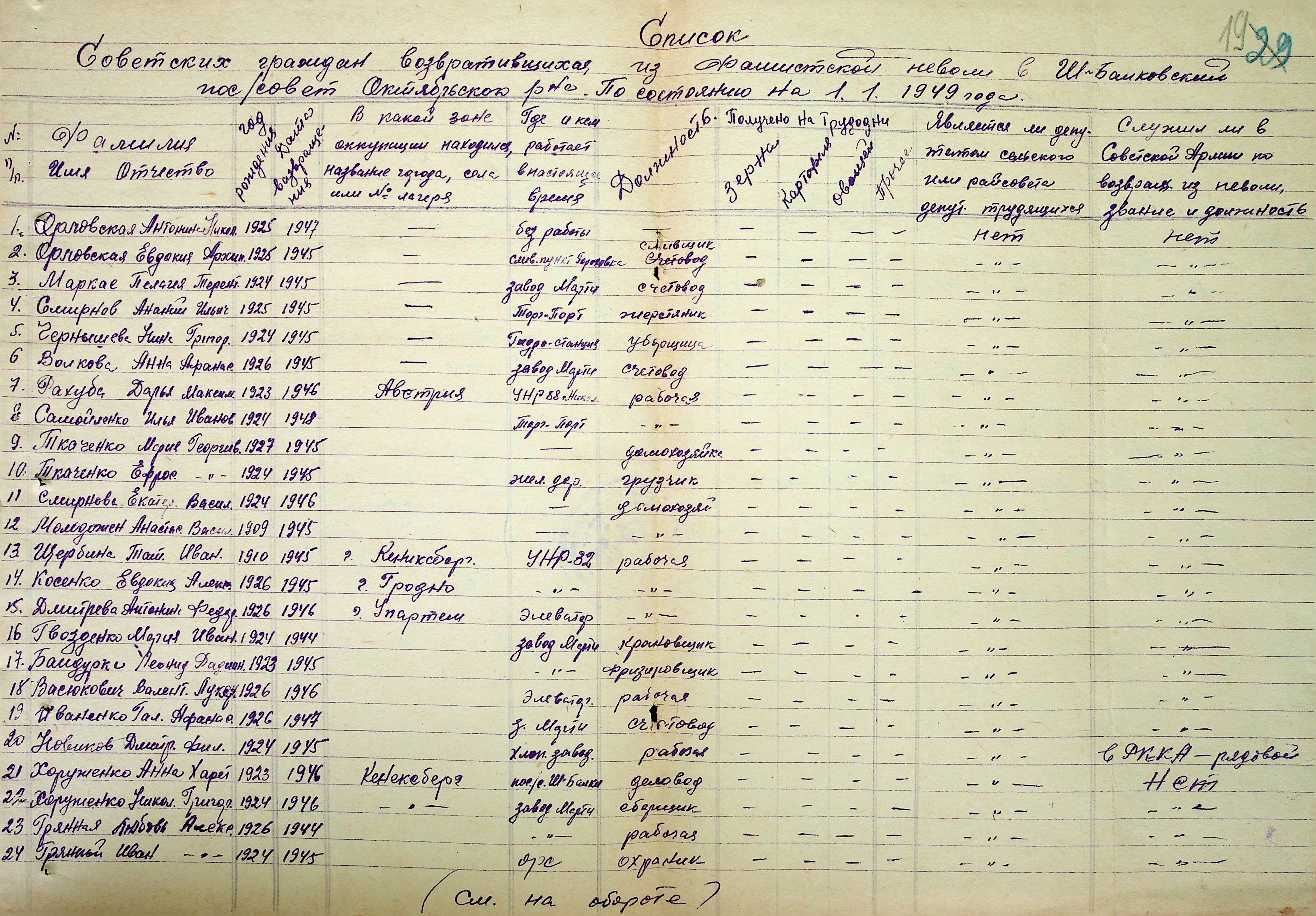 • • • • Справа № 51 “Списки репатрійованих радянських громадян, які повернулися на Батьківщину до Жовтневого району Миколаївської області.