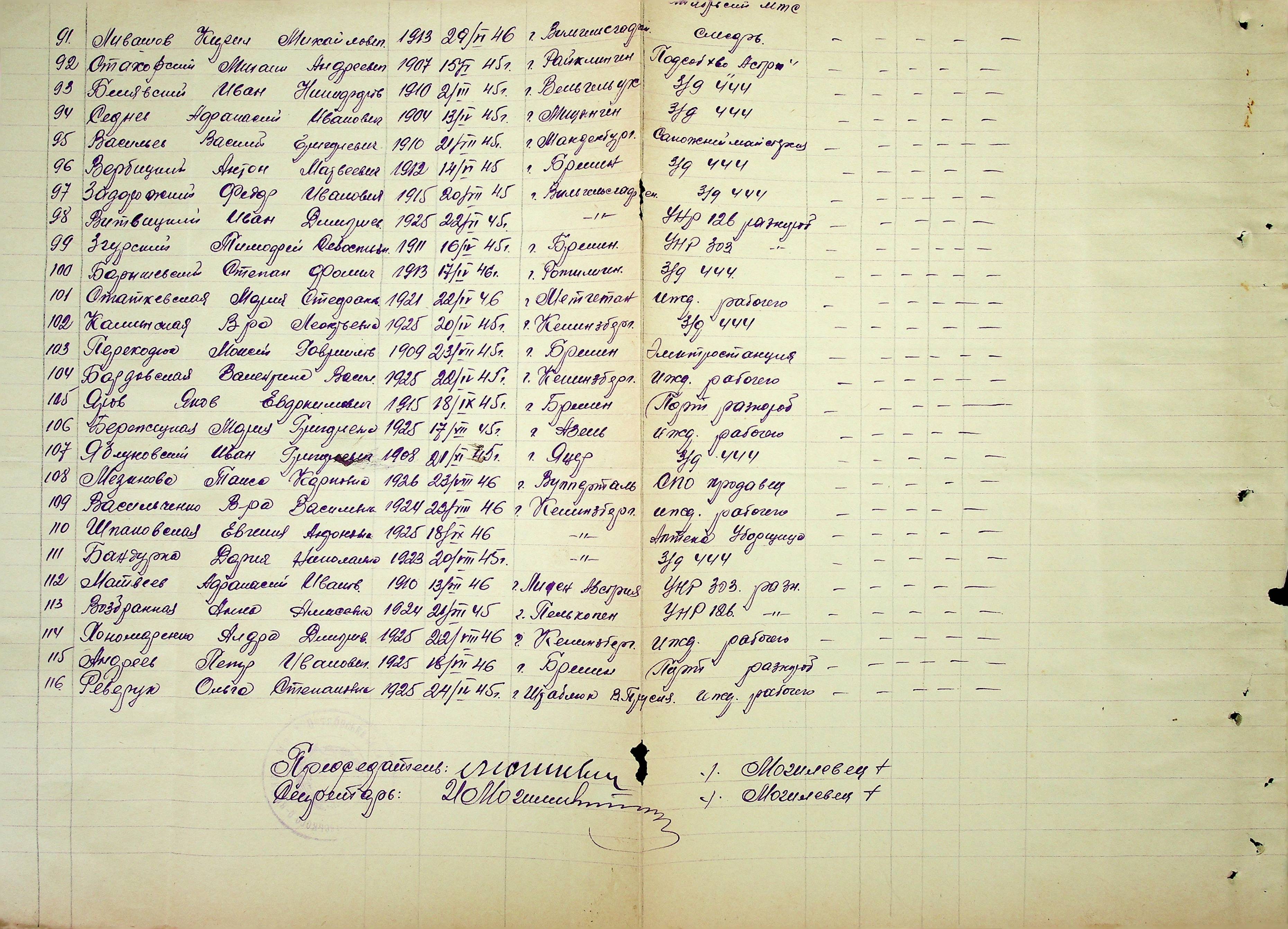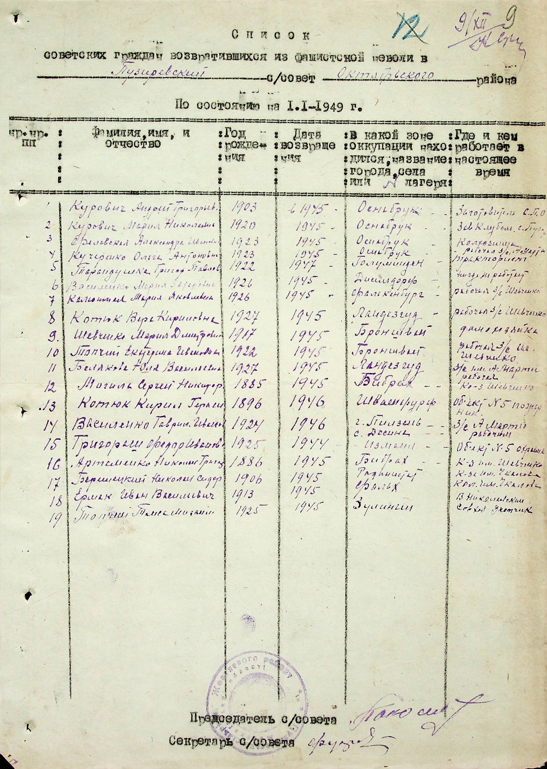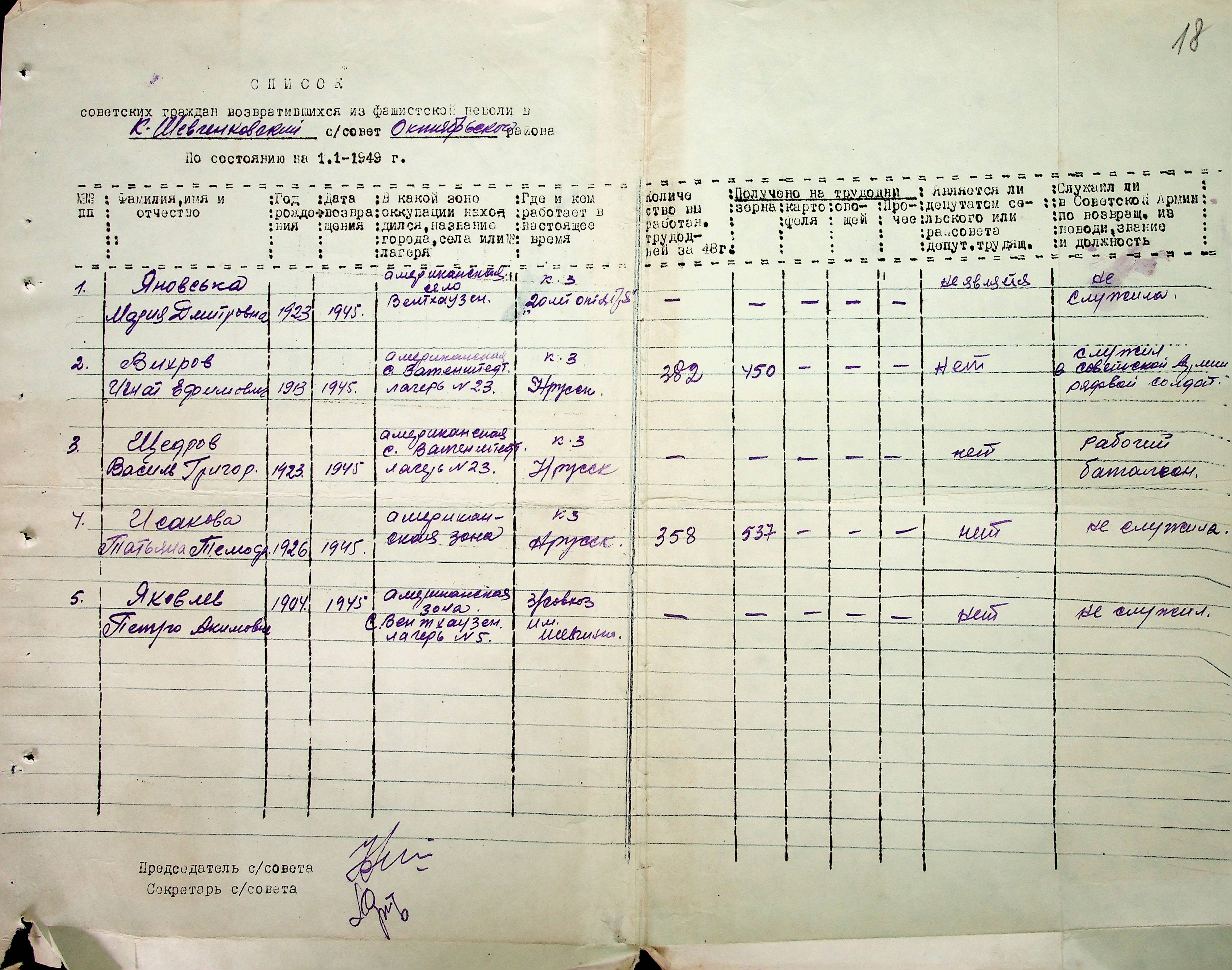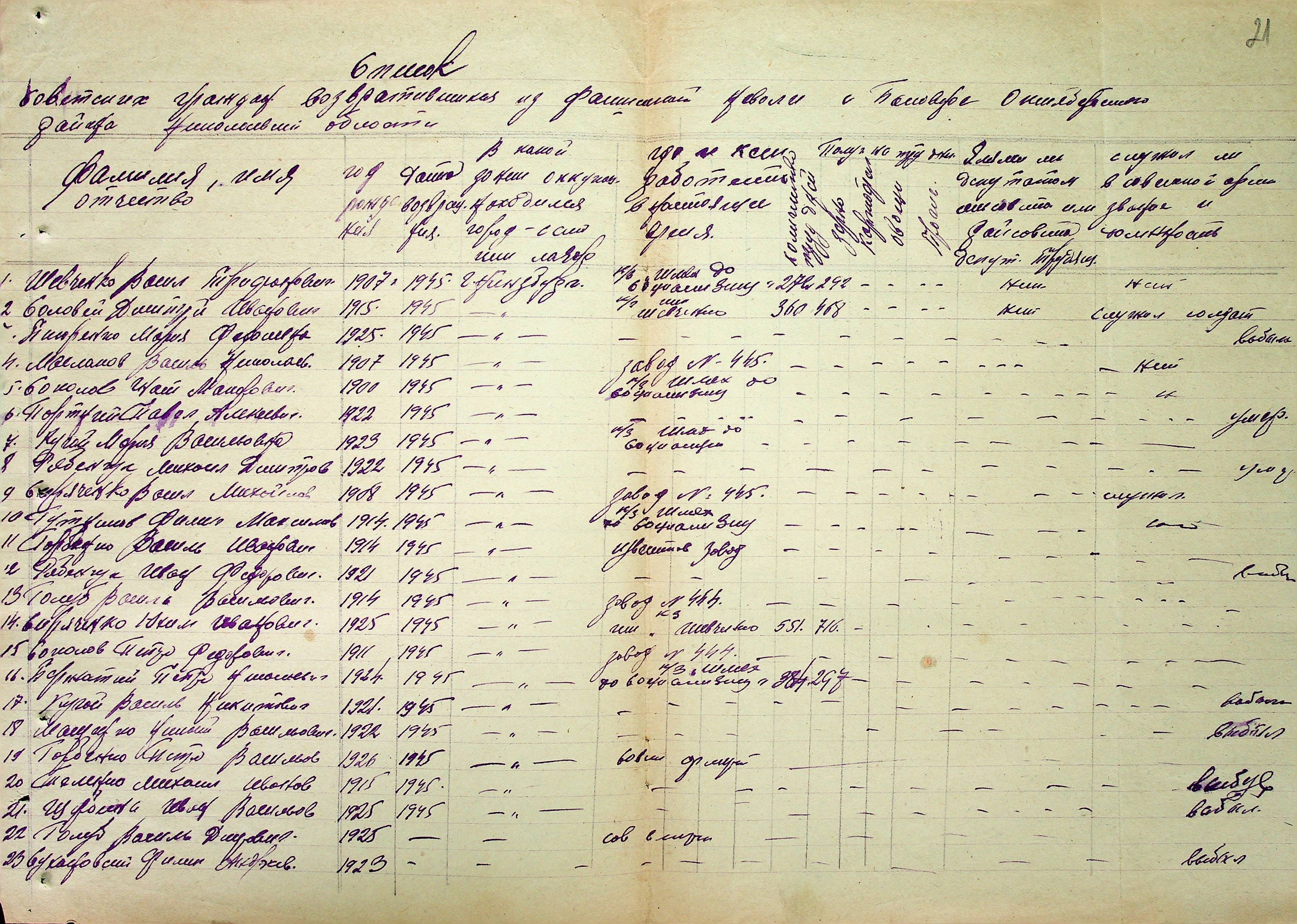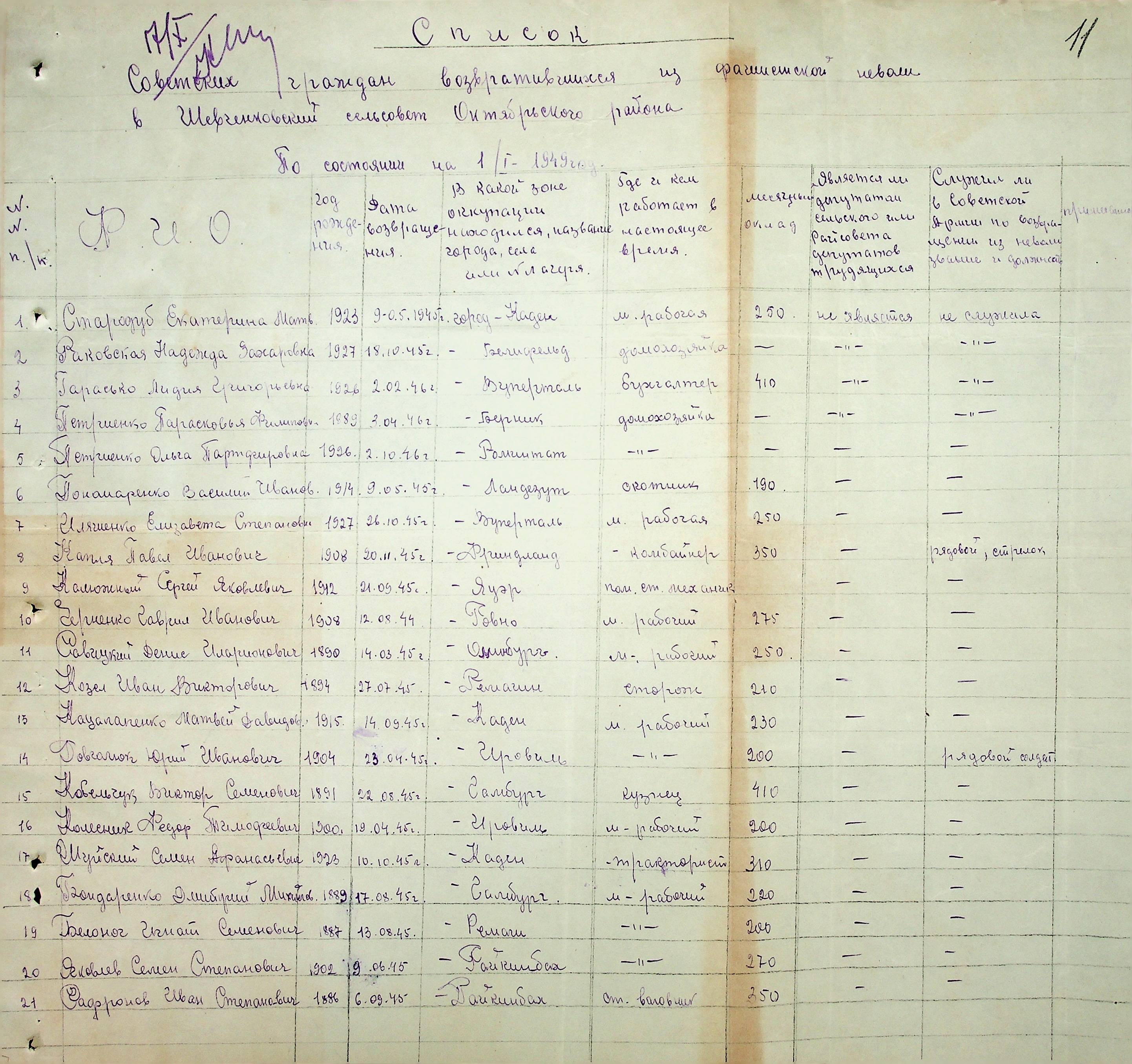 • • • • Справа № 51 “Списки репатрійованих радянських громадян, які повернулися на Батьківщину до Жовтневого району Миколаївської області.