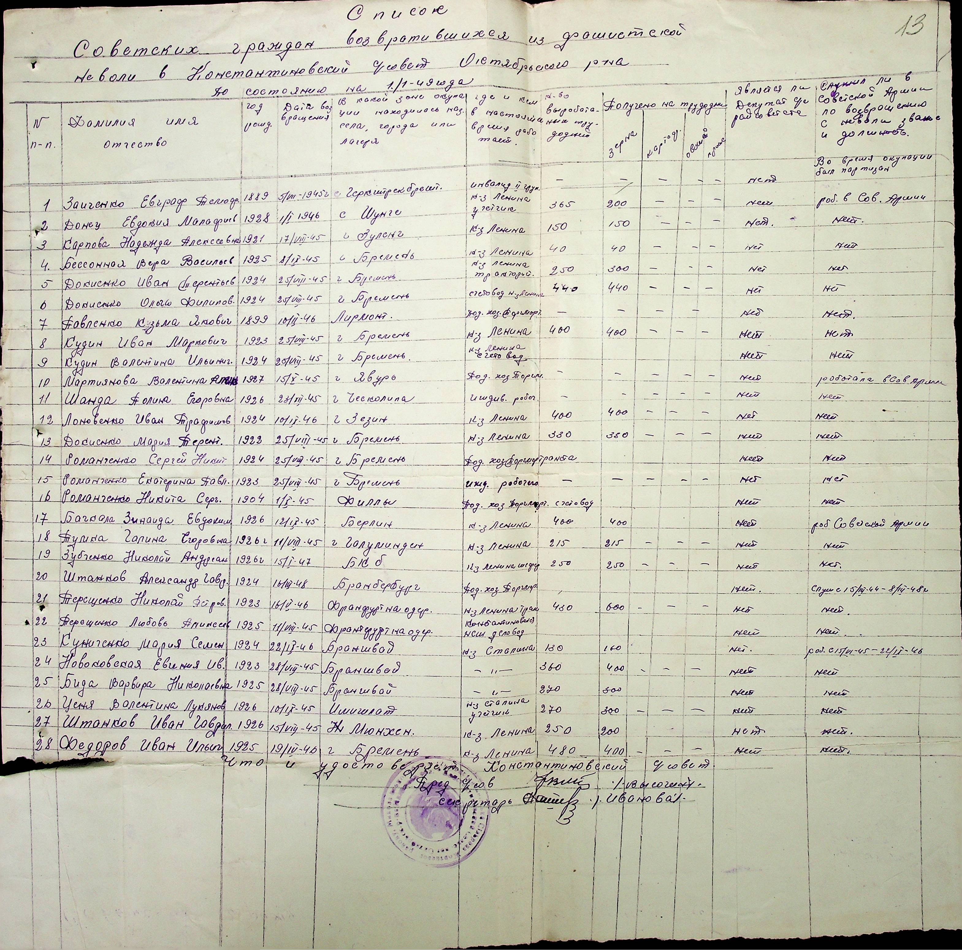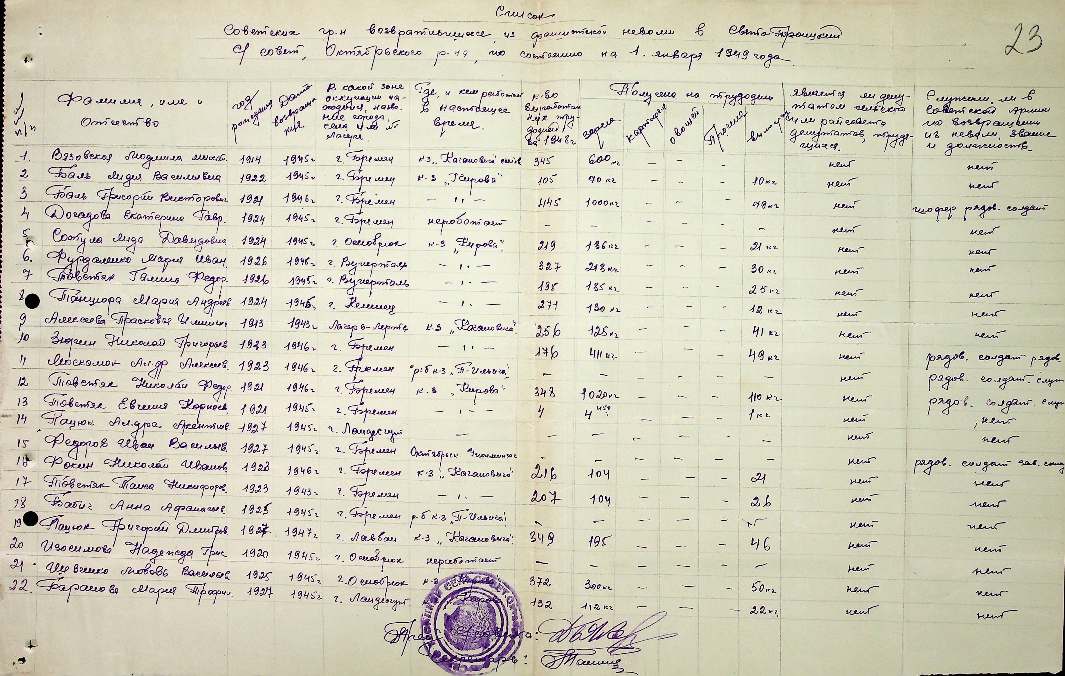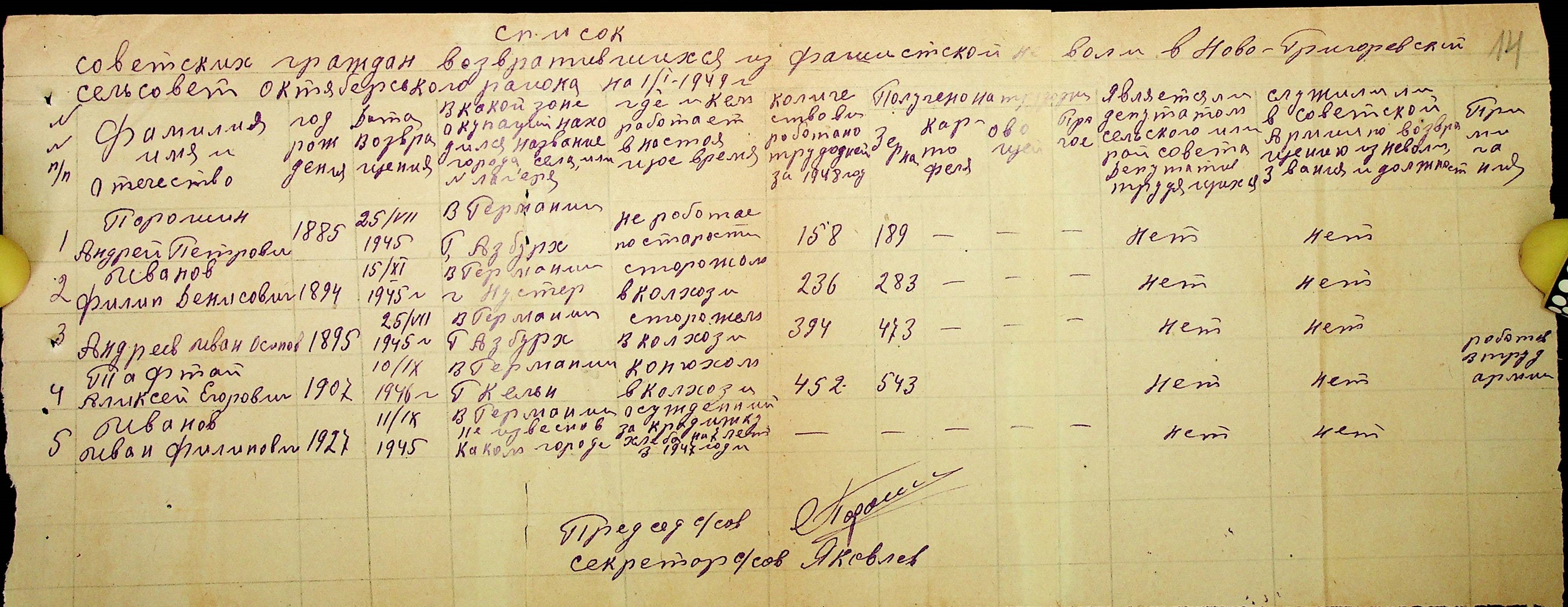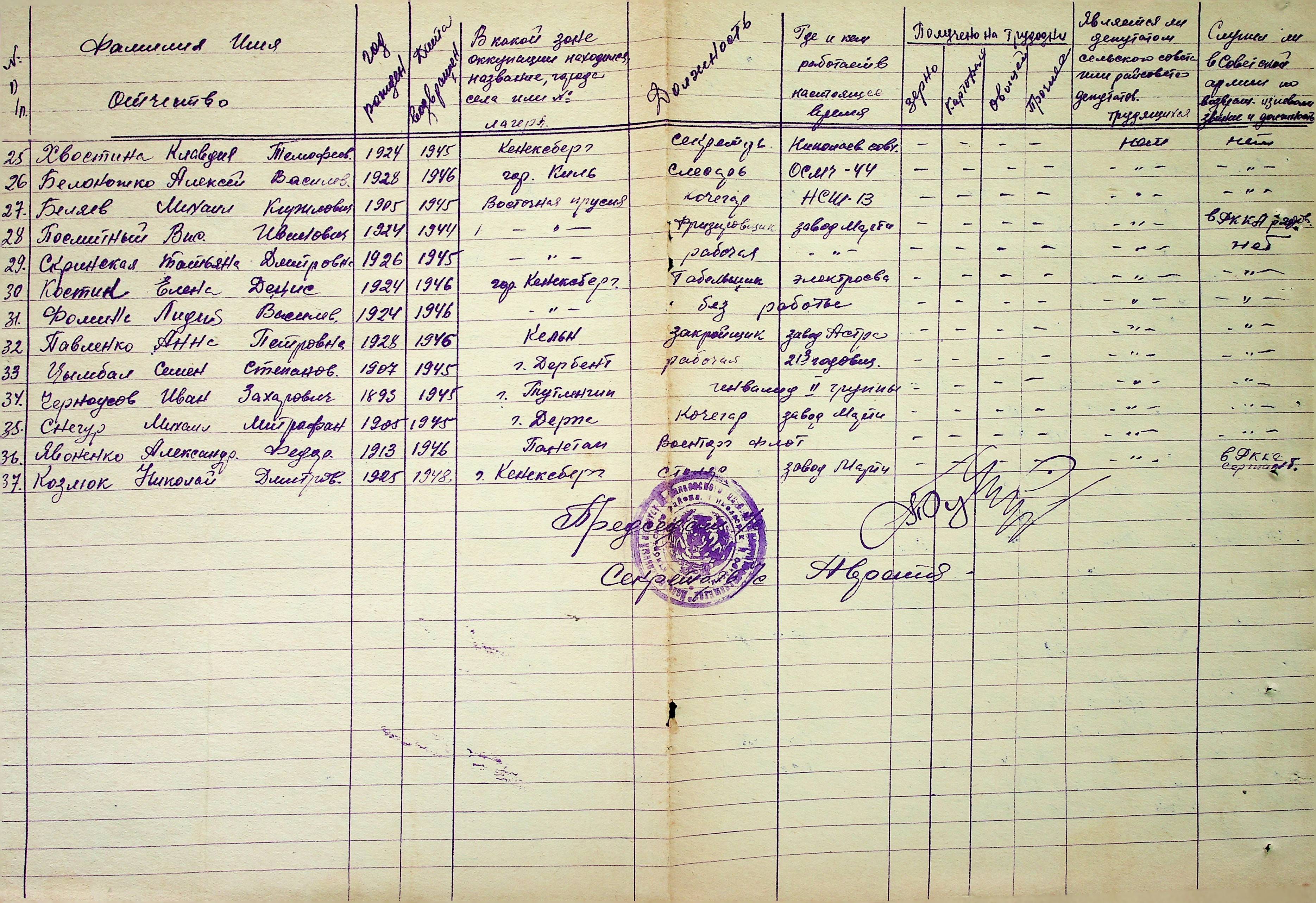 • • • • Справа № 51 “Списки репатрійованих радянських громадян, які повернулися на Батьківщину до Жовтневого району Миколаївської області.