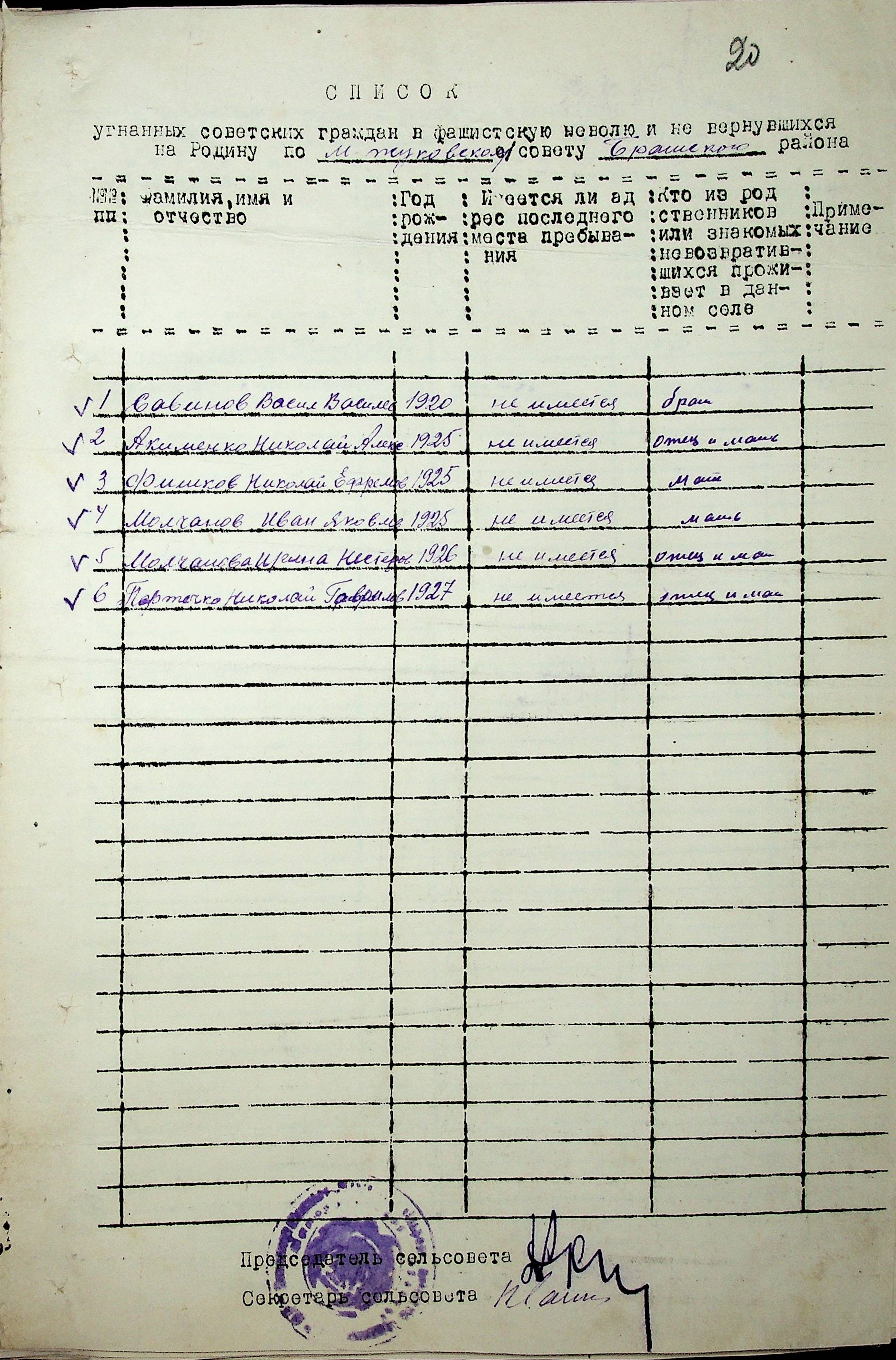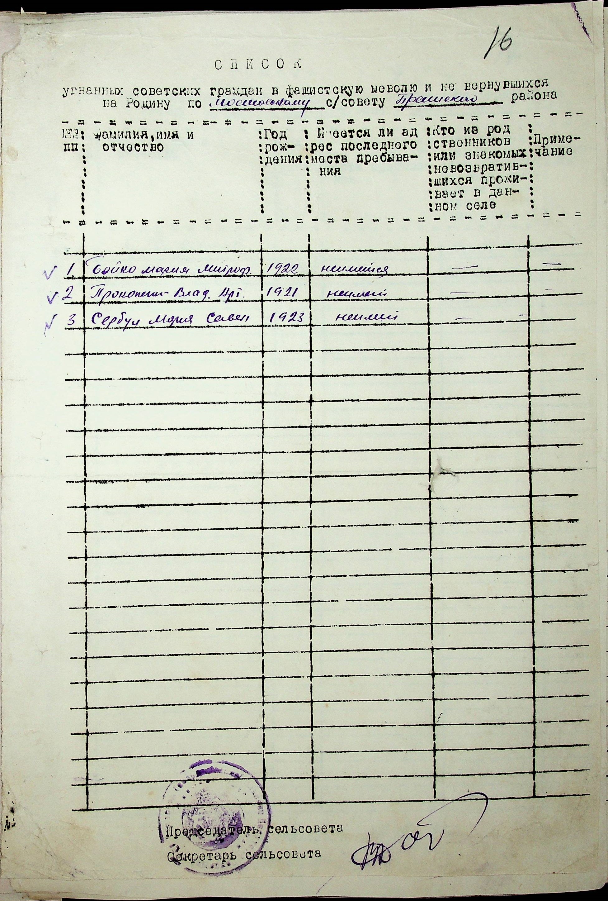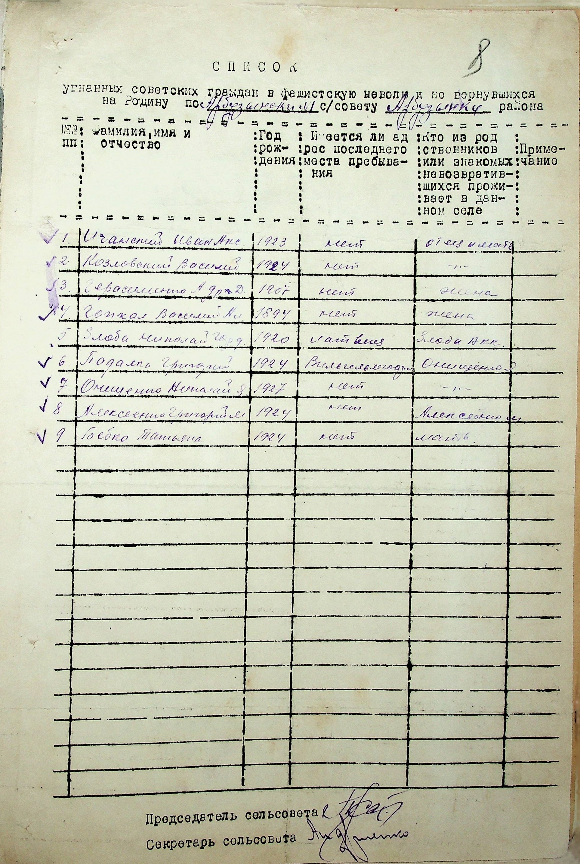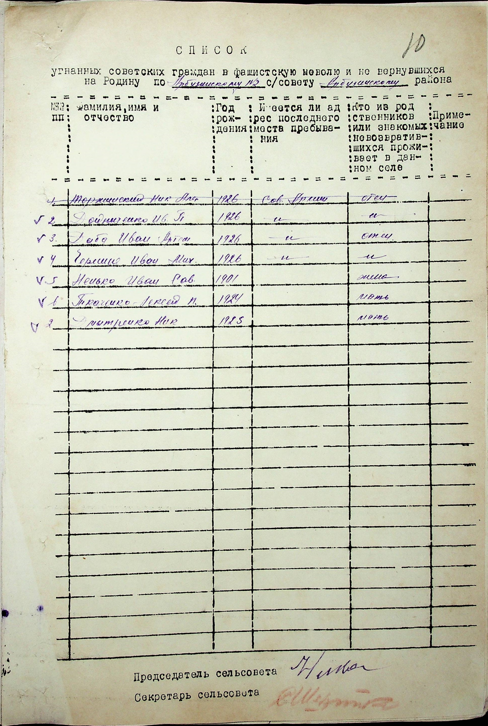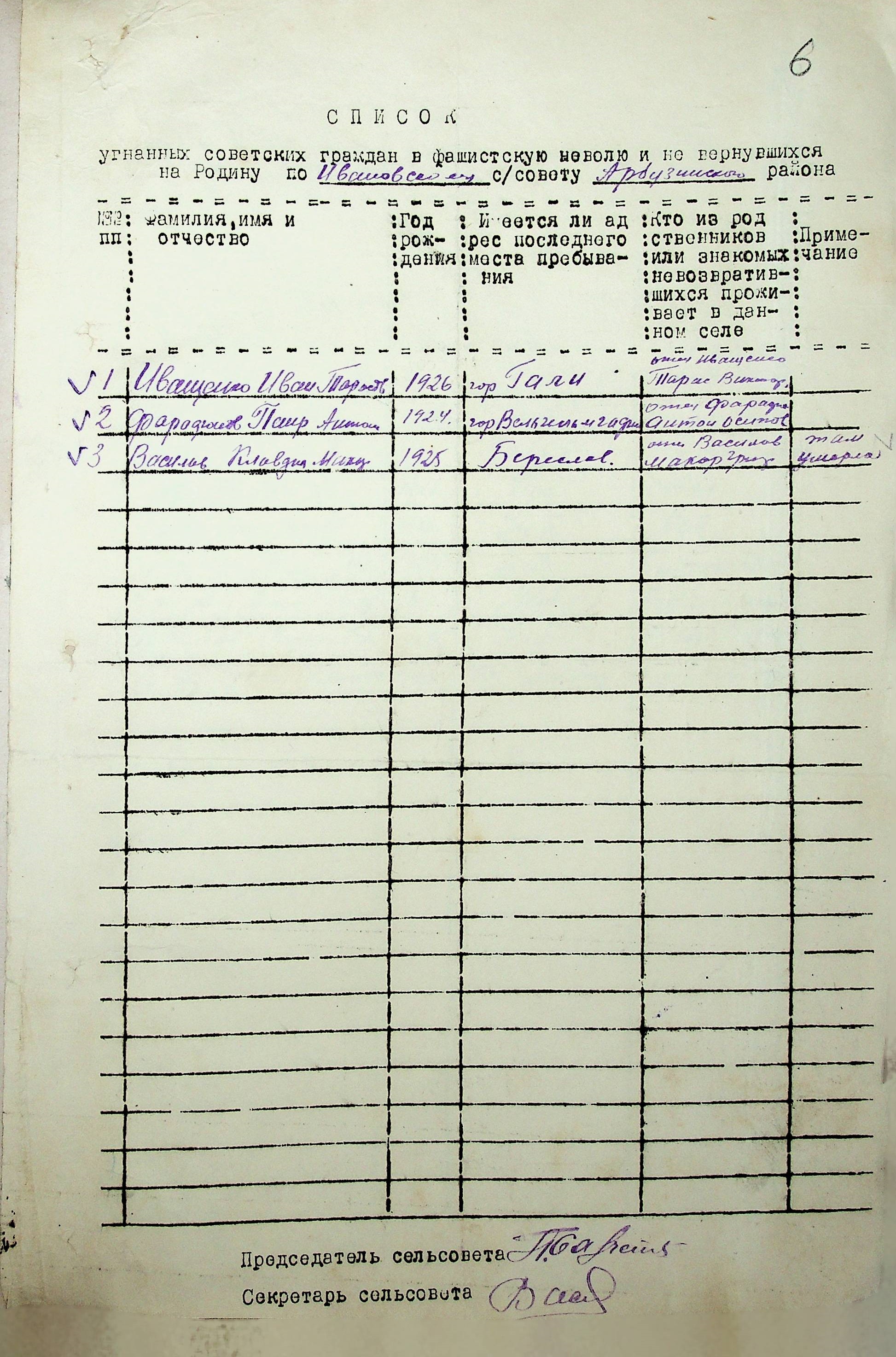 Довідки, надані сільськими Радами про відсутність осіб, які були примусово вивезені до Німеччини і не повернулись на Батьківщину”