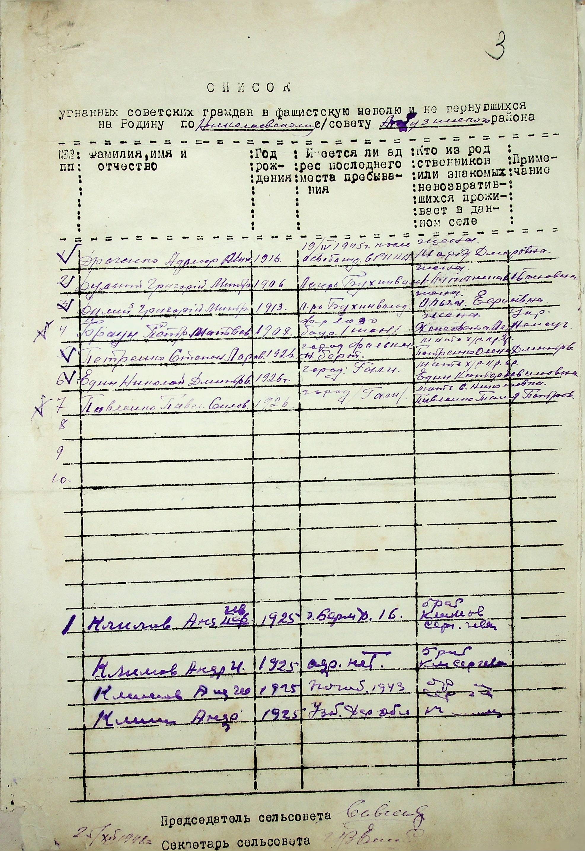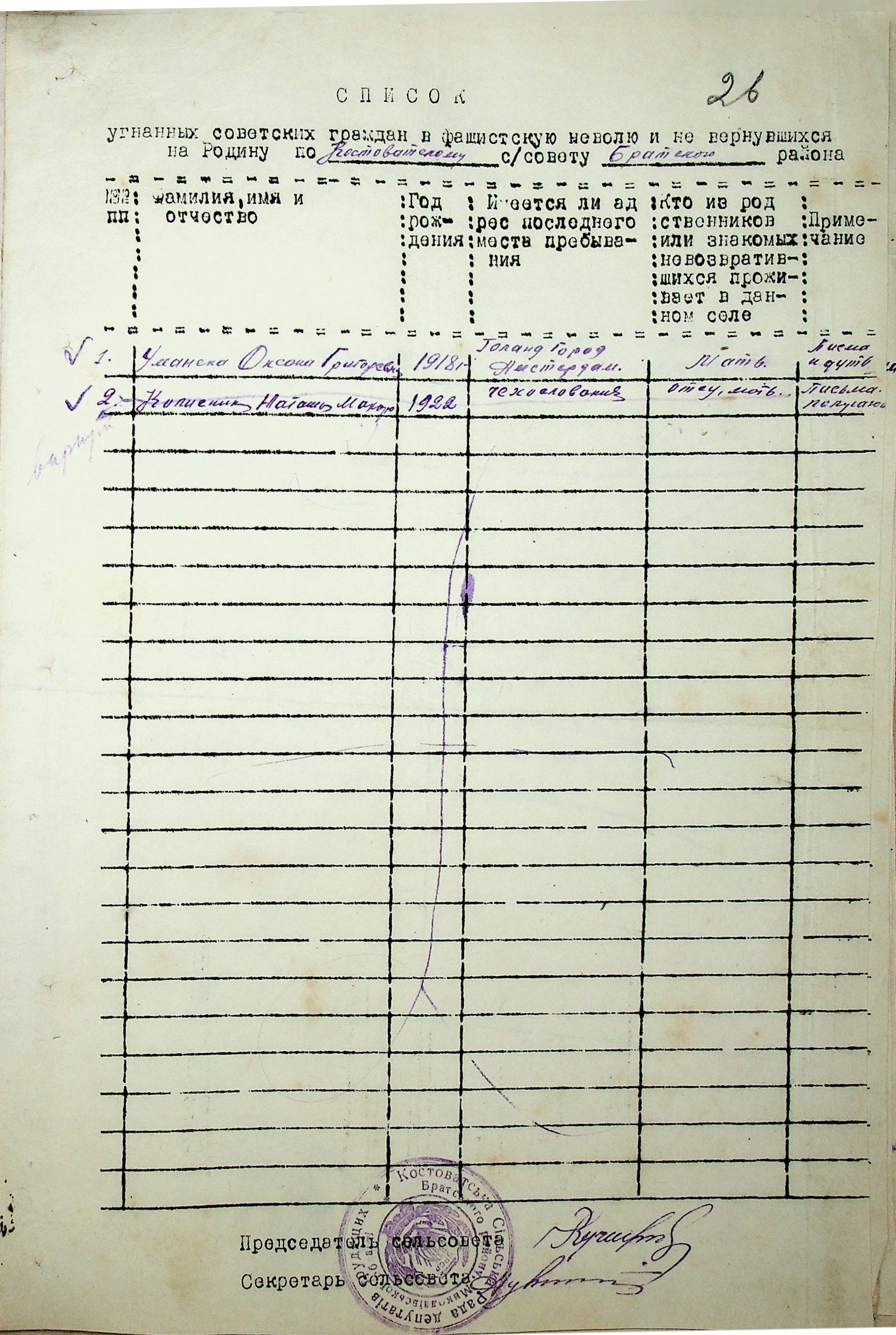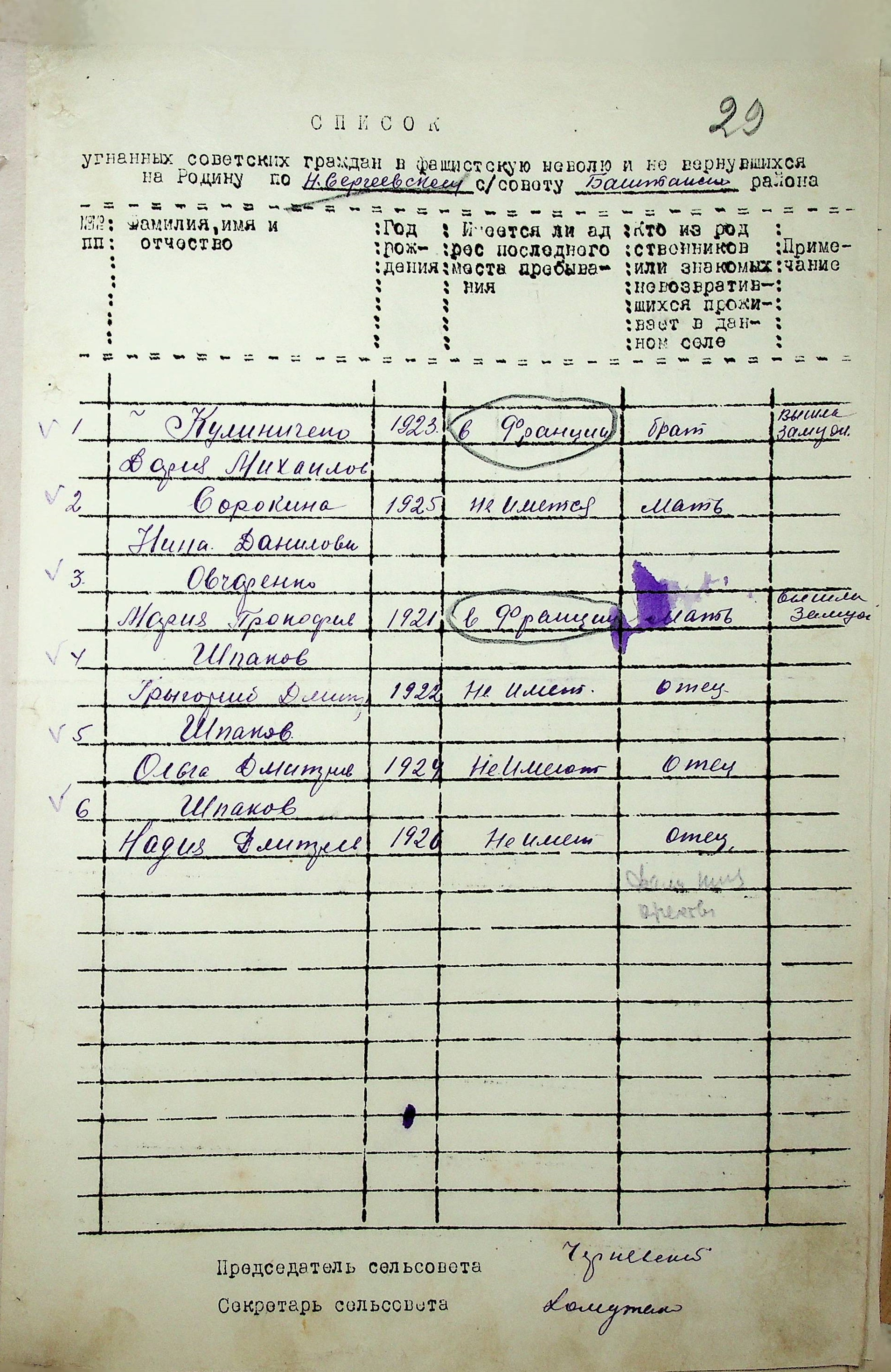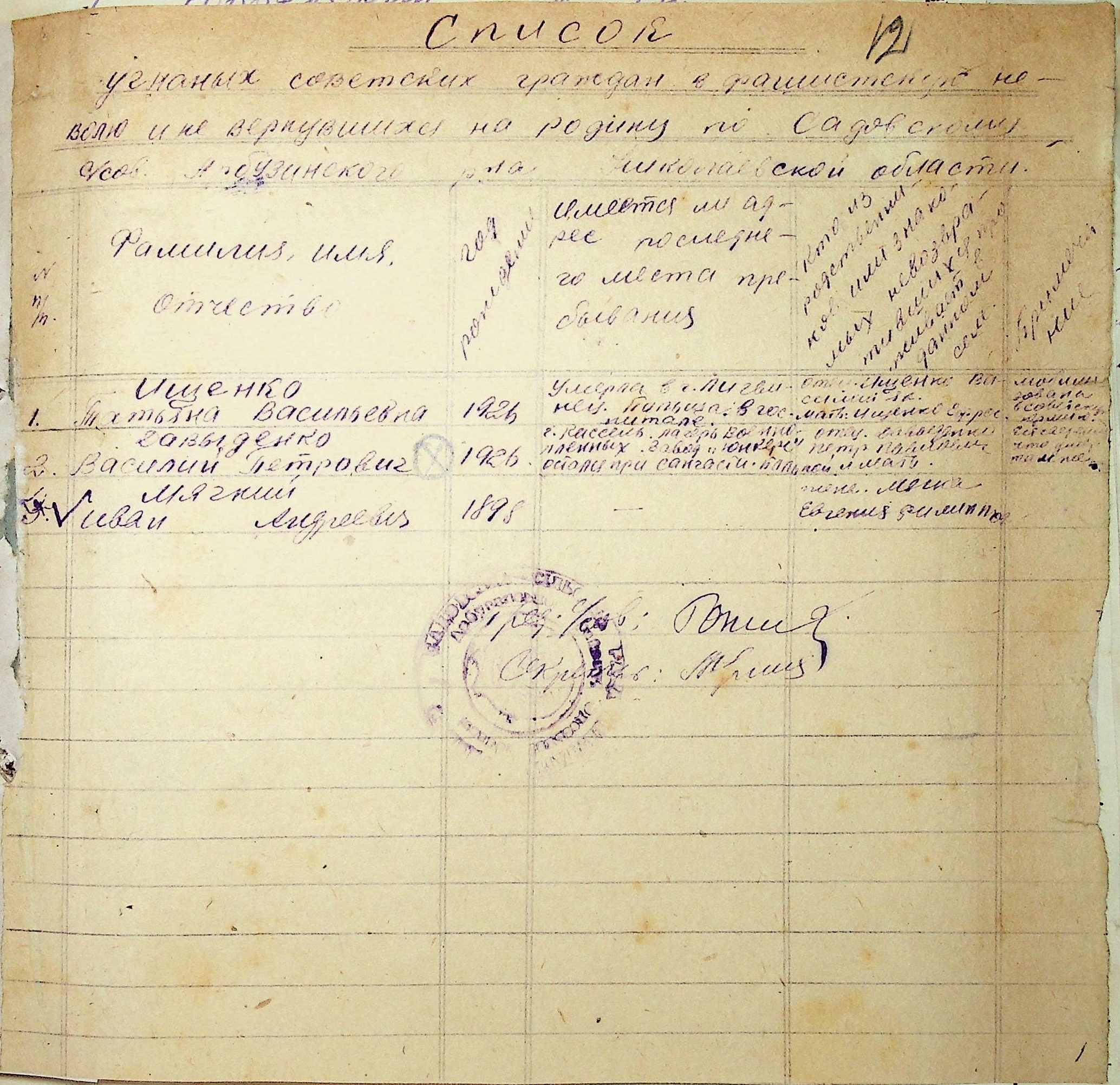 Довідки, надані сільськими Радами про відсутність осіб, які були примусово вивезені до Німеччини і не повернулись на Батьківщину”