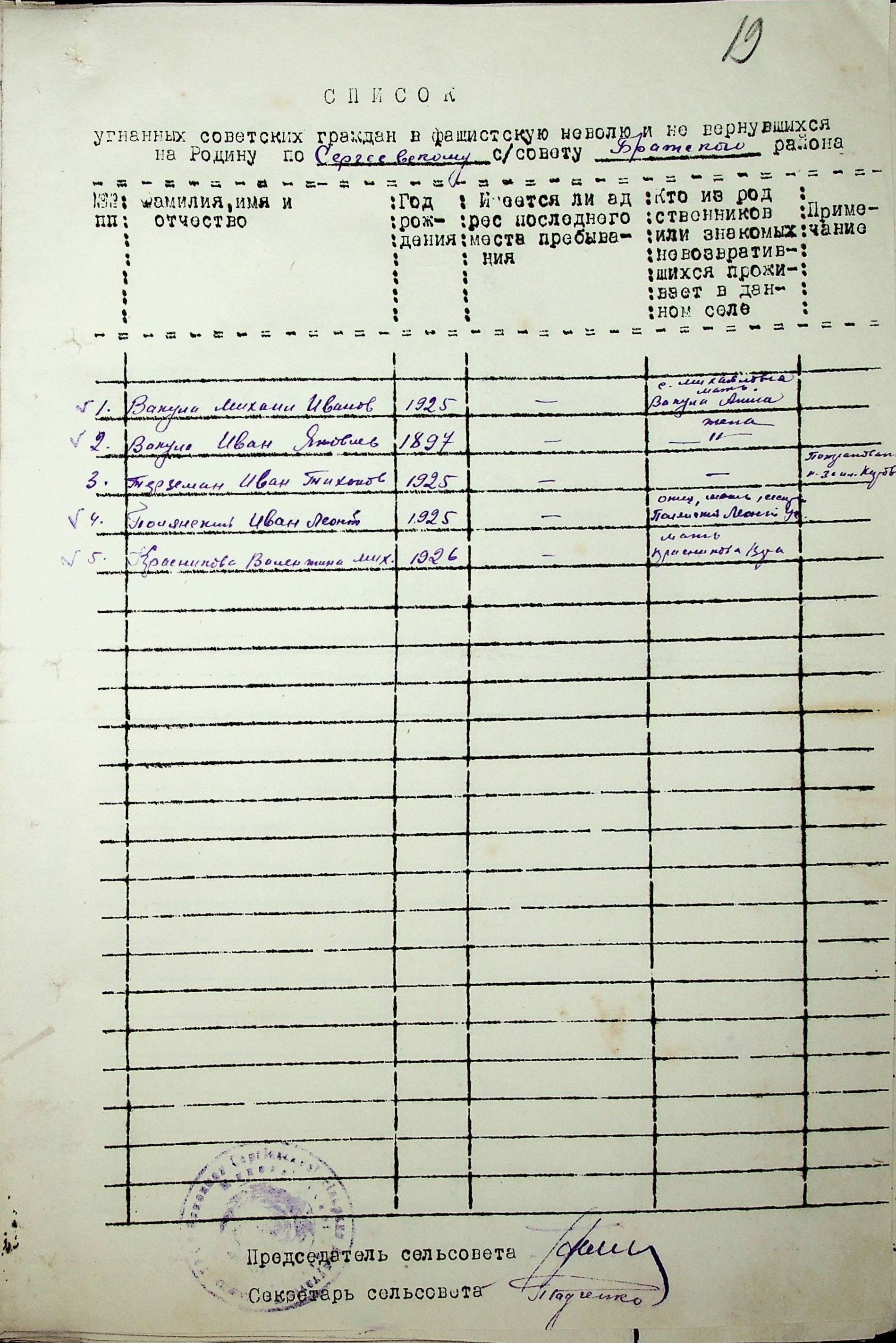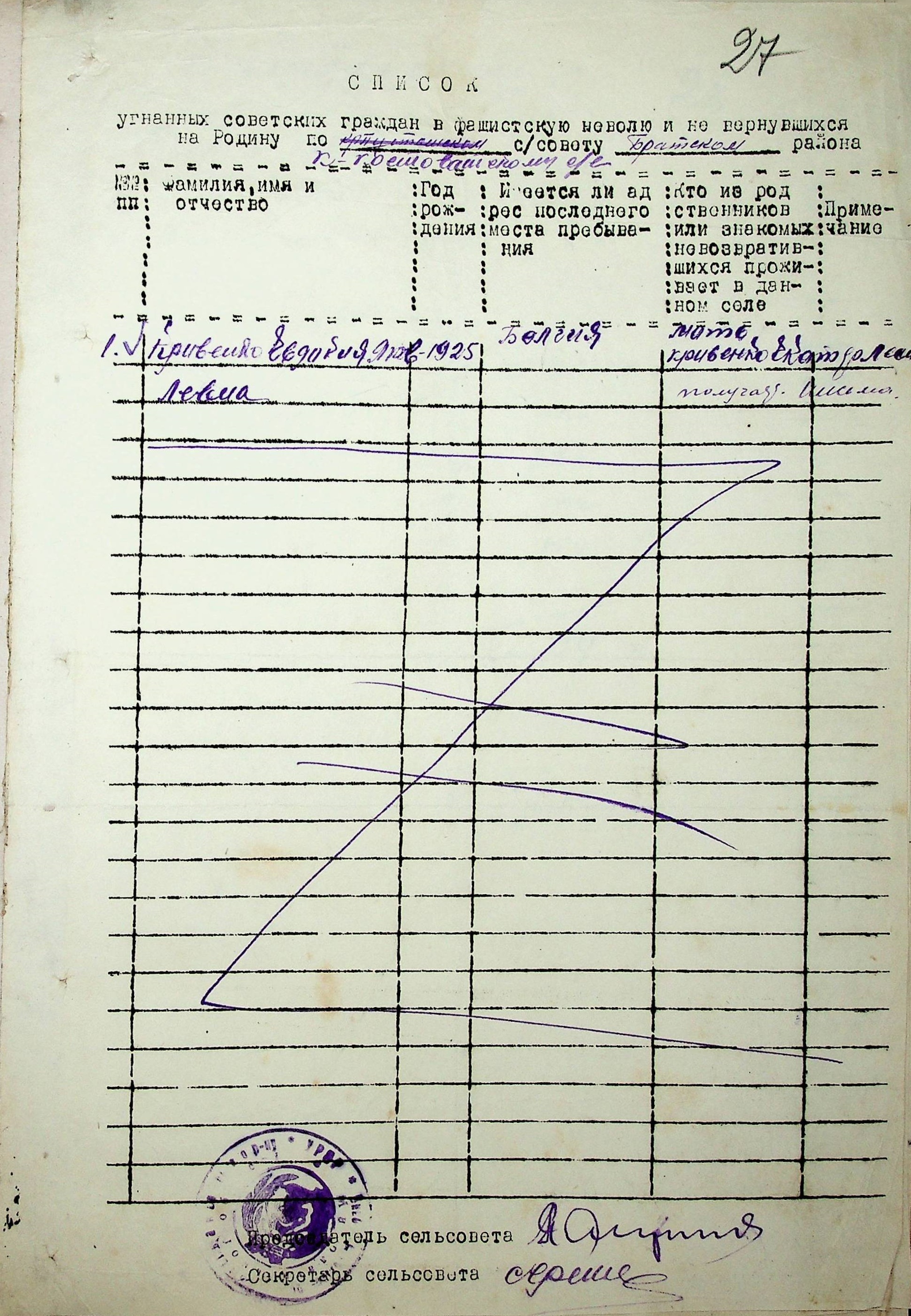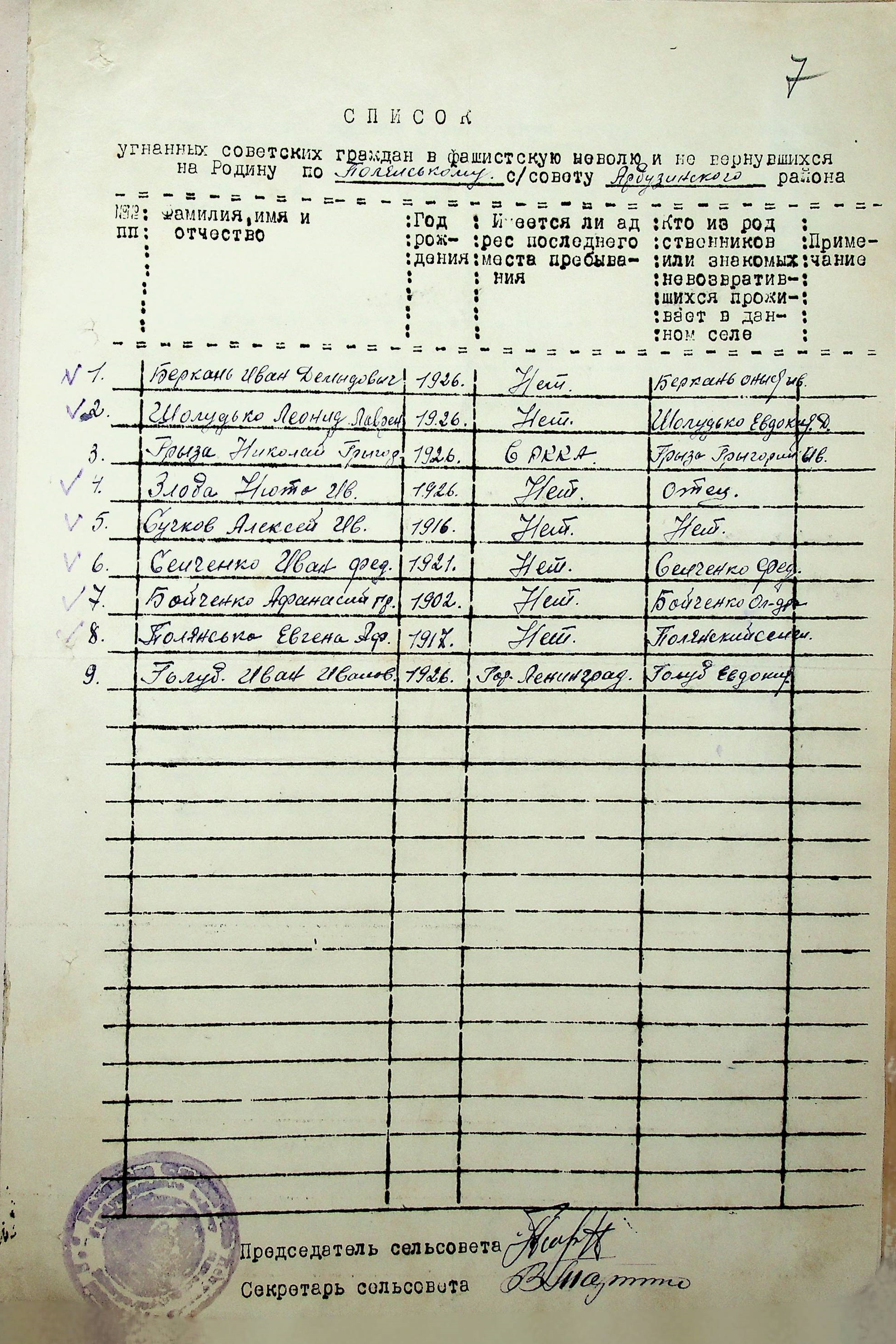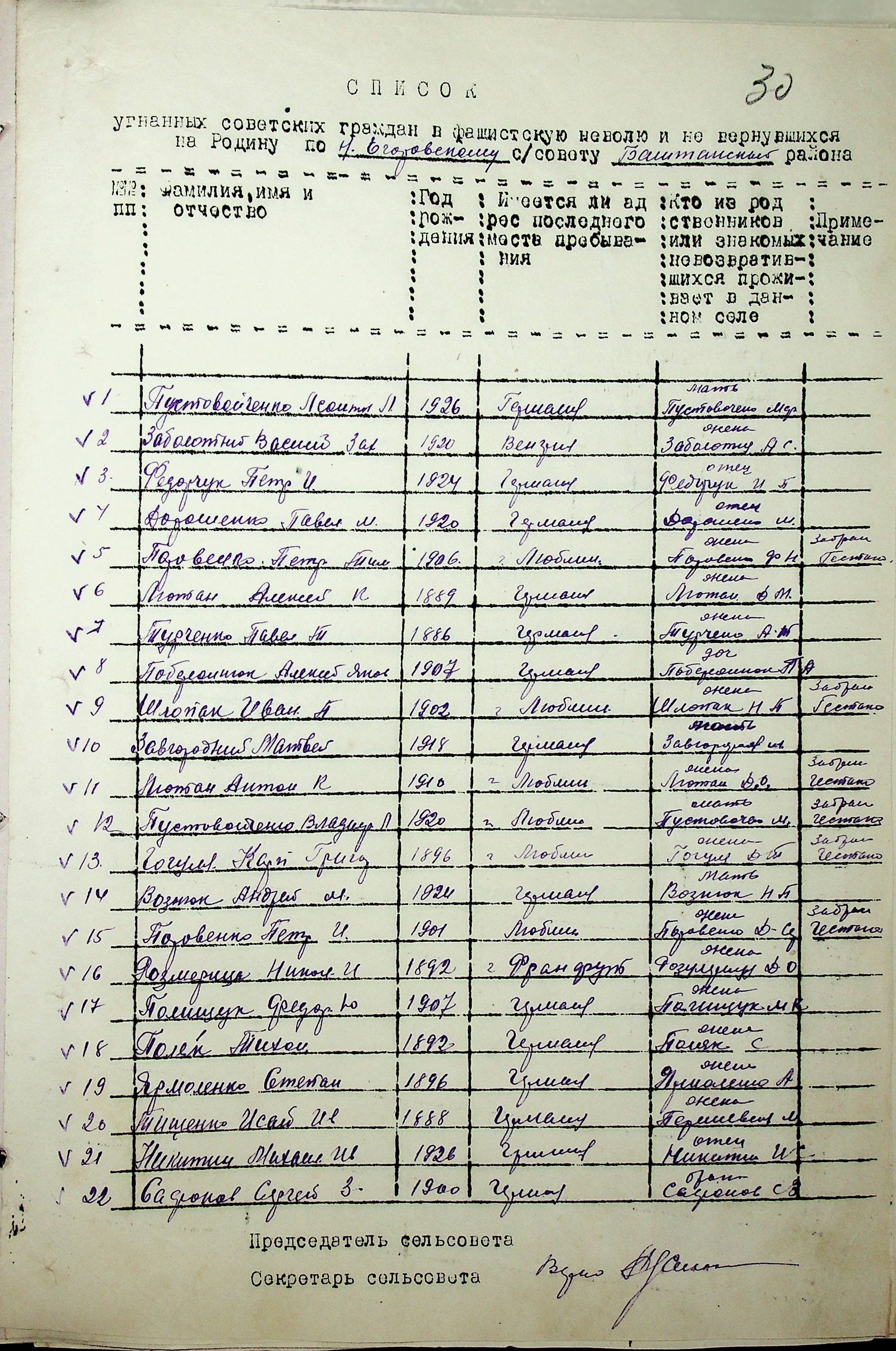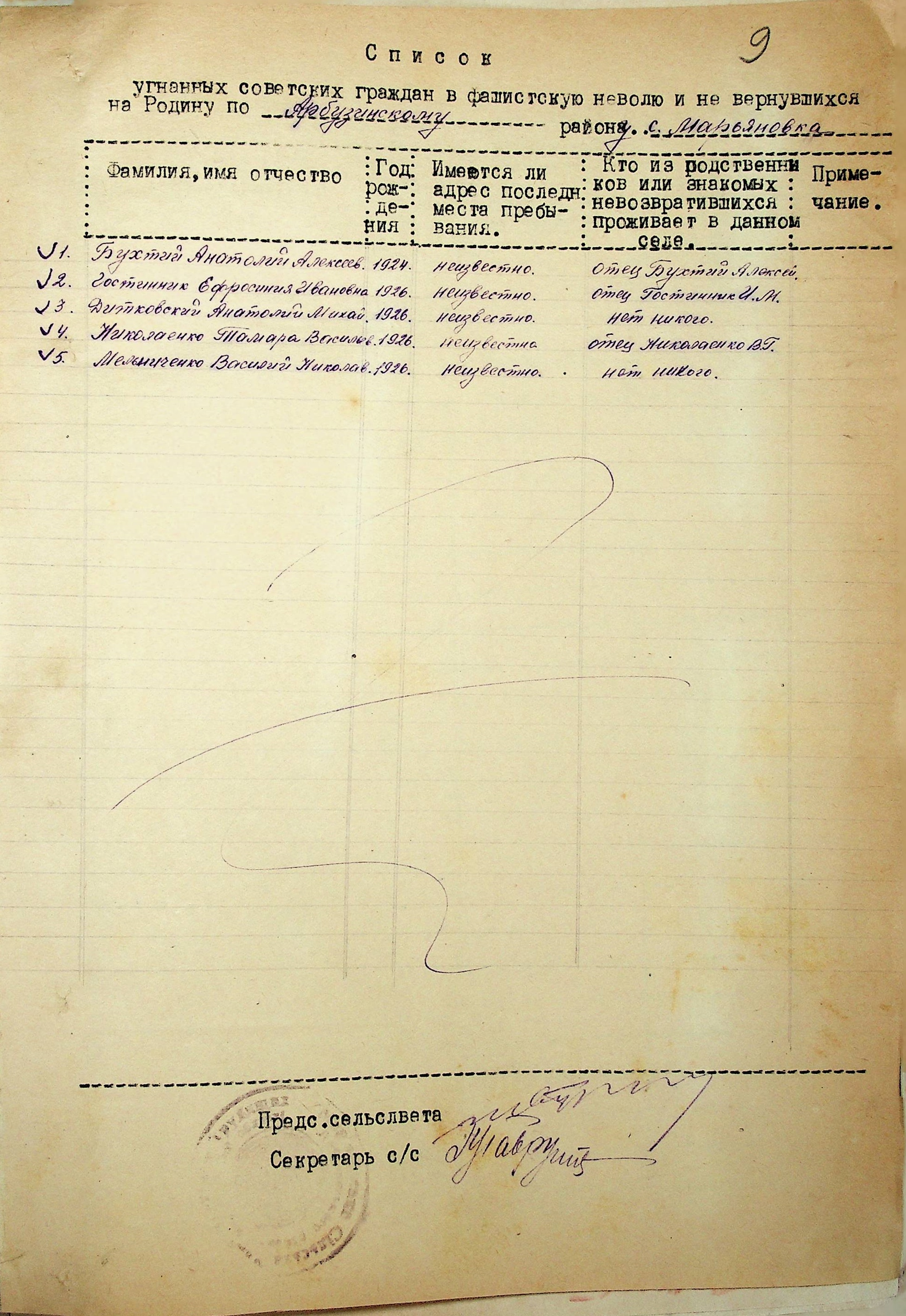 Довідки, надані сільськими Радами про відсутність осіб, які були примусово вивезені до Німеччини і не повернулись на Батьківщину”