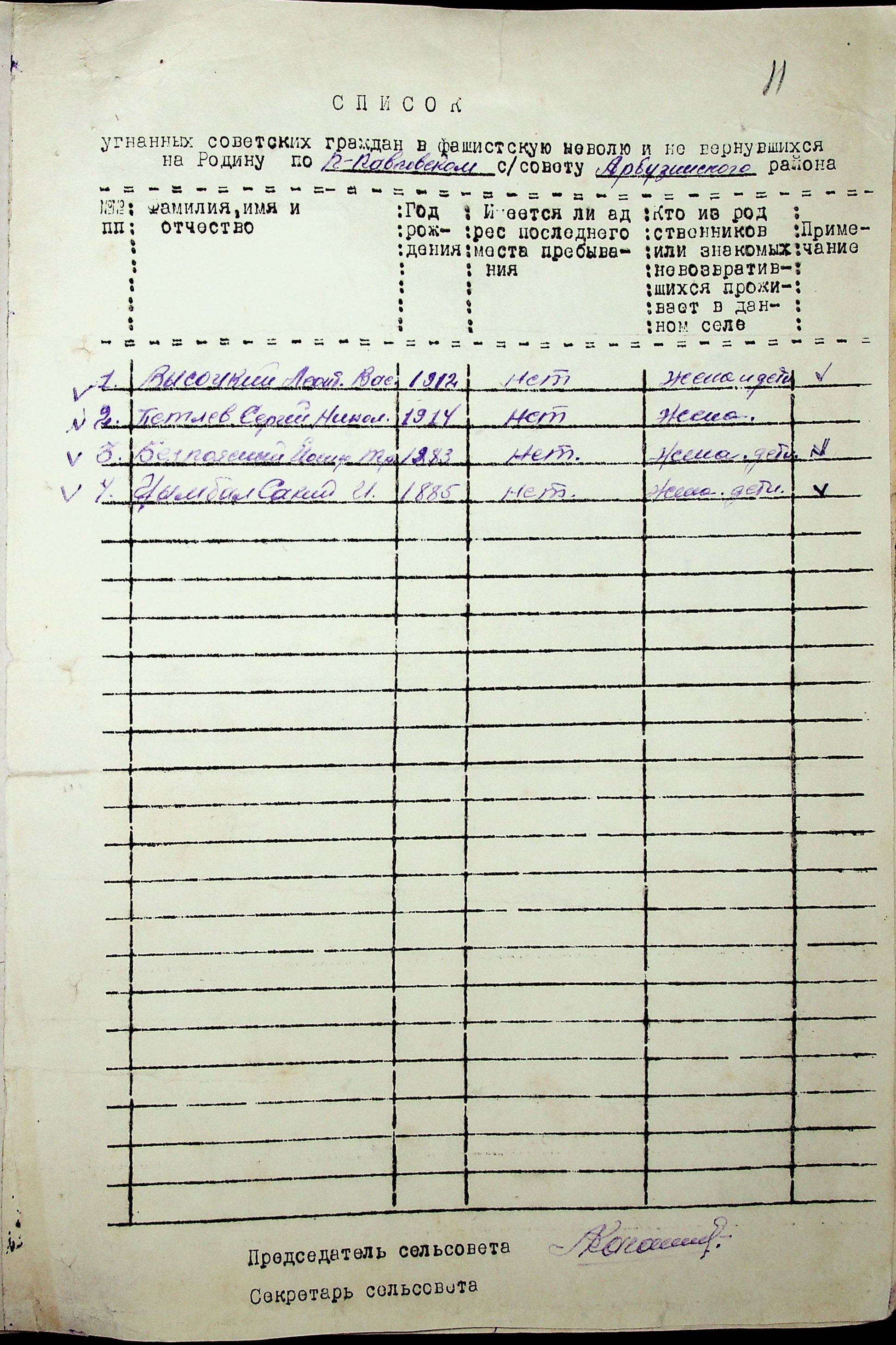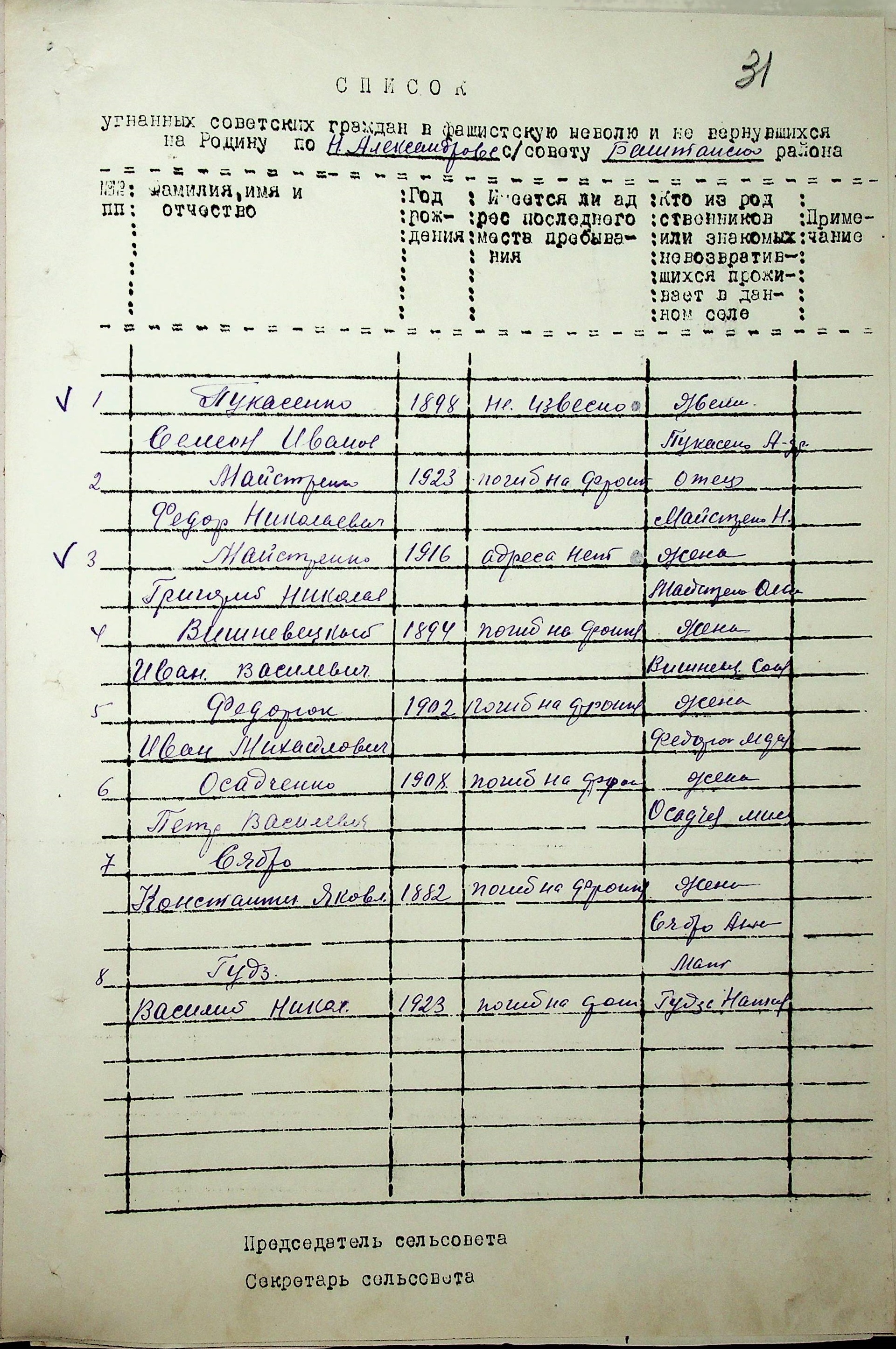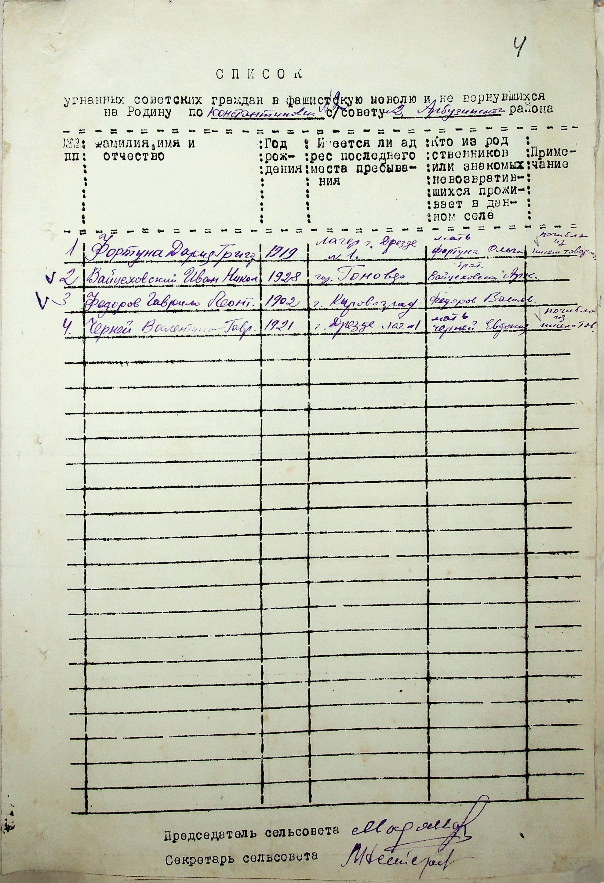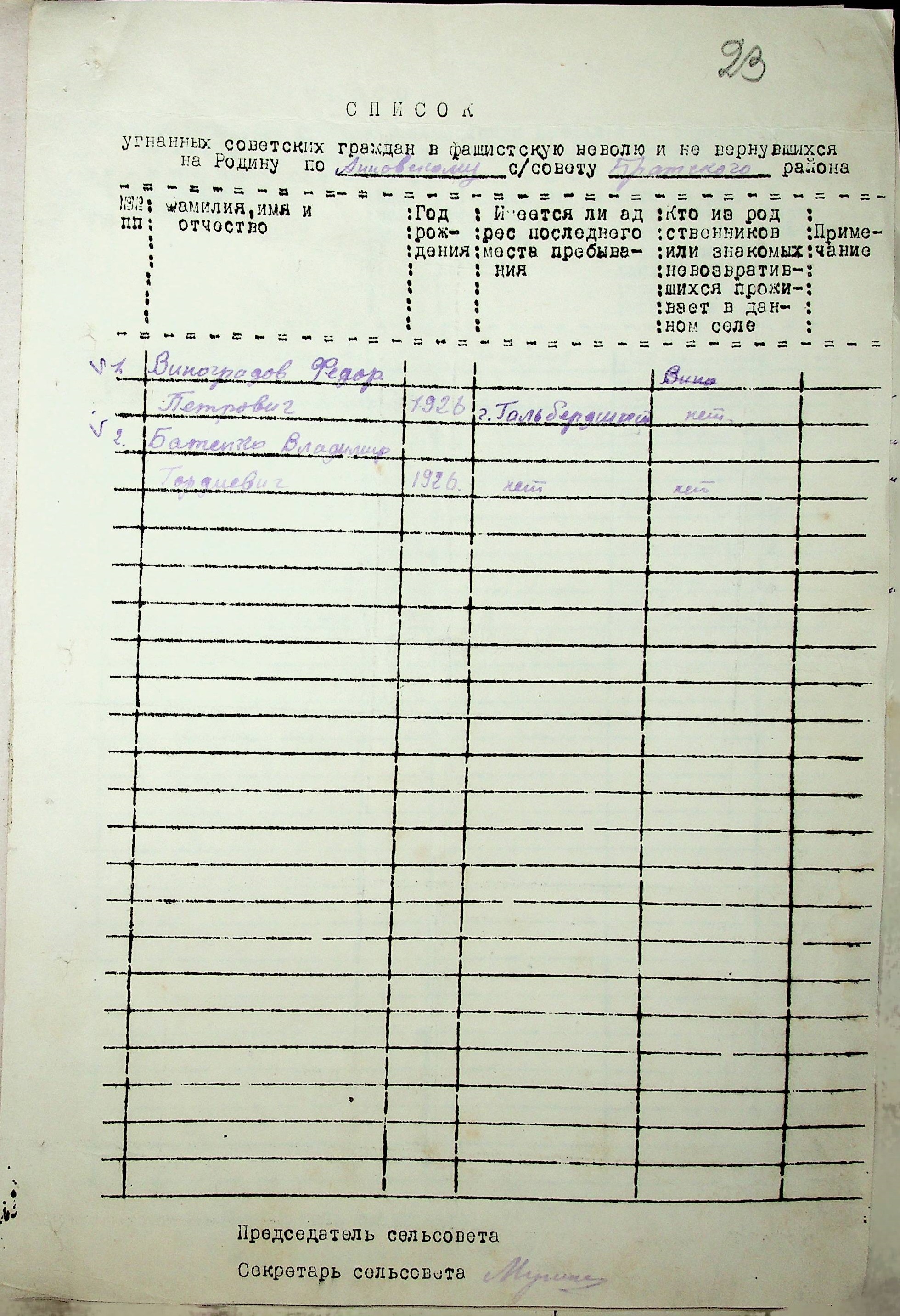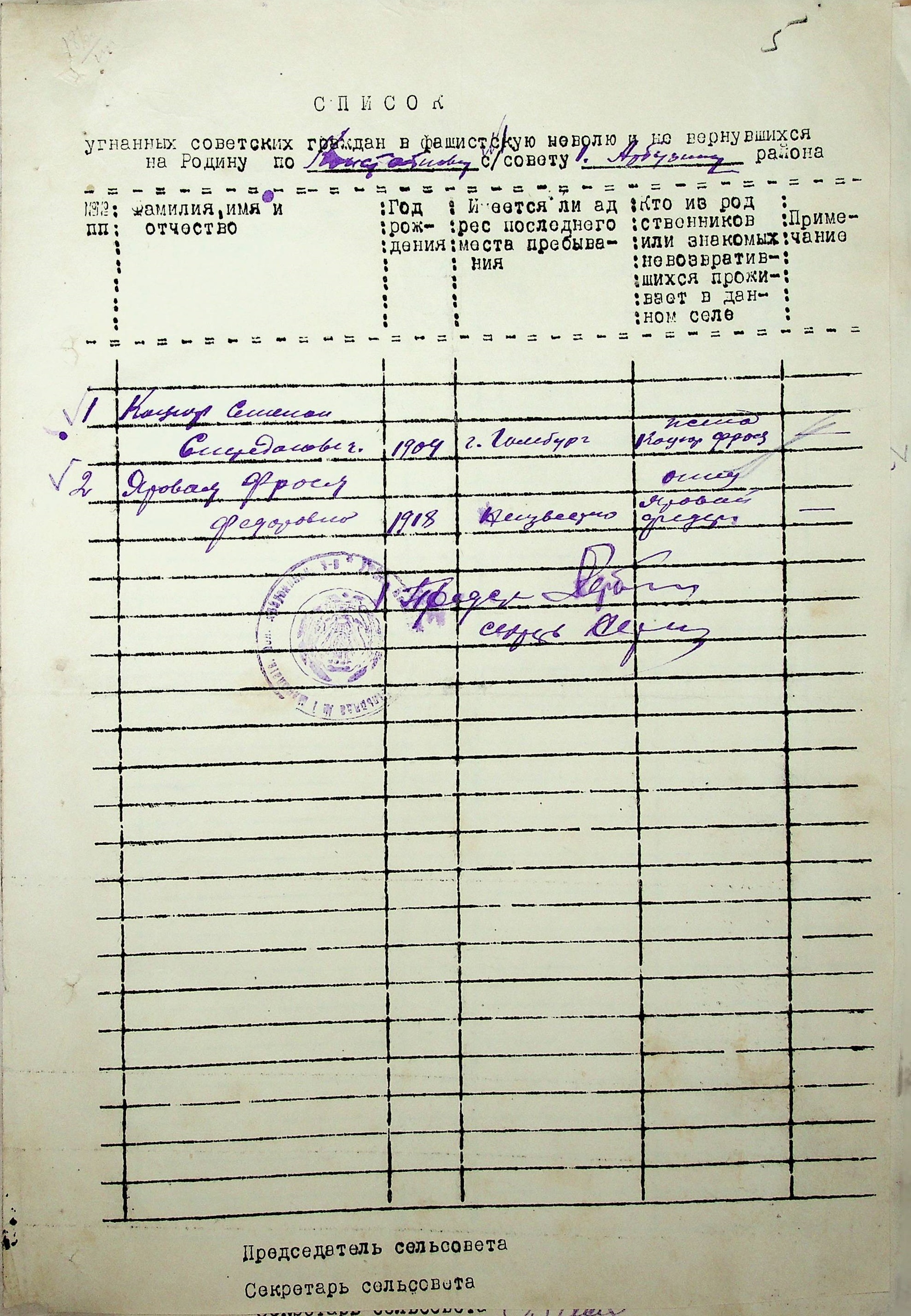 Довідки, надані сільськими Радами про відсутність осіб, які були примусово вивезені до Німеччини і не повернулись на Батьківщину”