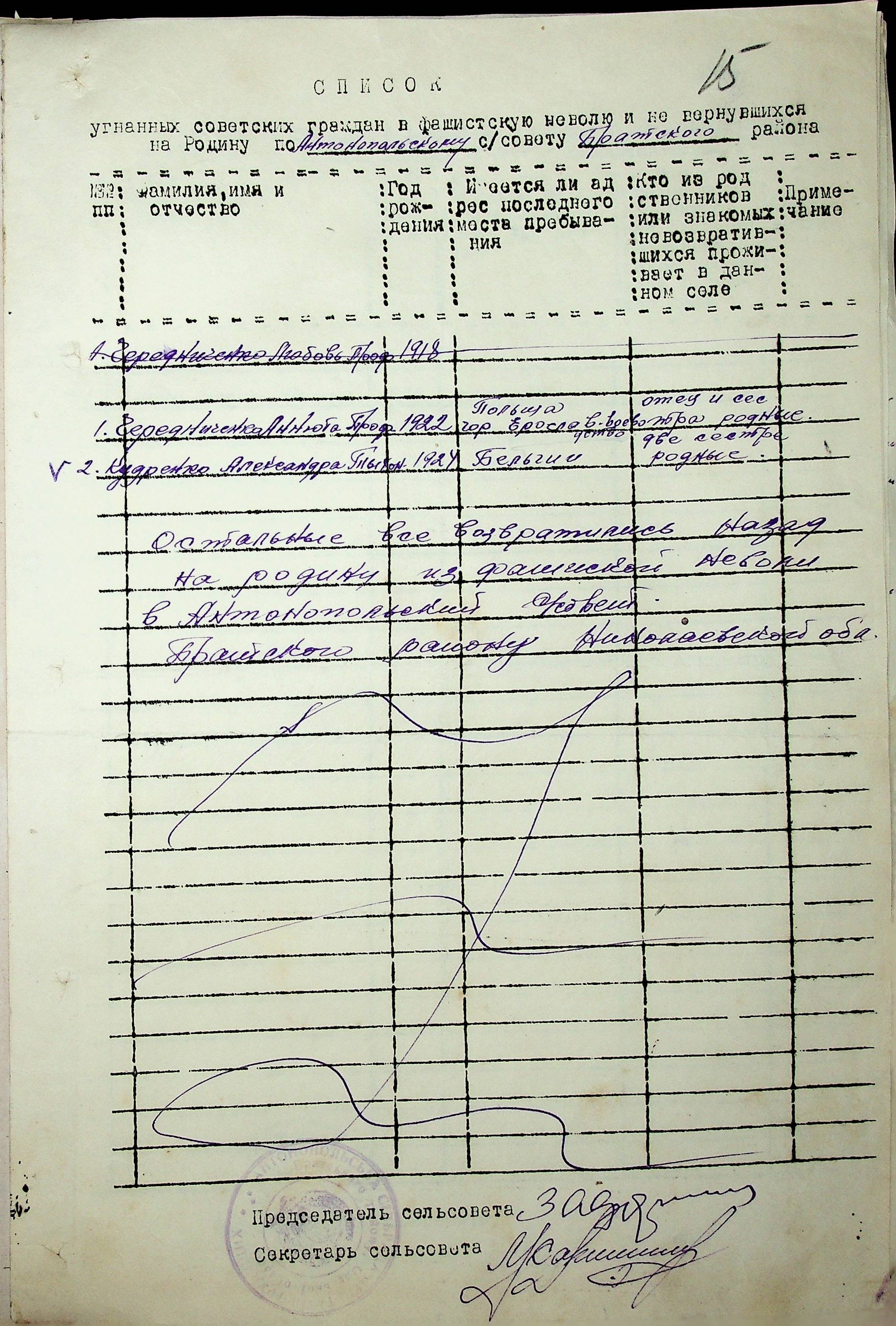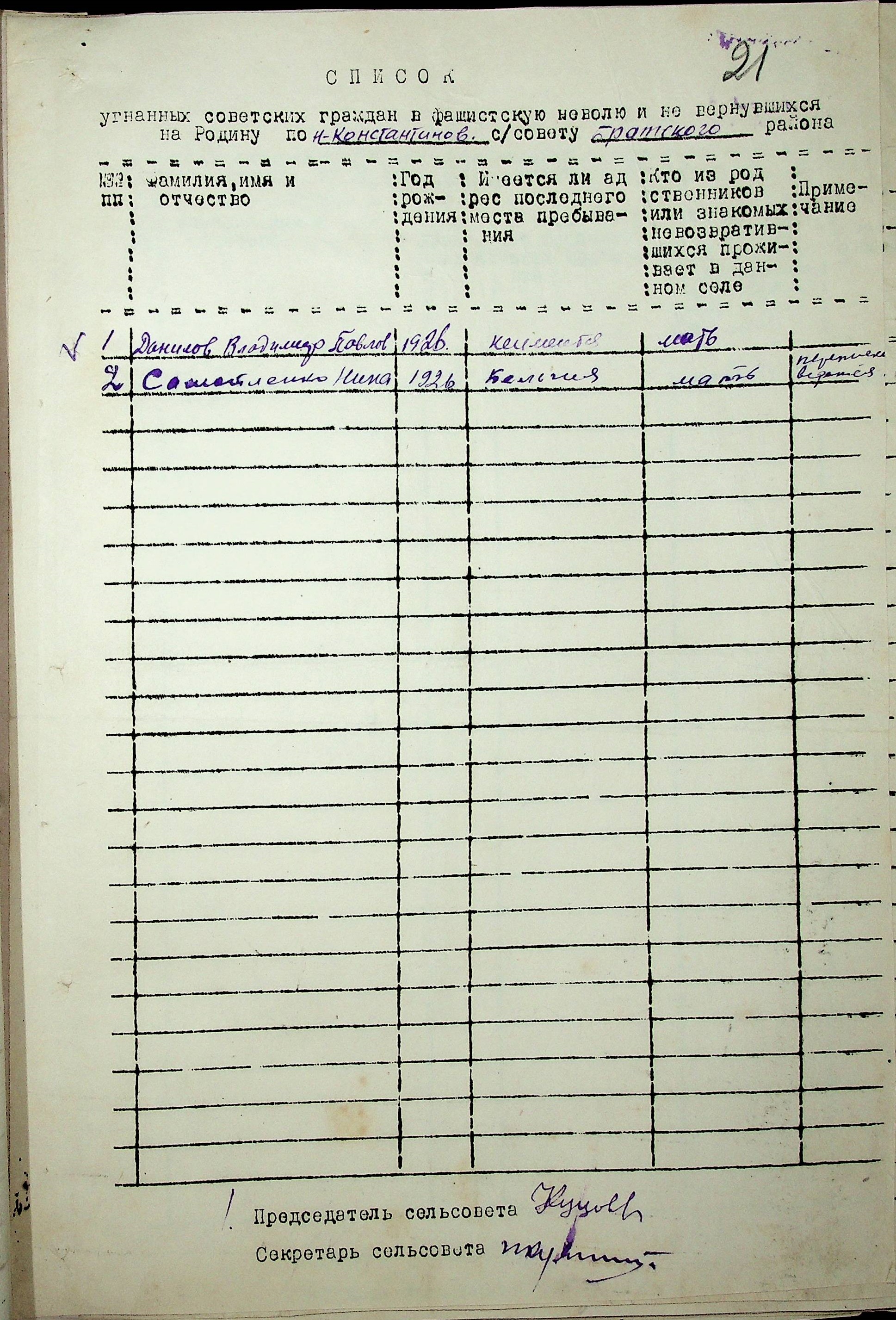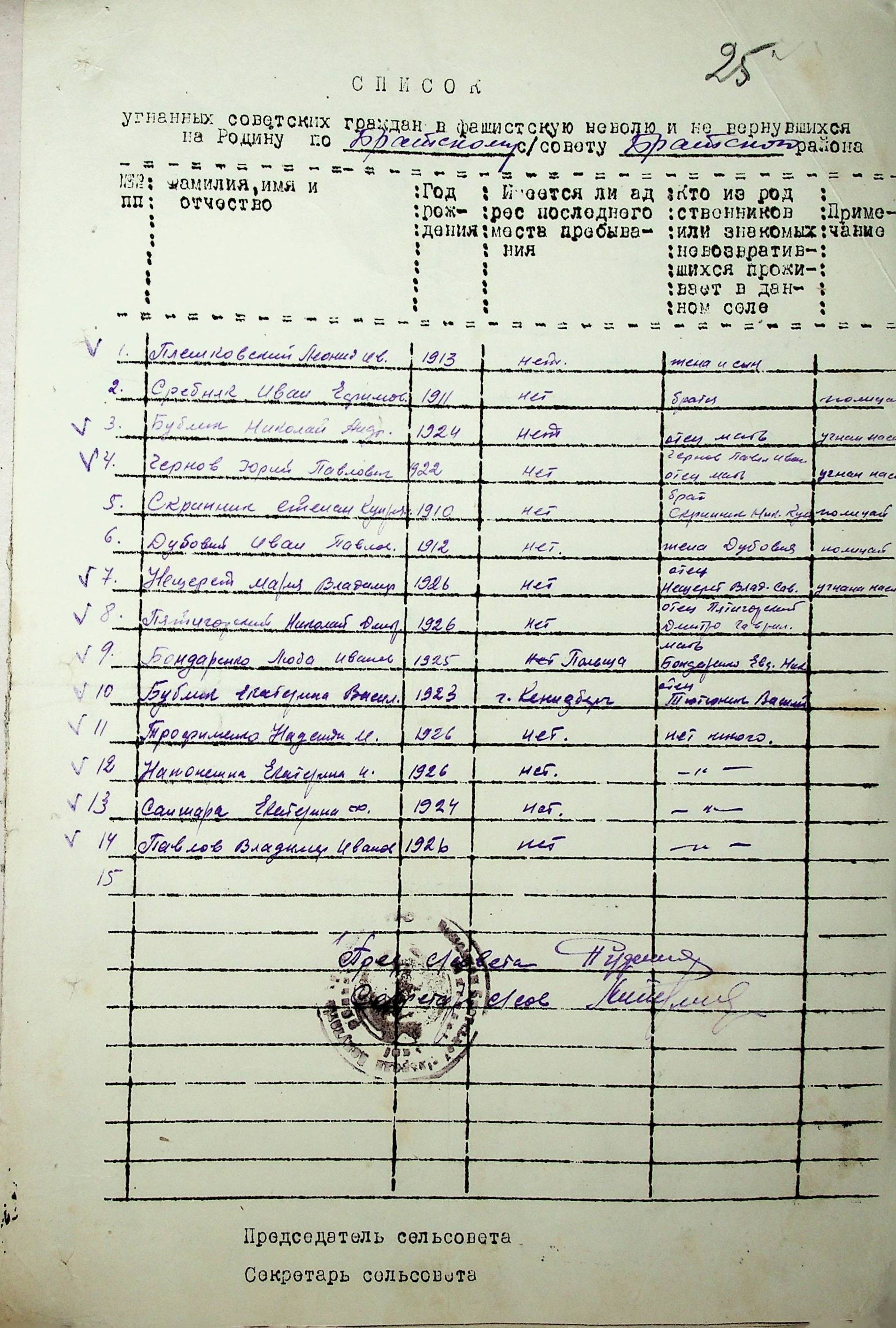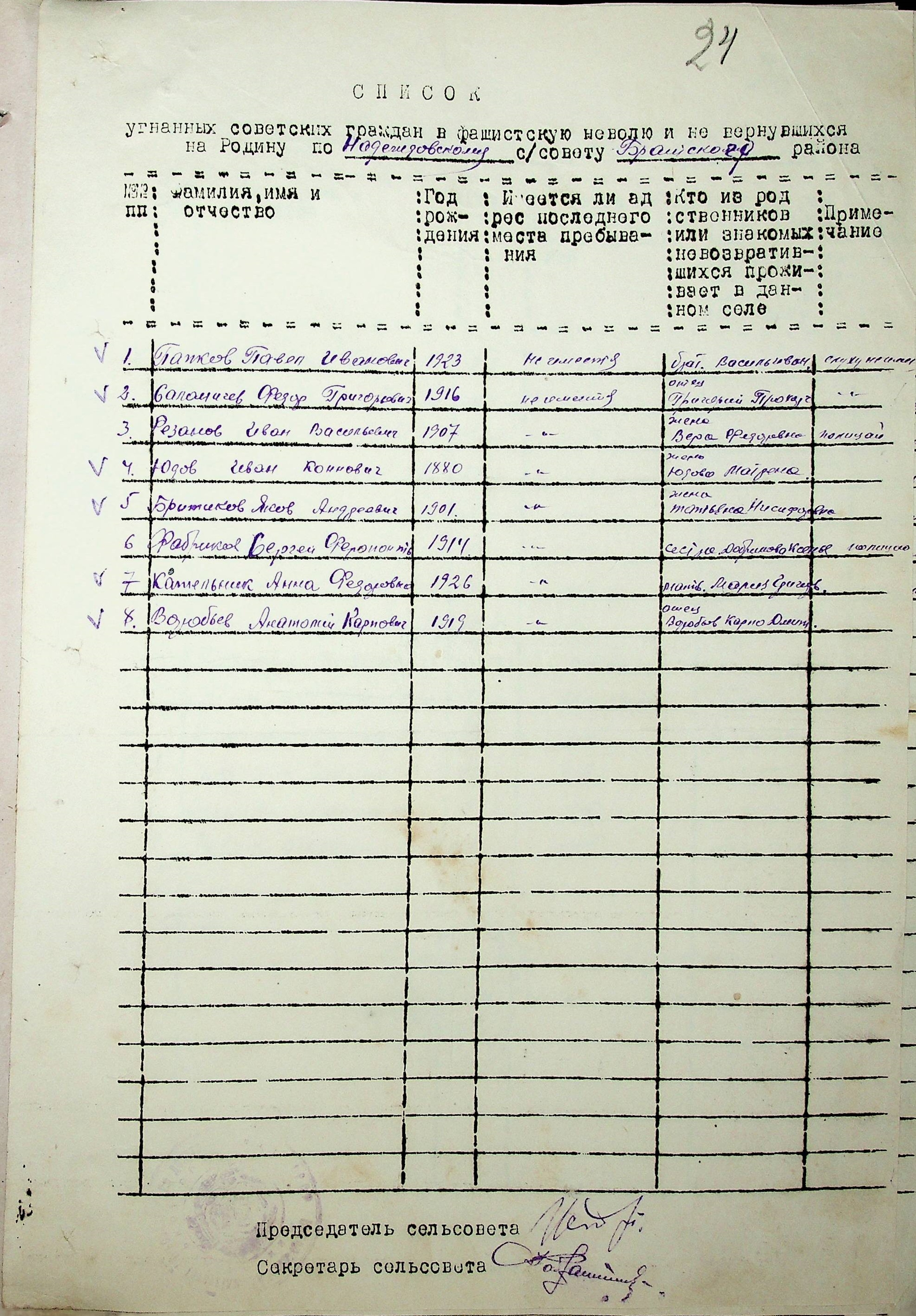 Довідки, надані сільськими Радами про відсутність осіб, які були примусово вивезені до Німеччини і не повернулись на Батьківщину”