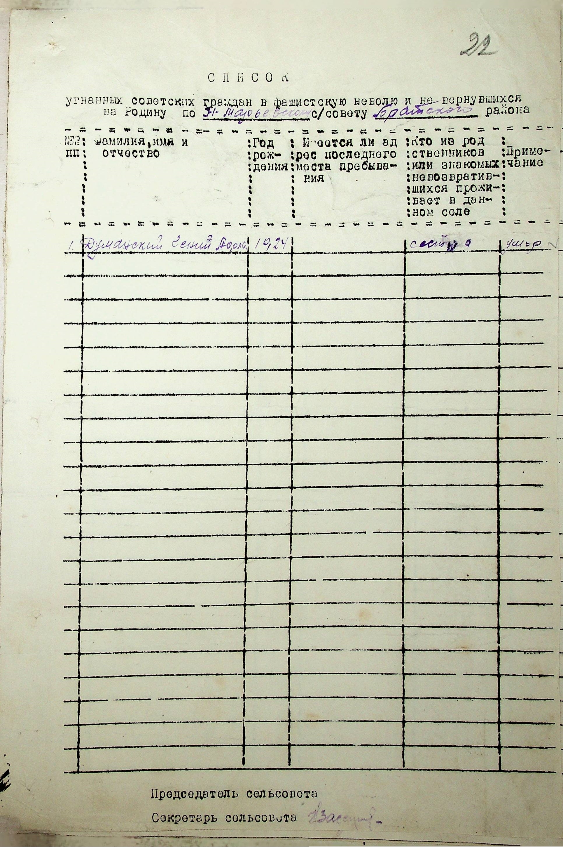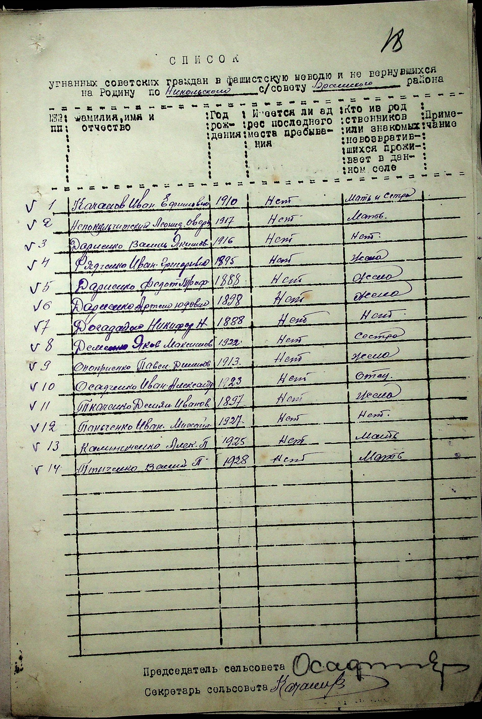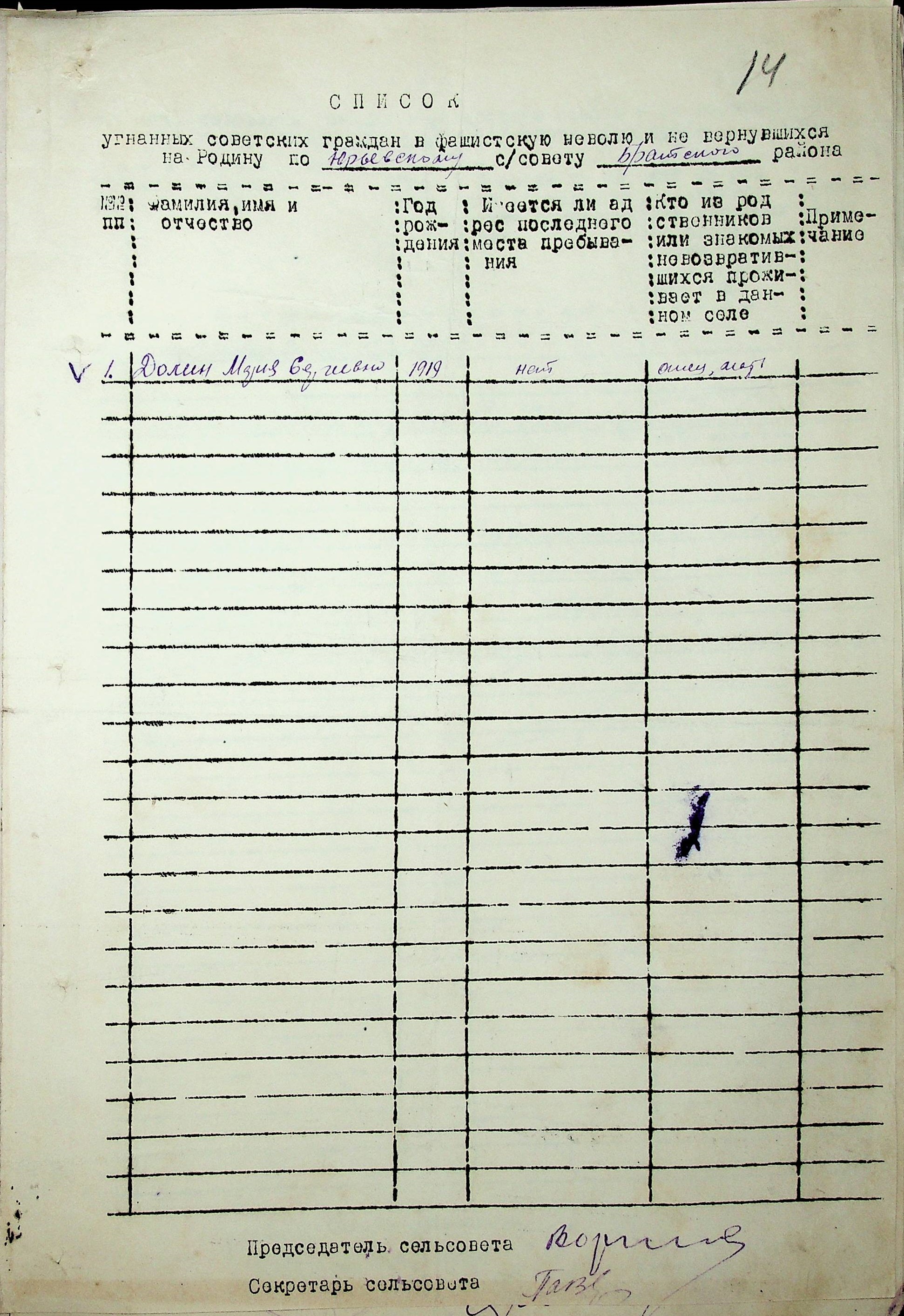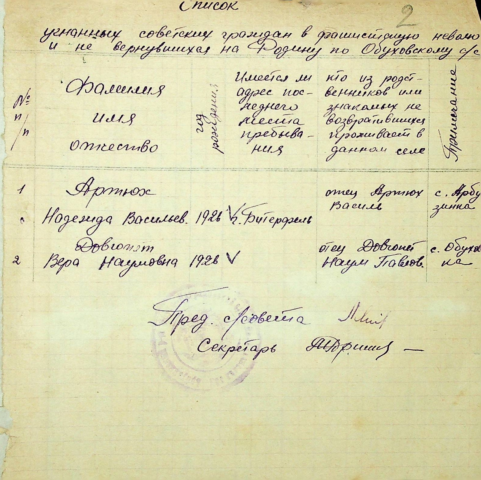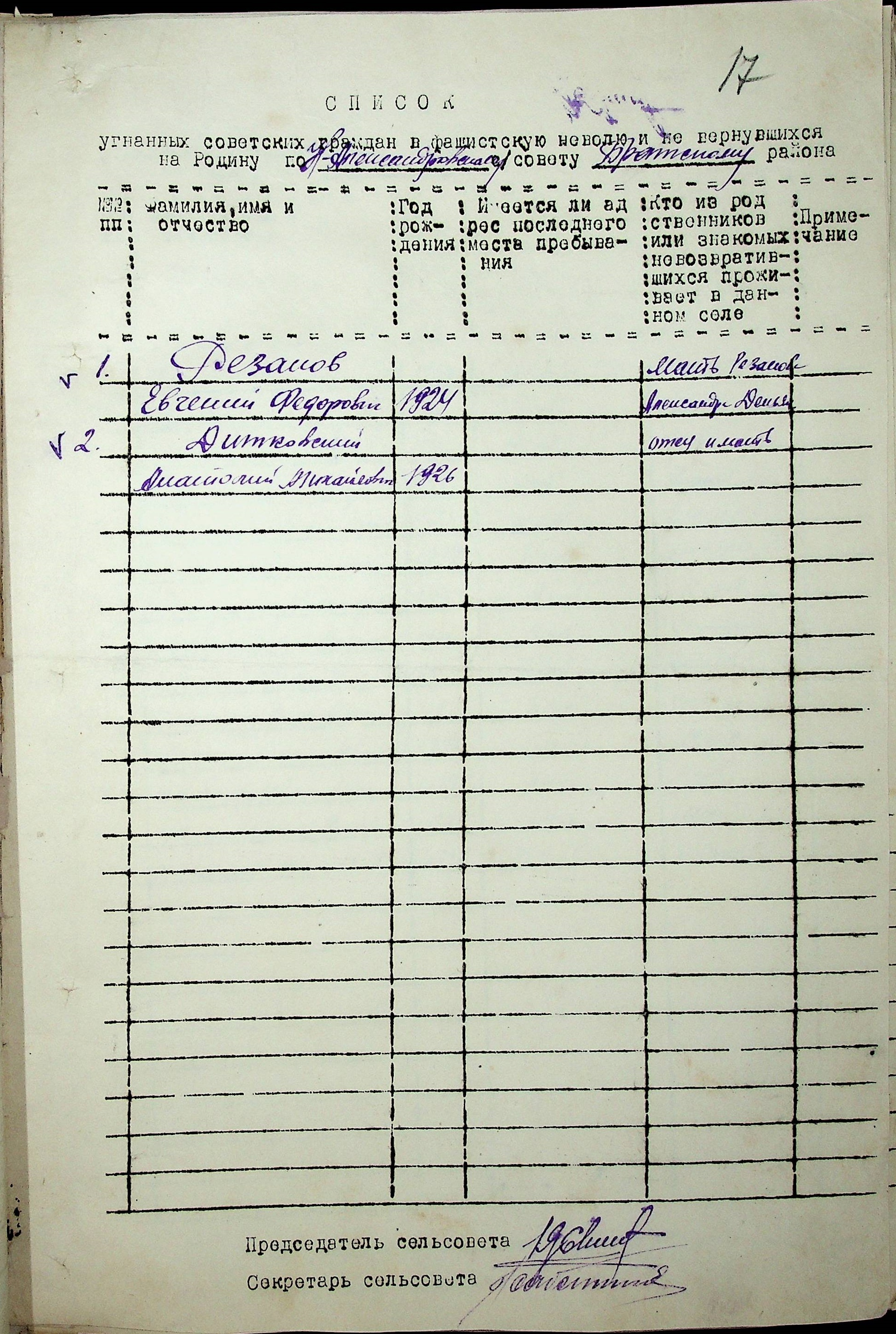 Довідки, надані сільськими Радами про відсутність осіб, які були примусово вивезені до Німеччини і не повернулись на Батьківщину”