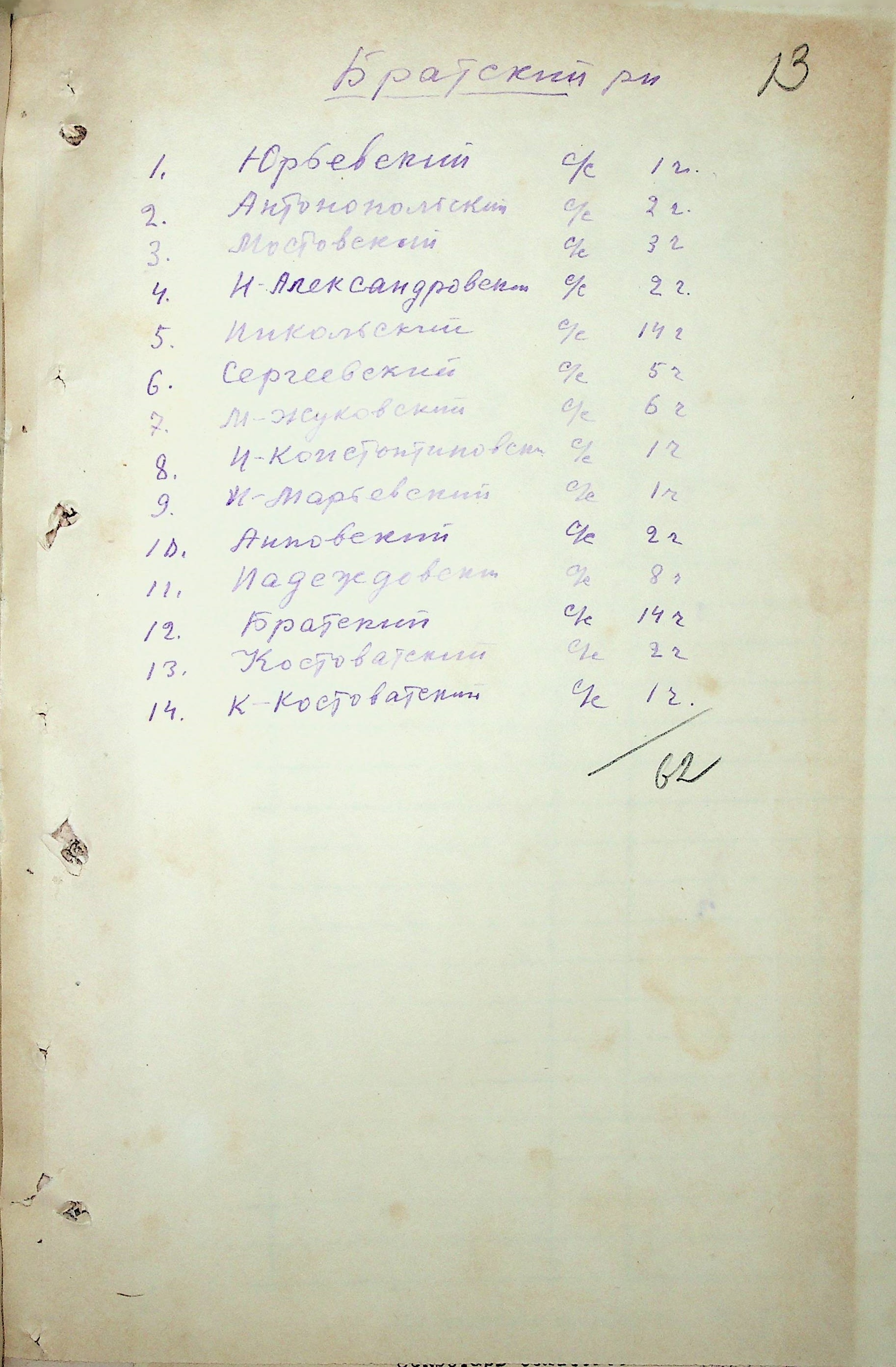 • • • • Справа № 59 “Списки радянських громадян, які не повернулись на Батьківщину з вигнання по районах Миколаївської області.