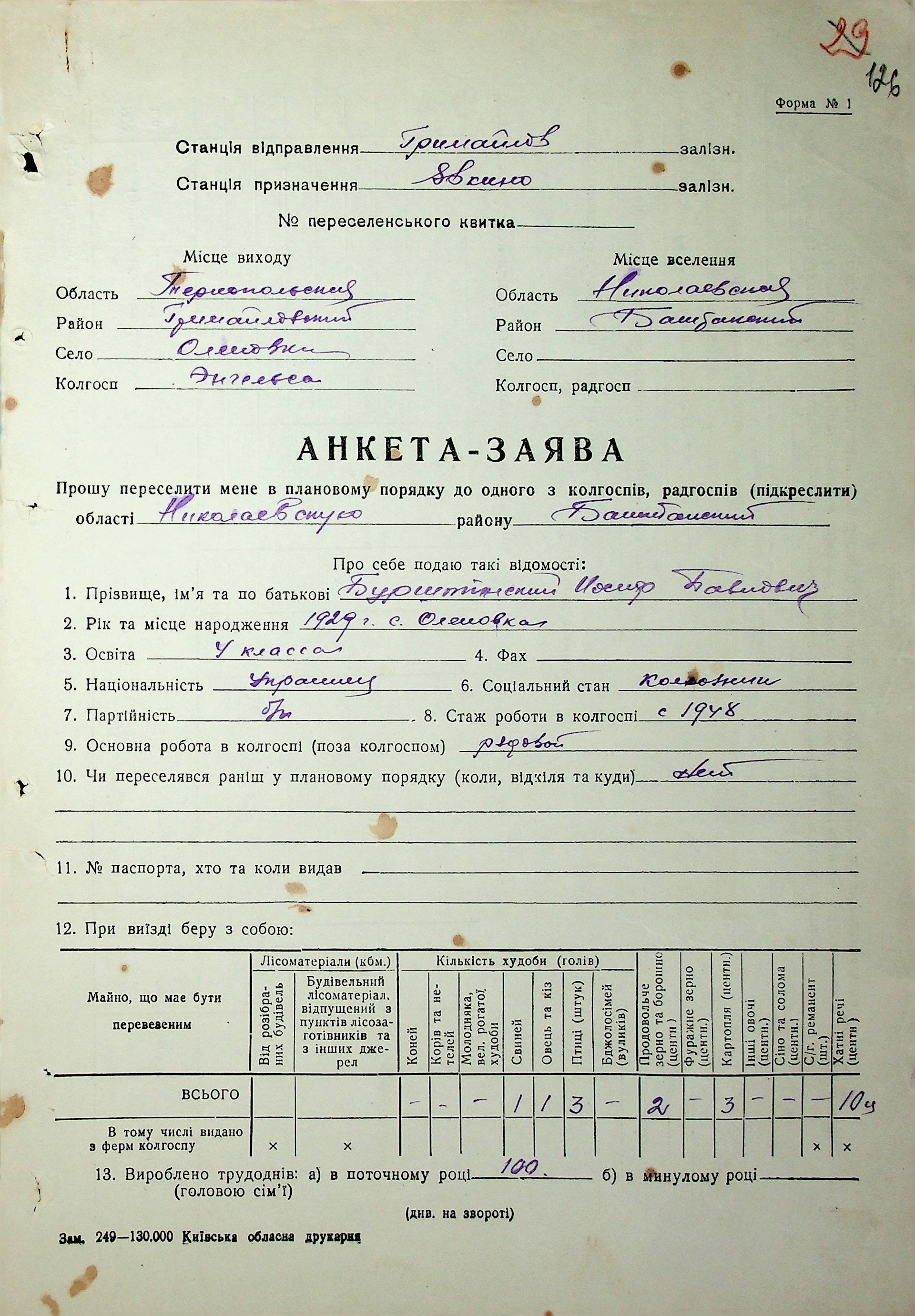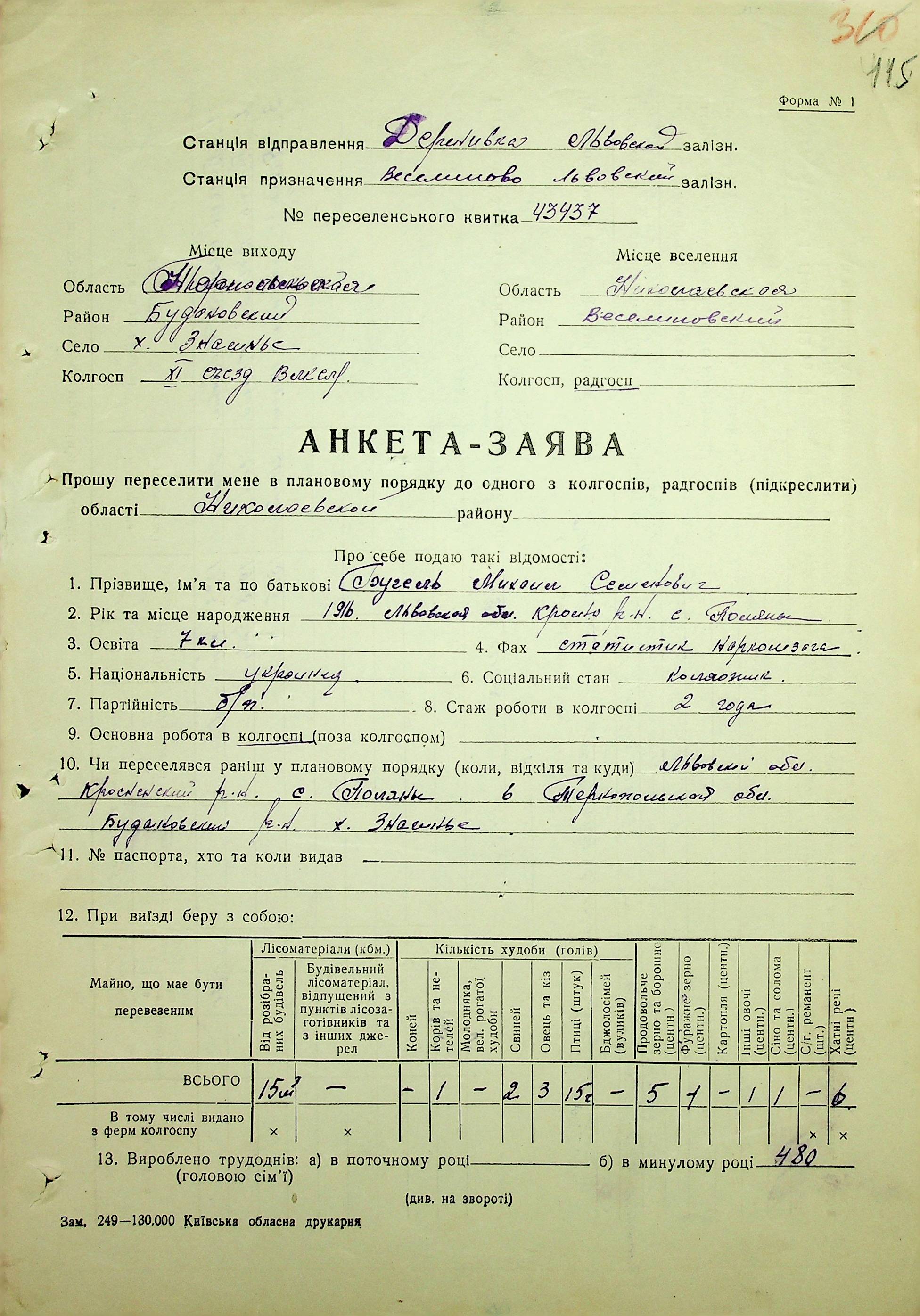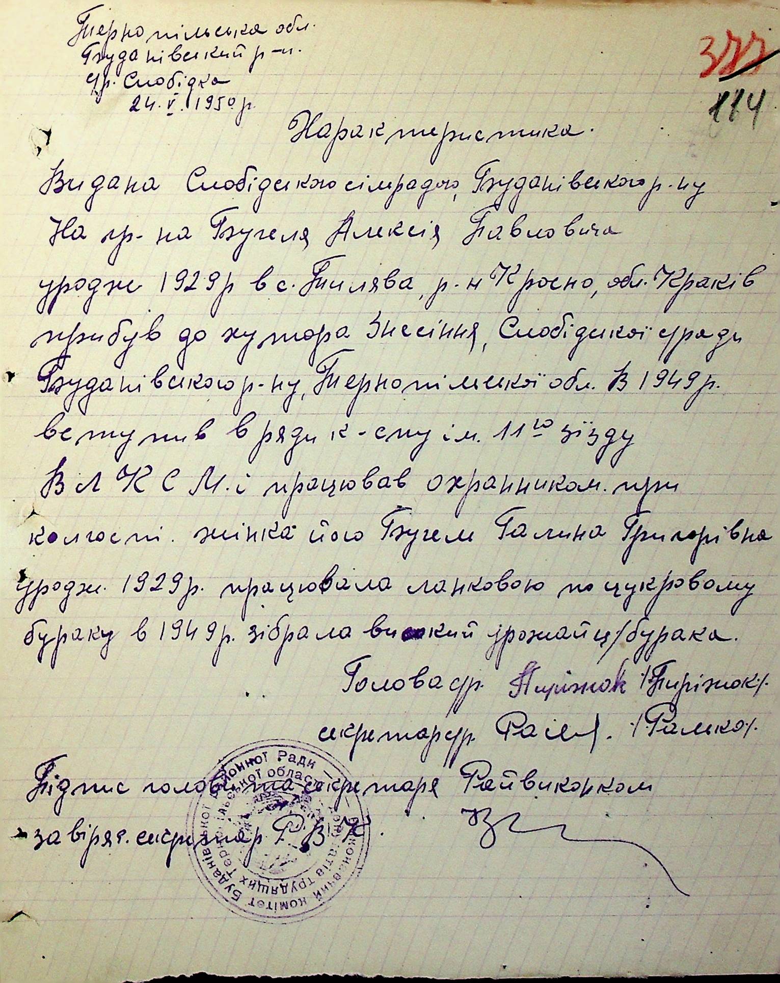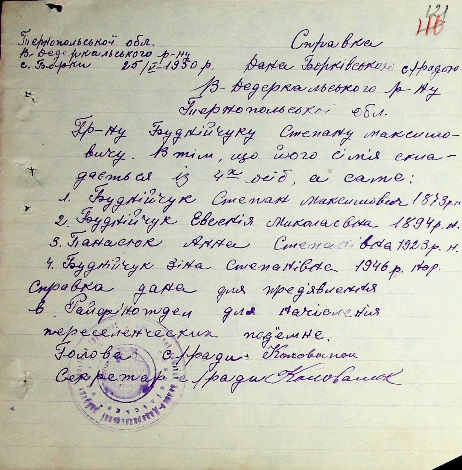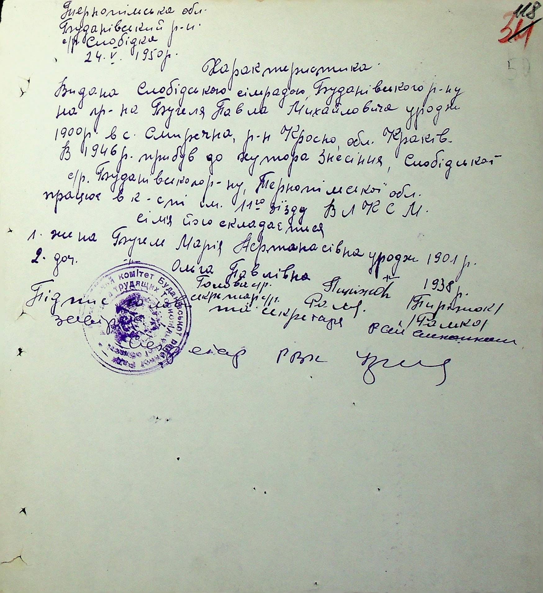 Довідки-характеристики, надані сільськими та селищними Радами депутатів трудящих на від’їжджаючих голів сімей та склад їх родин”