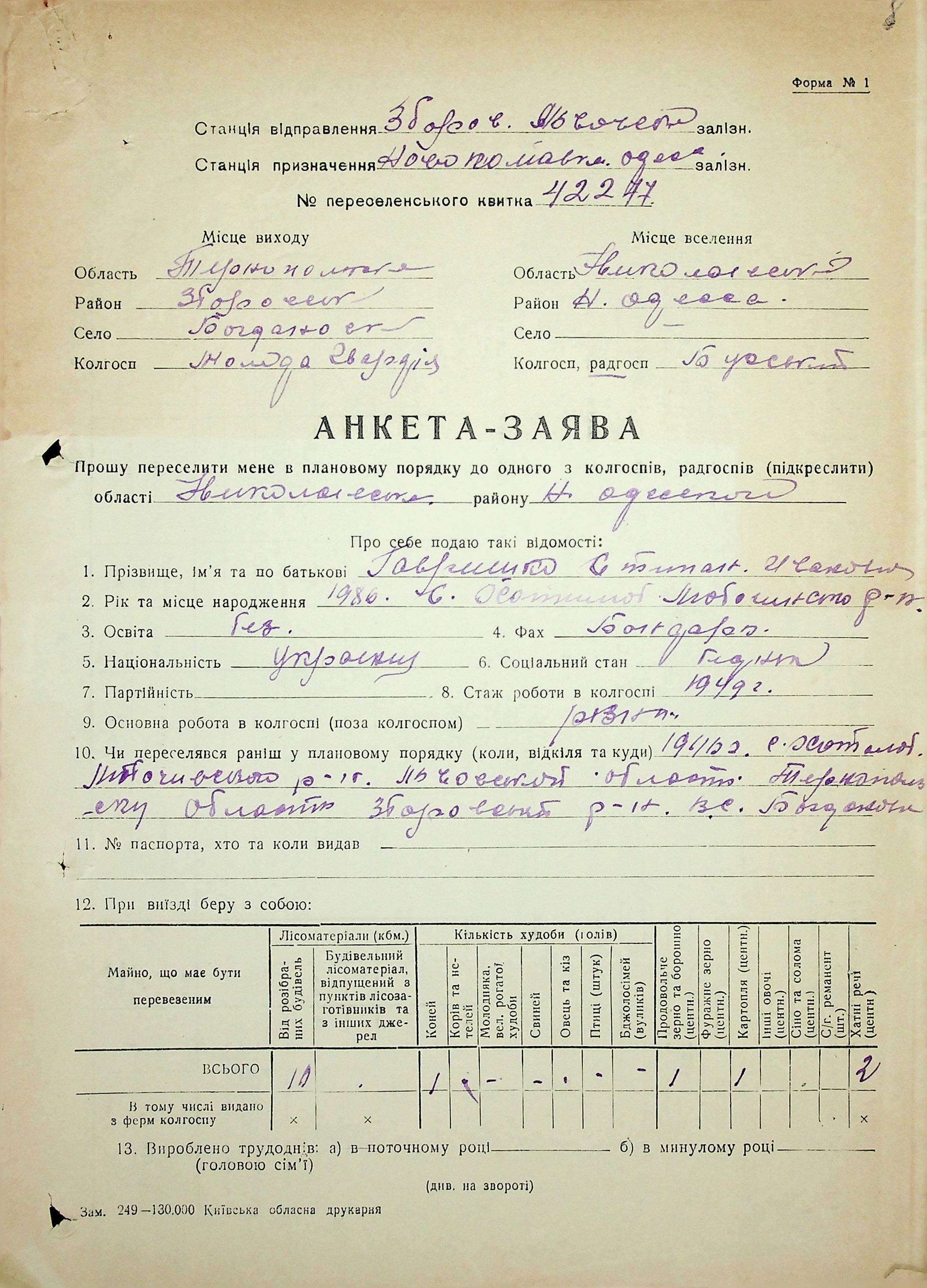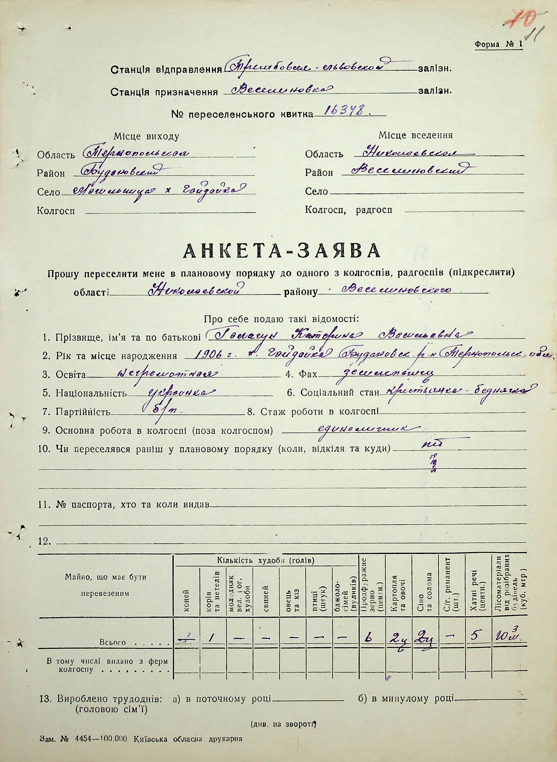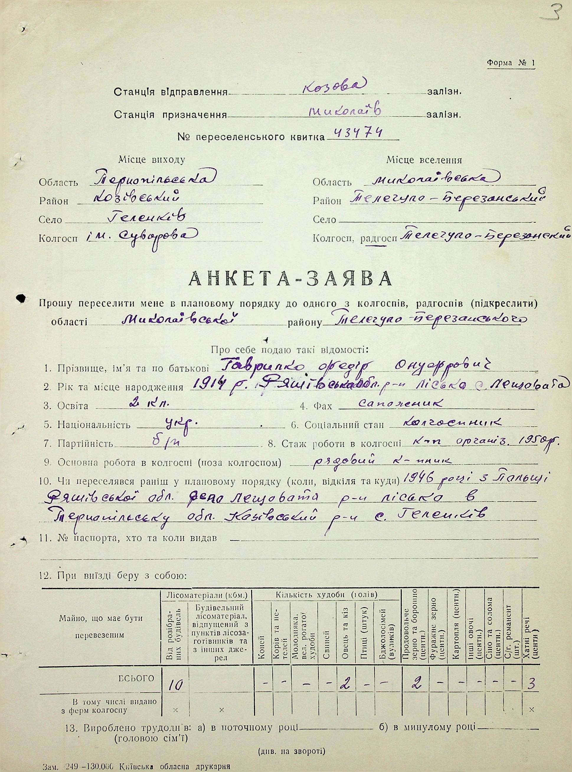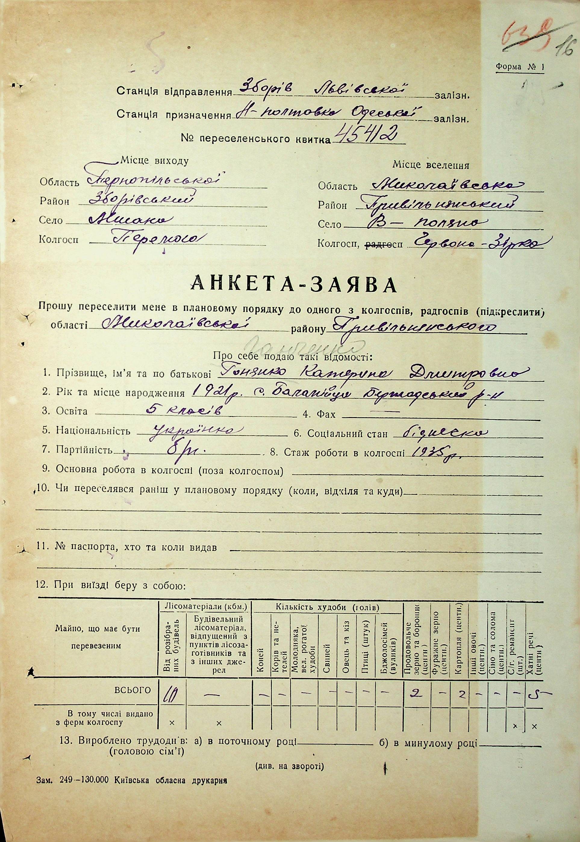 • • • • Справа № 63 “Анкети-заяви про планове переселення сімей з Тернопільської до Миколаївської області, прізвища з літери «Г» по літеру «И».