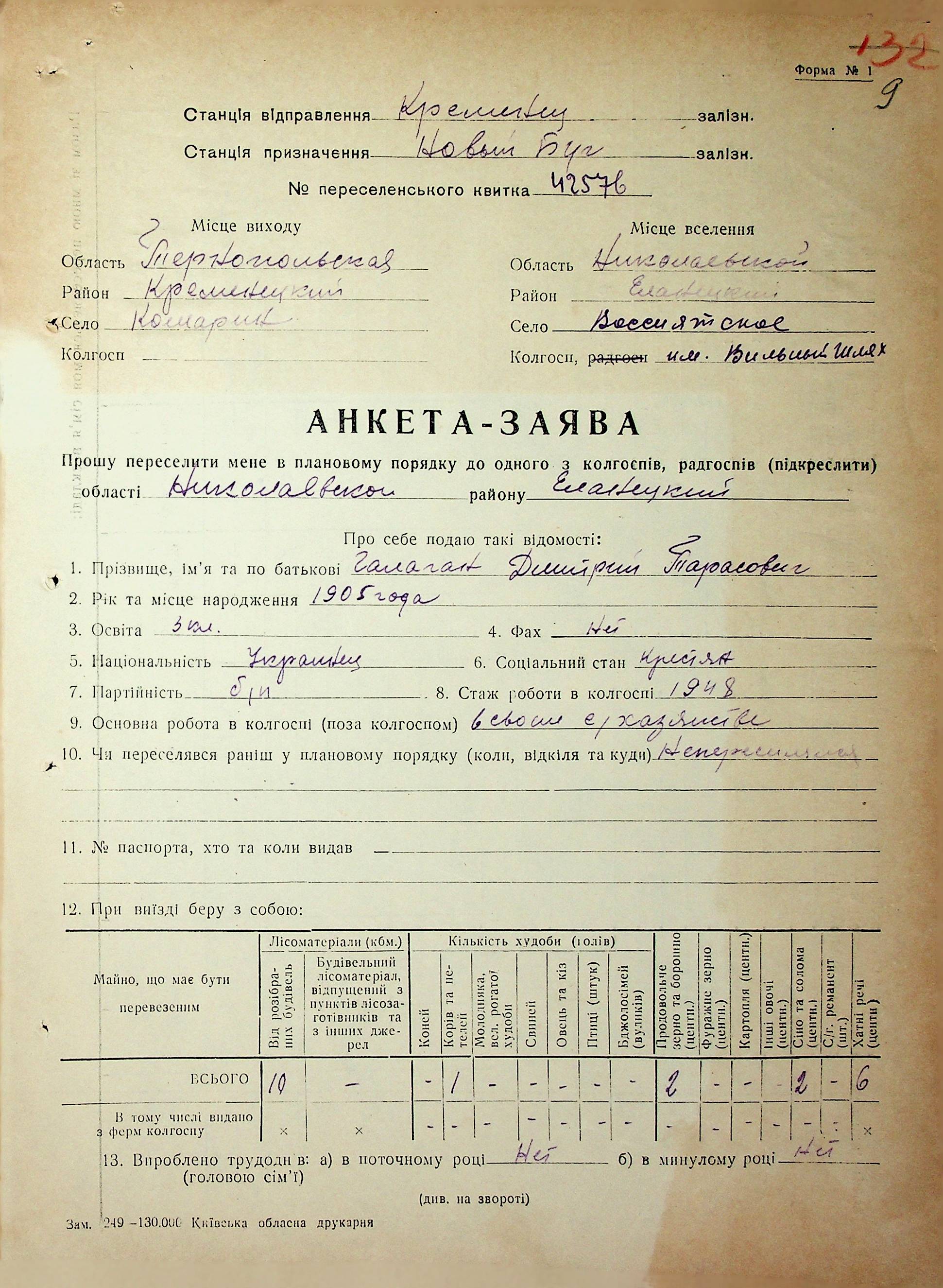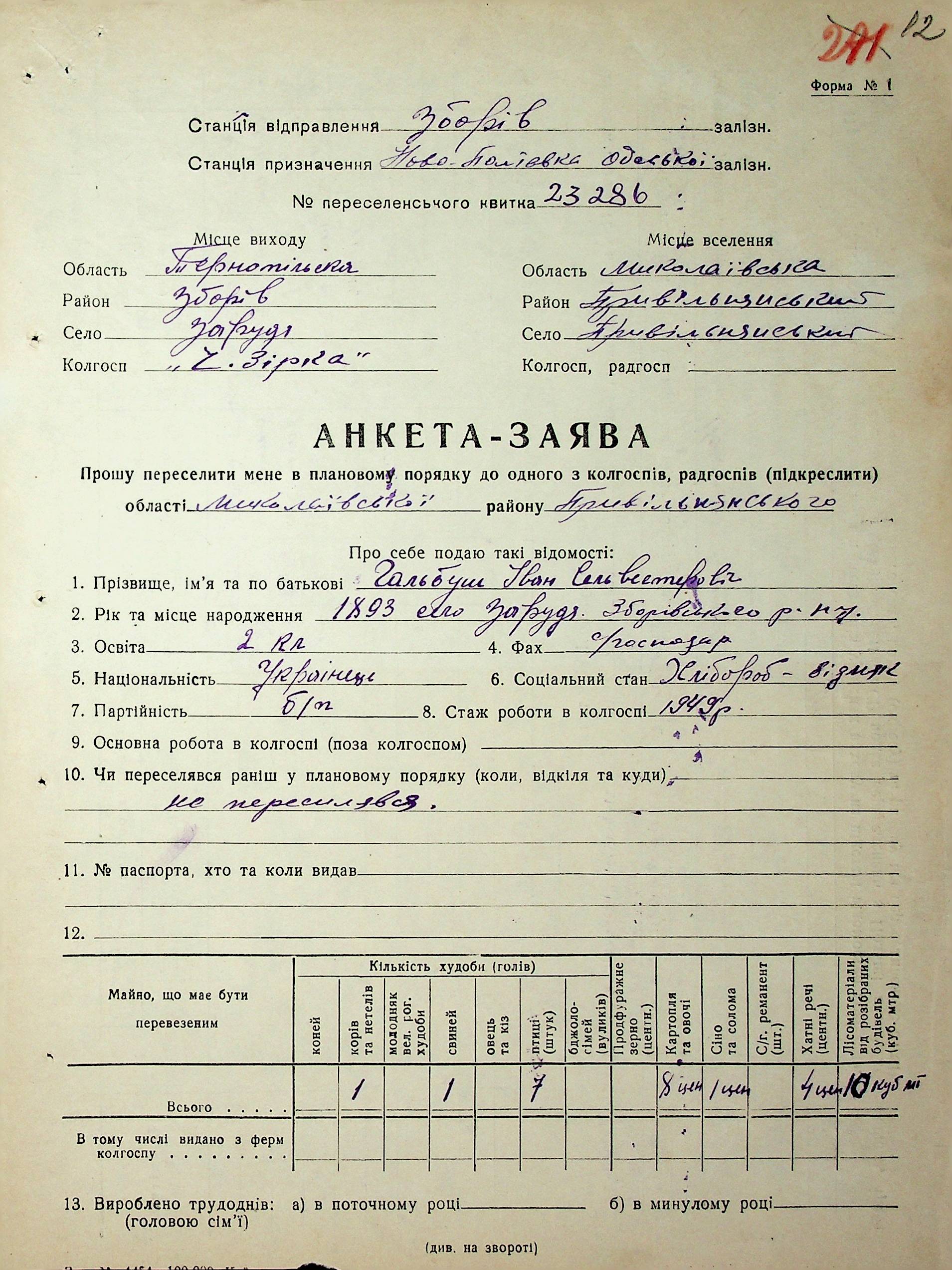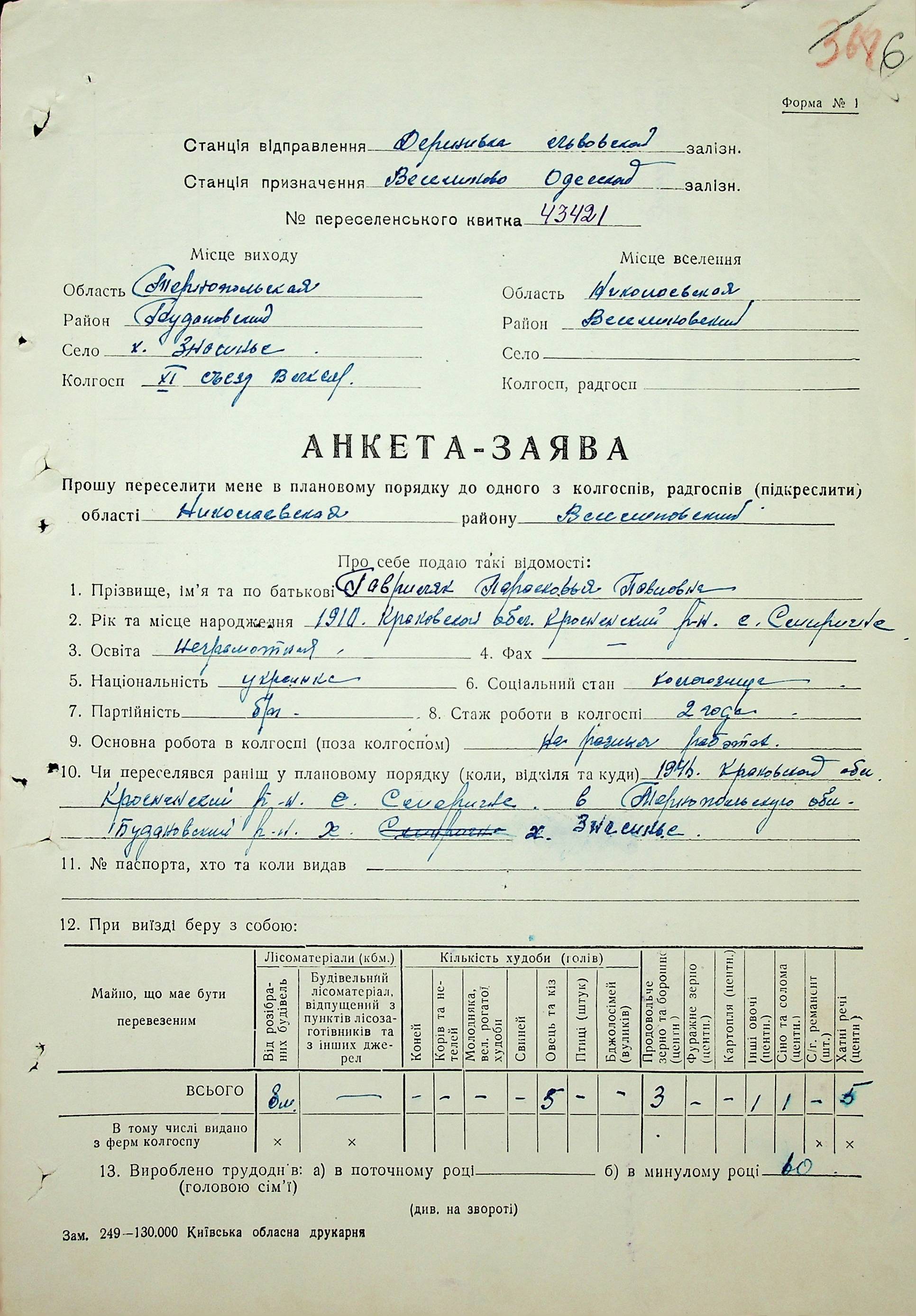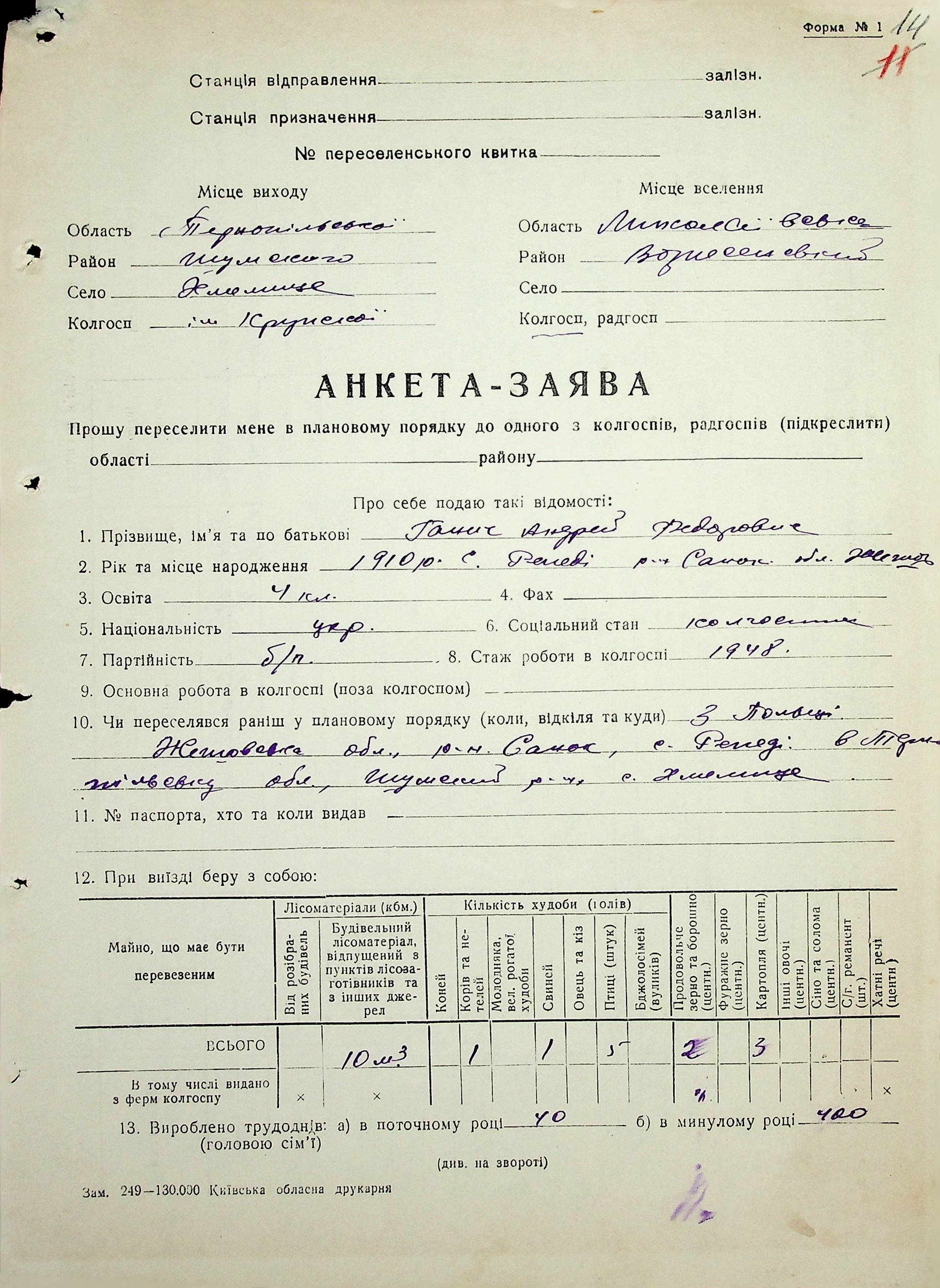 • • • • Справа № 63 “Анкети-заяви про планове переселення сімей з Тернопільської до Миколаївської області, прізвища з літери «Г» по літеру «И».