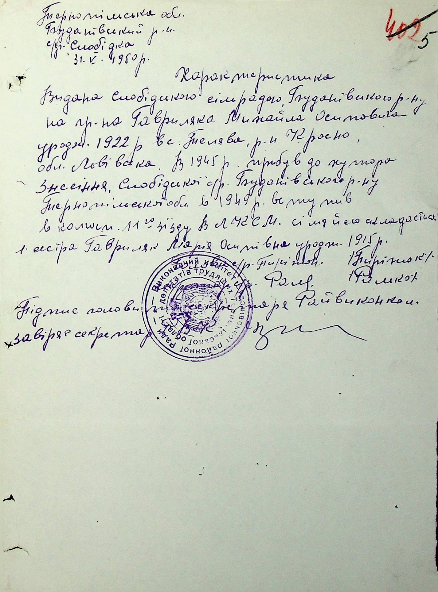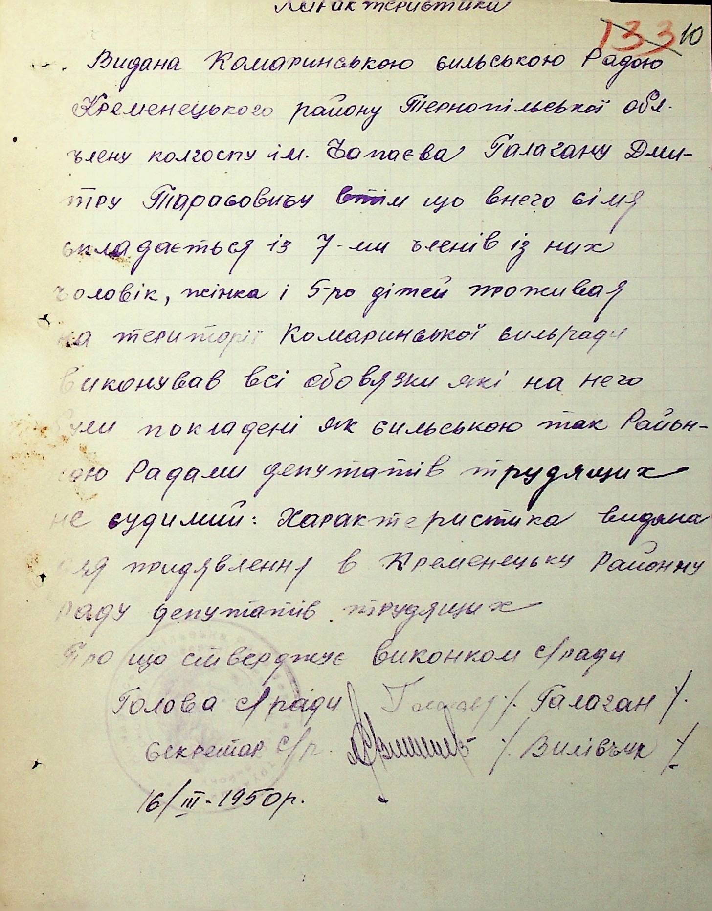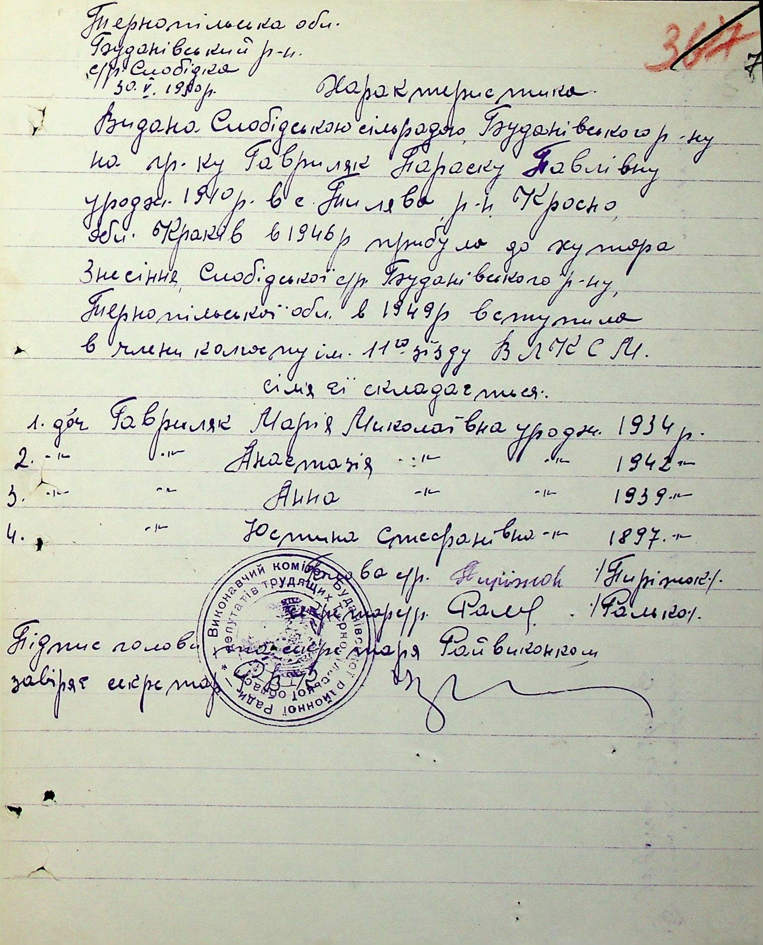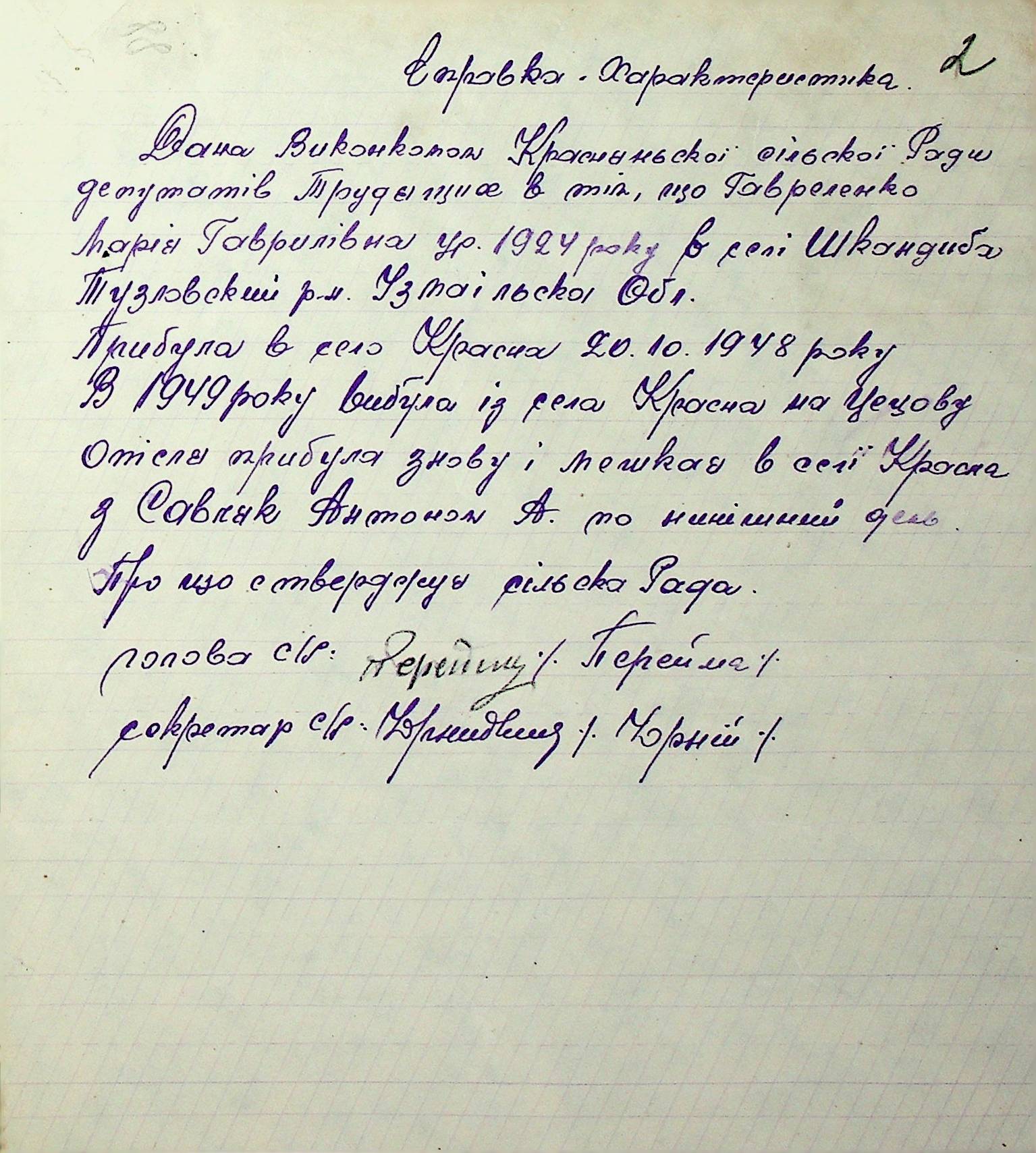 Довідки-характеристики, надані сільськими та селищними Радами депутатів трудящих на від’їжджаючих голів сімей та склад їх родин”