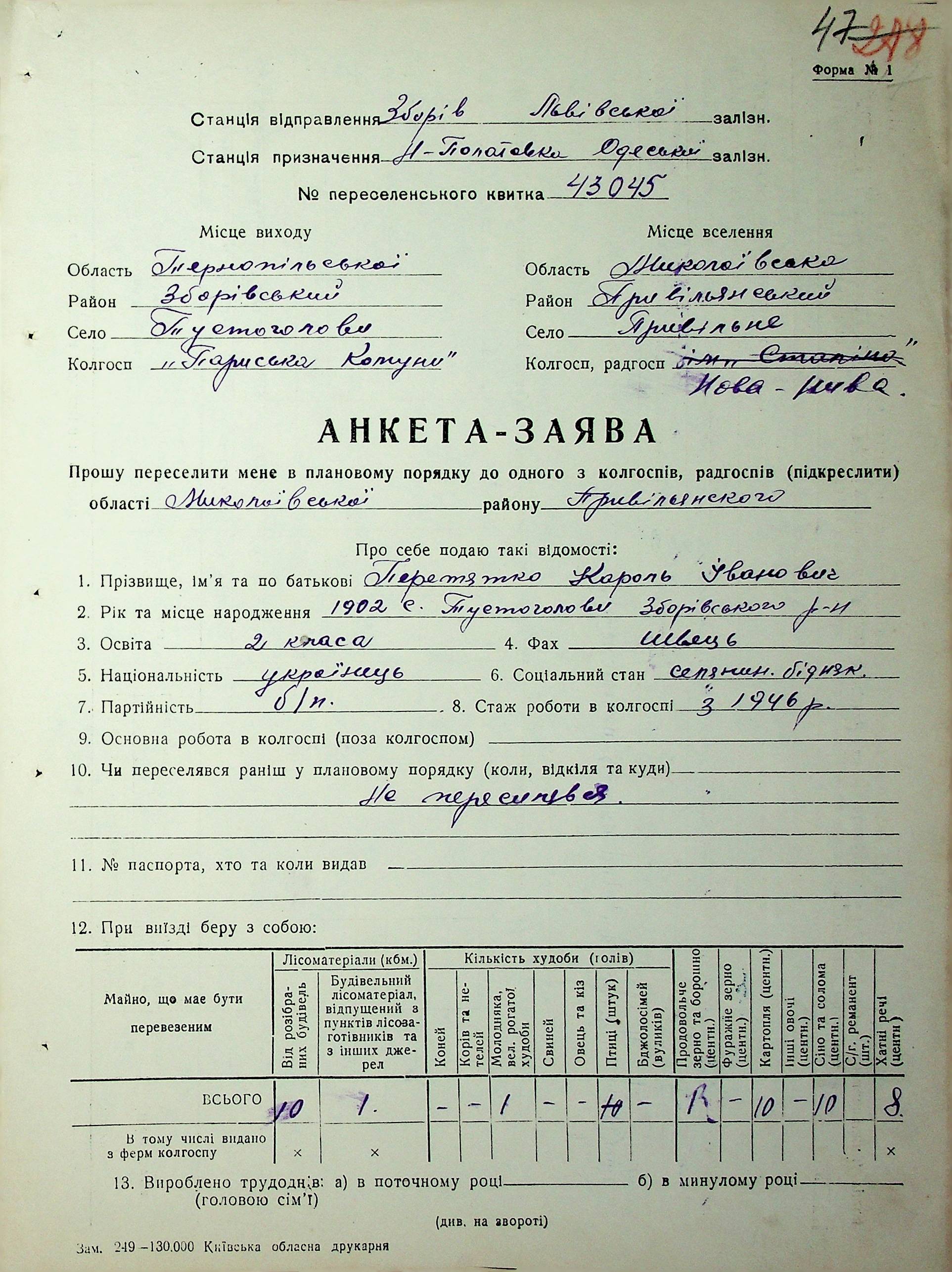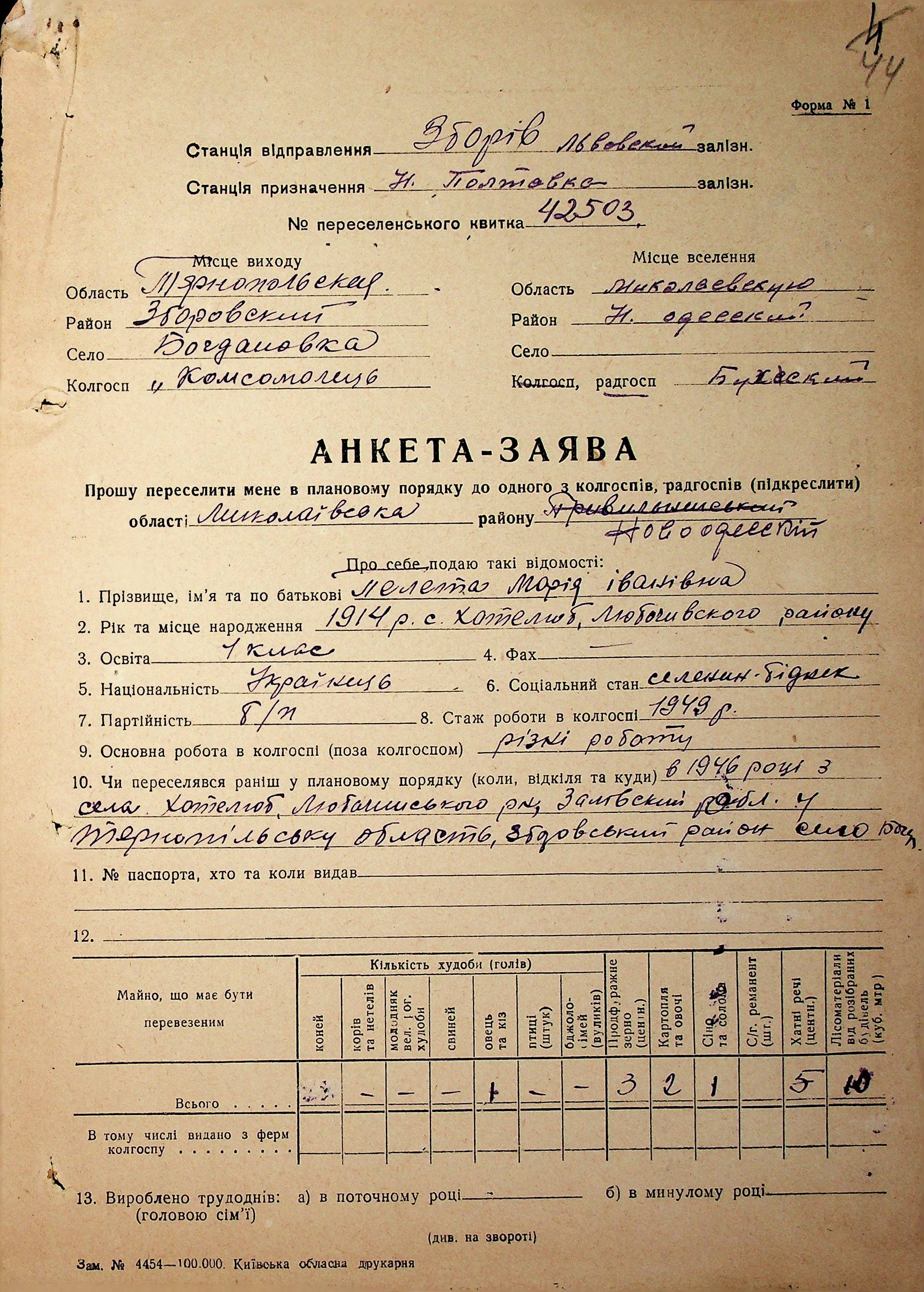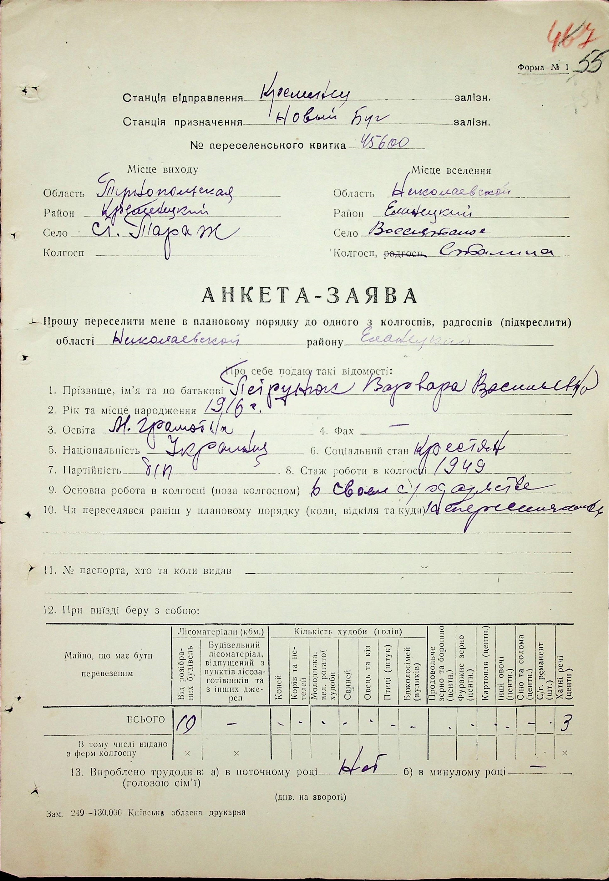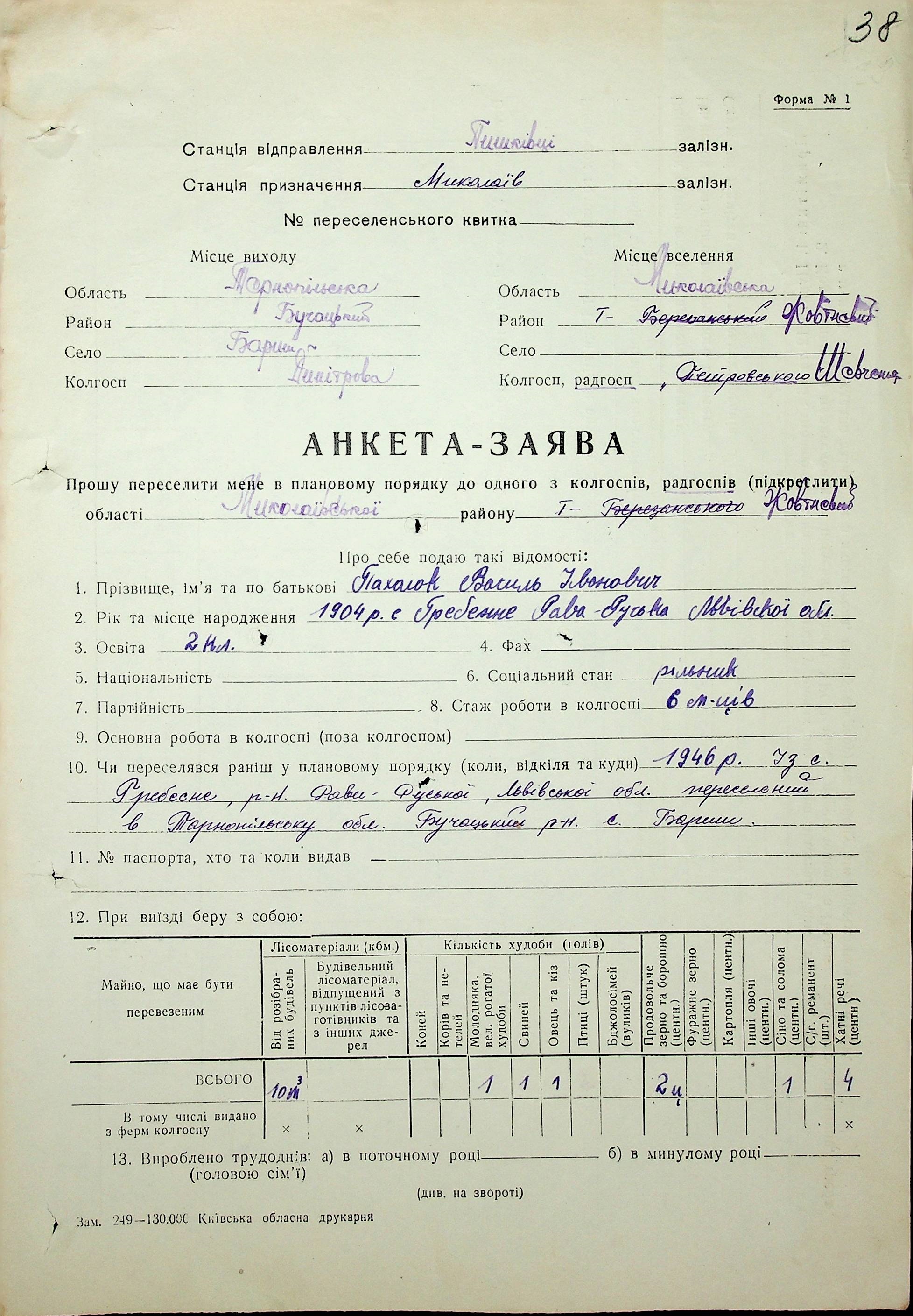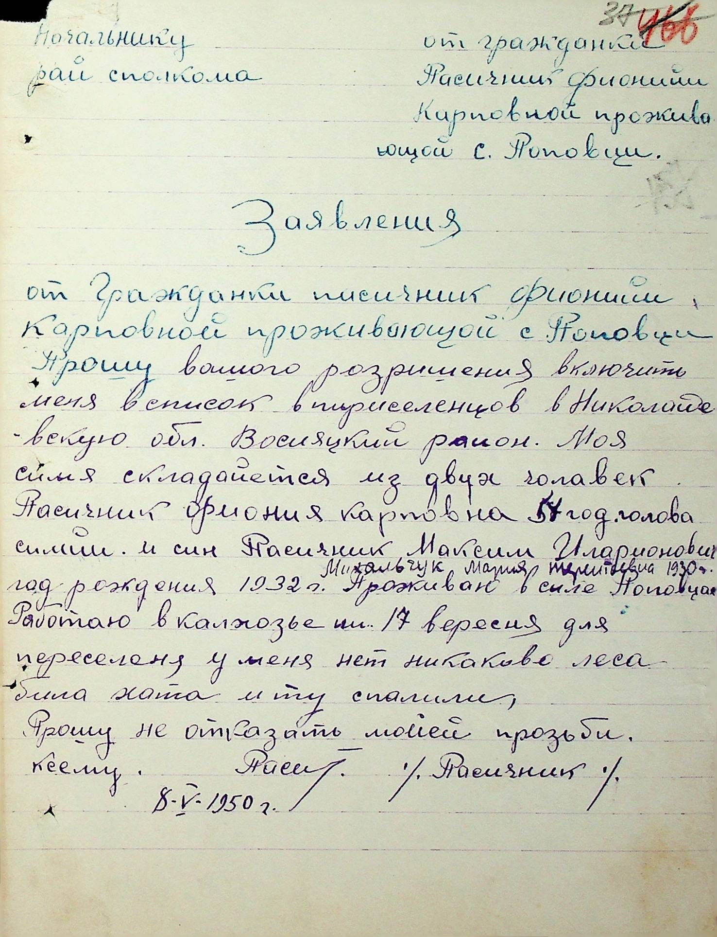 • • • • Справа № 66 “Анкети-заяви про планове переселення сімей з Тернопільської до Миколаївської області, прізвища з літери «П» по літеру «С».