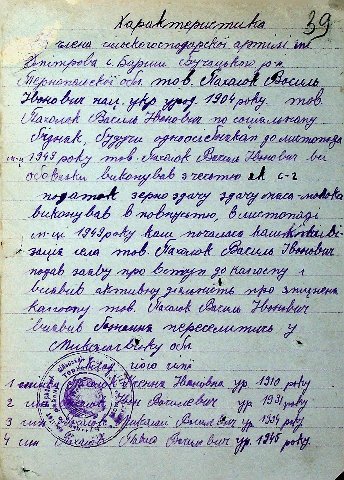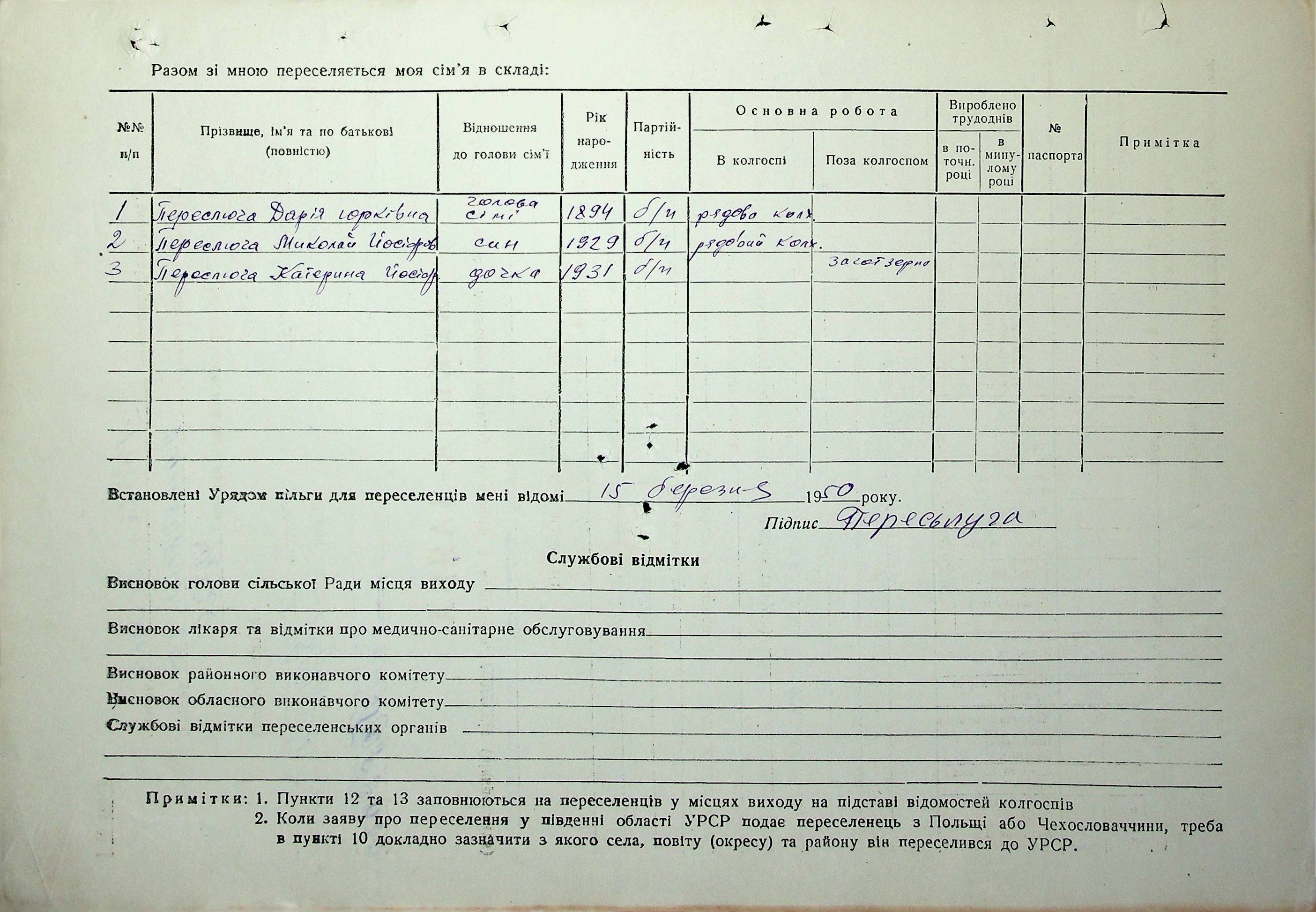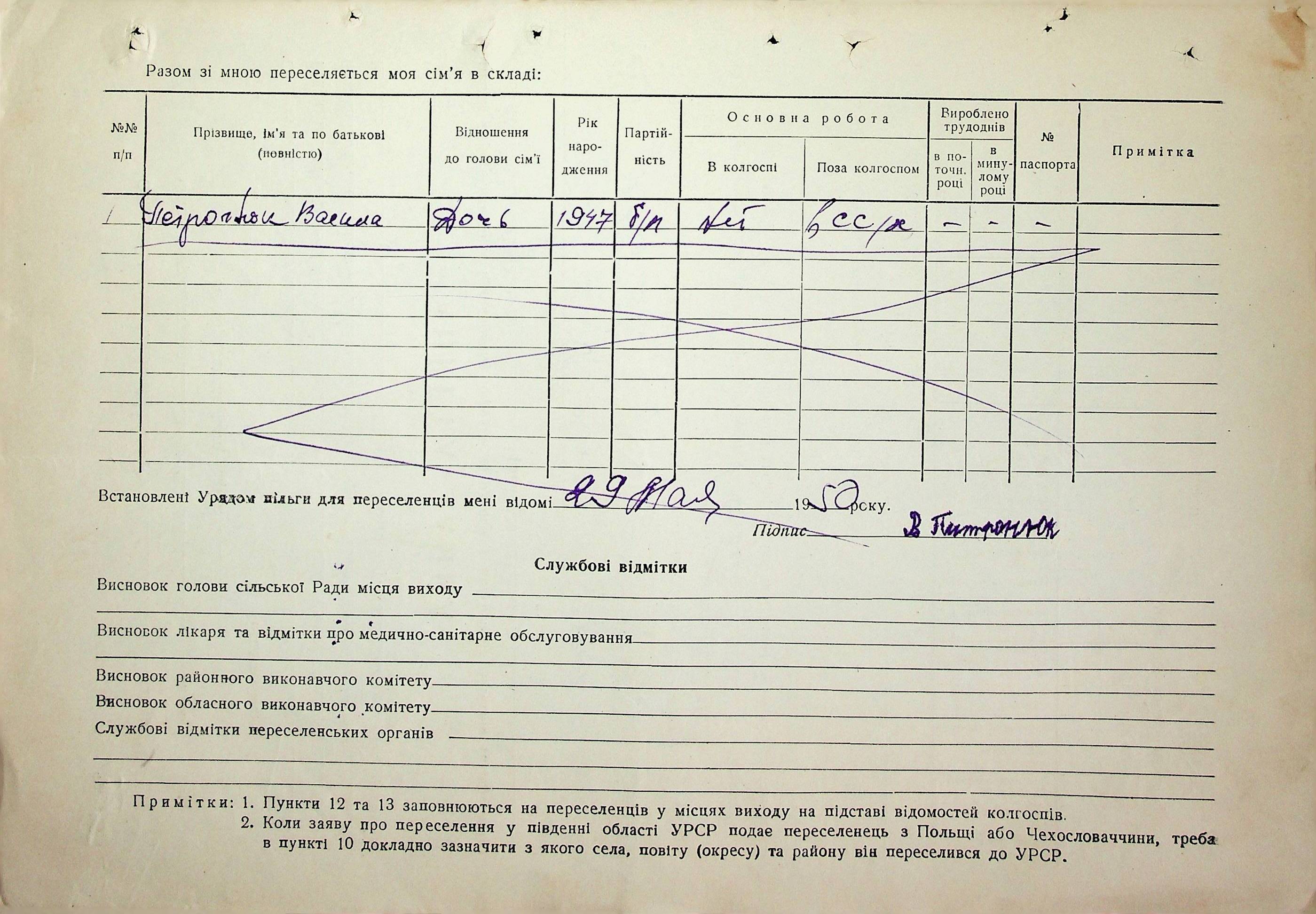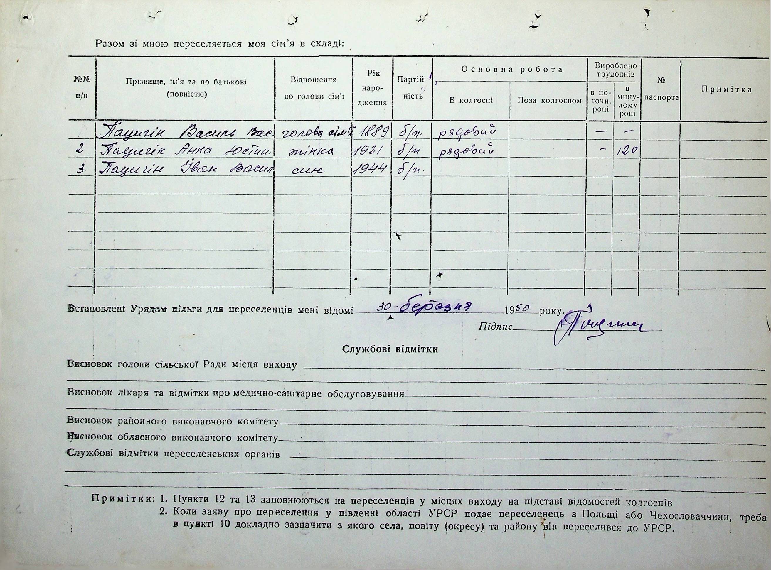 Довідки-характеристики, надані сільськими та селищними Радами депутатів трудящих на від’їжджаючих голів сімей та склад їх родин”