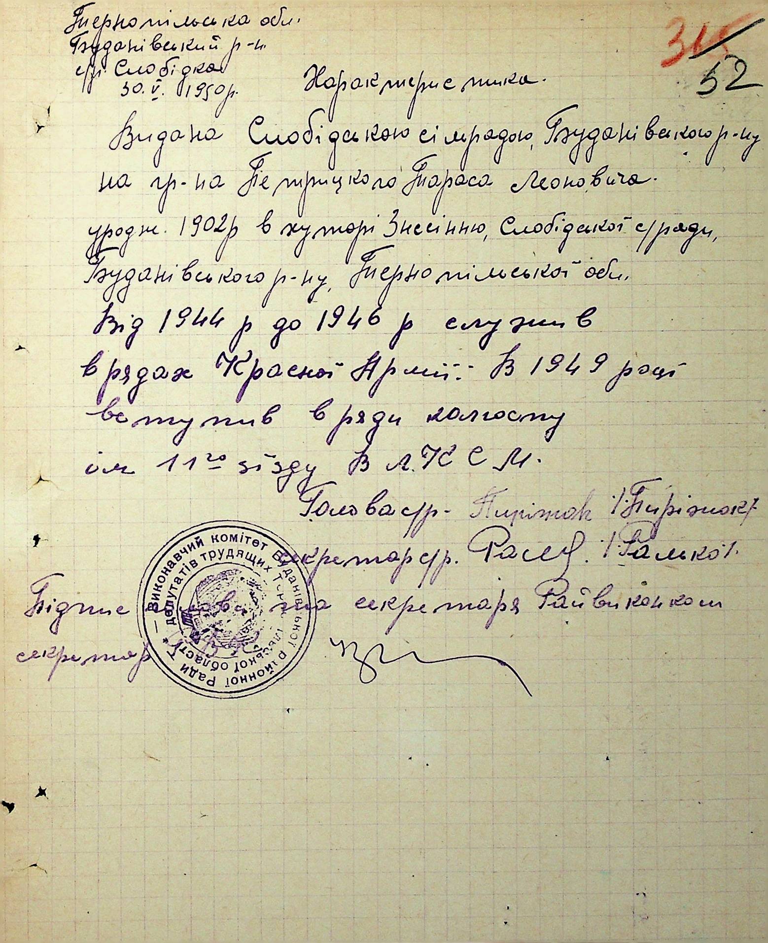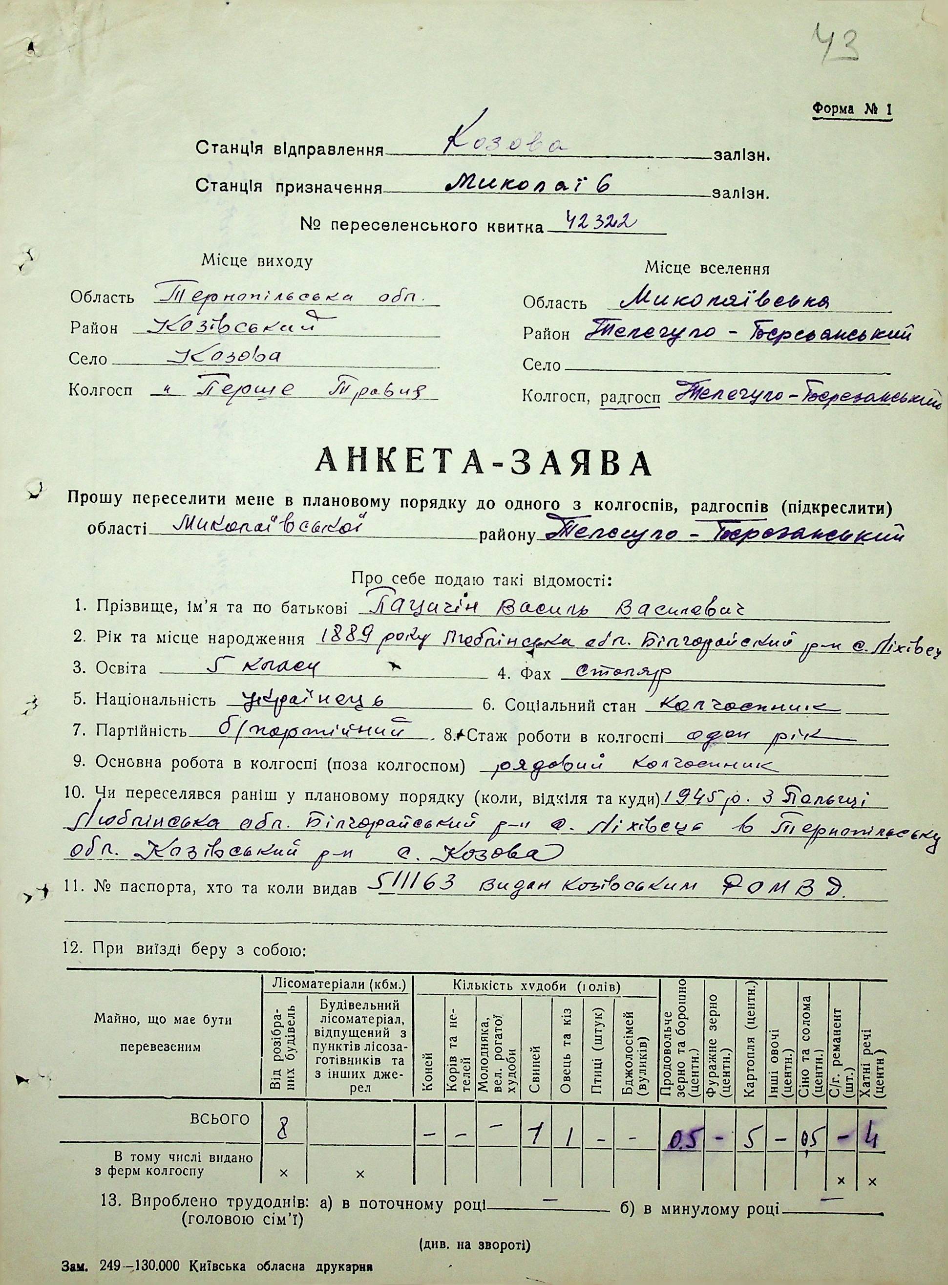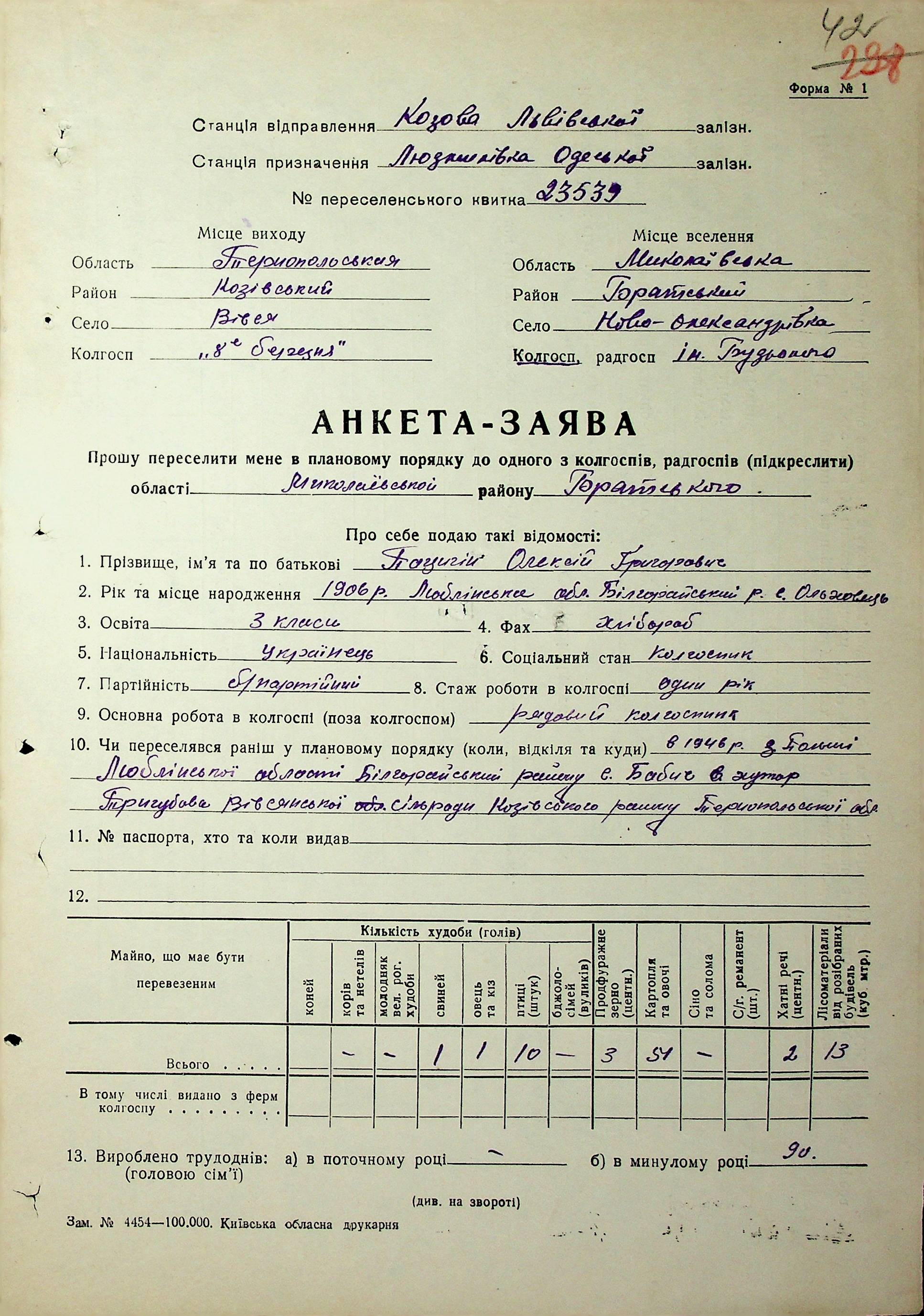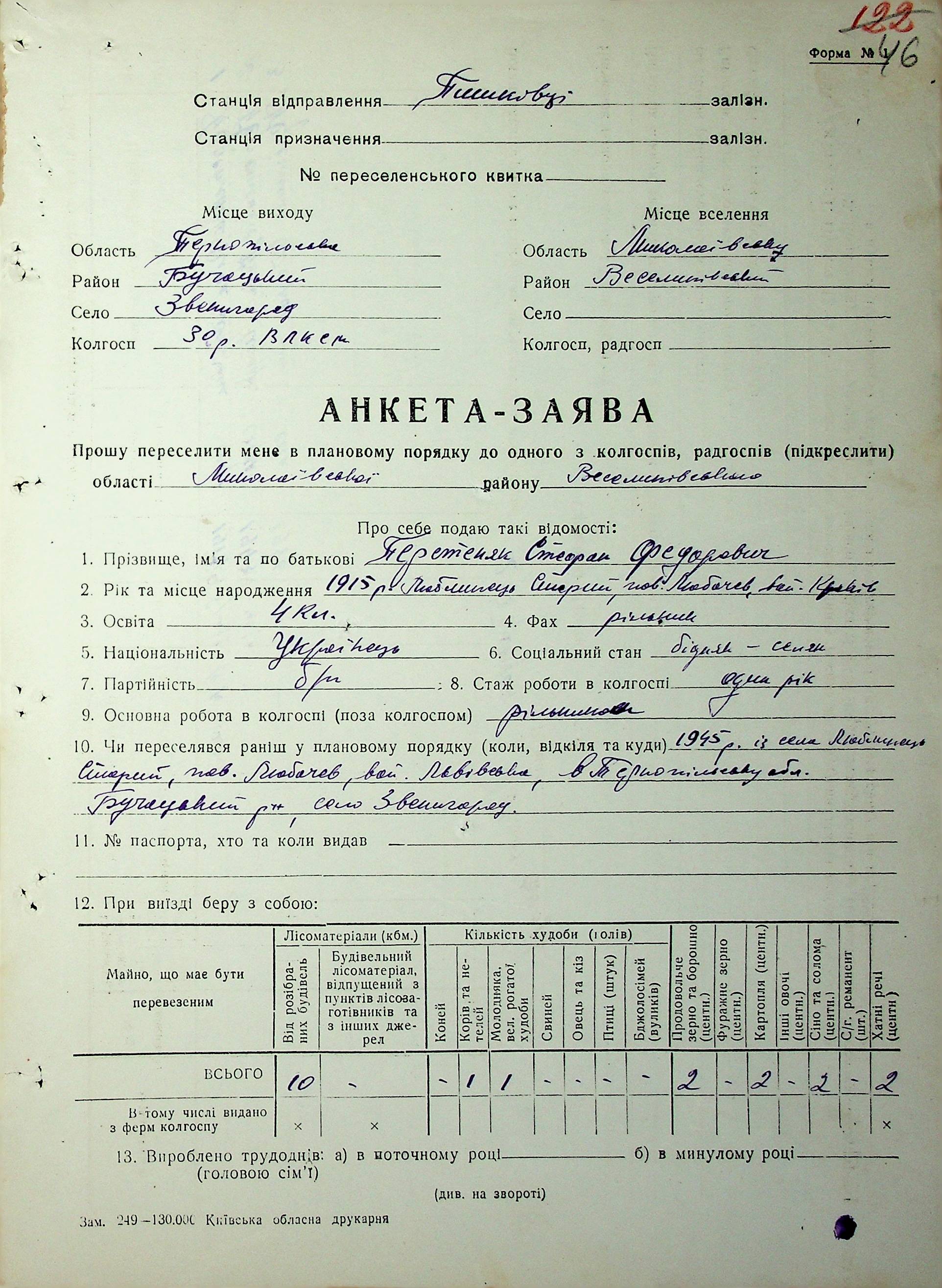 Довідки-характеристики, надані сільськими та селищними Радами депутатів трудящих на від’їжджаючих голів сімей та склад їх родин”